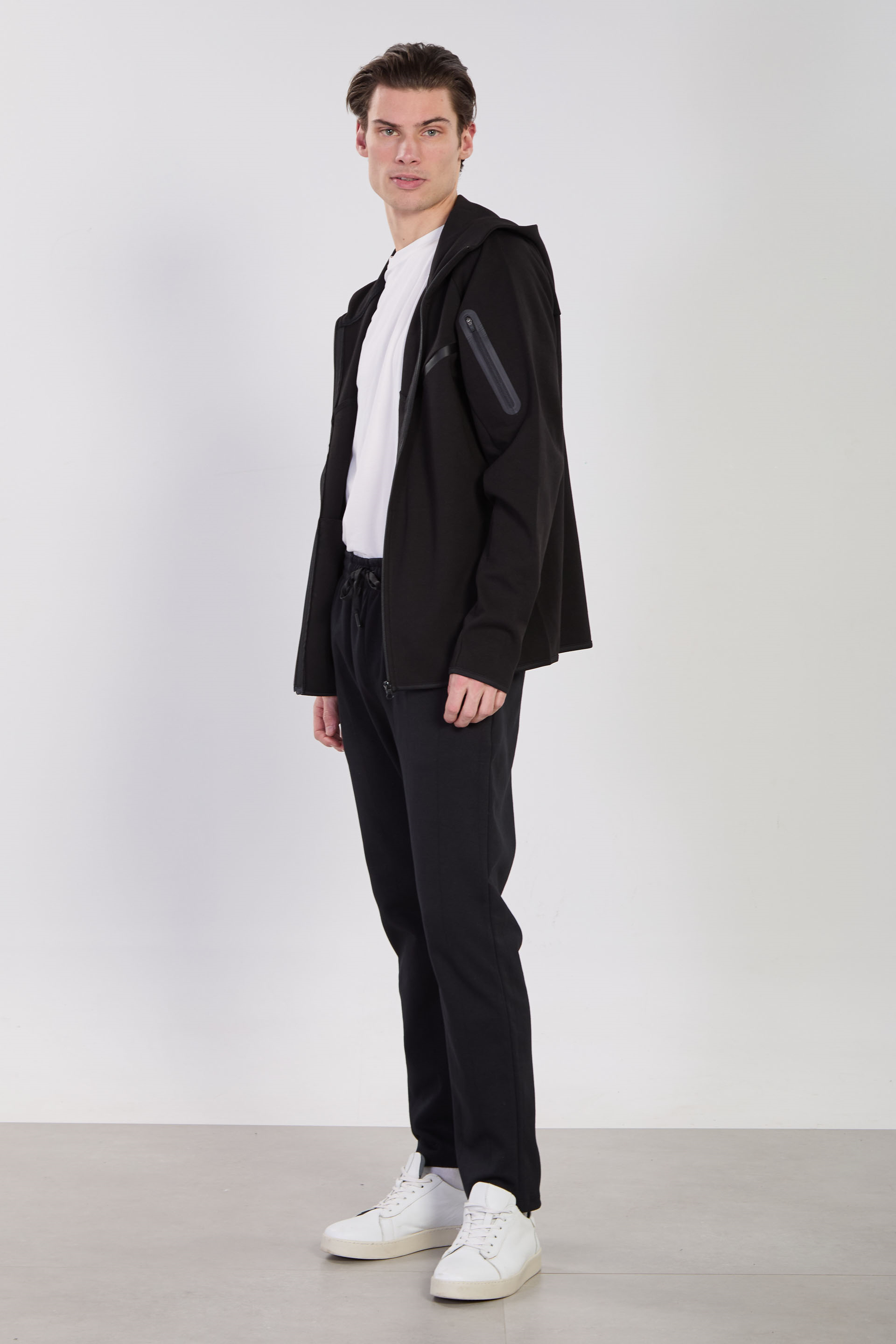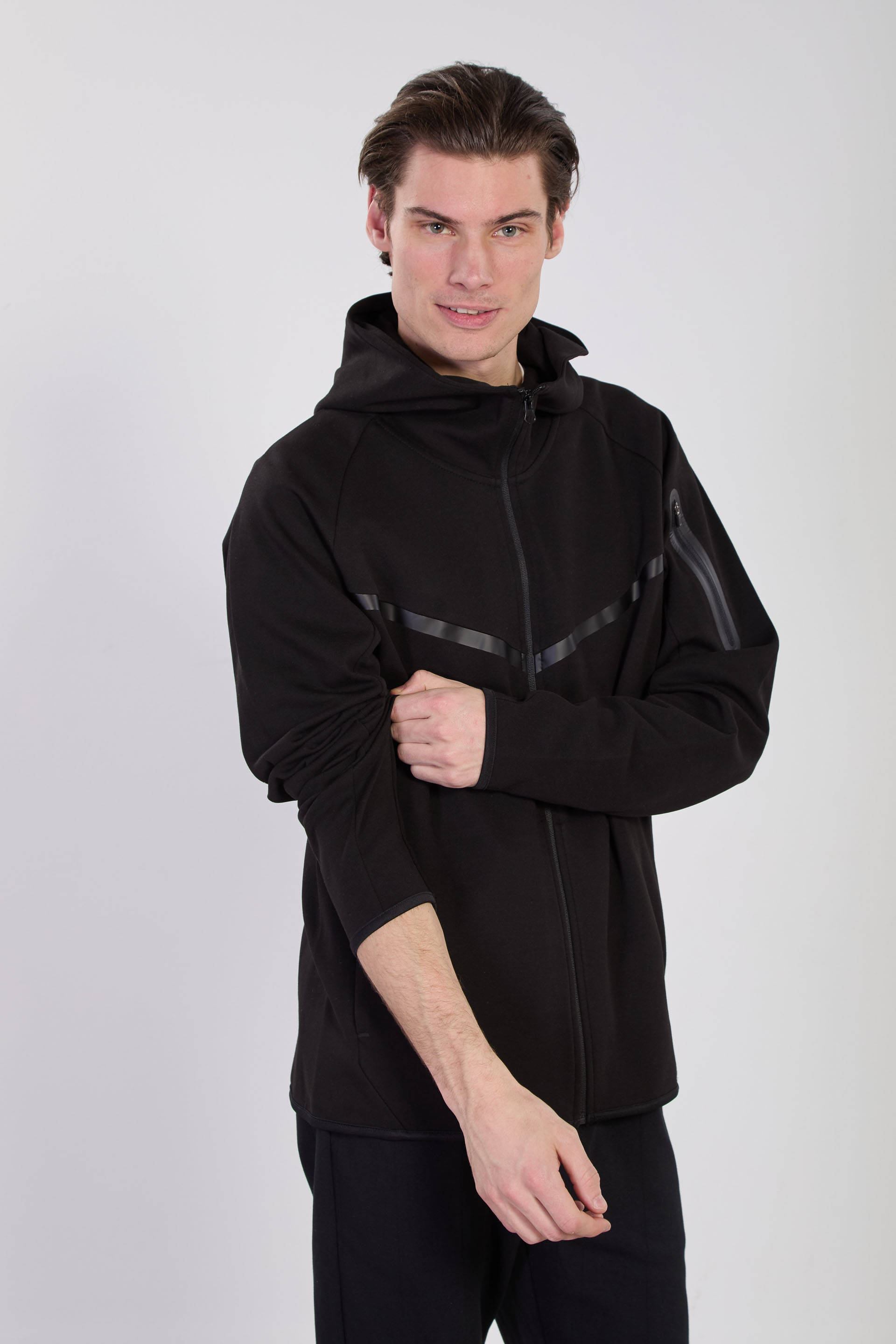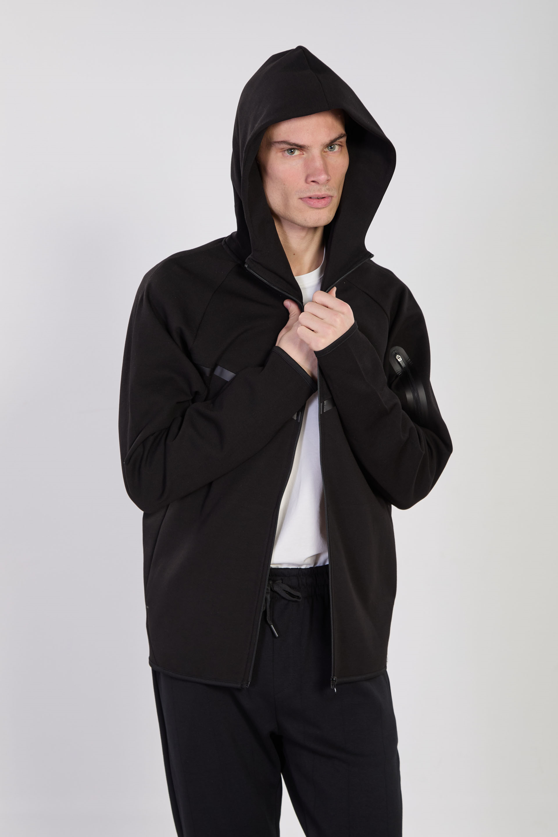 Erkek Dik Yaka Kapüşonlu Fermuarlı Sweatshirt- Siyah