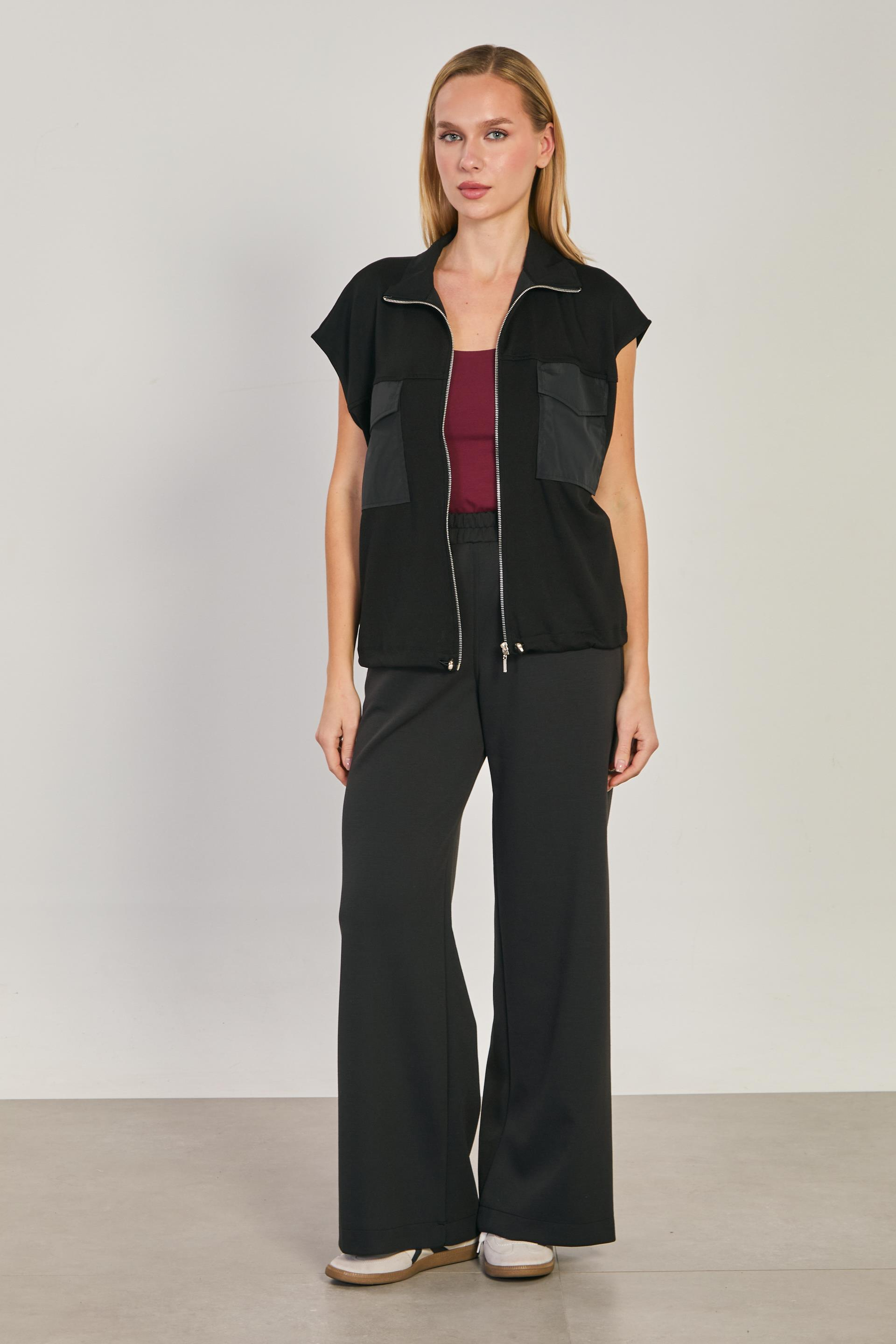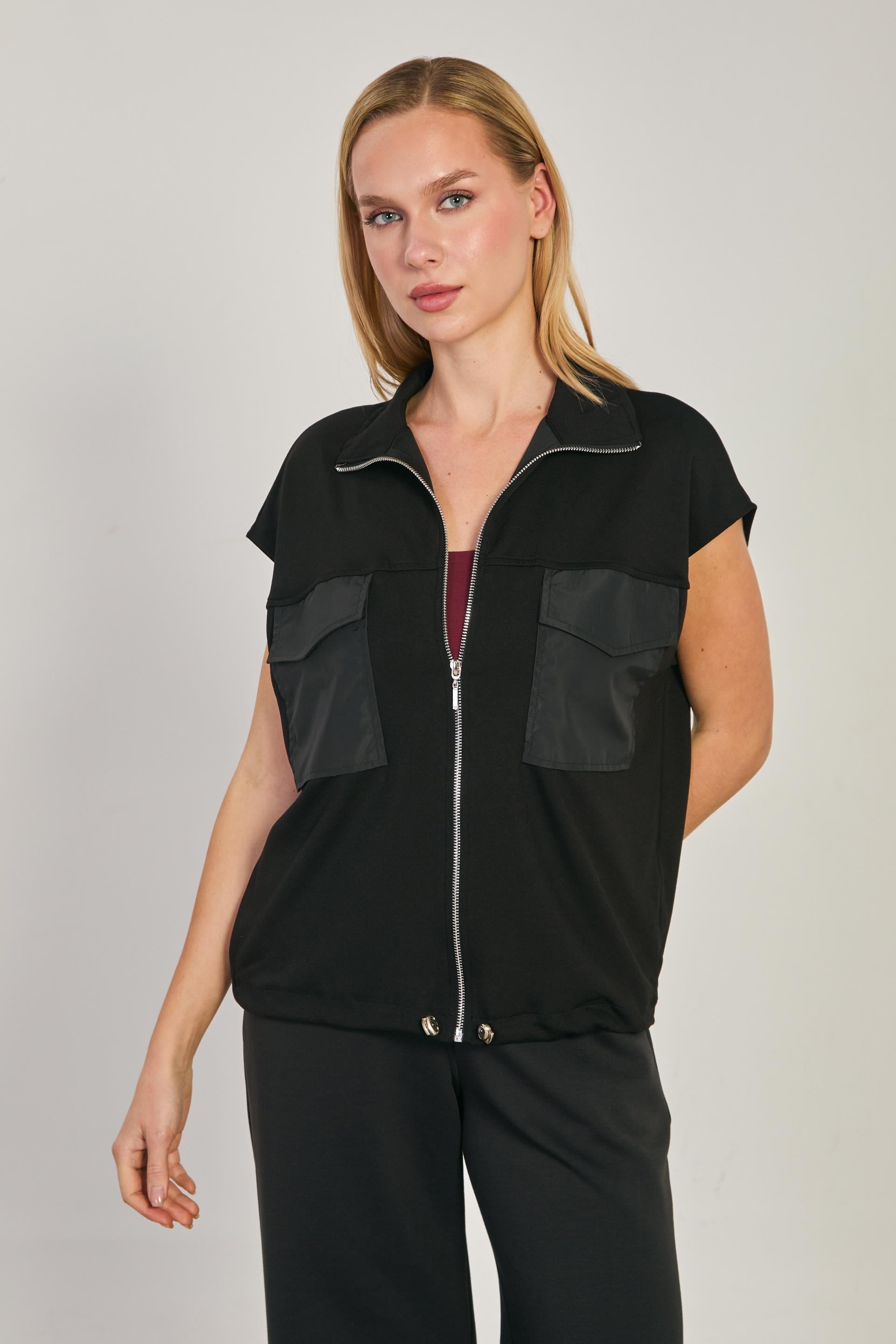 Kadın Dik Yaka Kare Cep Yelek - Siyah