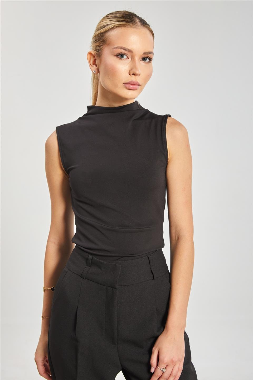 Kadın Dik Yaka Sıfır Kol Body - Siyah