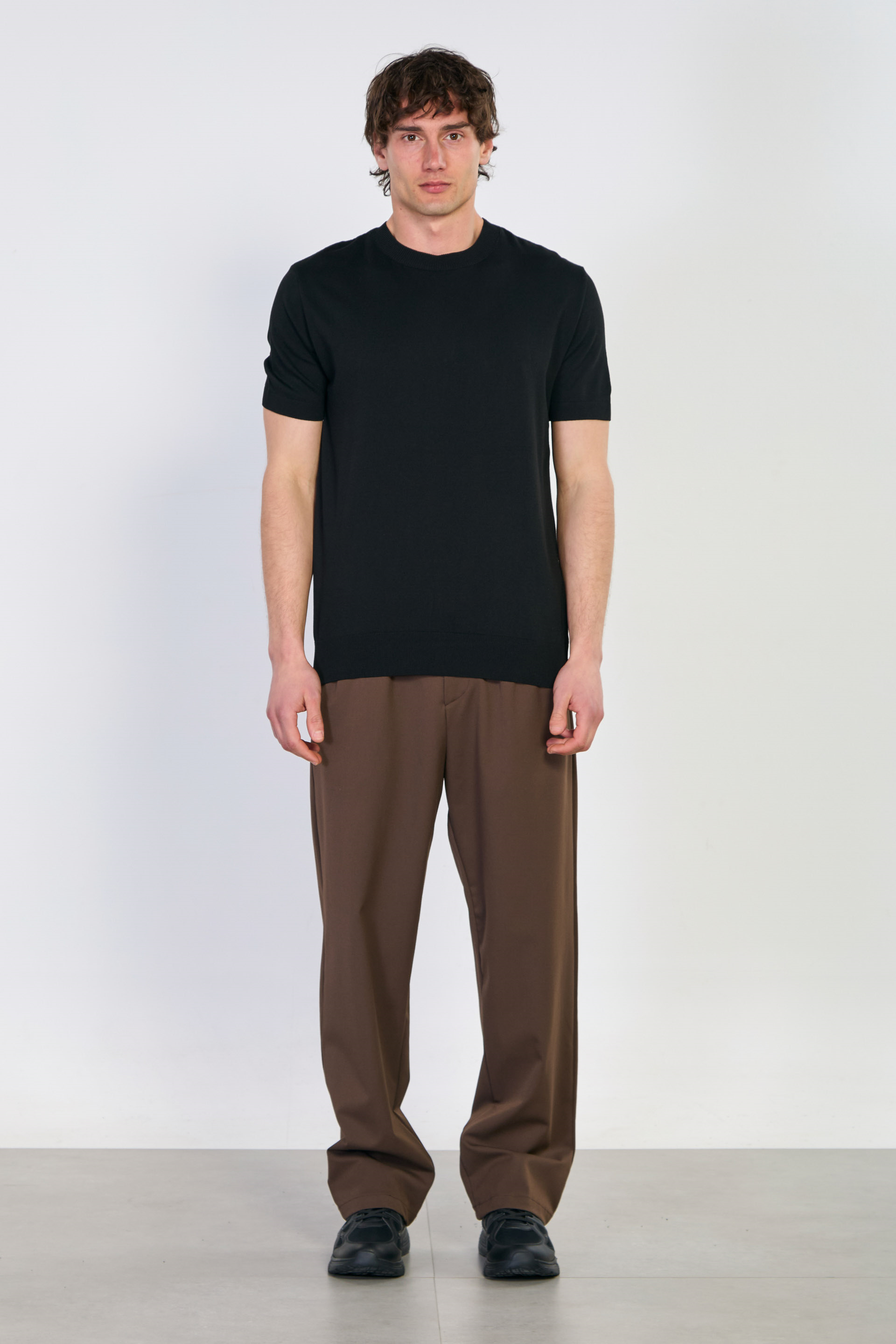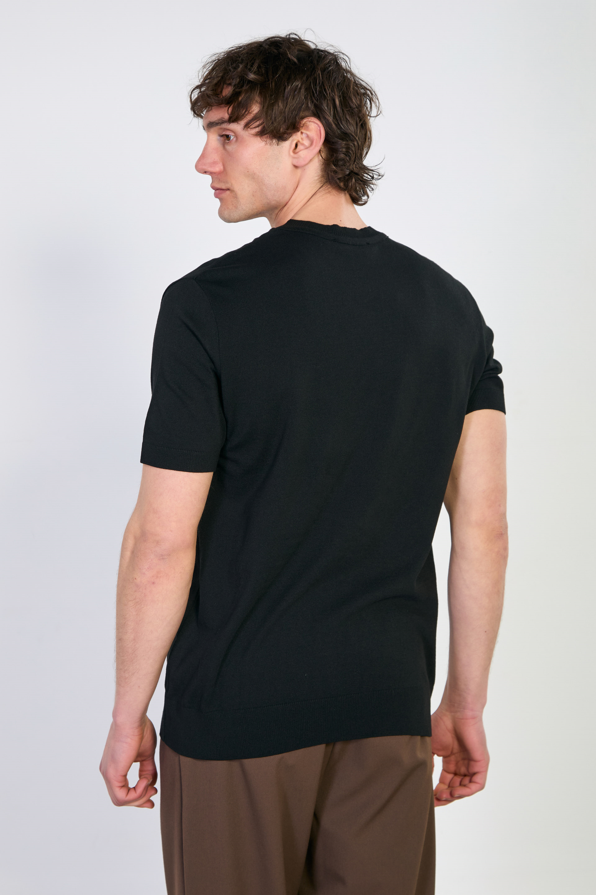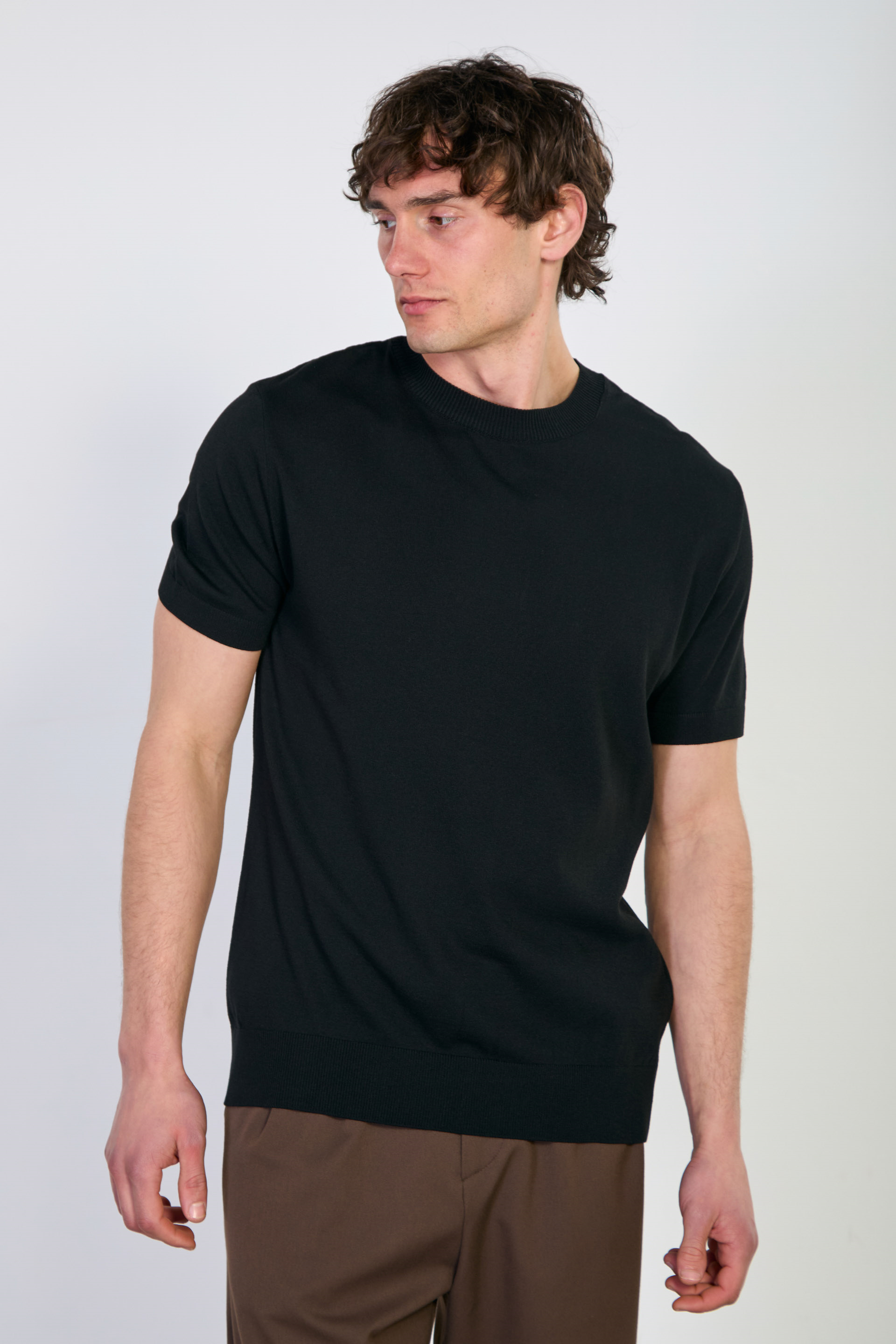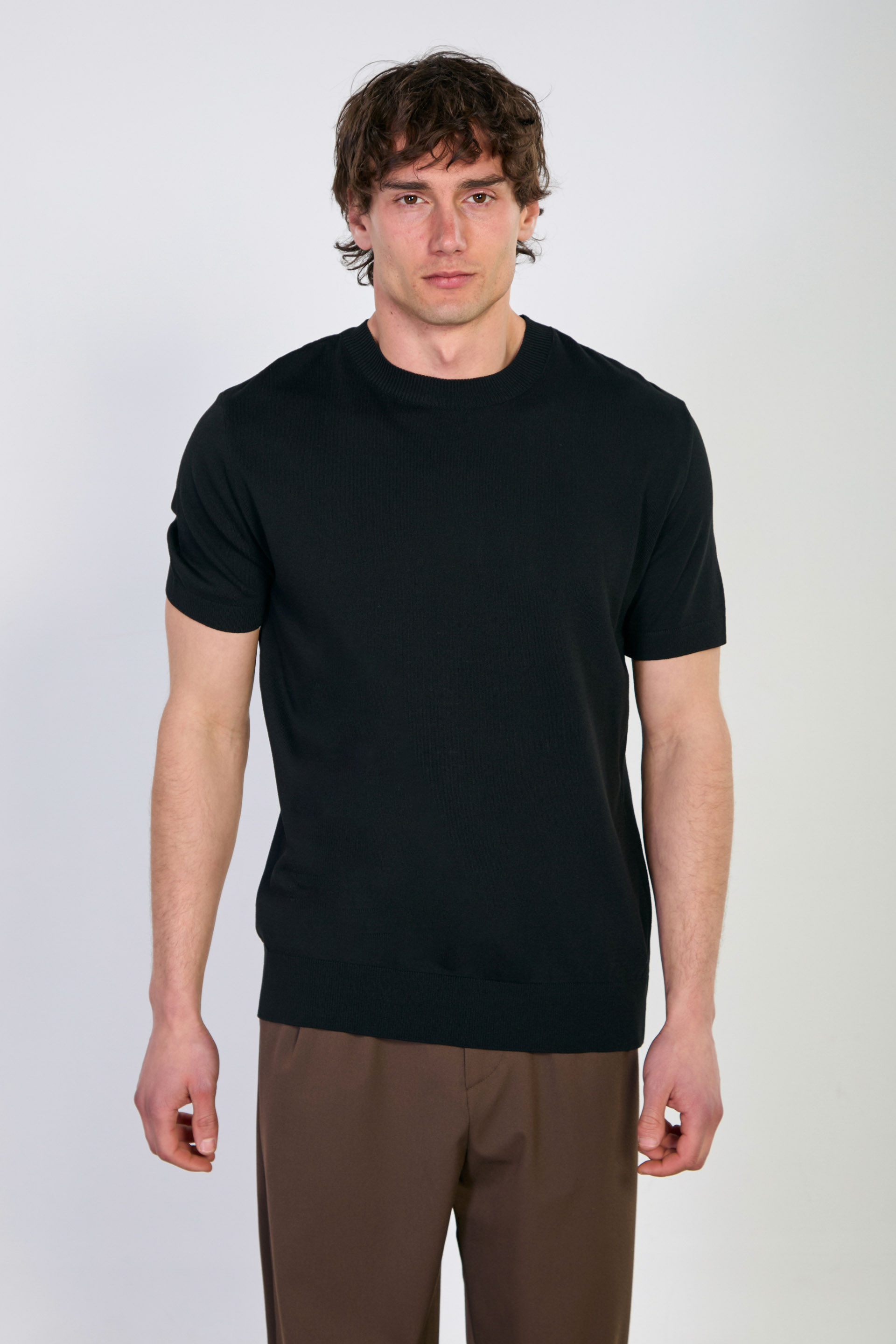 Erkek Dik Yaka Triko T-Shirt - Siyah