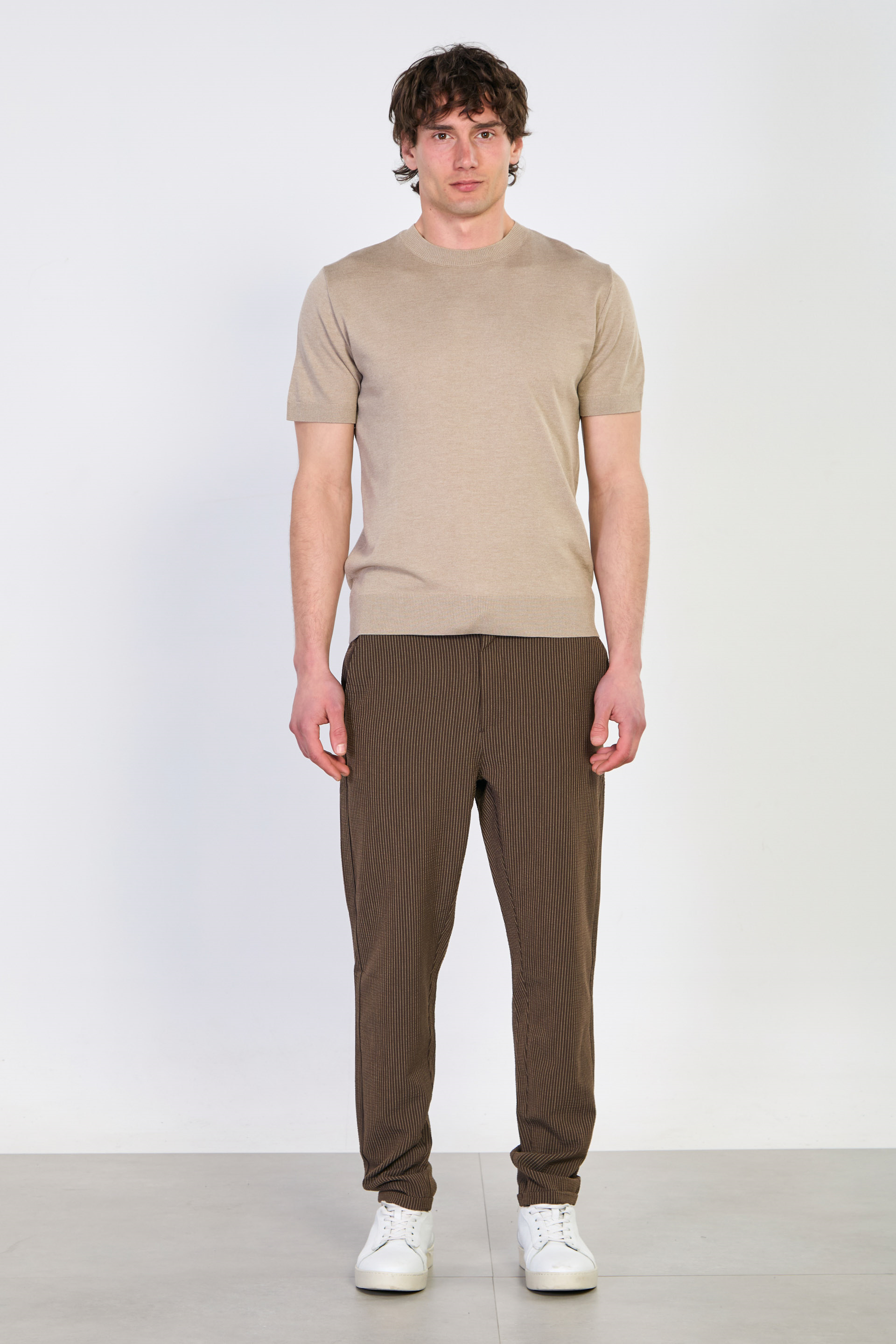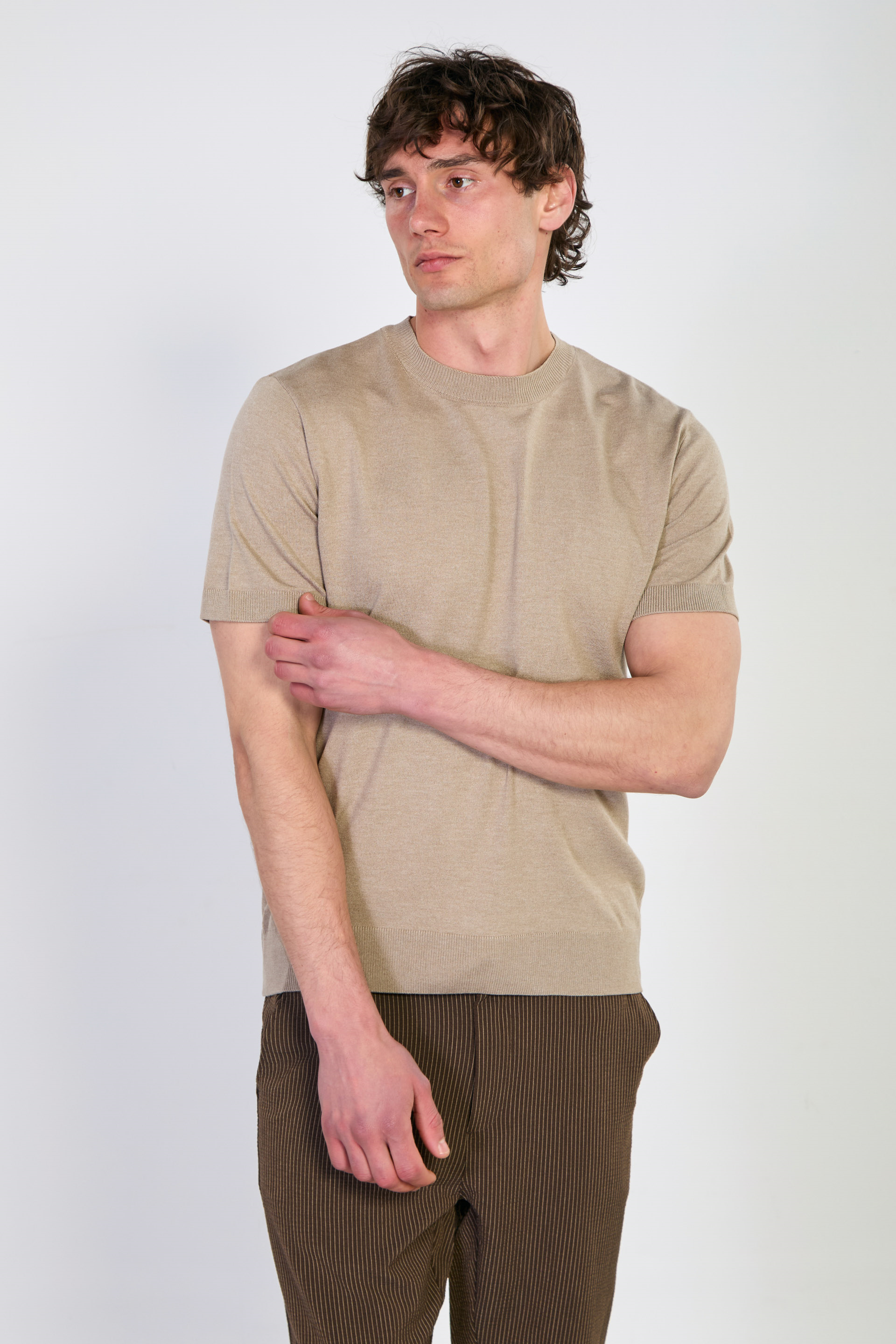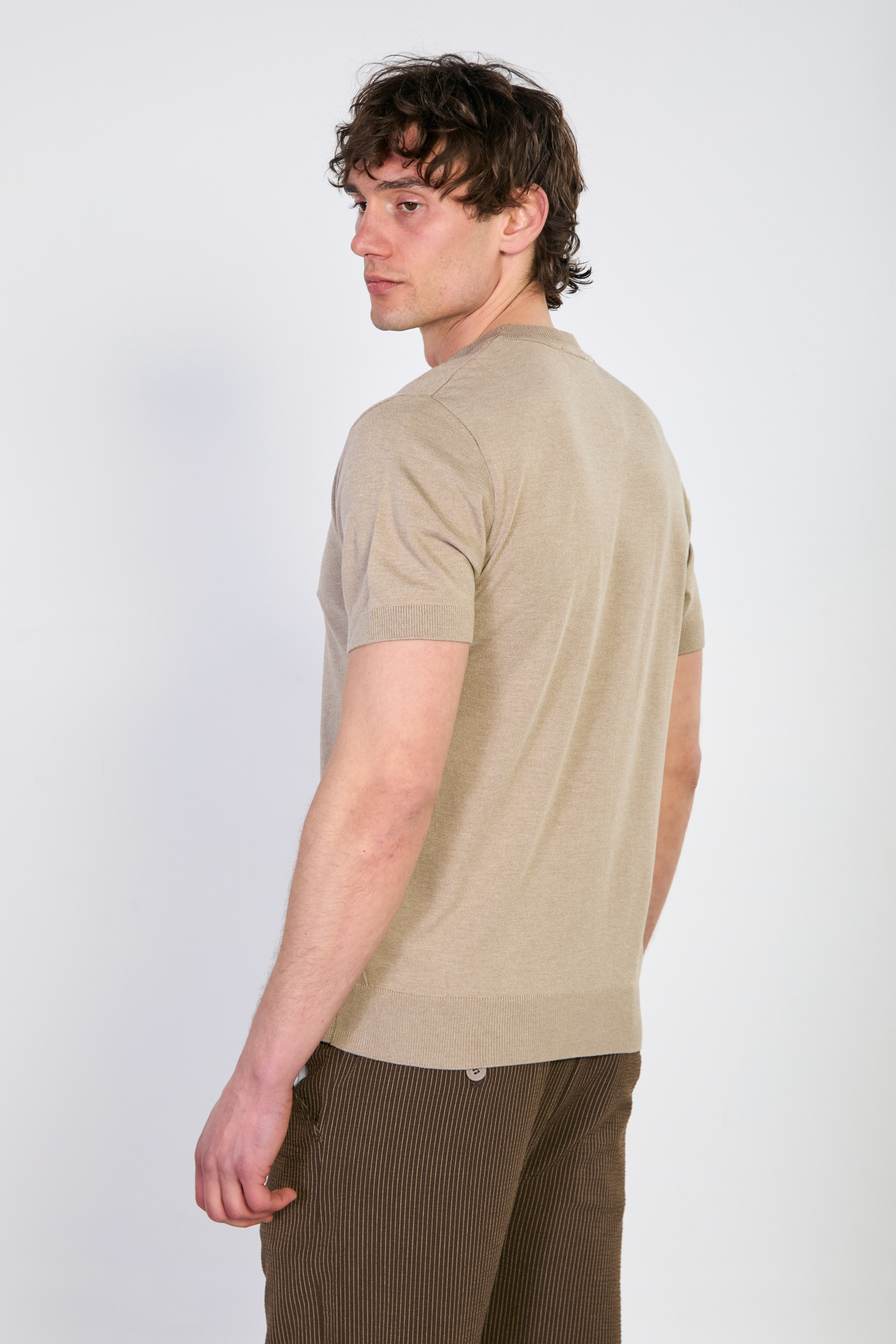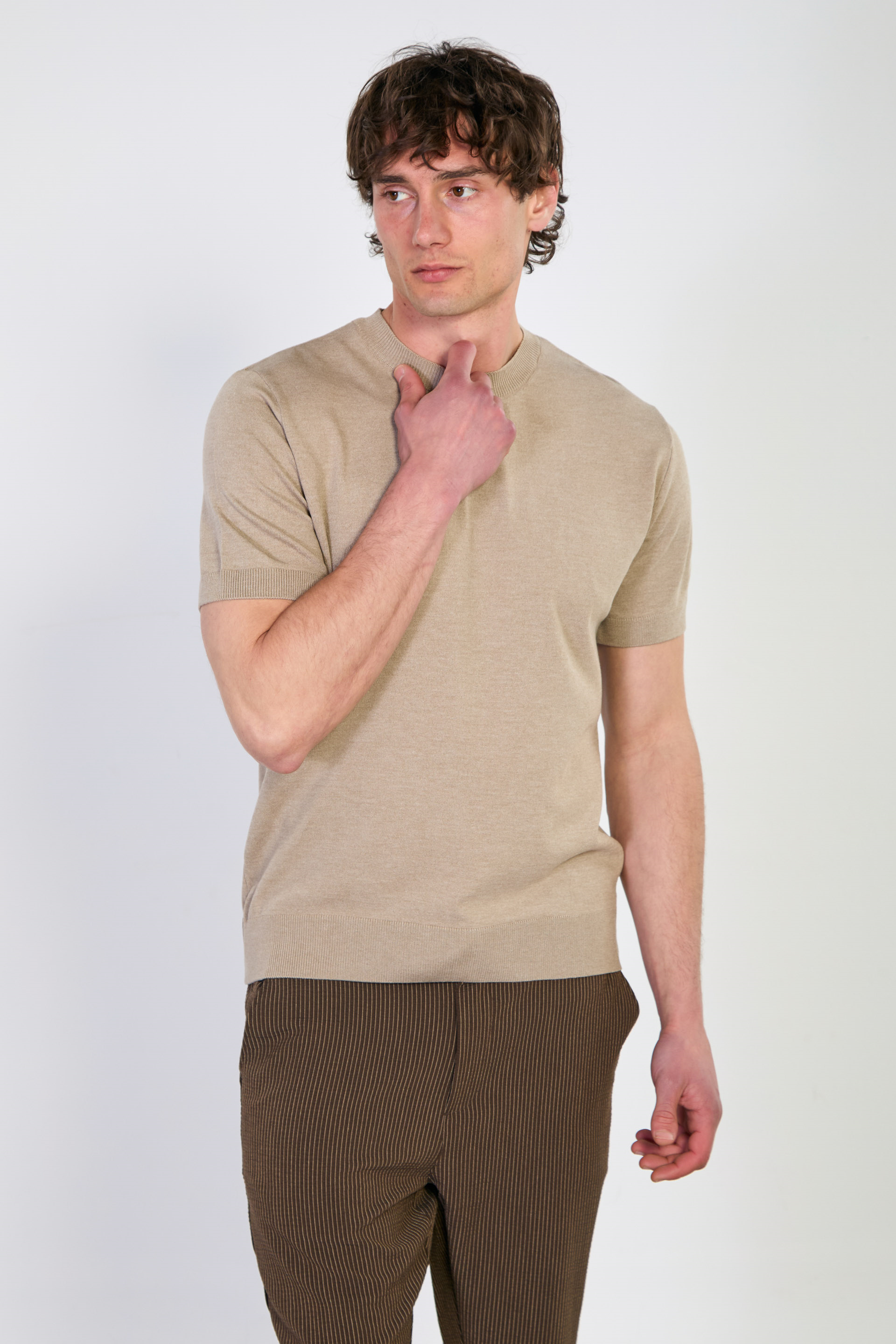 Erkek Dik Yaka Triko T-Shirt - Vizon