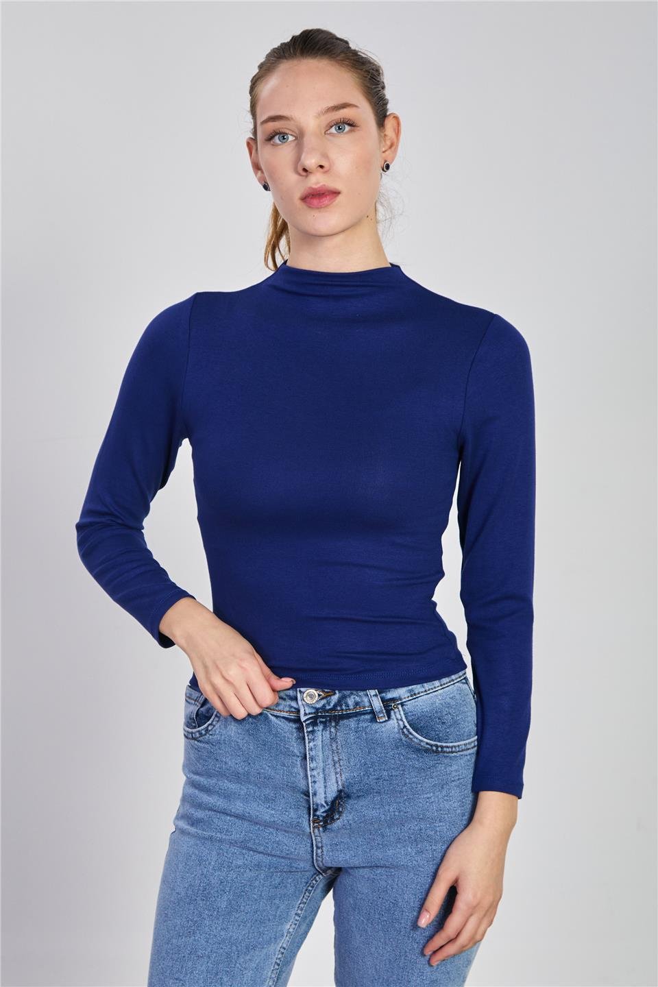 Kadın Dik Yaka Uzun Kol Body - Lacivert