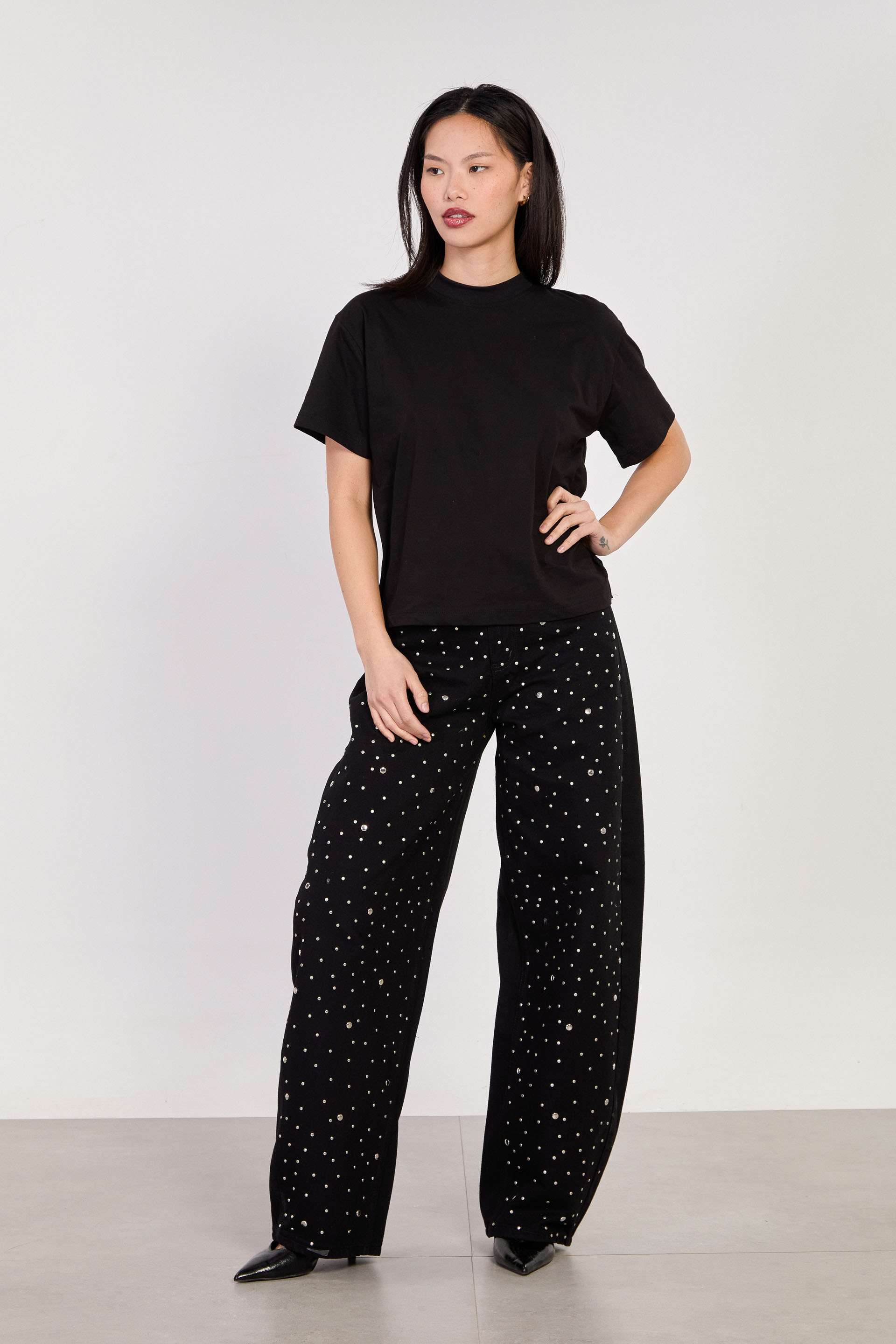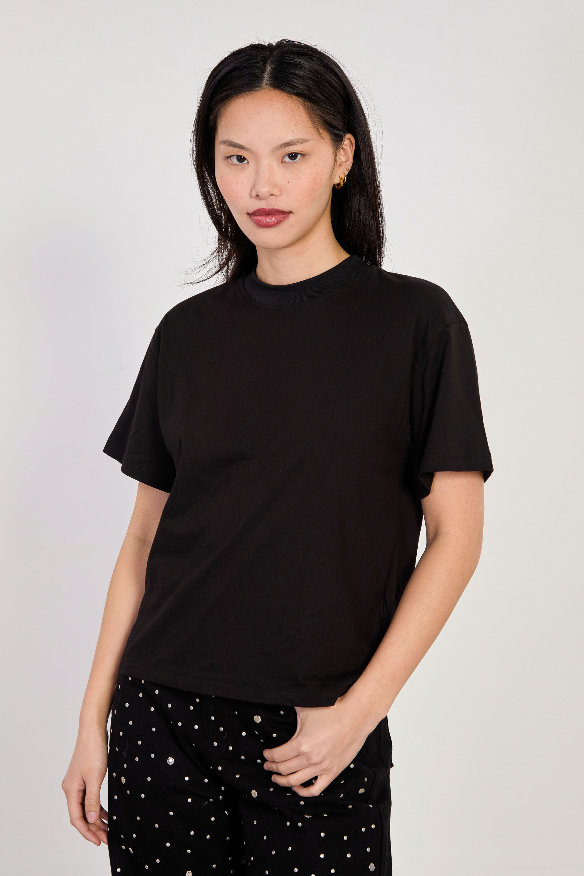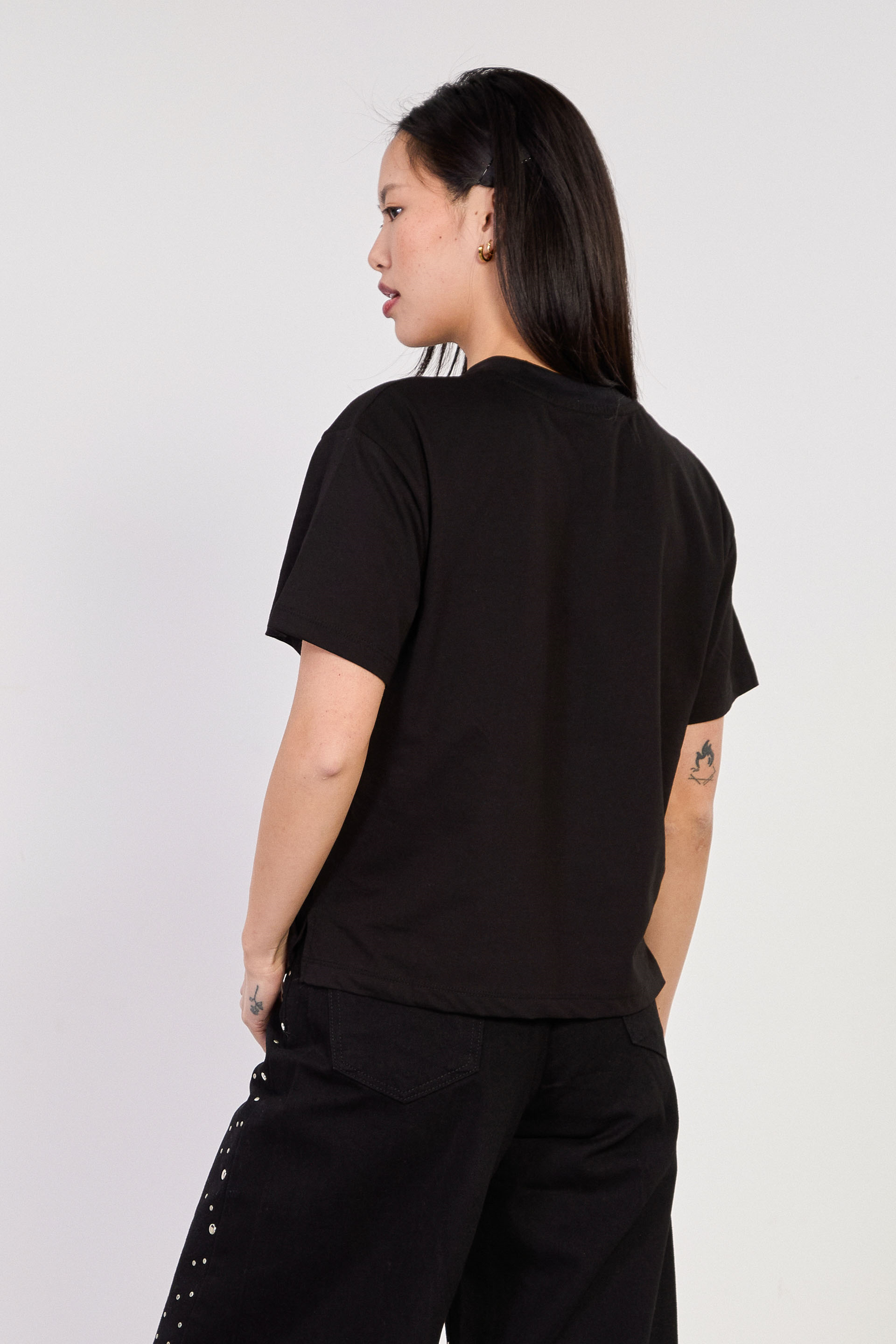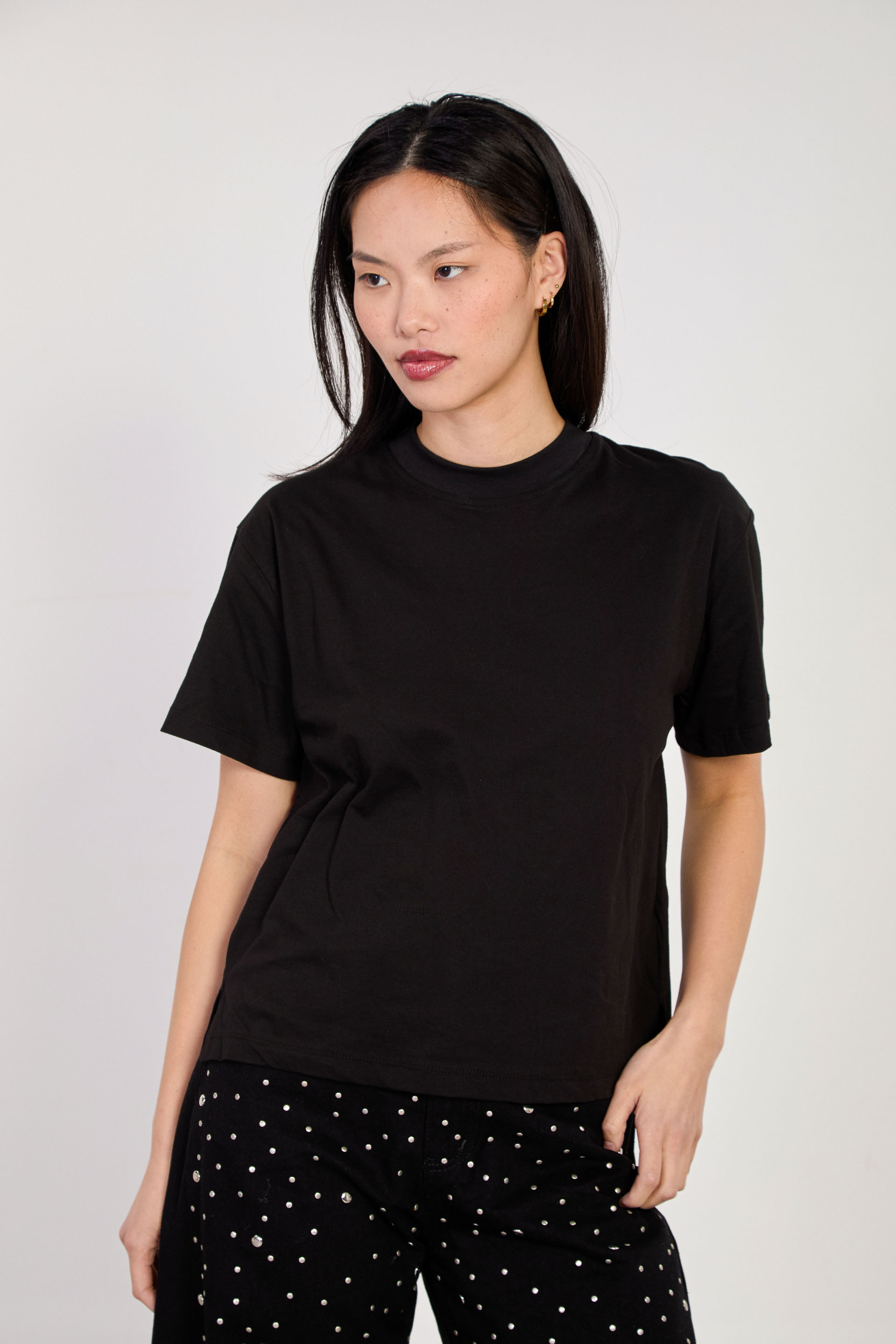 Kadın Dik Yaka Yanı Yırtmaçlı Basic T-Shirt - Siyah