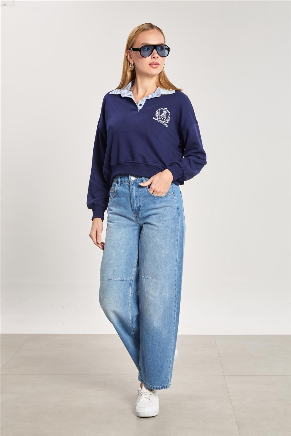 Kadın Dikiş Detaylı Balon Jean Pantolon - Mavi