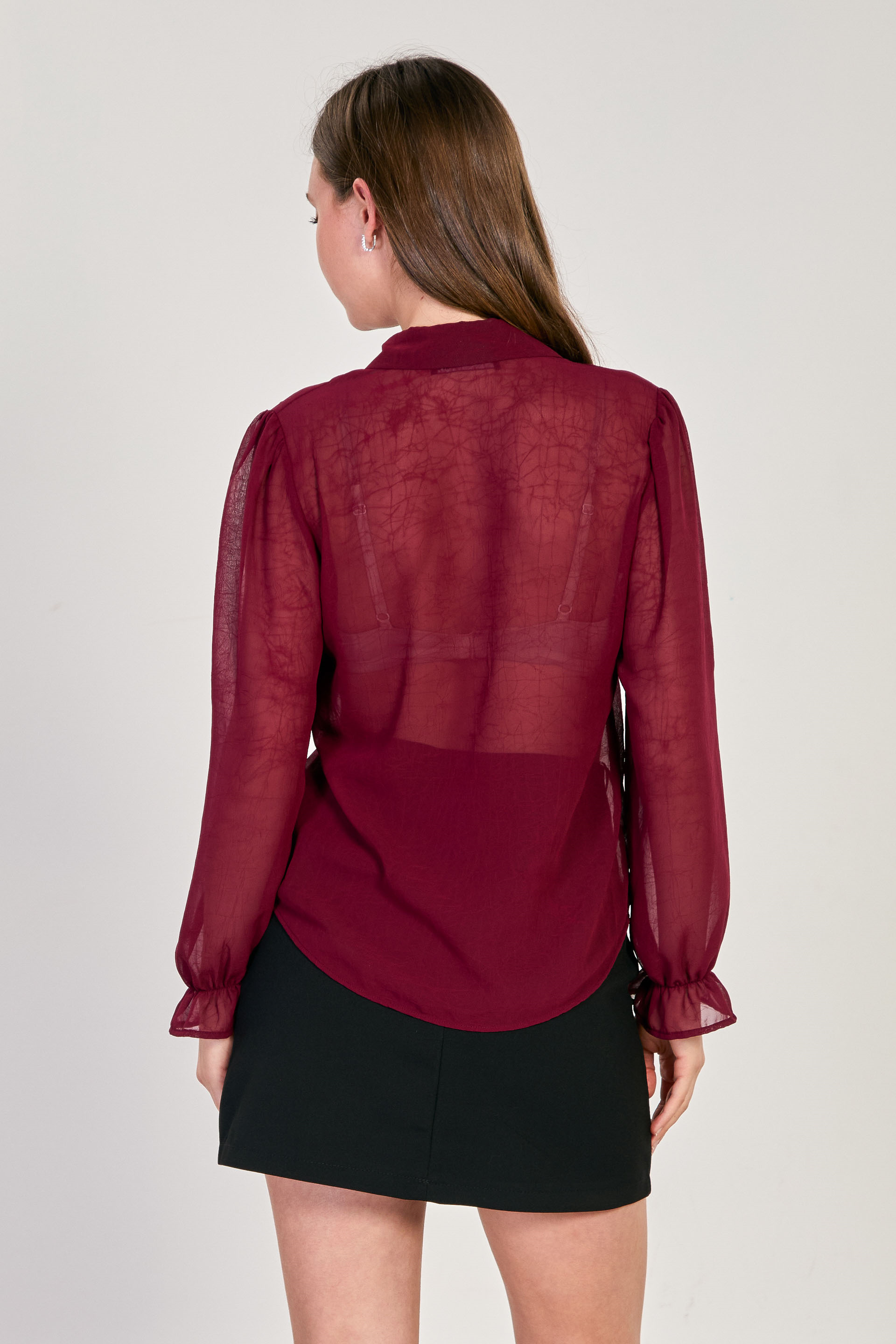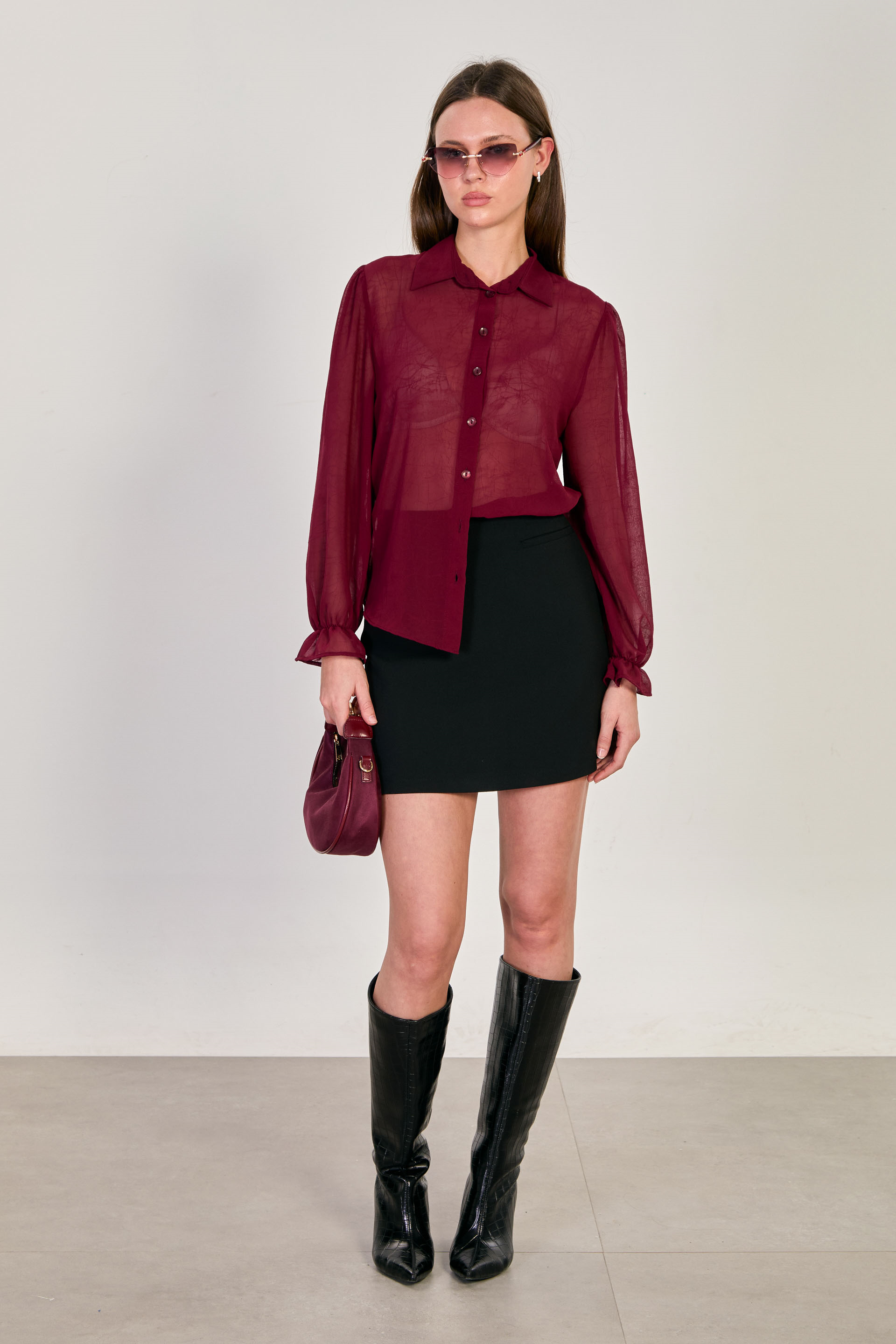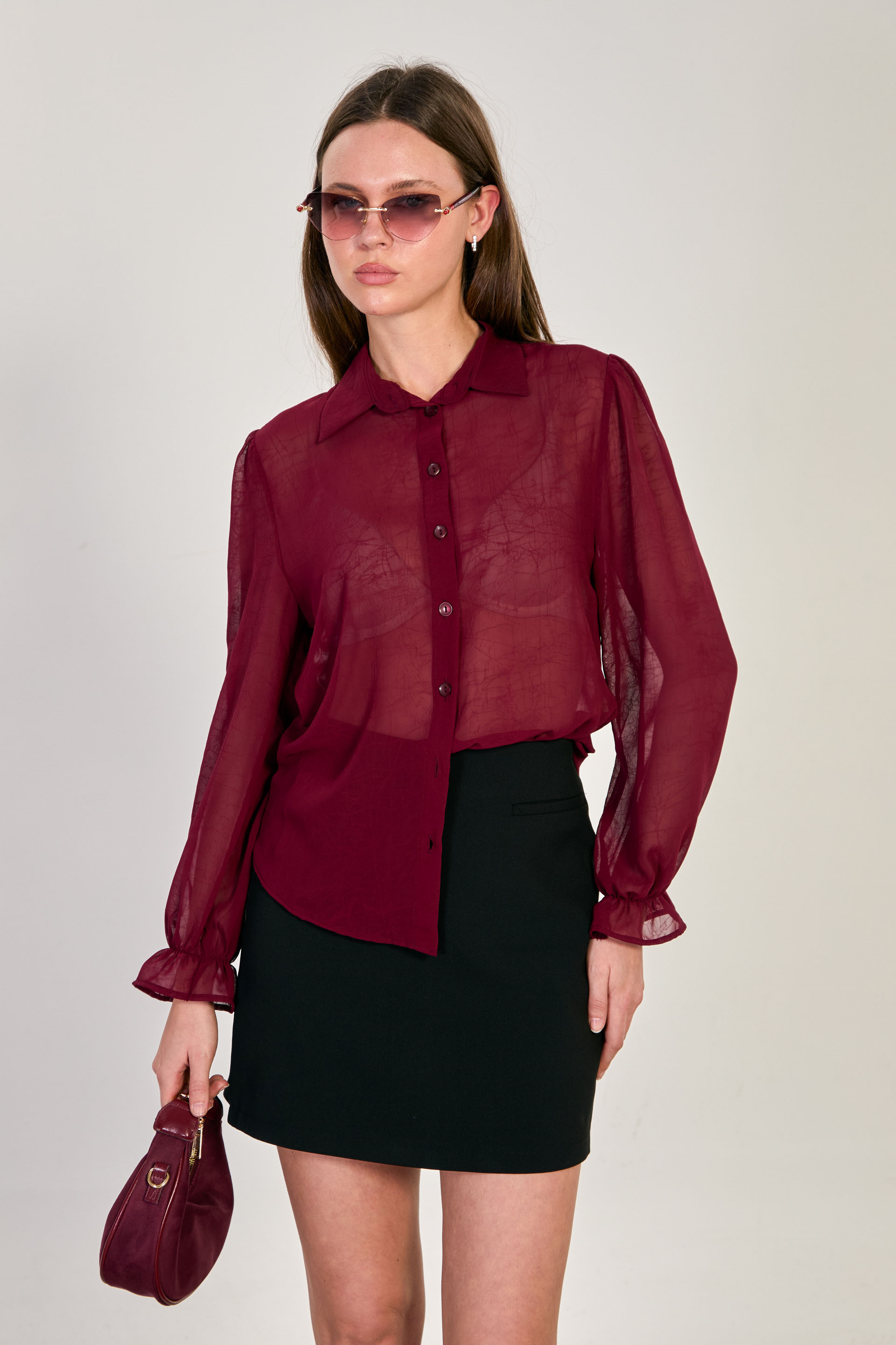 Kadın Dokulu Uzun Kollu Gömlek - Bordo