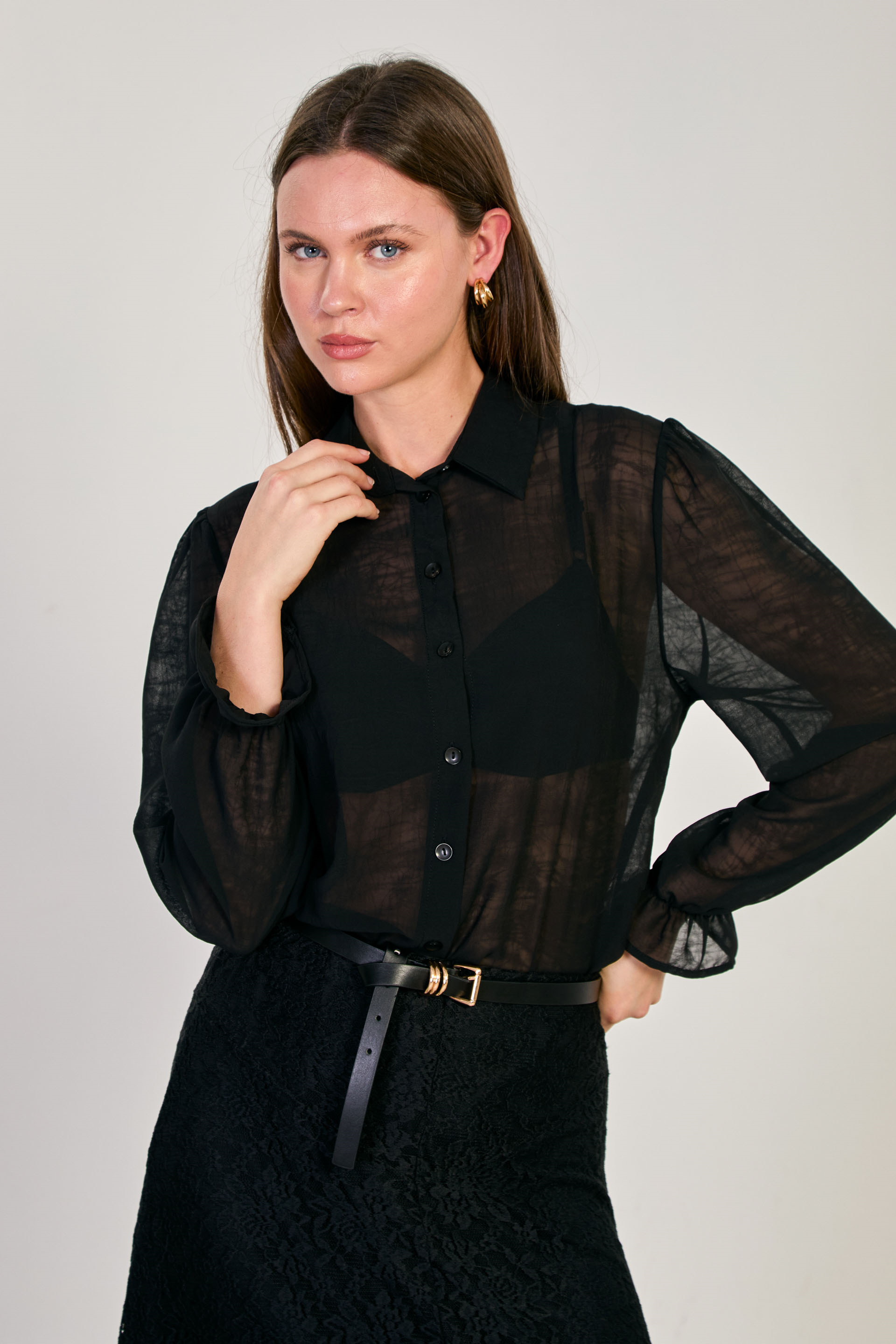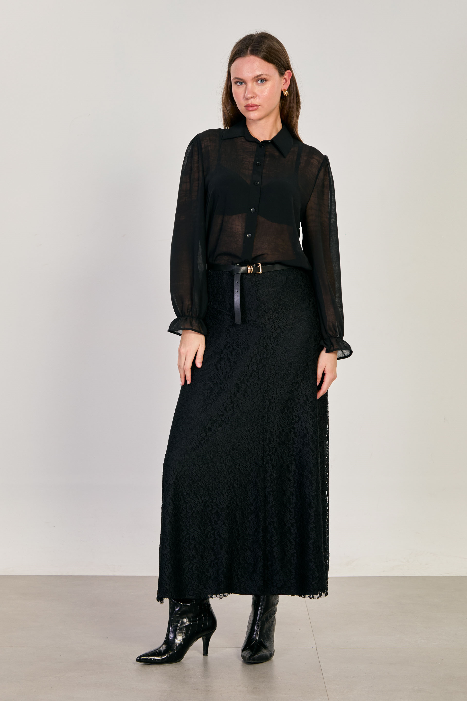 Kadın Dokulu Uzun Kollu Gömlek - Siyah