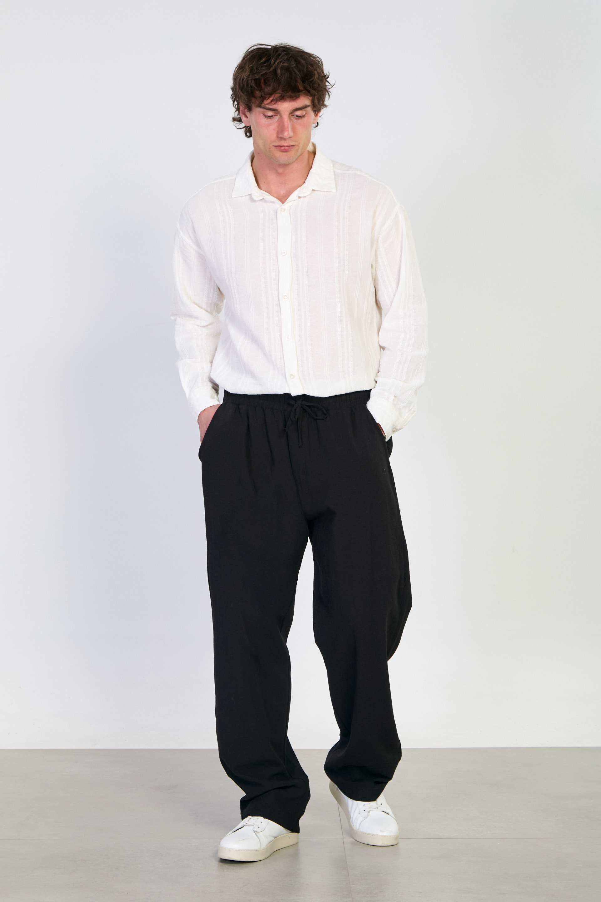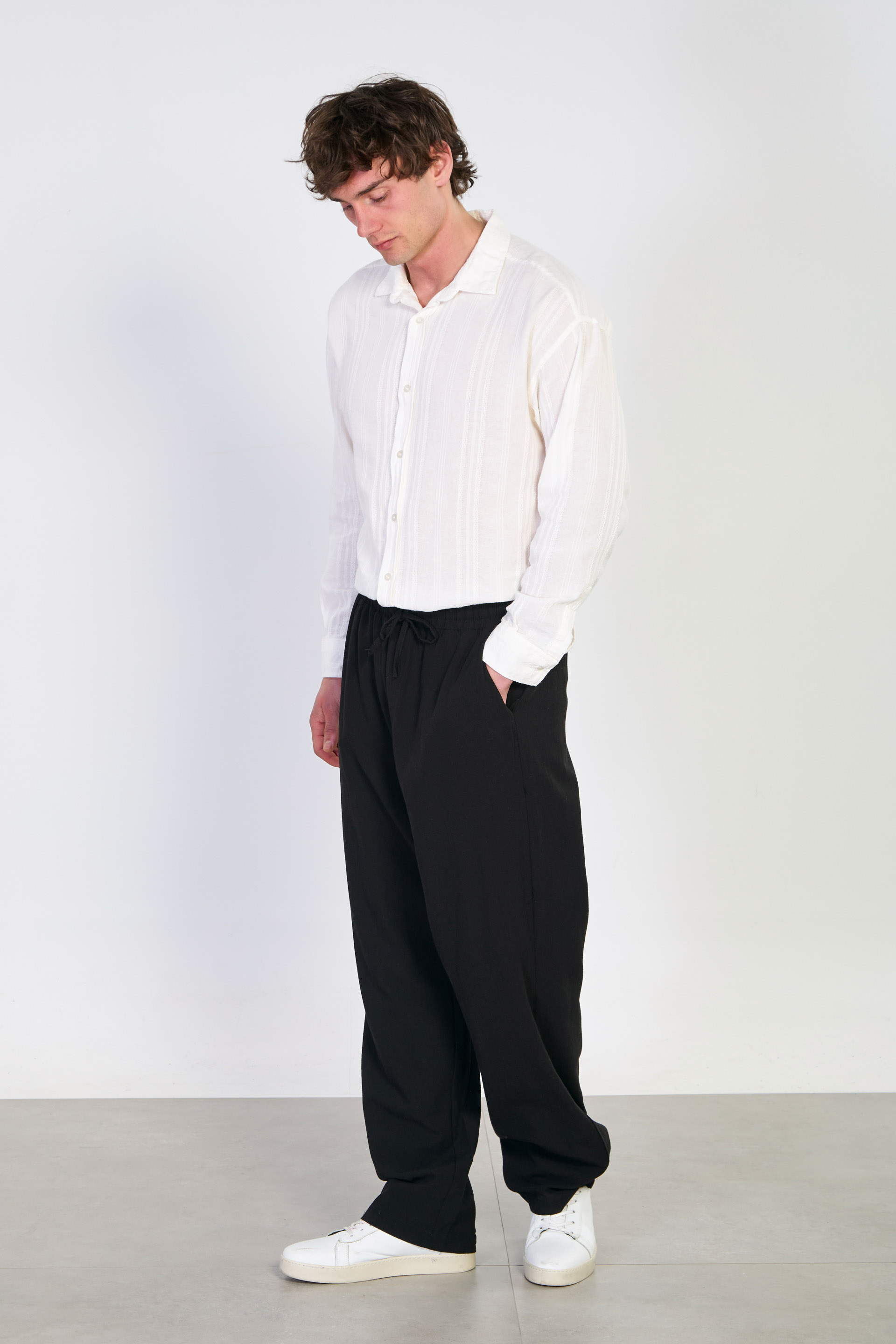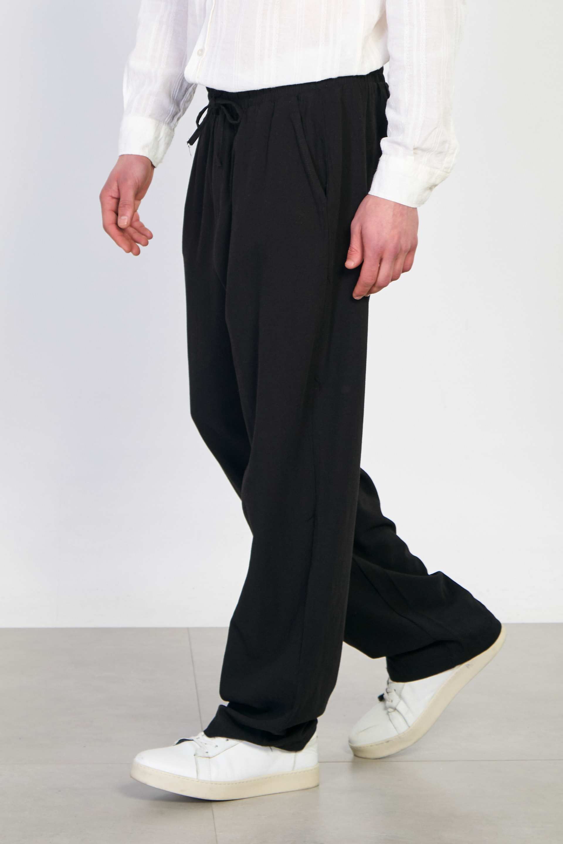 Erkek Dökümlü Pantolon - Siyah
