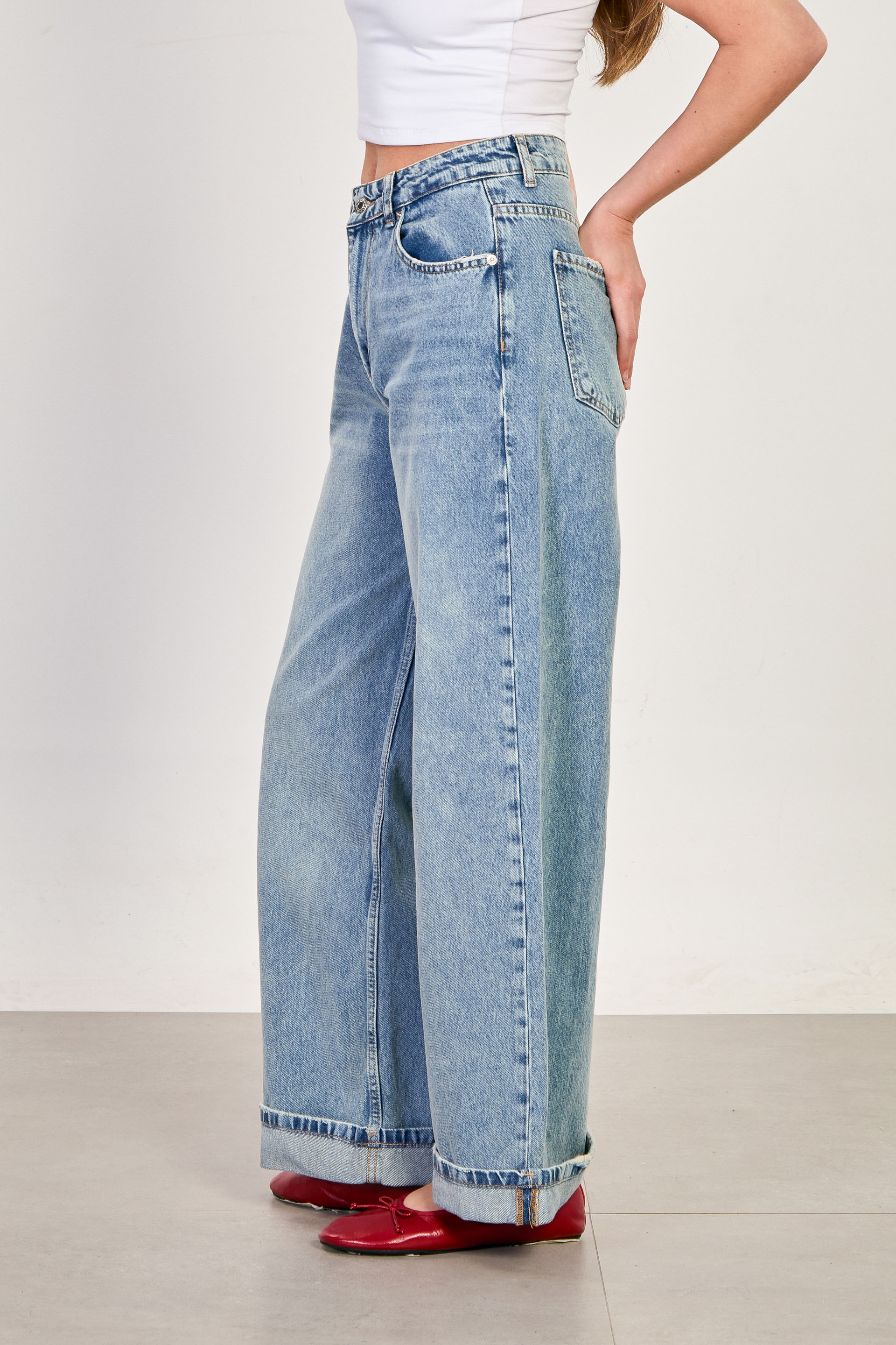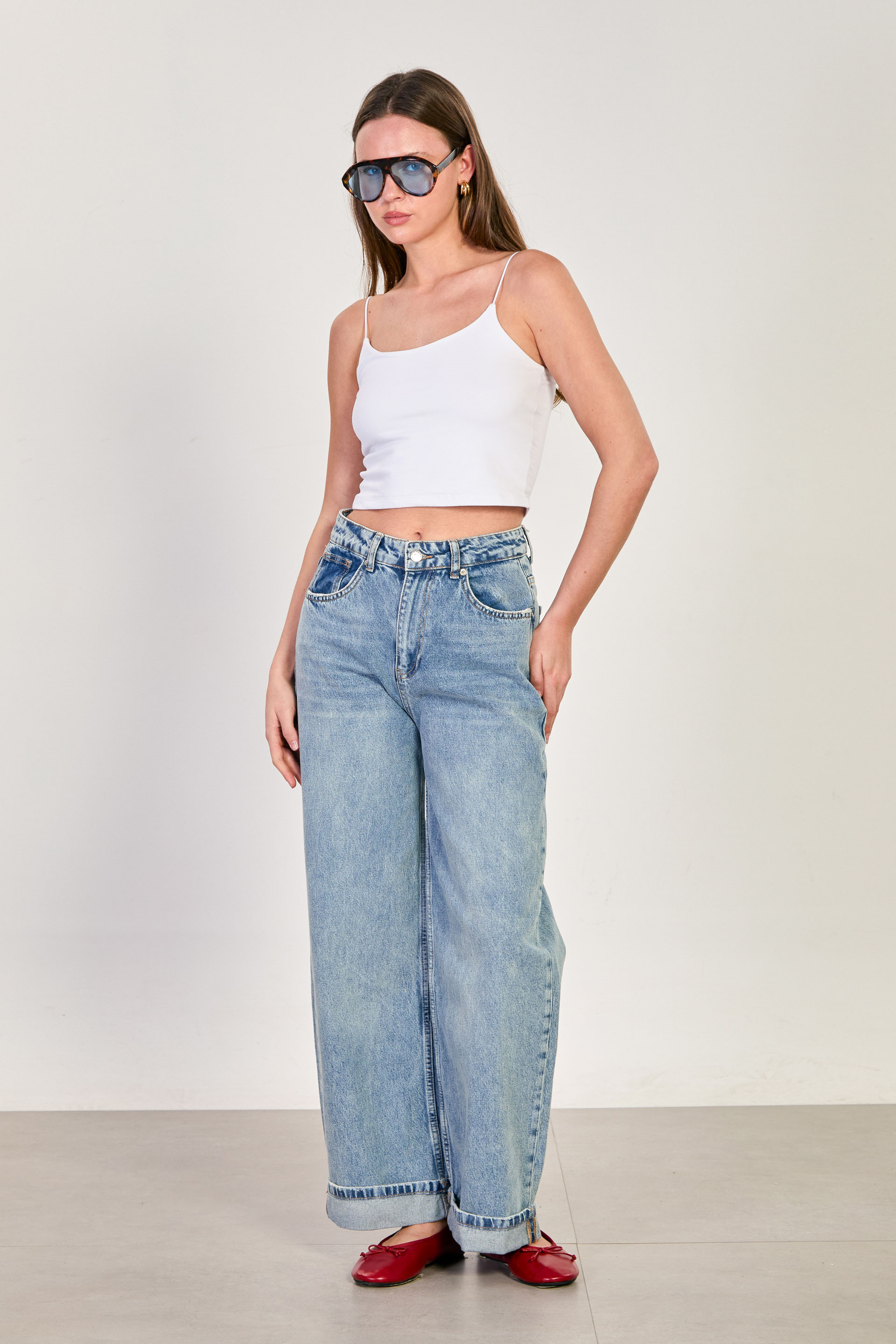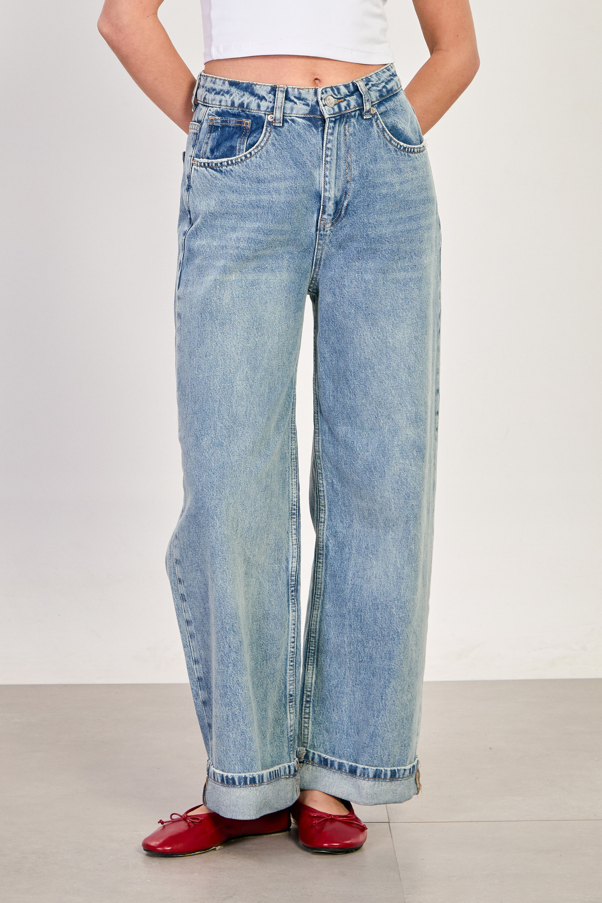 Kadın Double Paça Palazzo Jean Pantolon - Açık Mavi