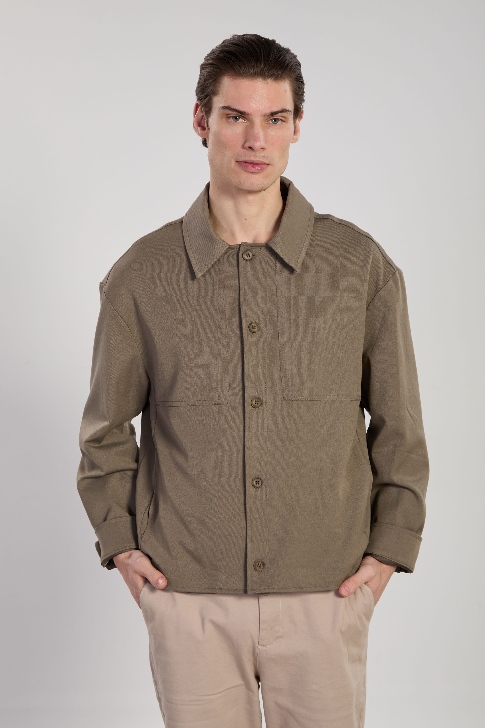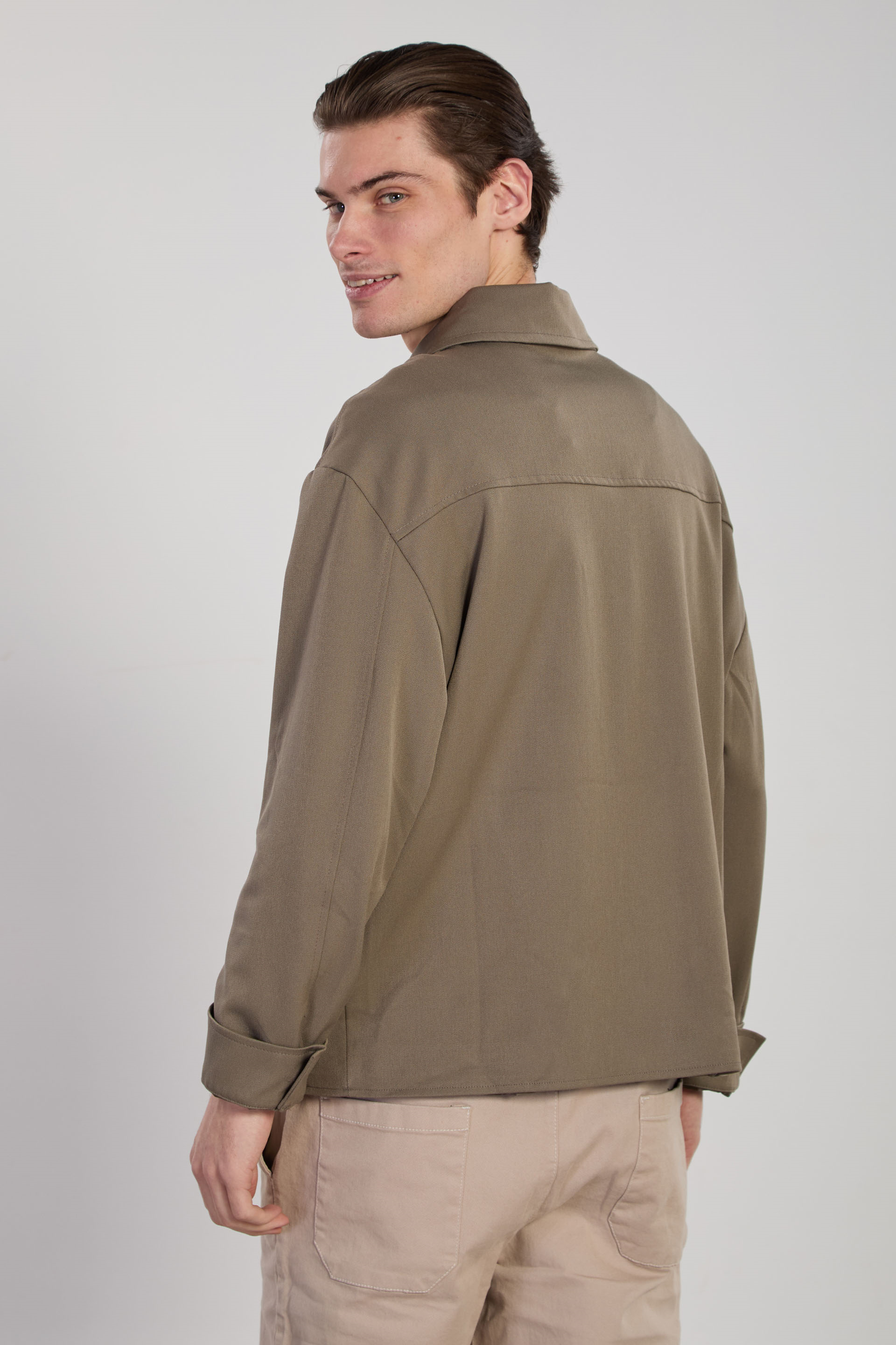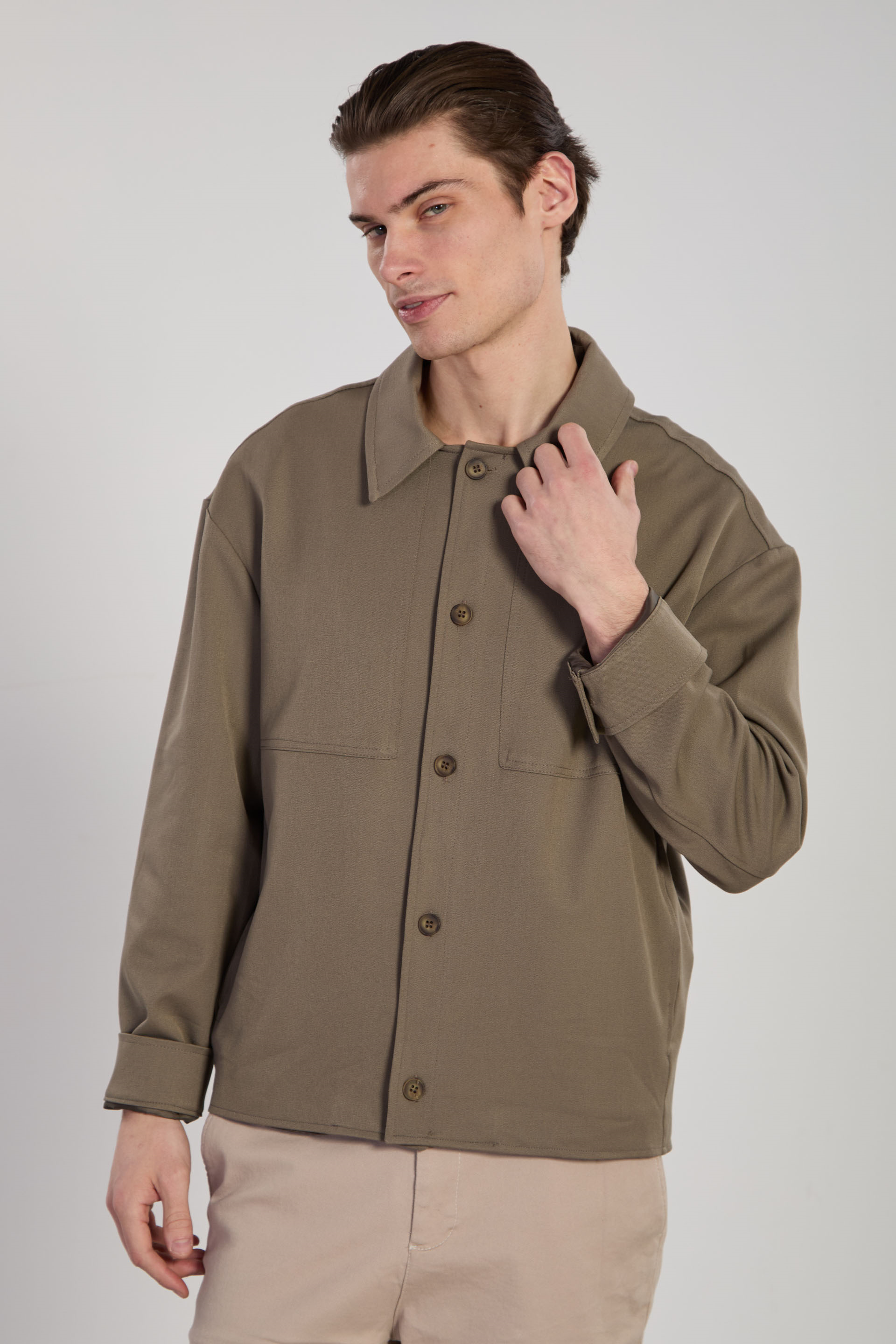 Erkek Düğmeli Gömlek Ceket - Haki
