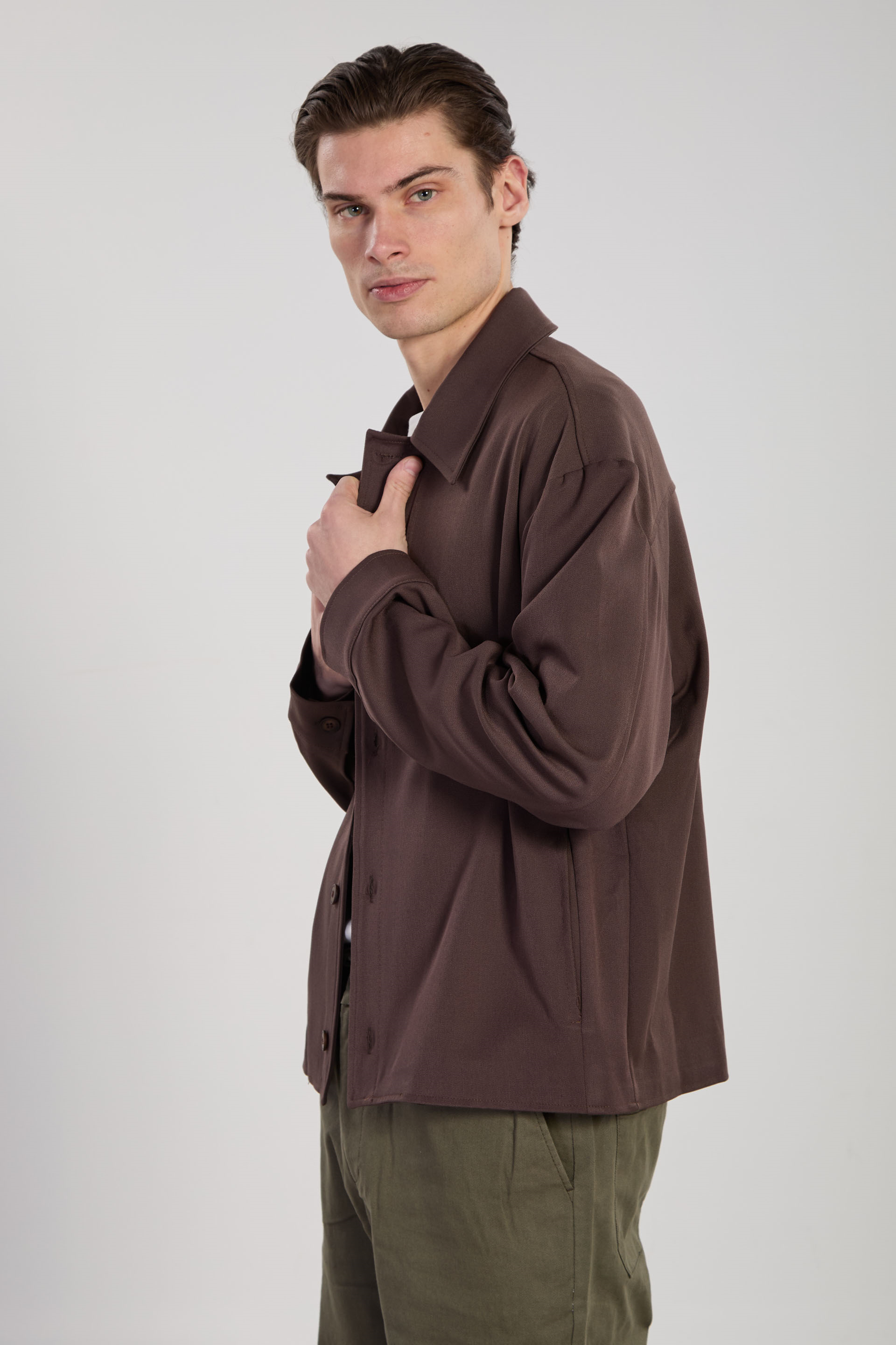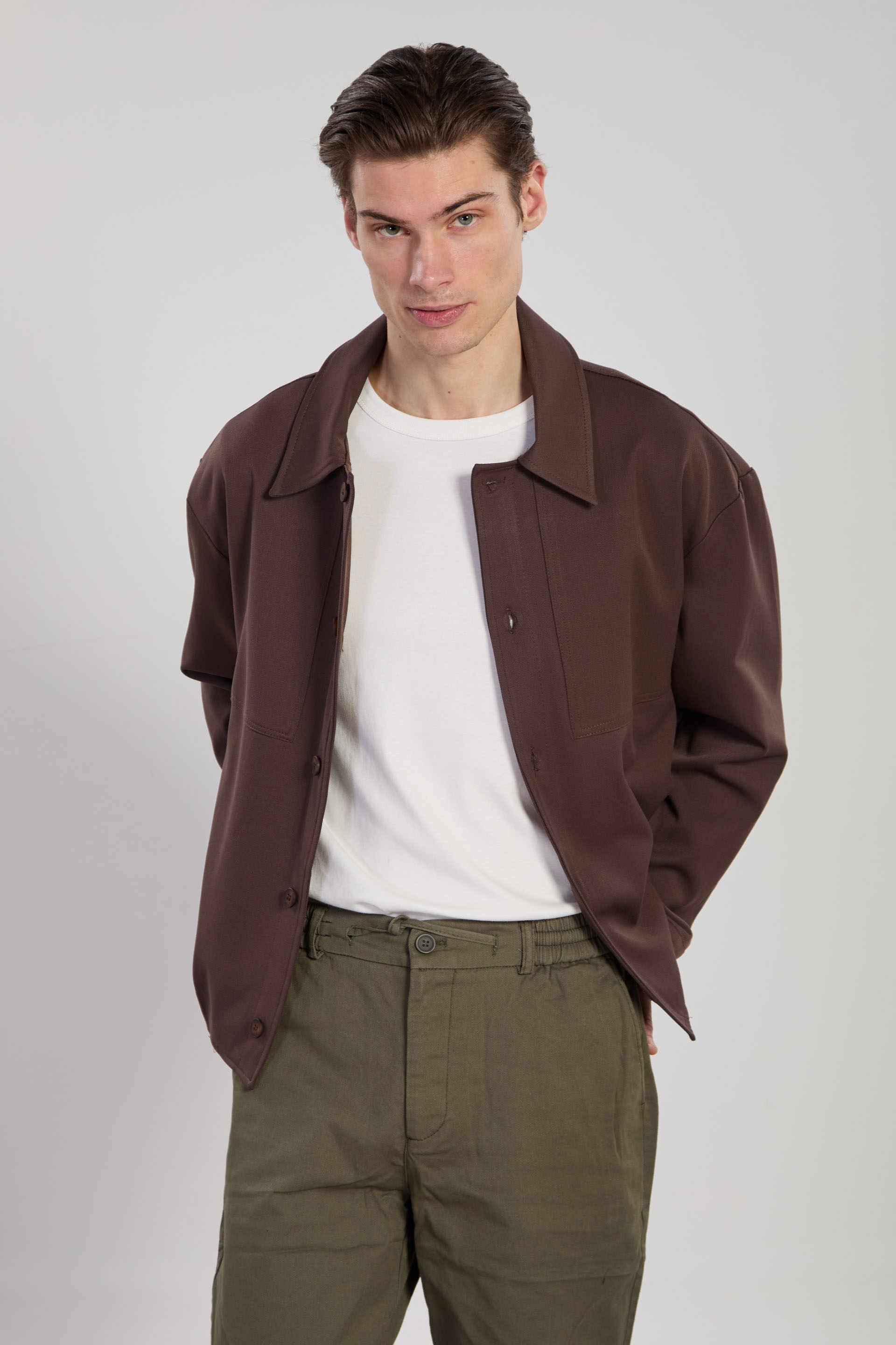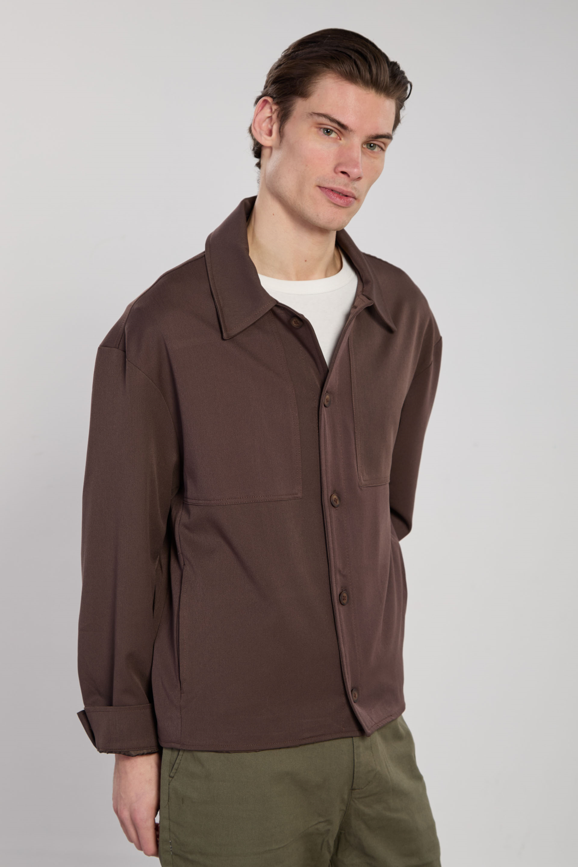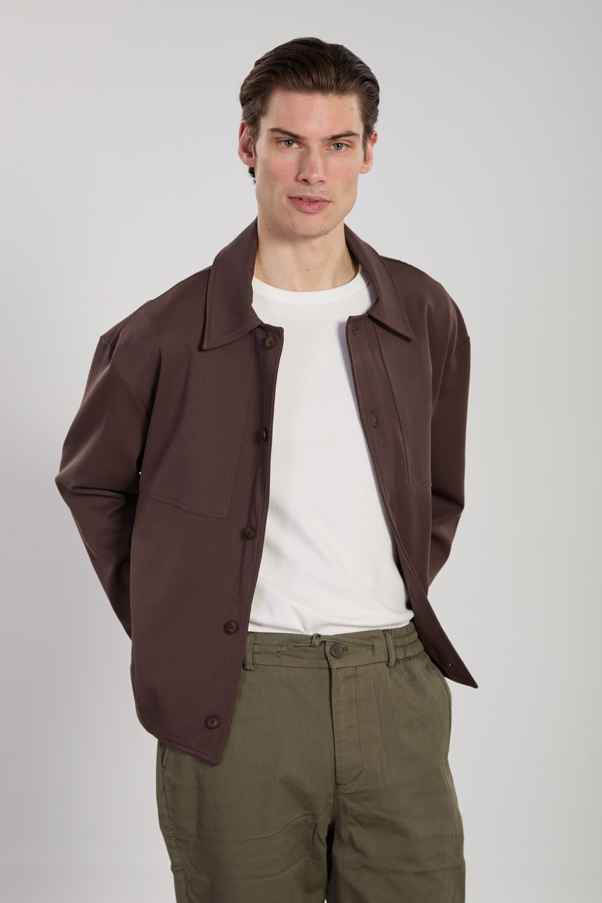 Erkek Düğmeli Gömlek Ceket - Kahve