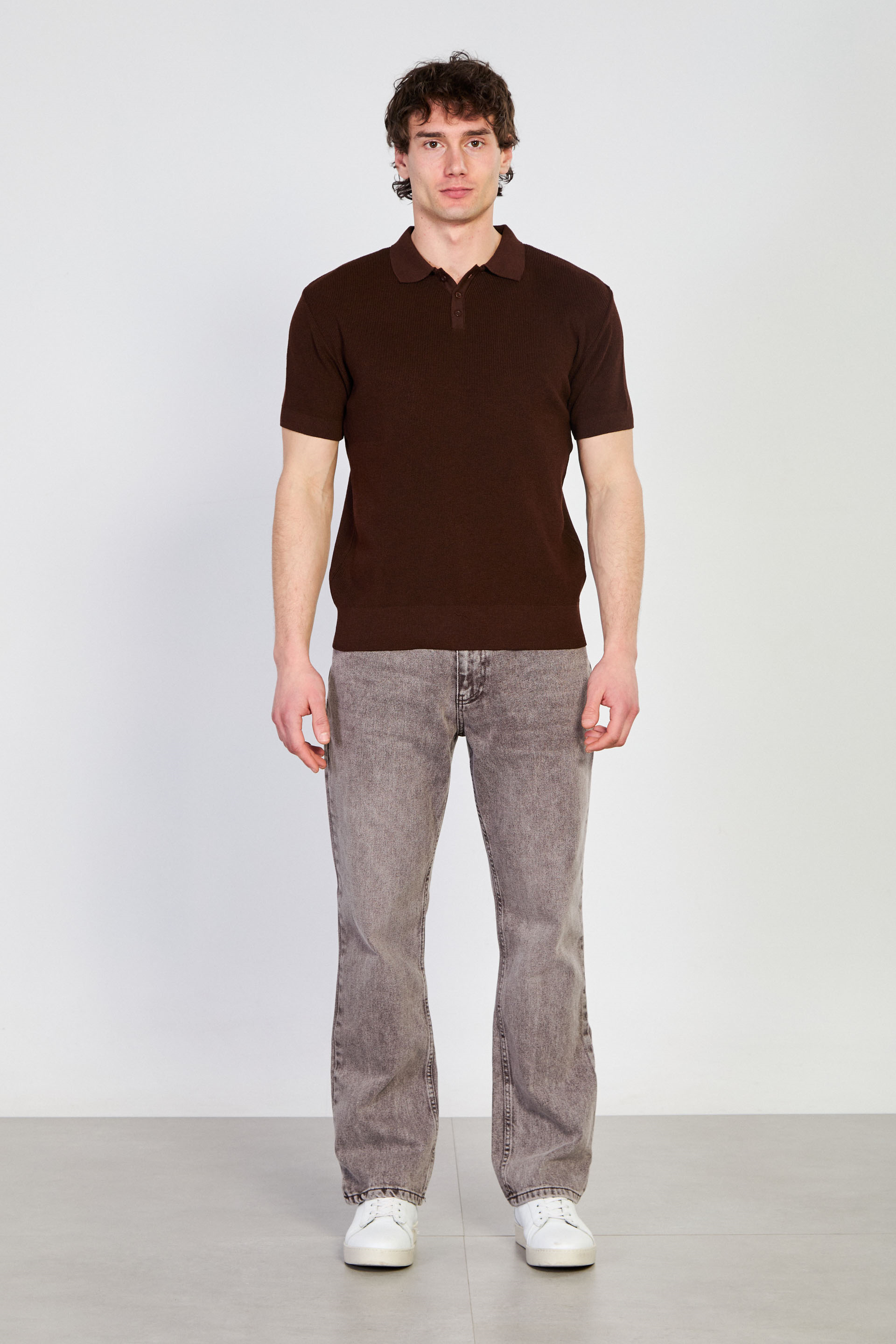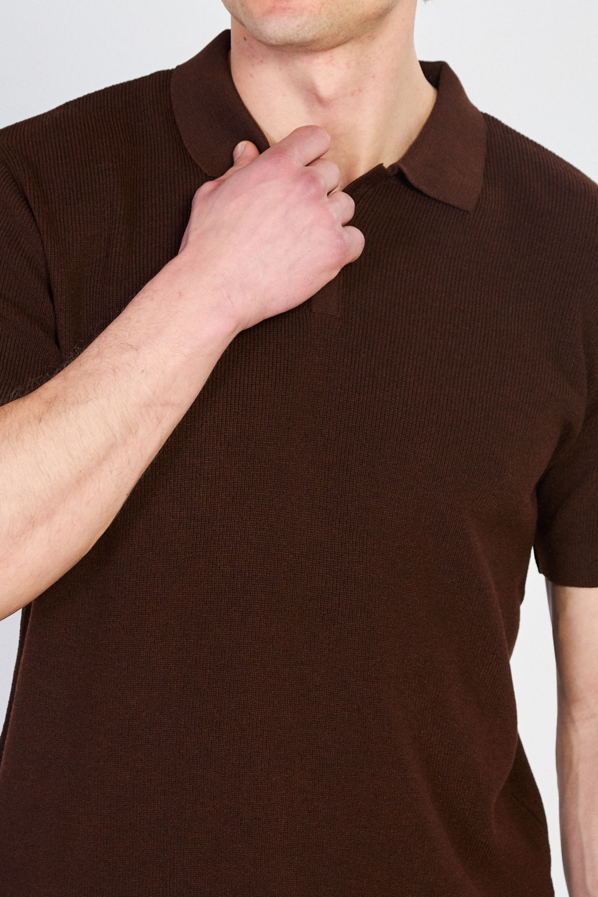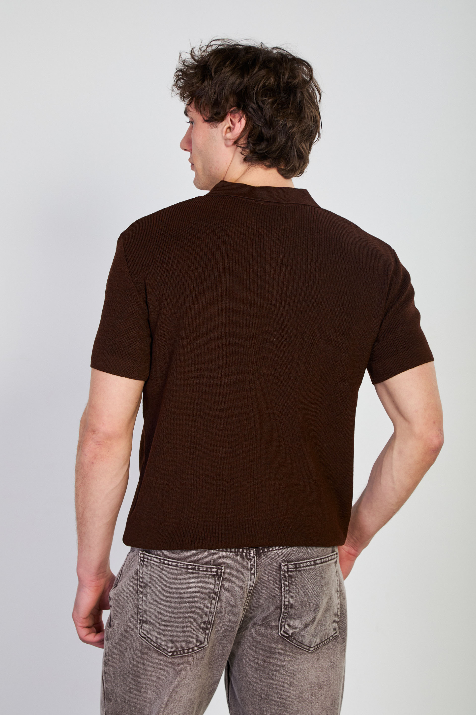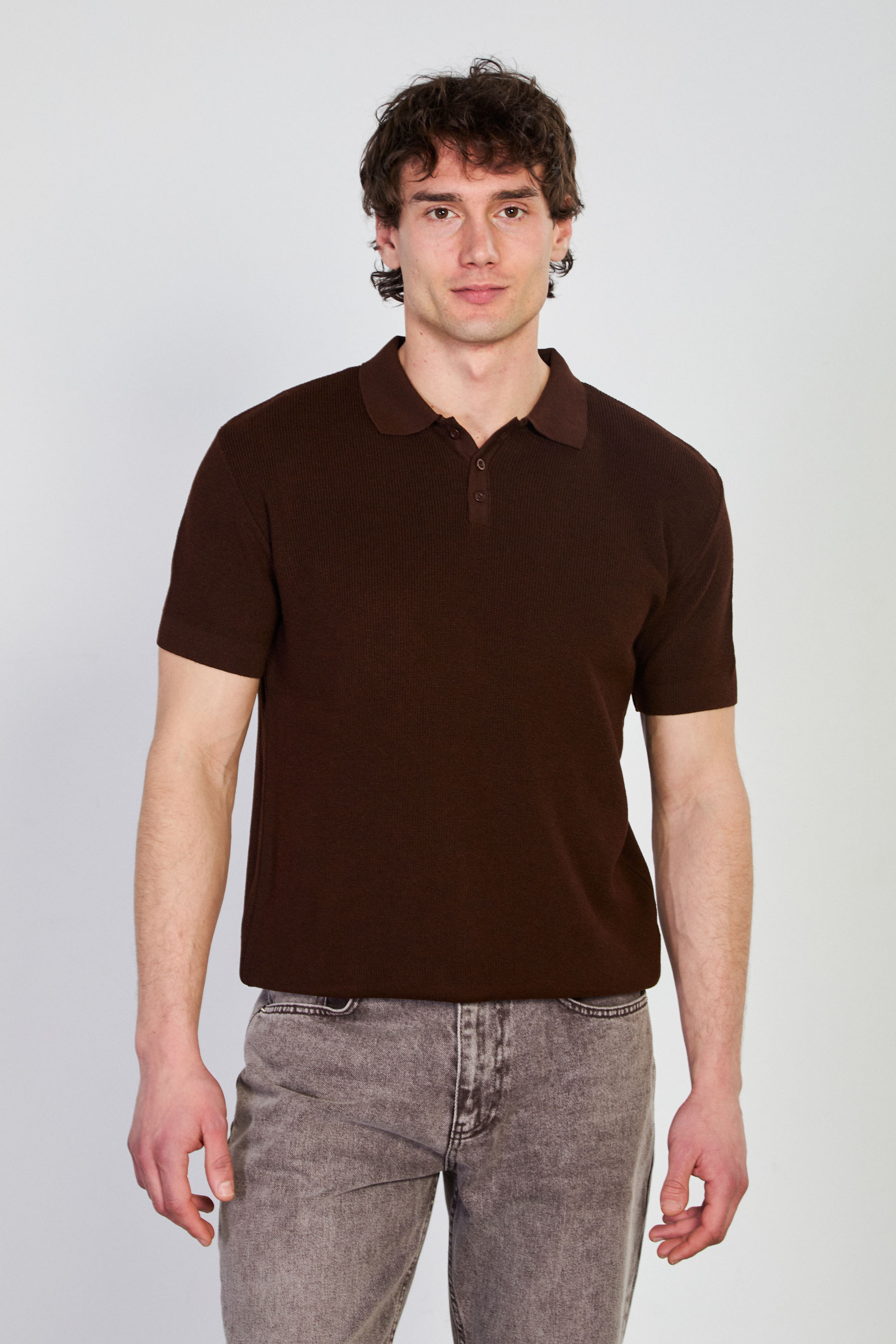 Erkek Düğmeli Polo Yaka Triko T-Shirt - Kahve