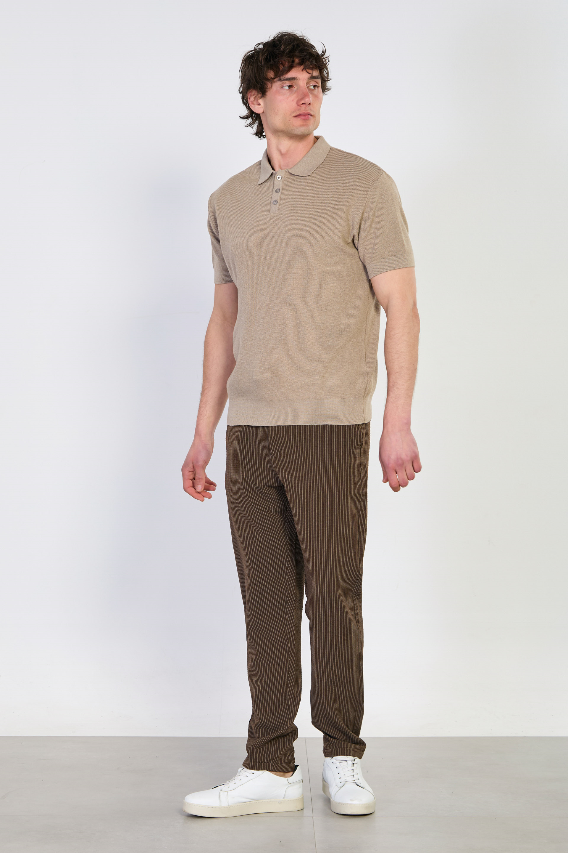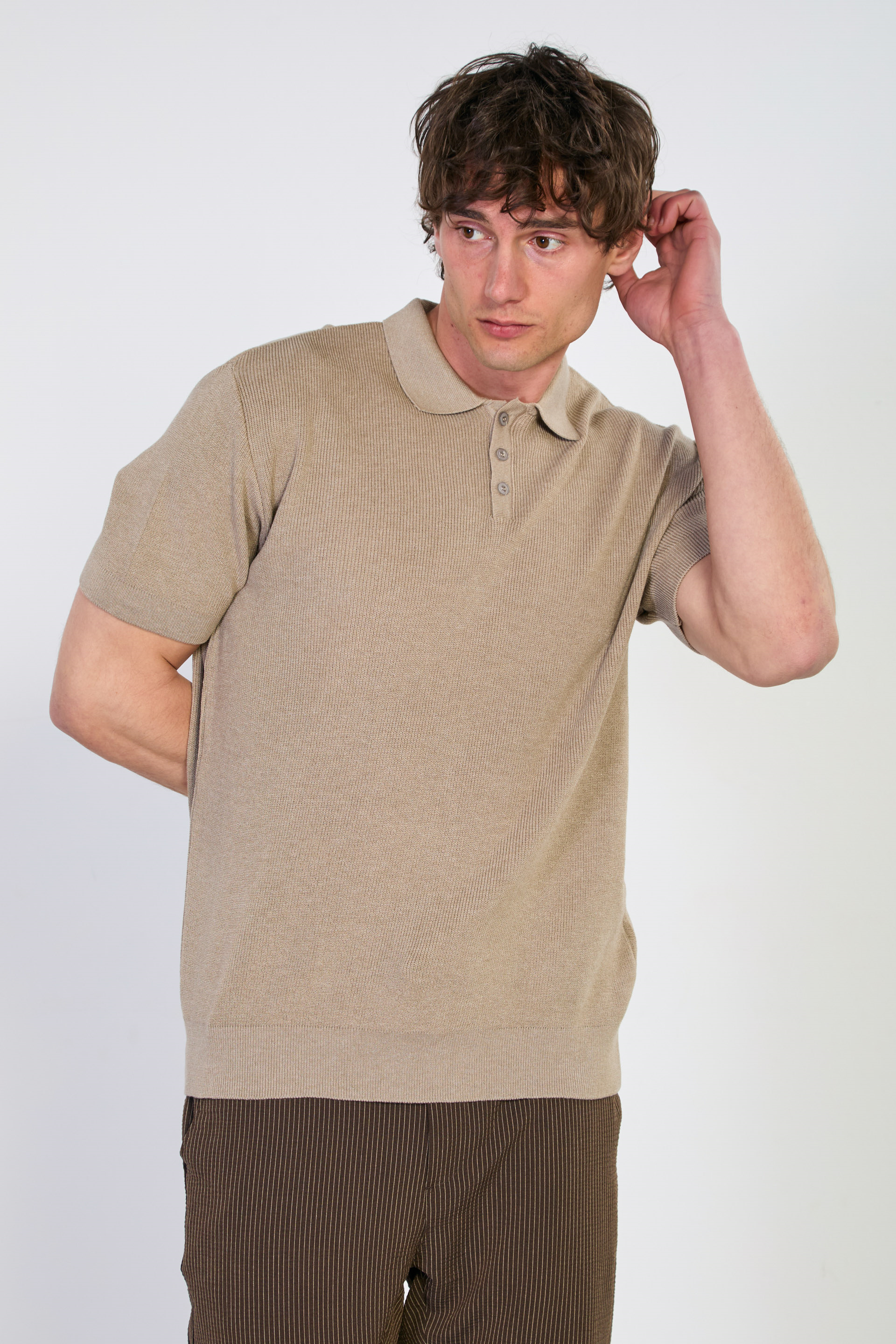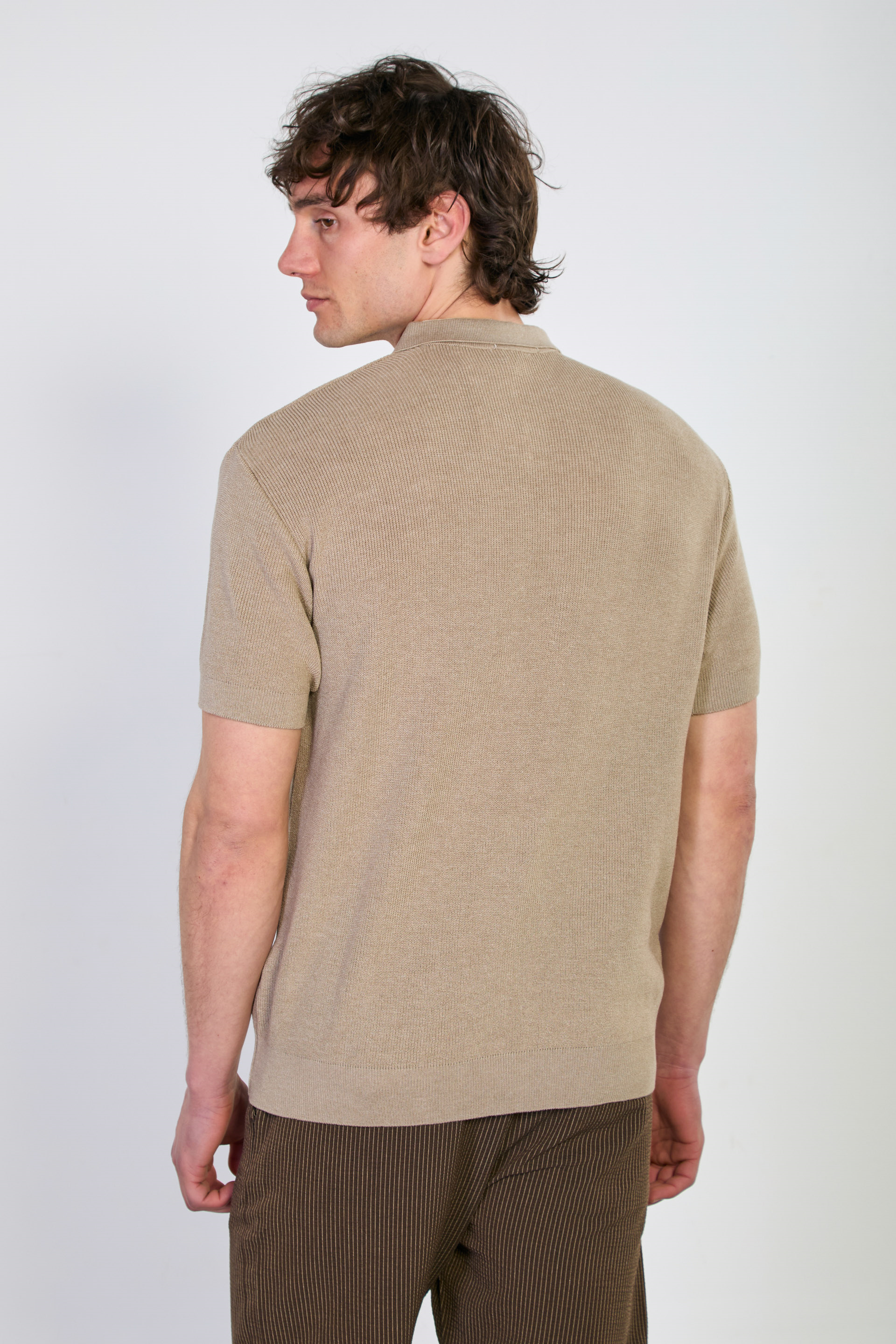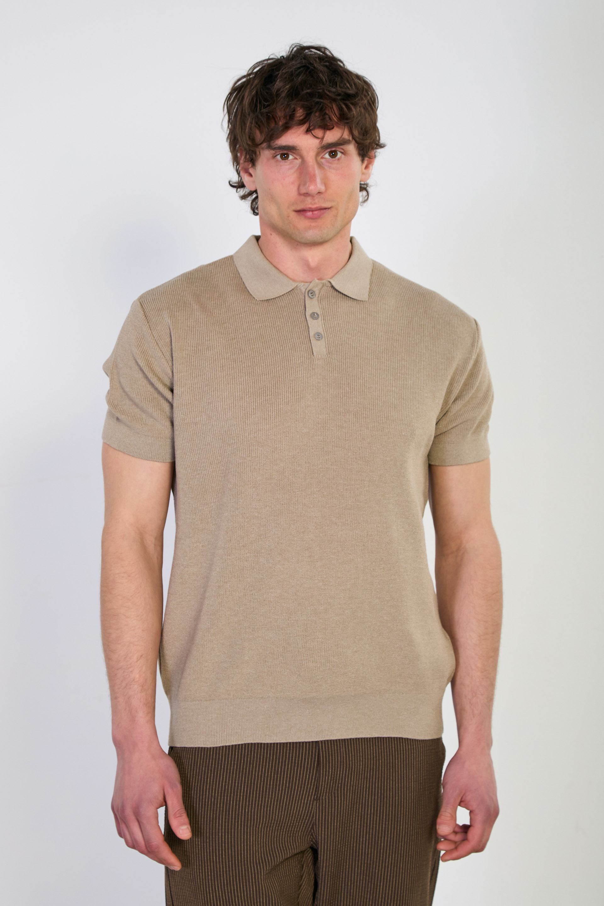 Erkek Düğmeli Polo Yaka Triko T-Shirt - Vizon
