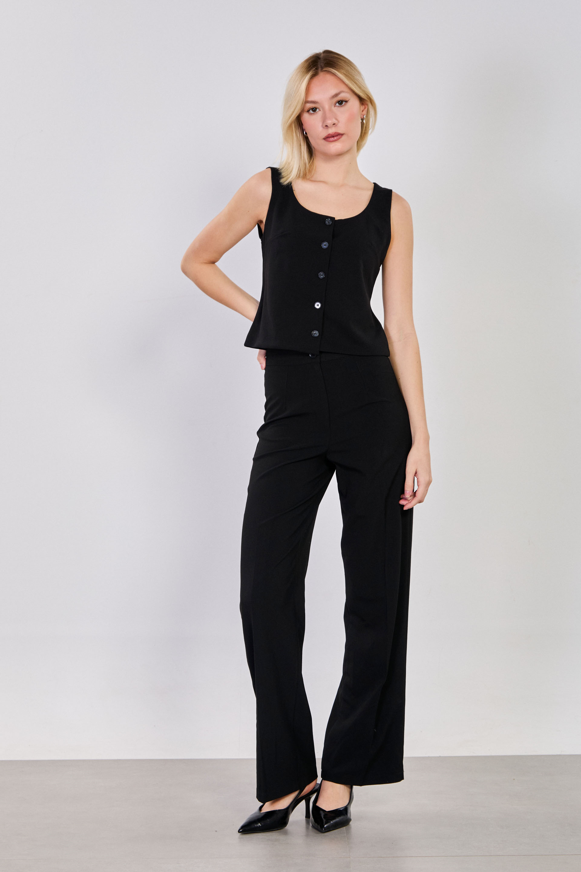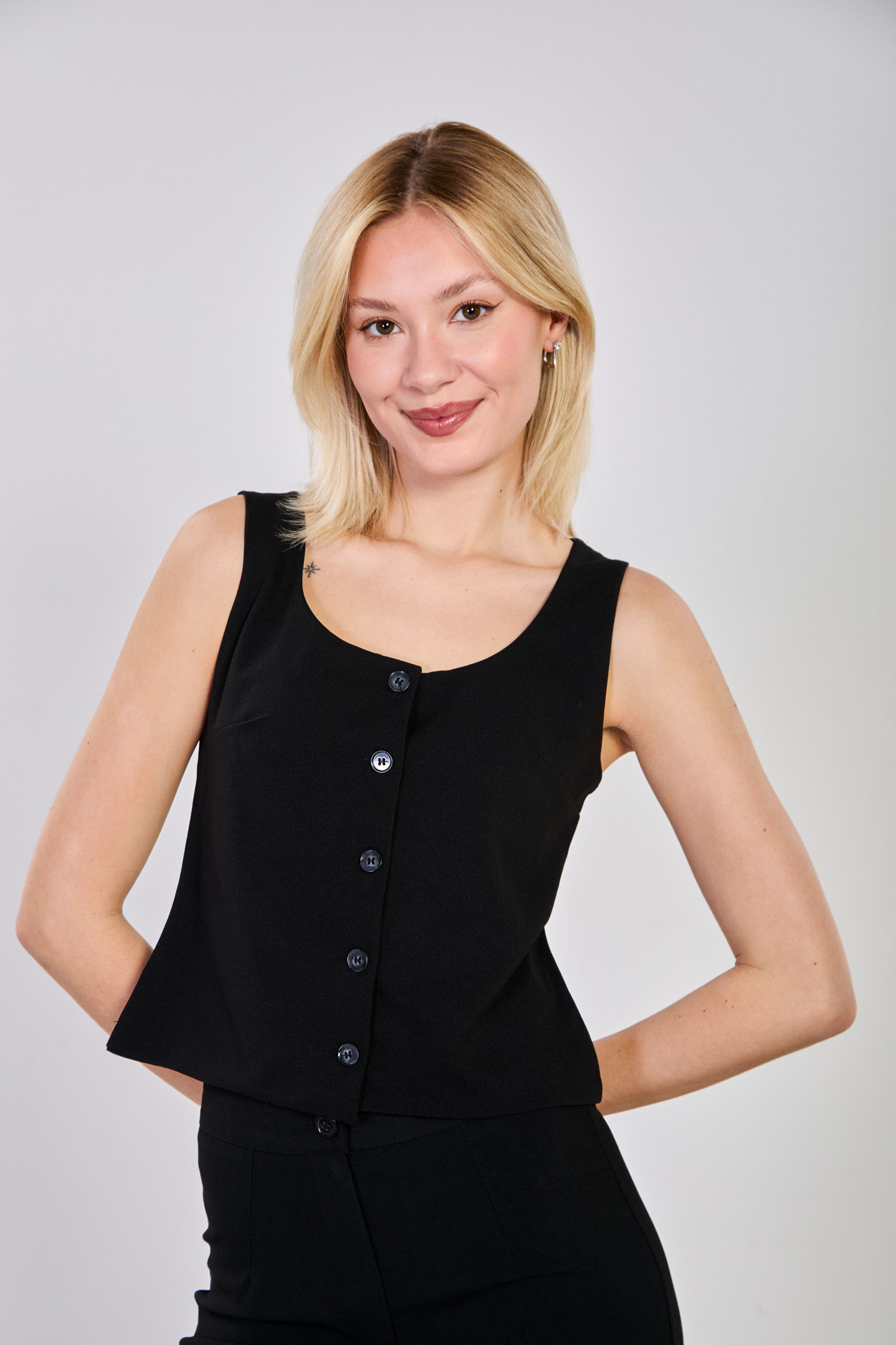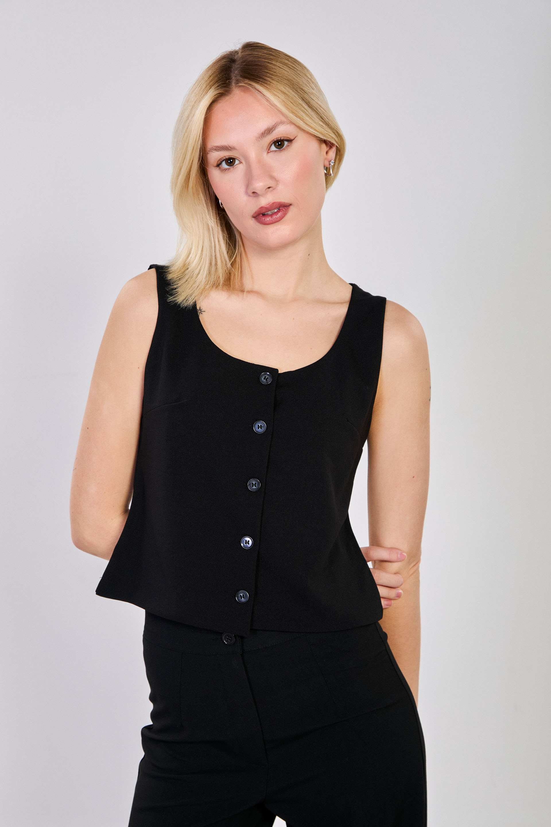 Kadın Düğmeli U Yaka Yelek - Siyah