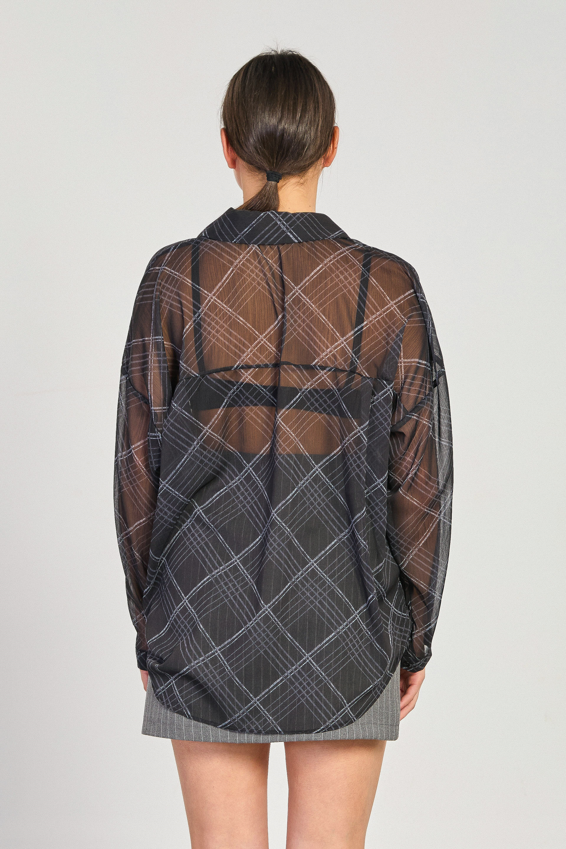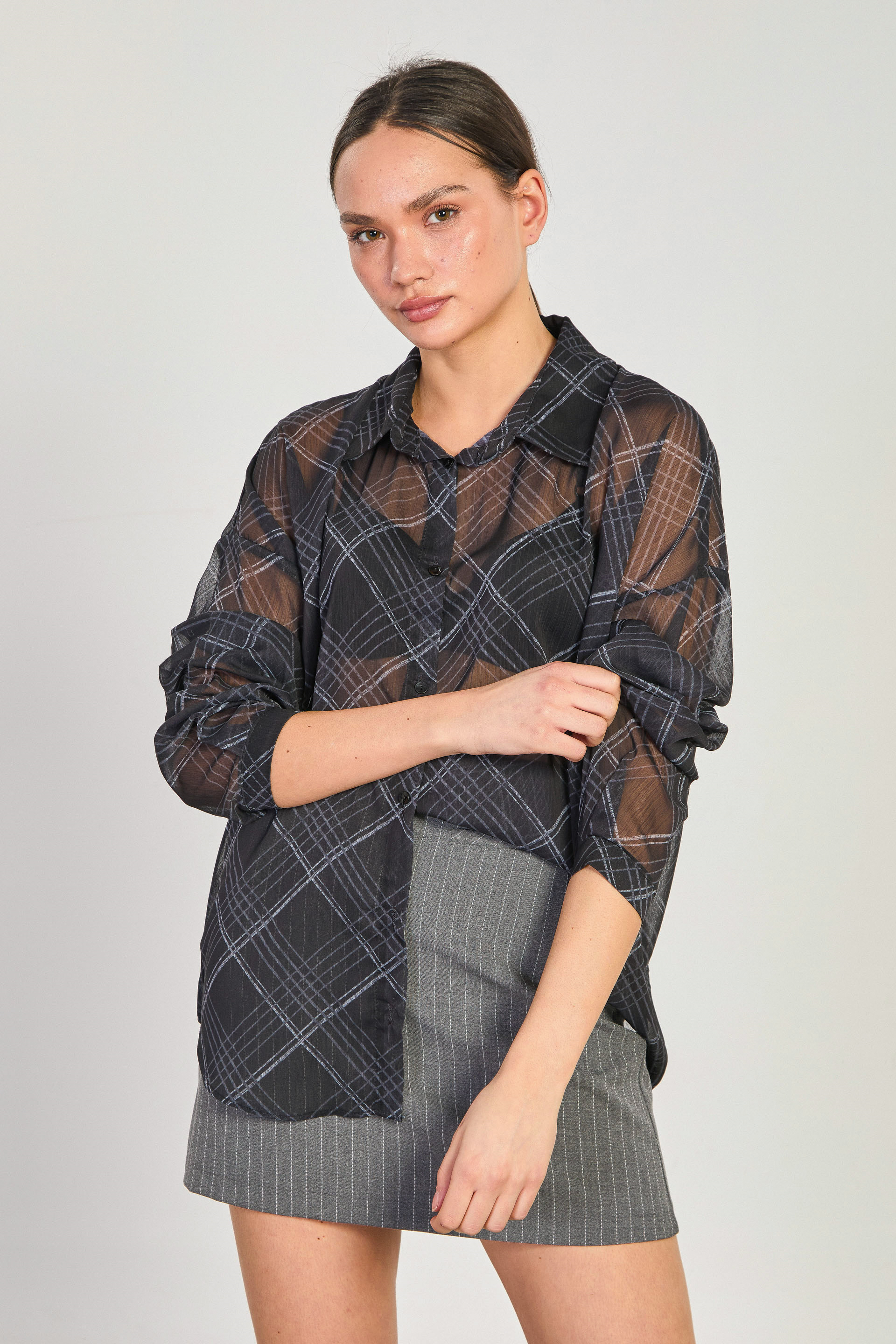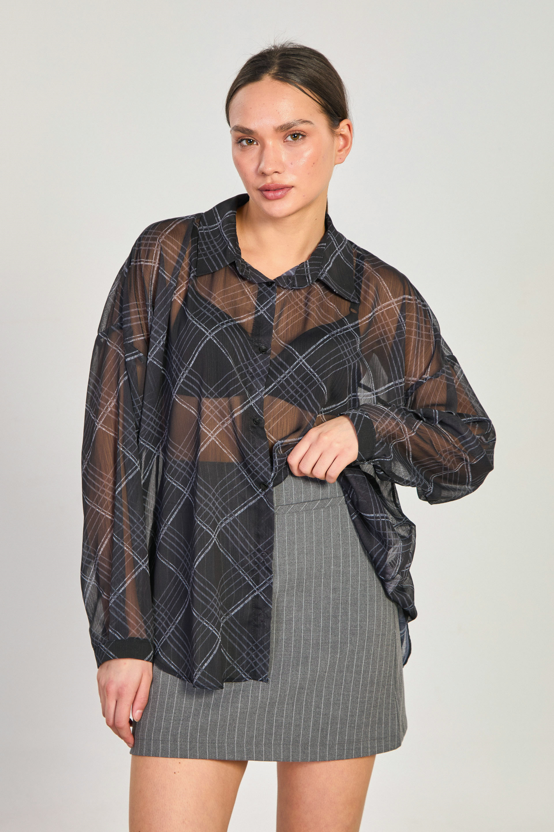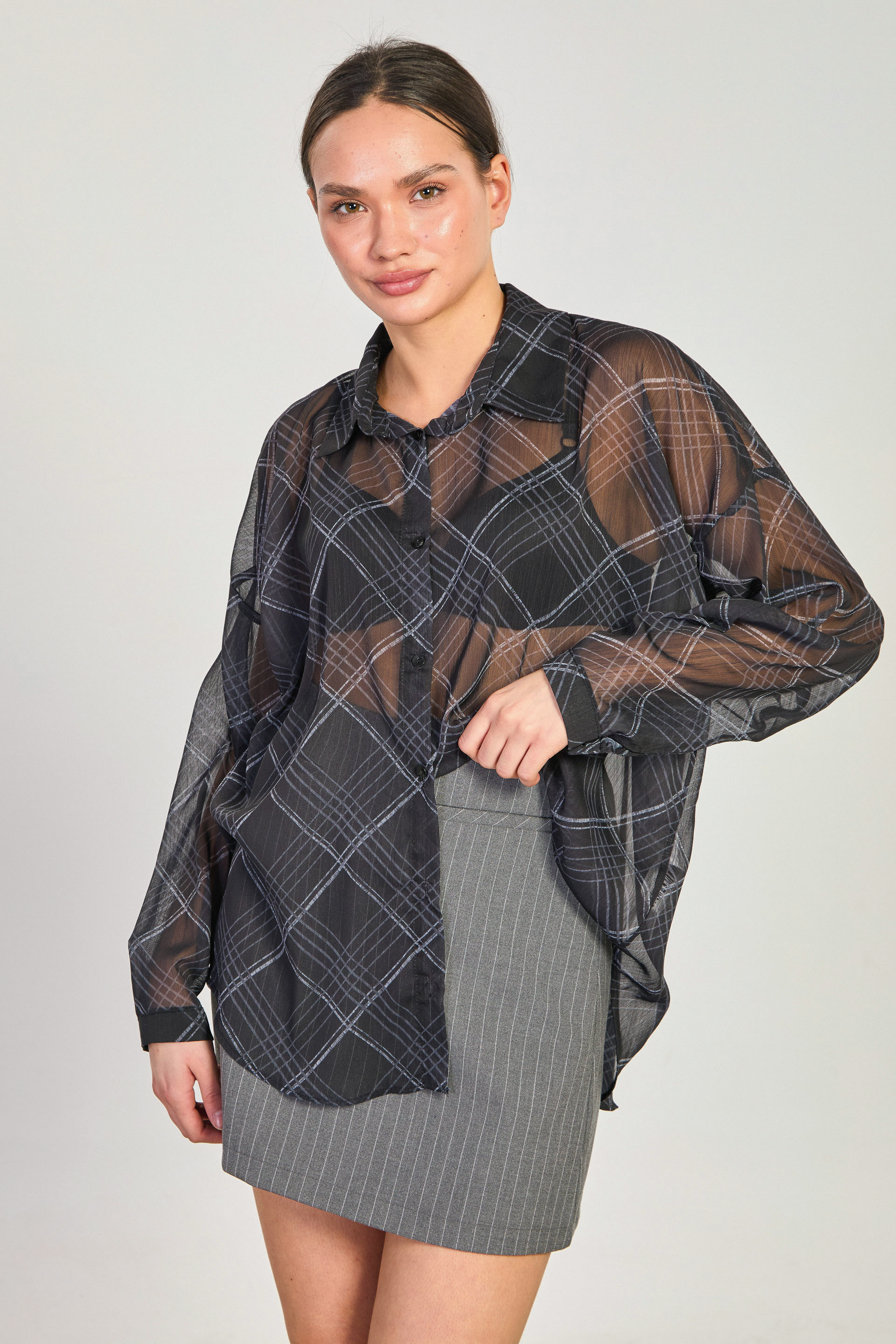 Kadın Ekose Desen Şifon Gömlek - Siyah