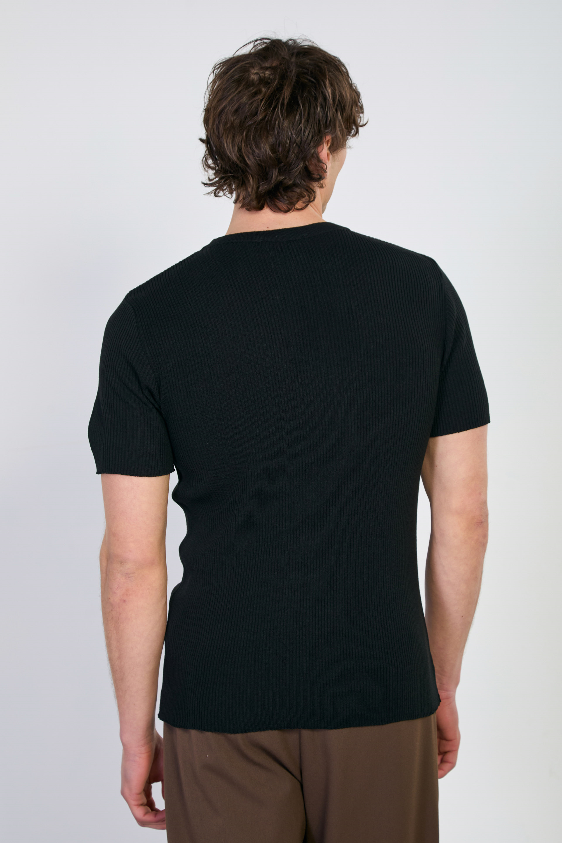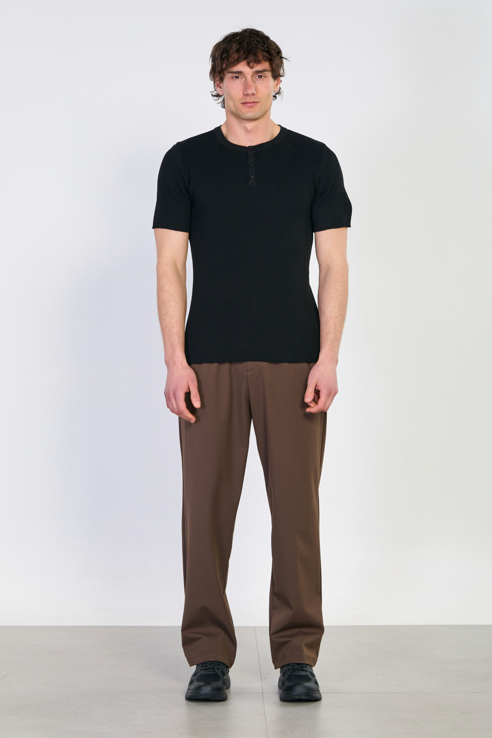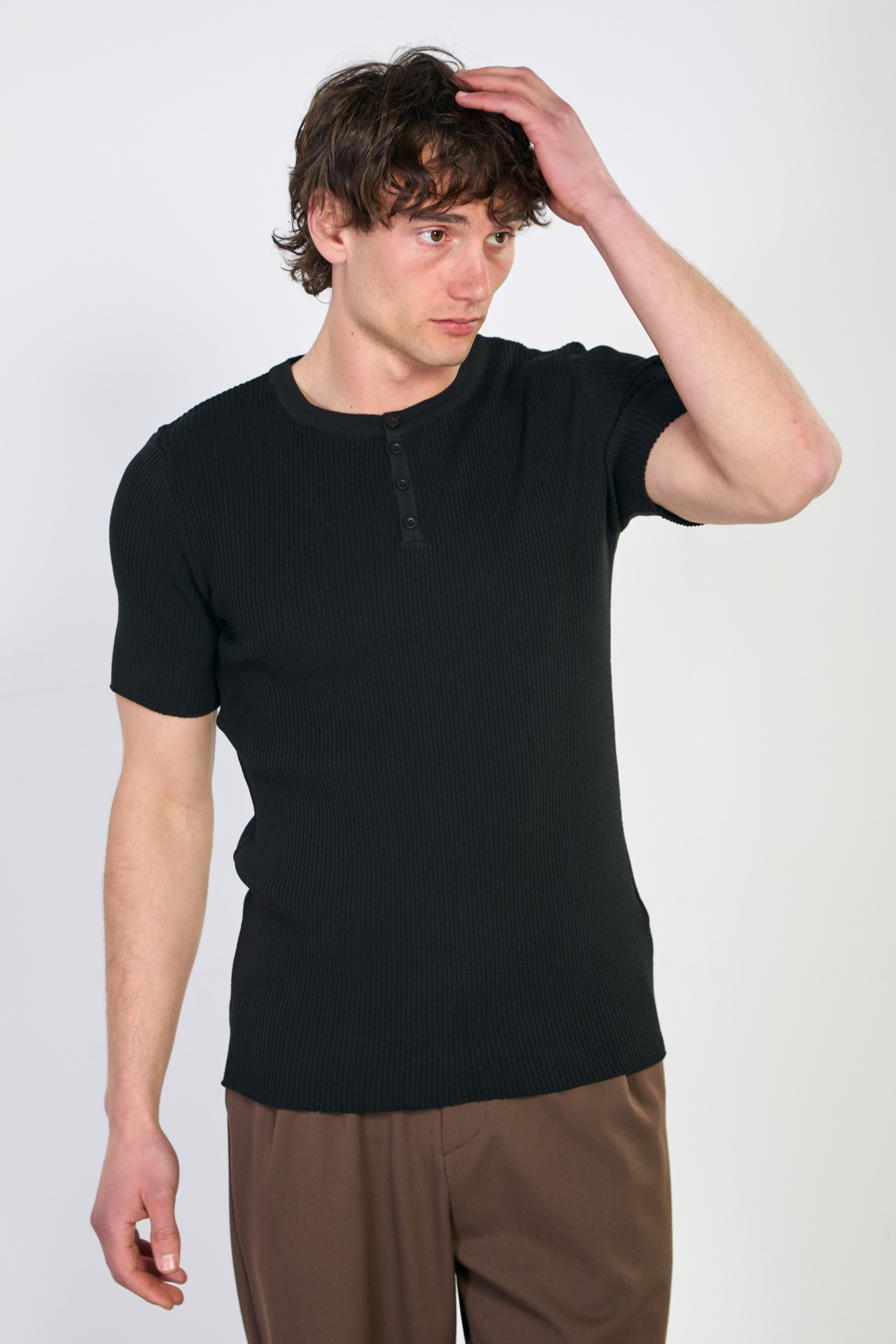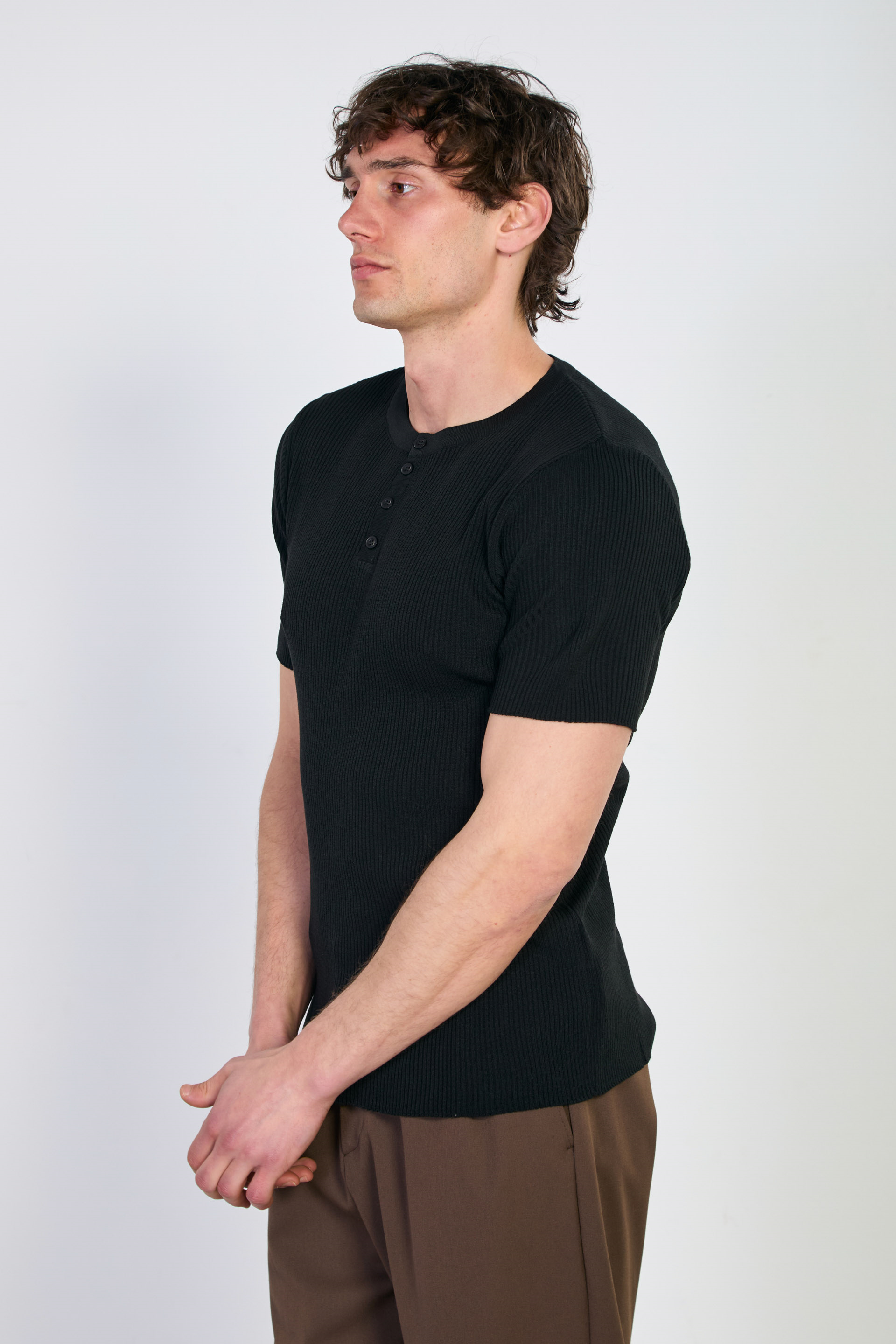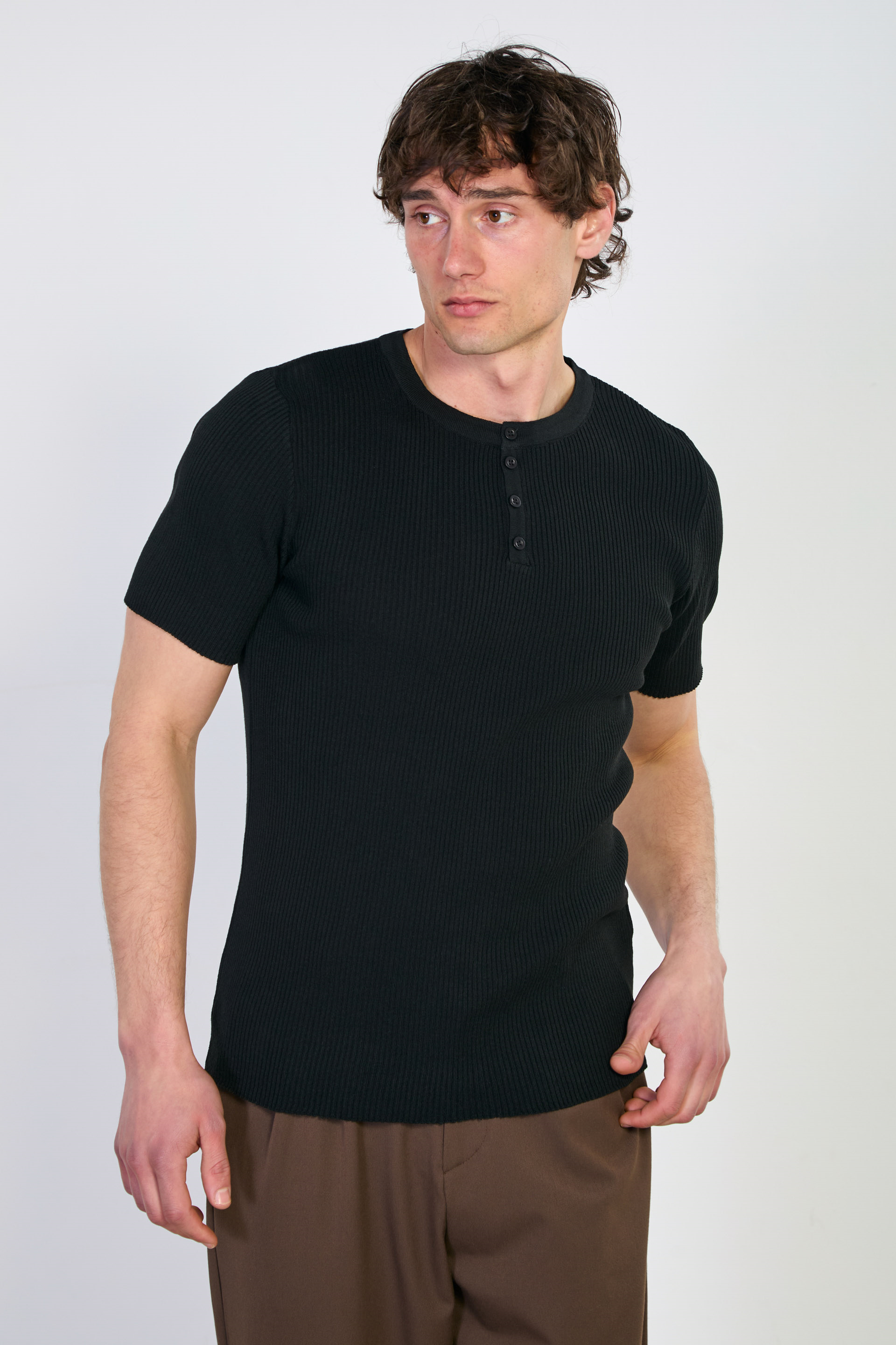 Erkek Düğmeli Kaşkorse Triko T-Shirt - Siyah