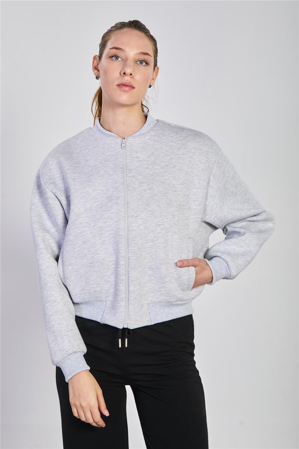 Kadın Fermuarlı Bomber Ceket - Kar Melanj