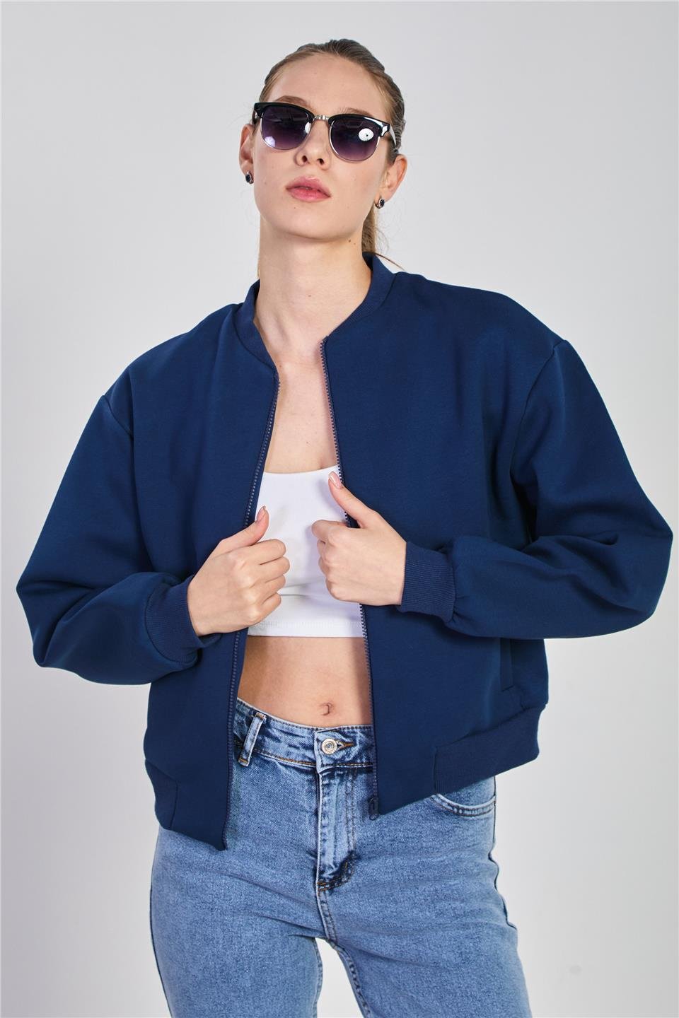 Kadın Fermuarlı Bomber Ceket - Lacivert