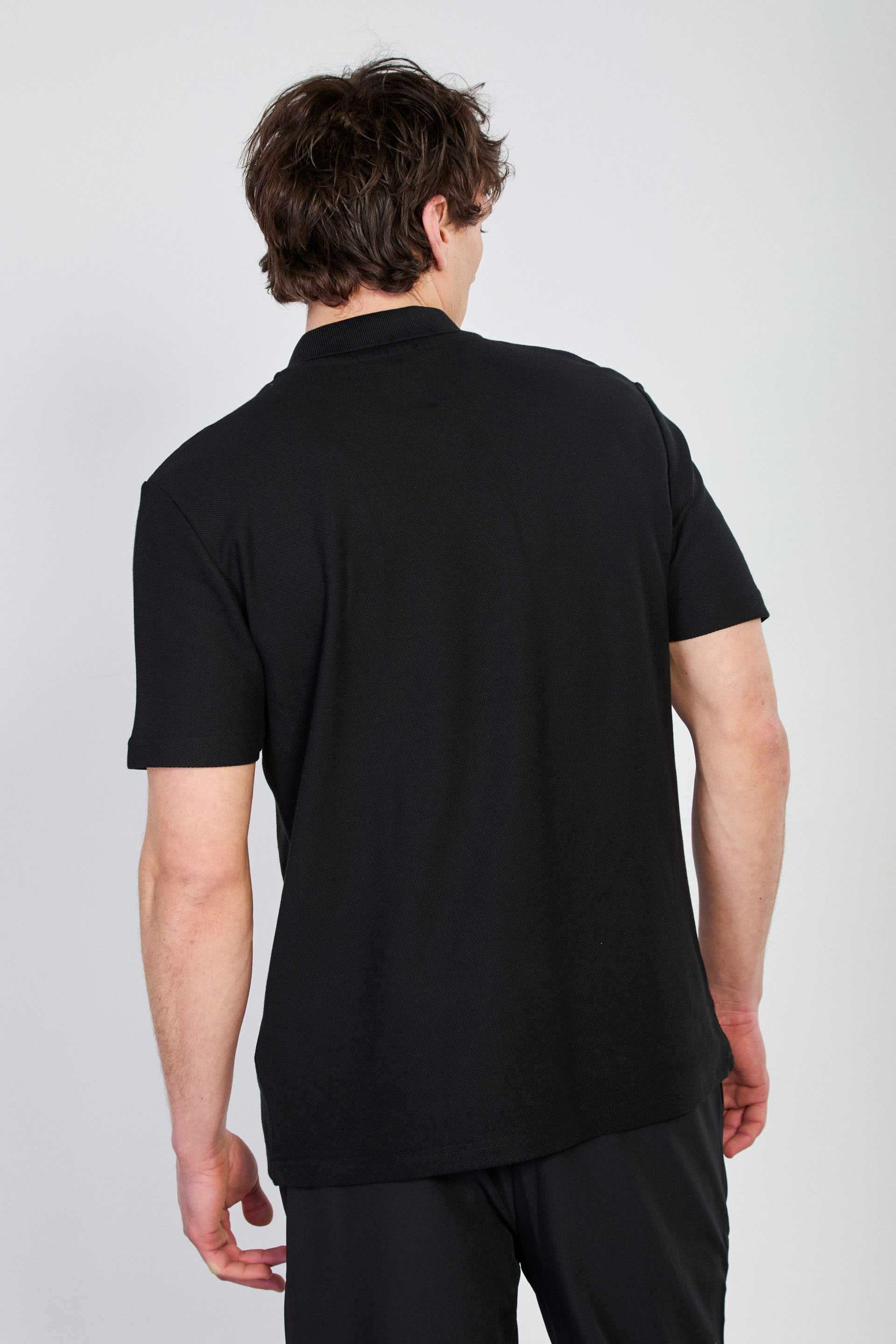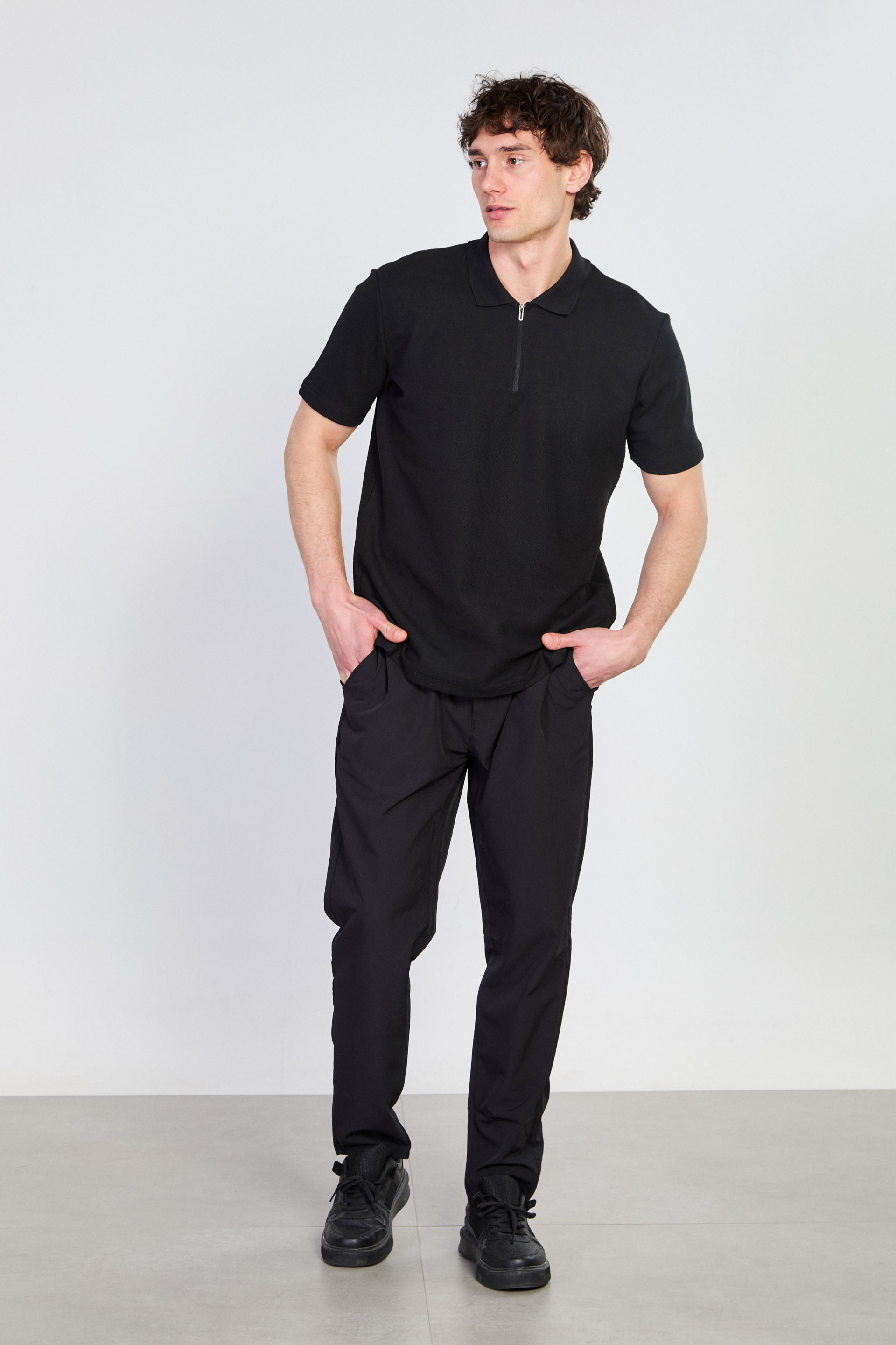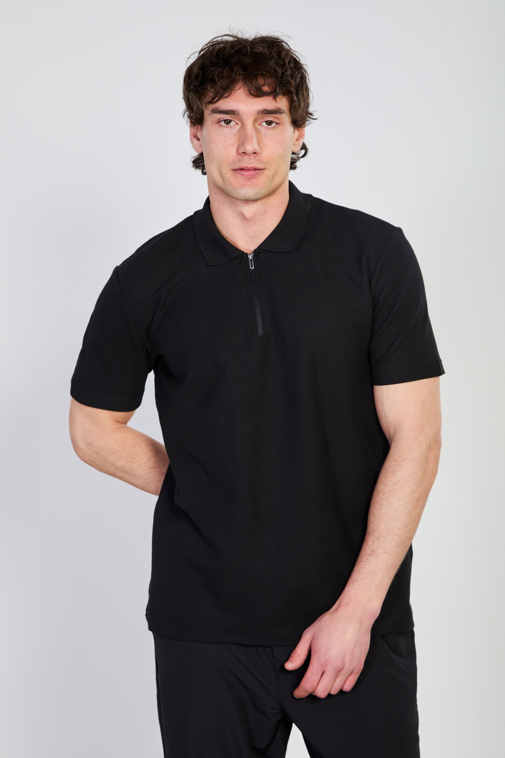 Erkek Fermuarlı Polo Yaka T-Shirt - Siyah
