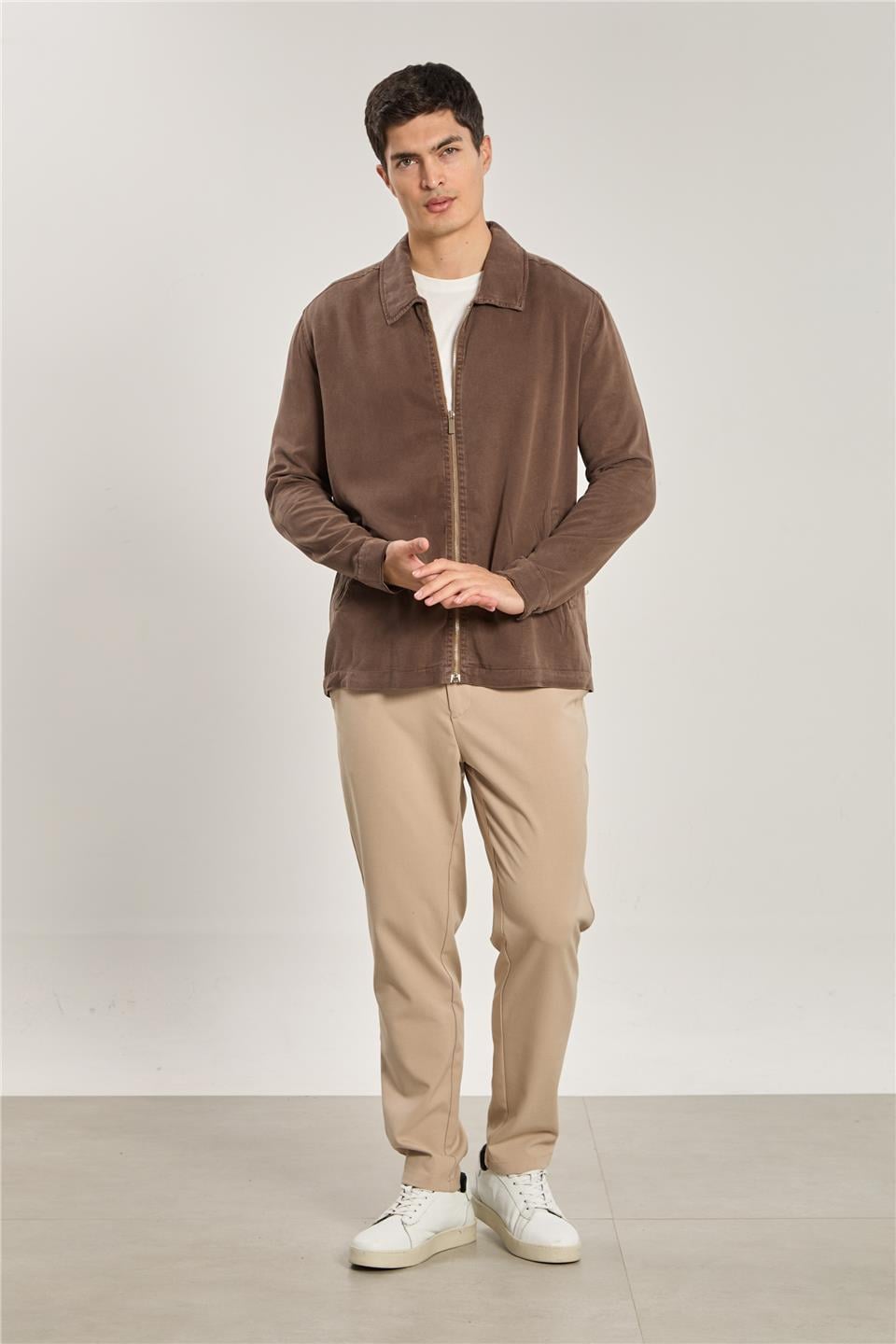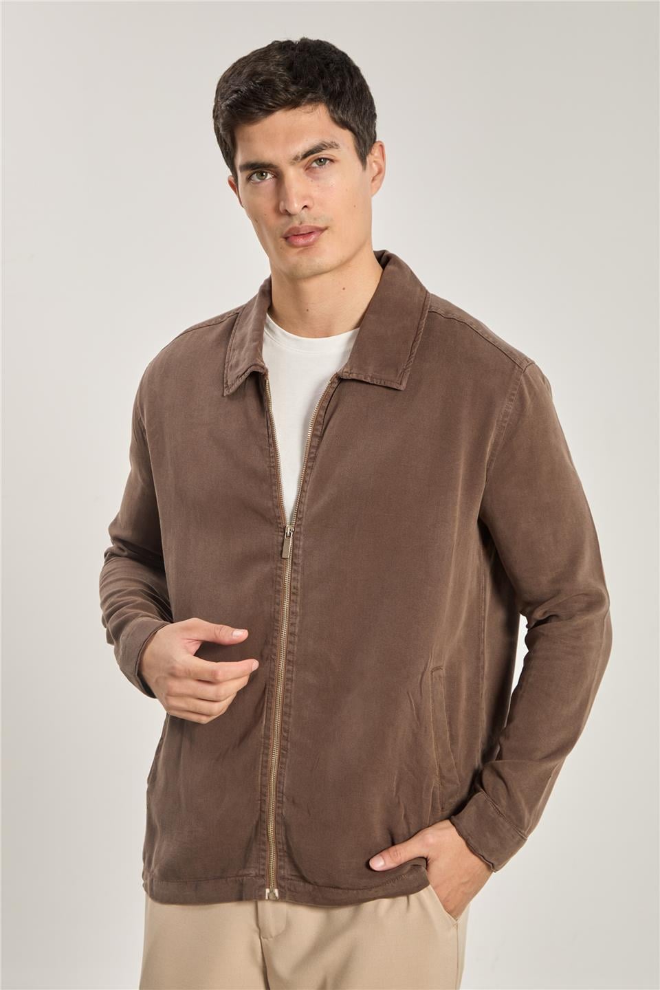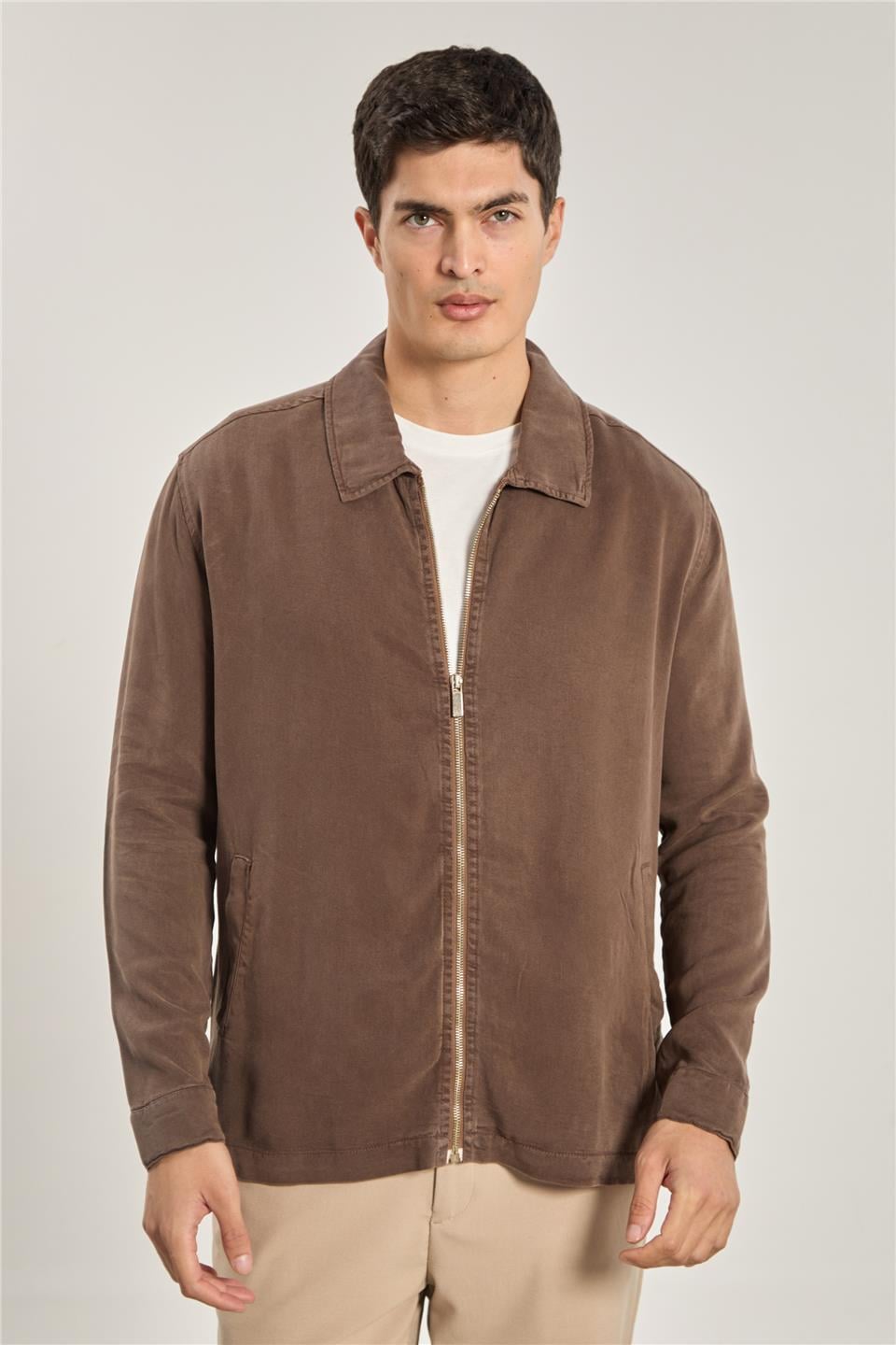 Erkek Fermuarlı Tensel Ceket - Kahve