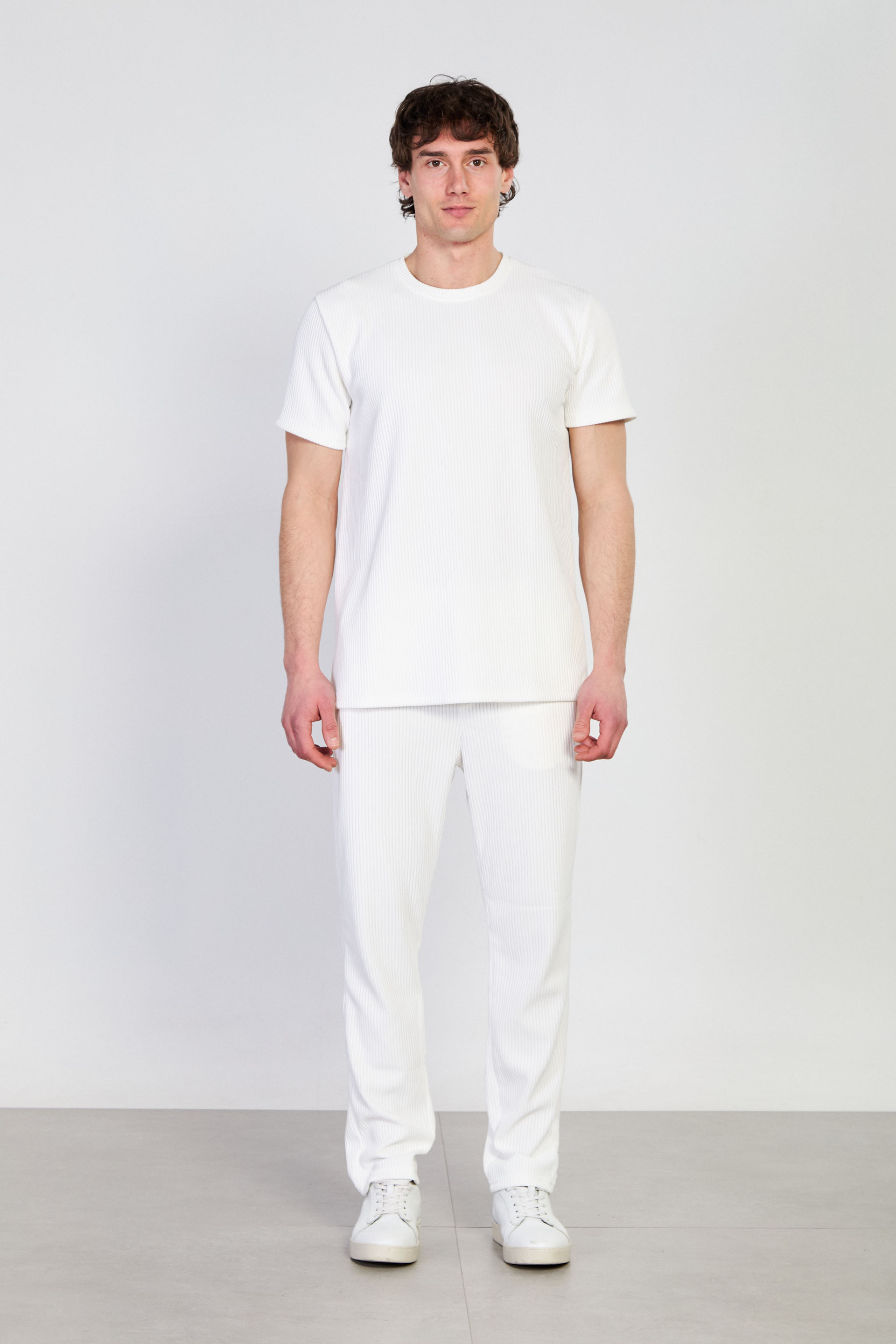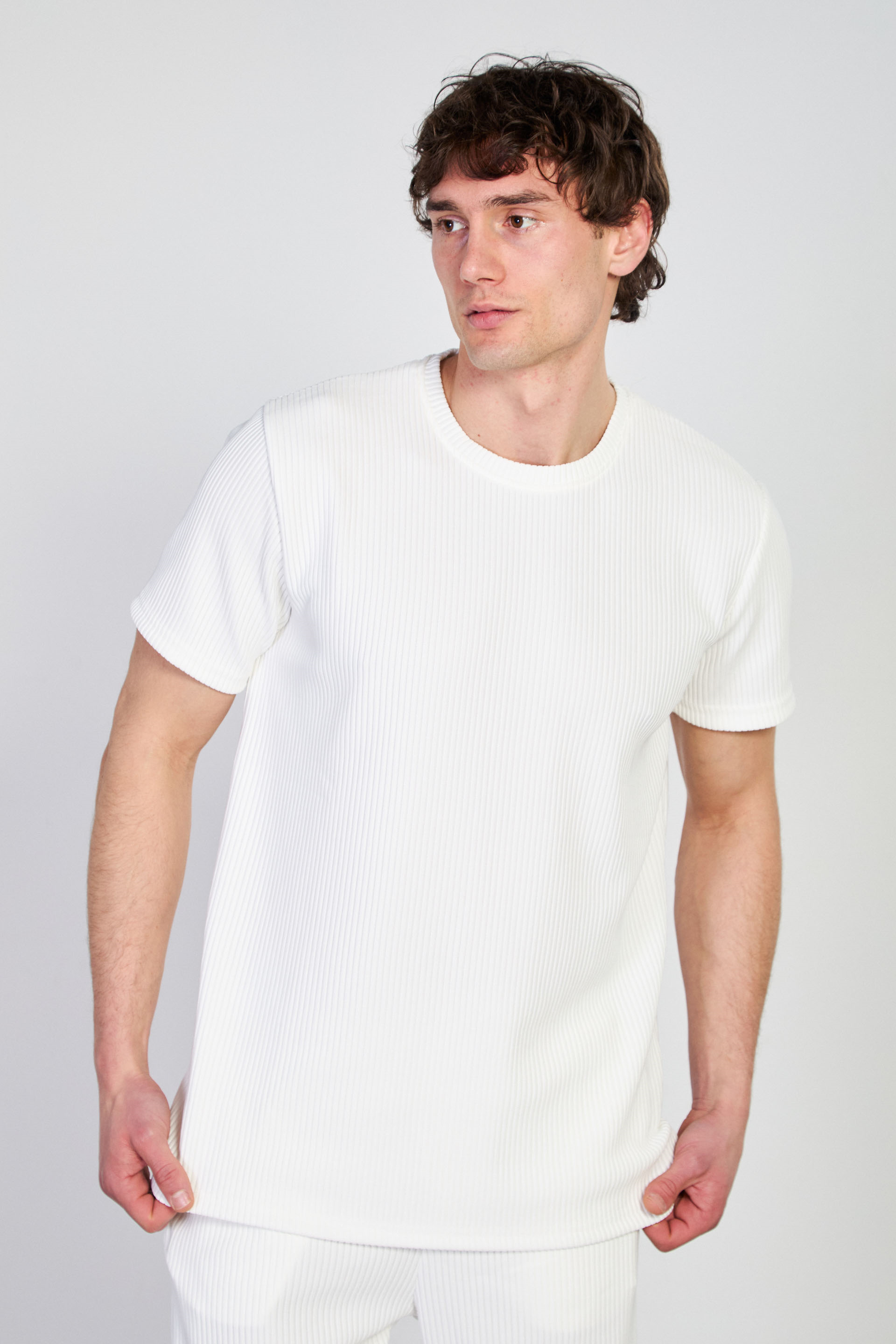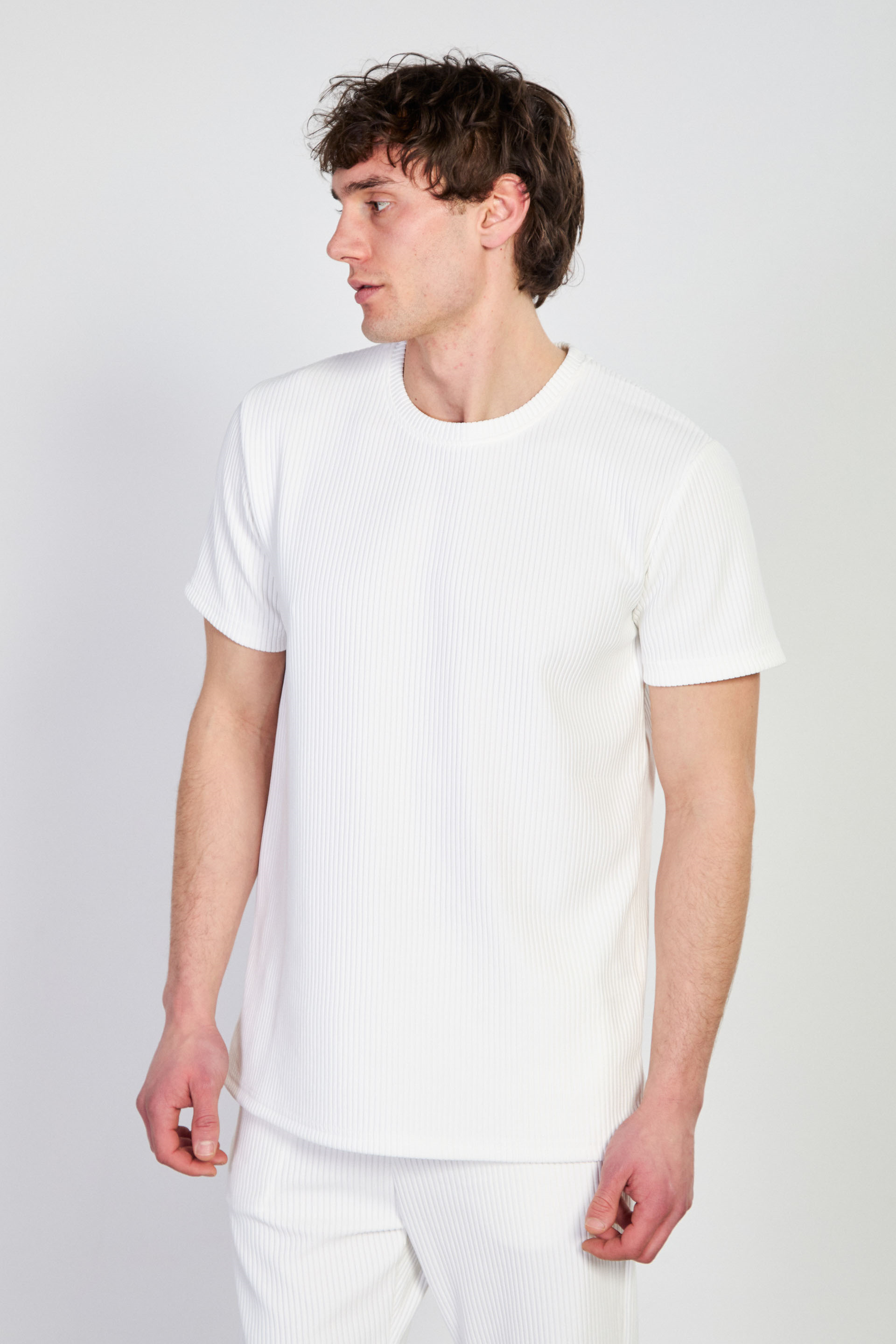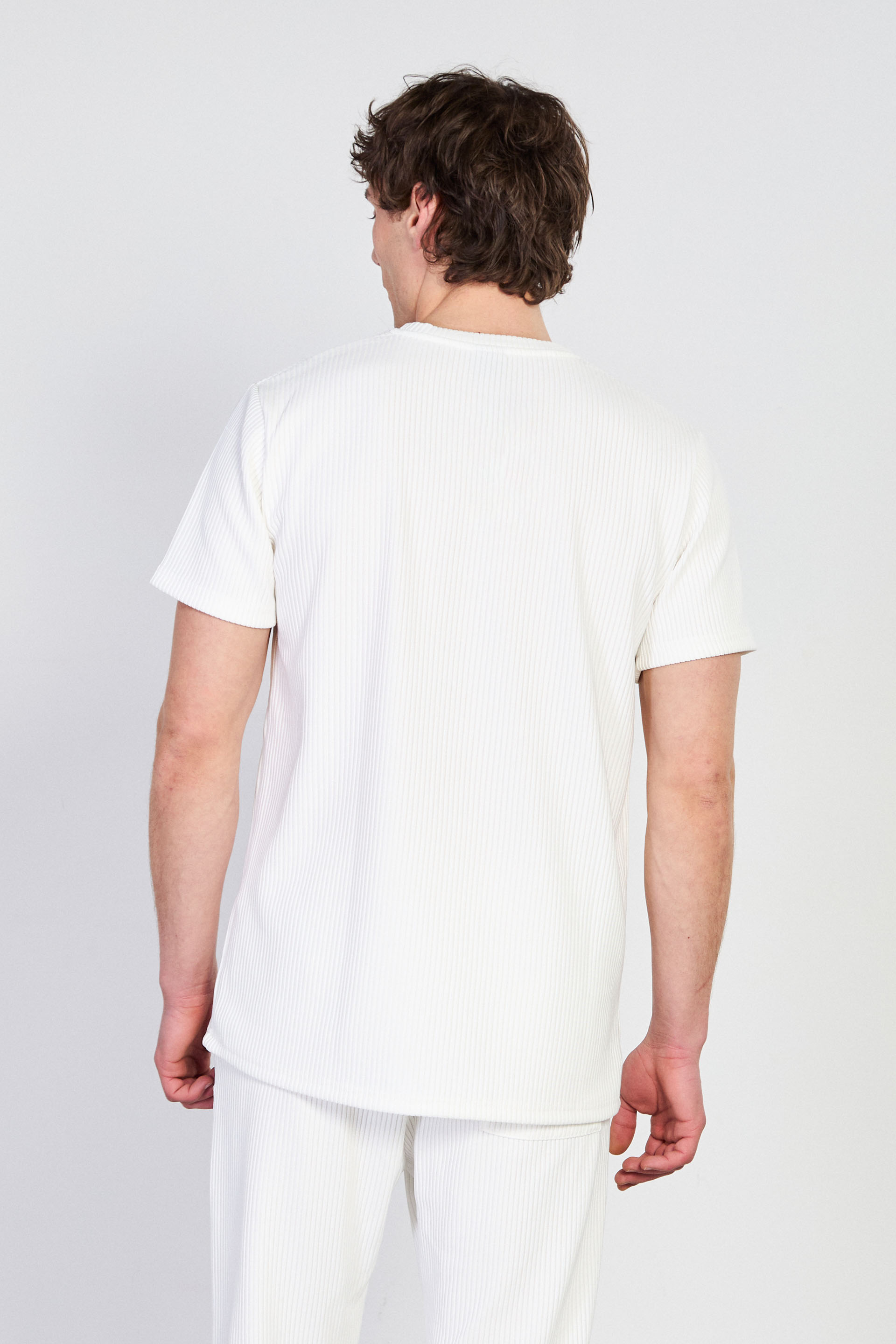 Erkek Fitilli Bisiklet Yaka T-Shirt - Beyaz