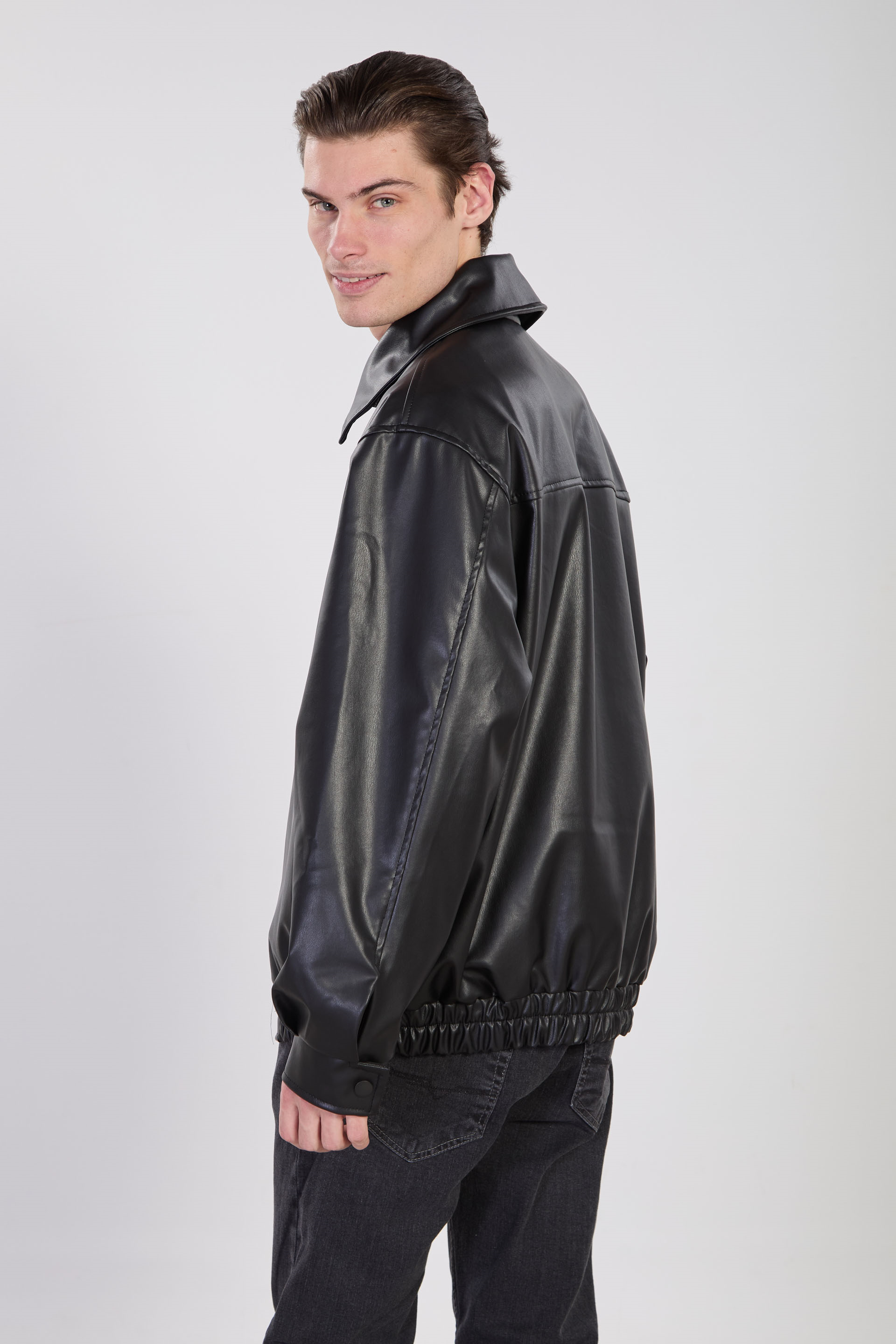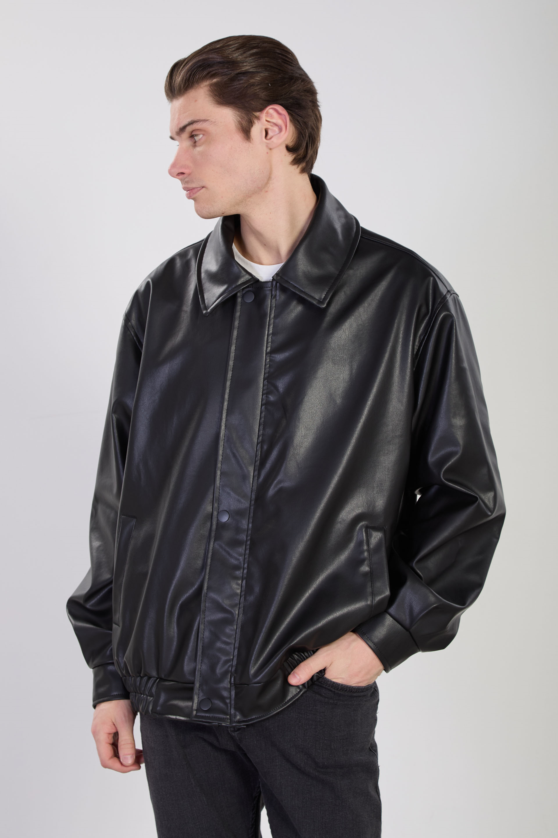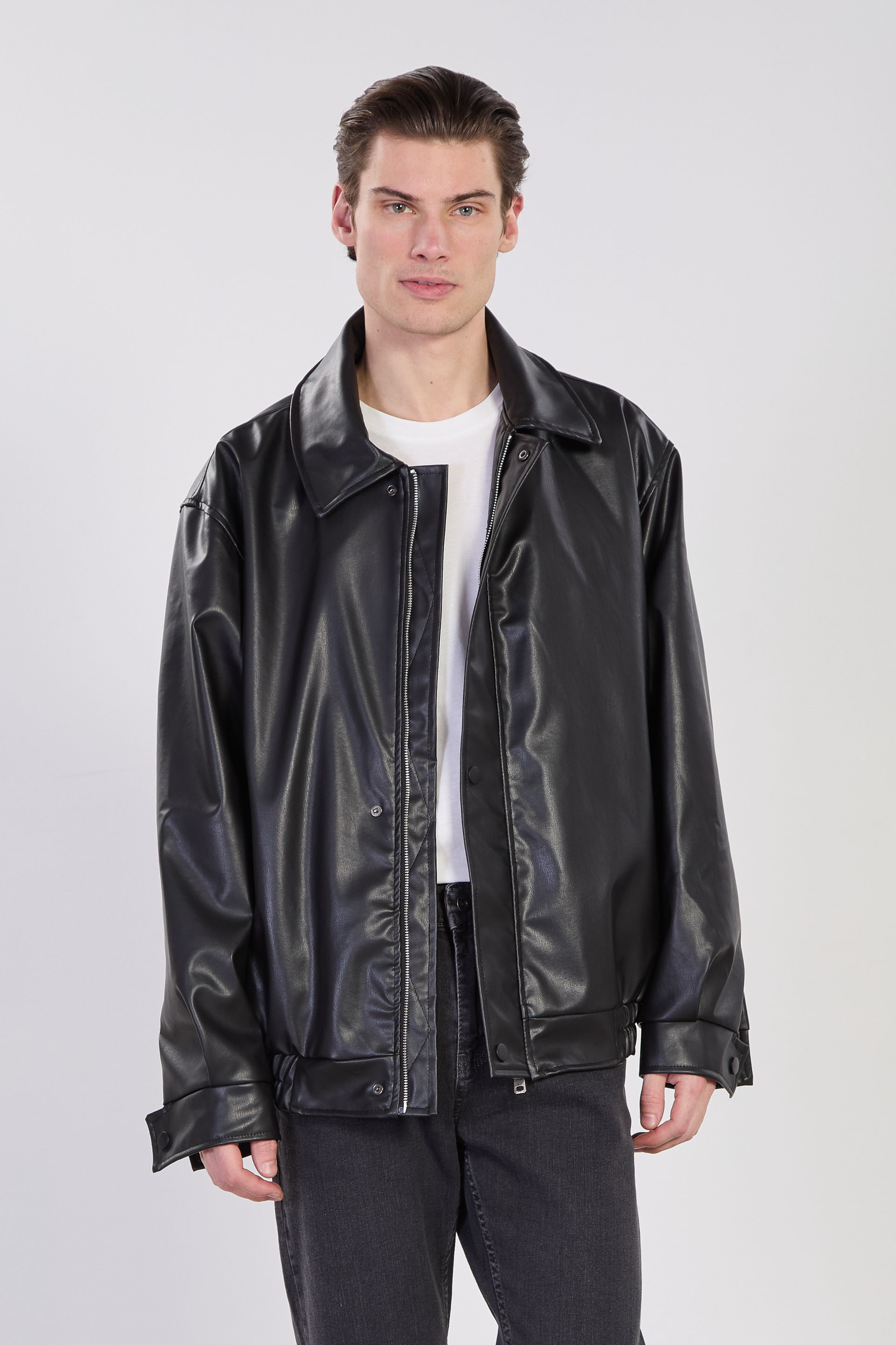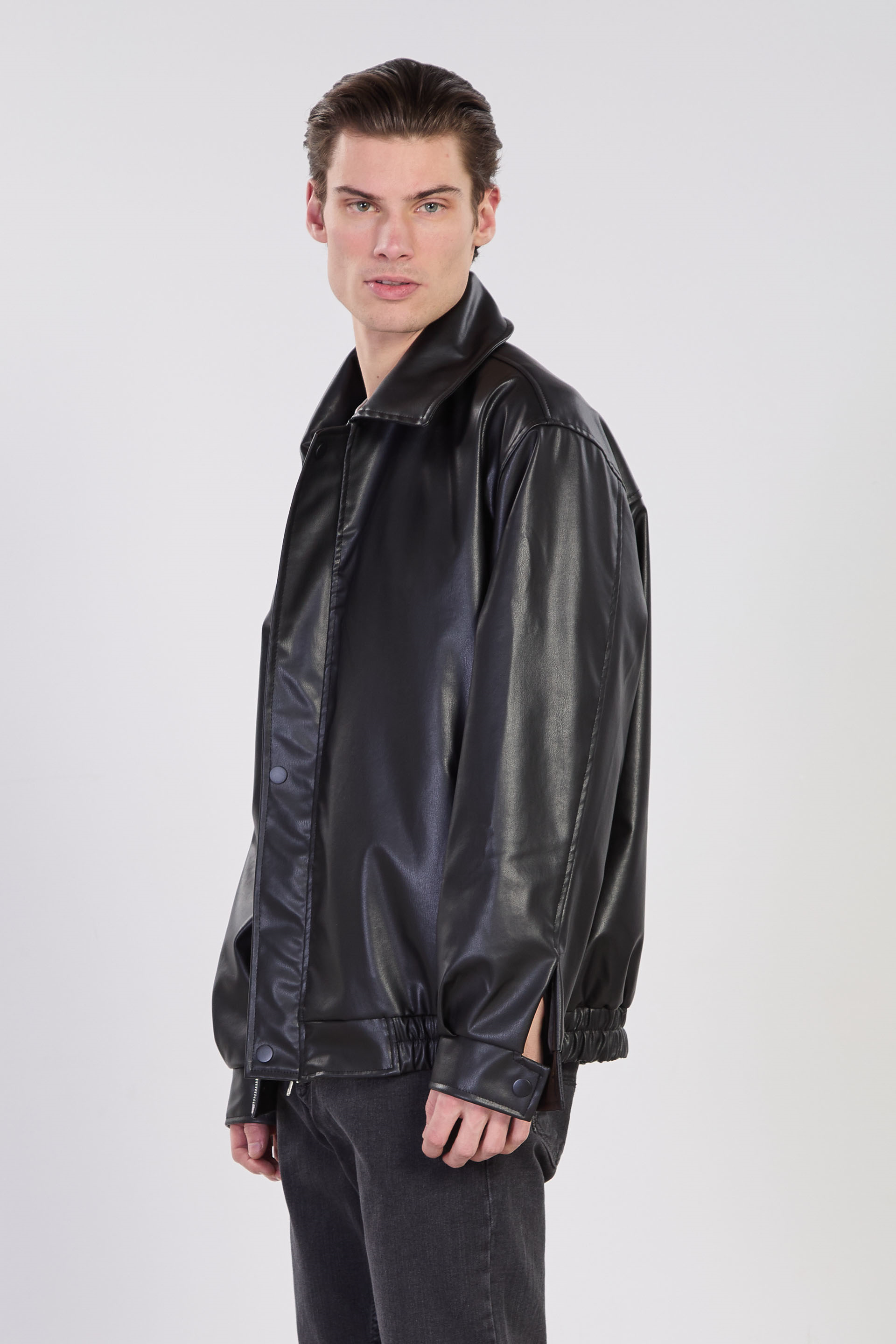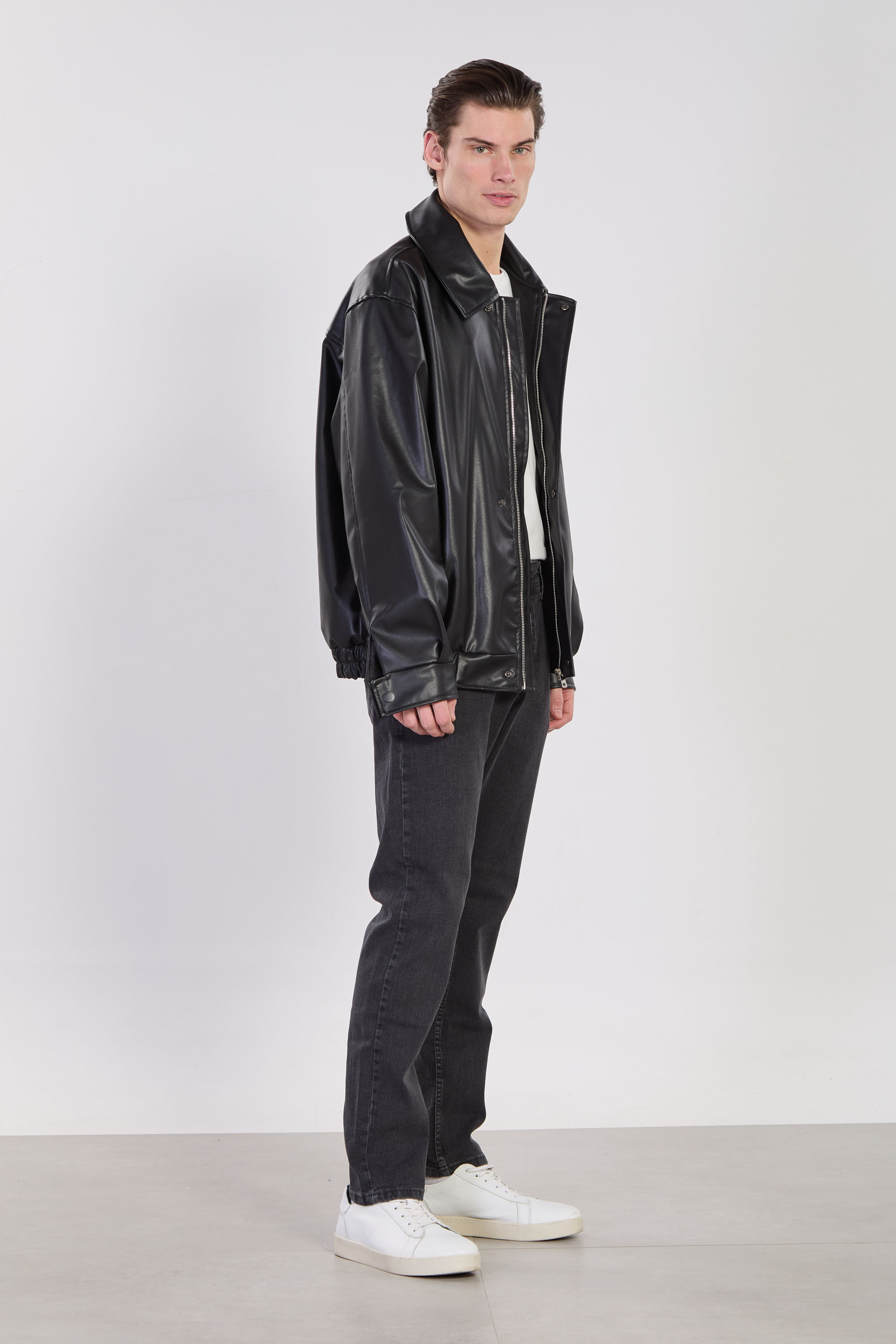 Erkek Fleto Cepli Fermuarlı Deri Mont - Siyah