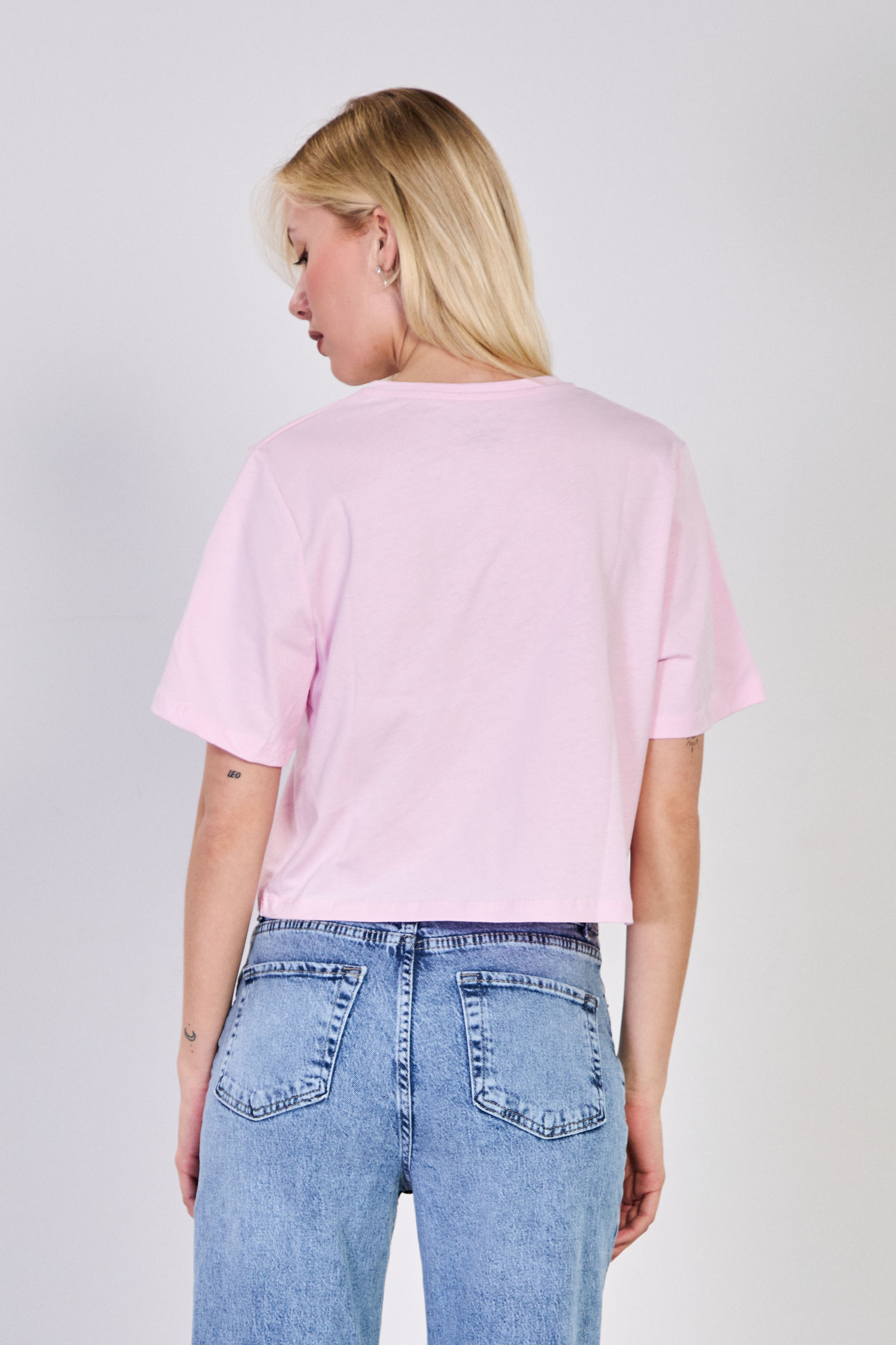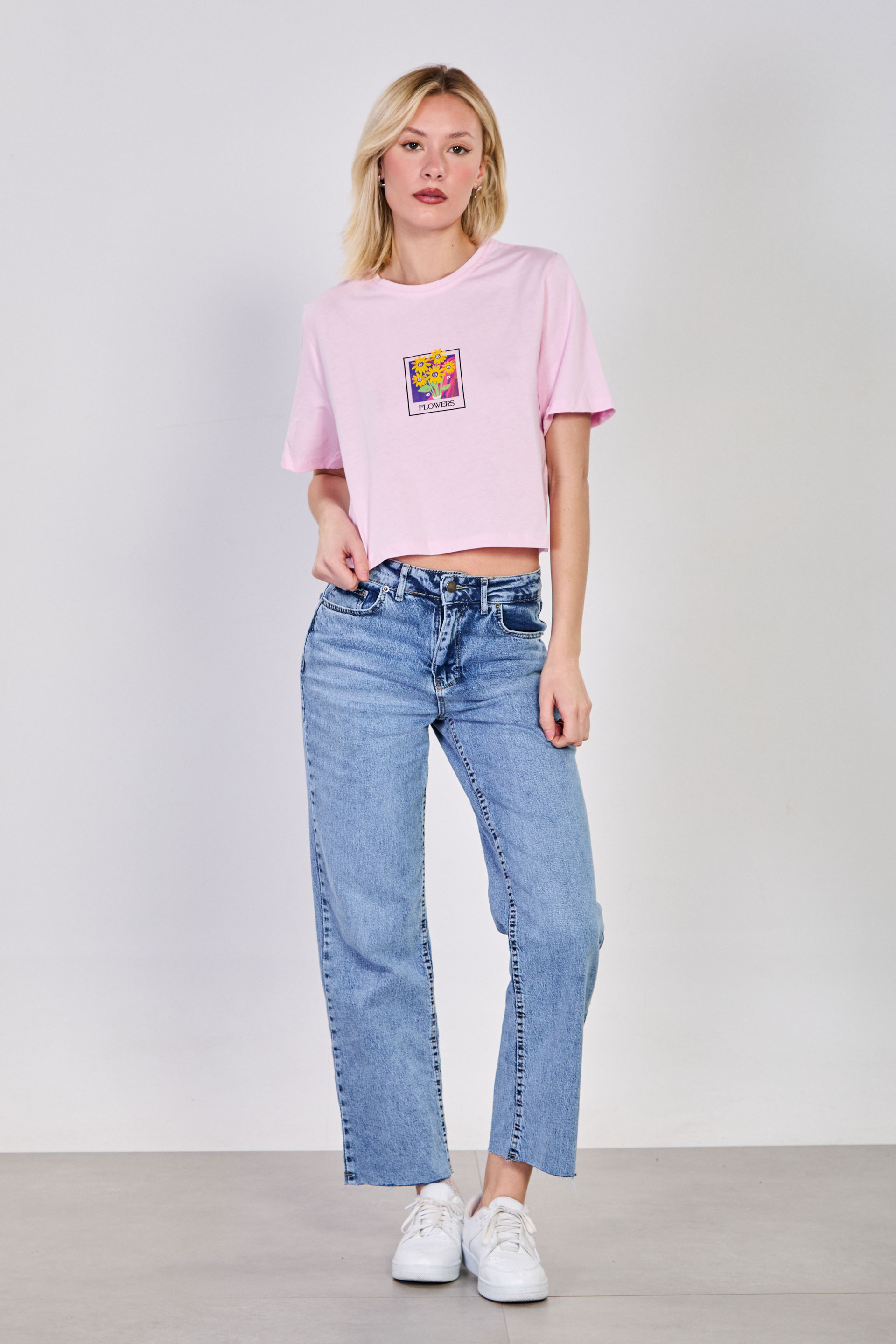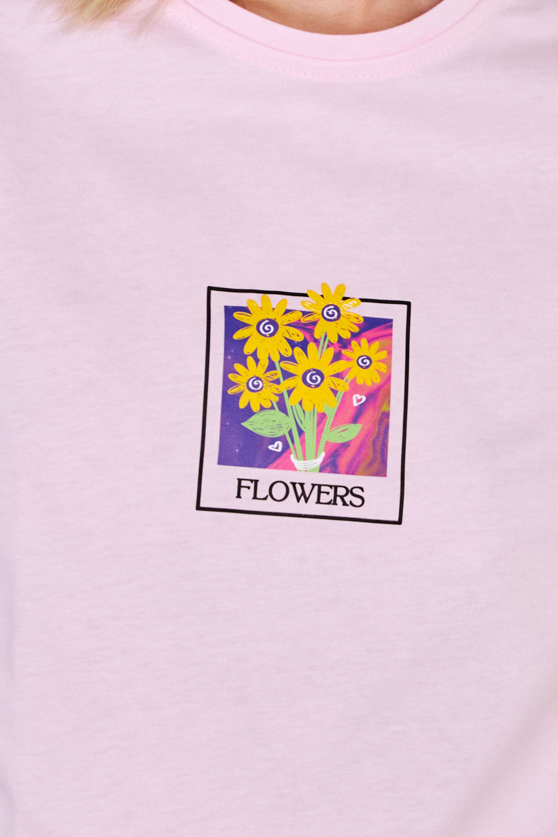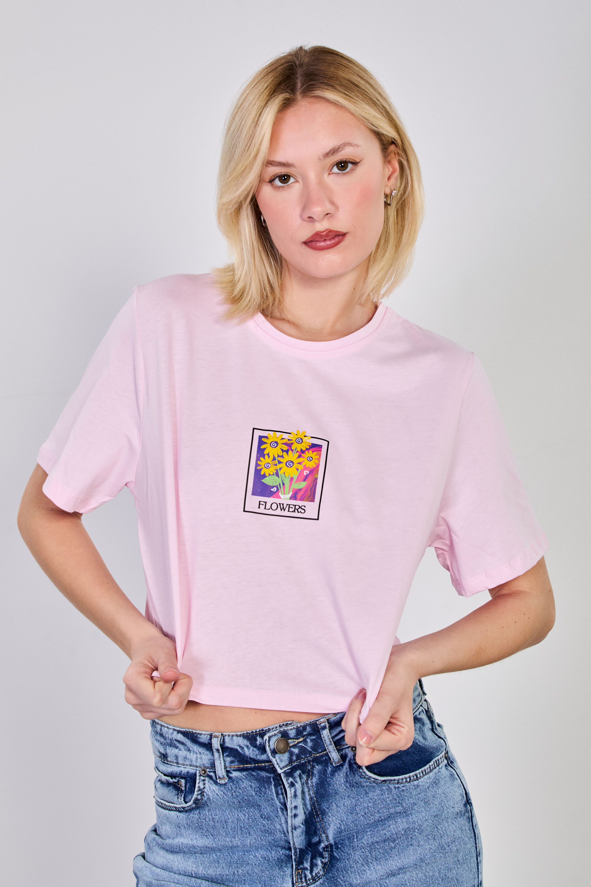 Kadın Flowers Baskılı Crop T-Shirt - Pembe