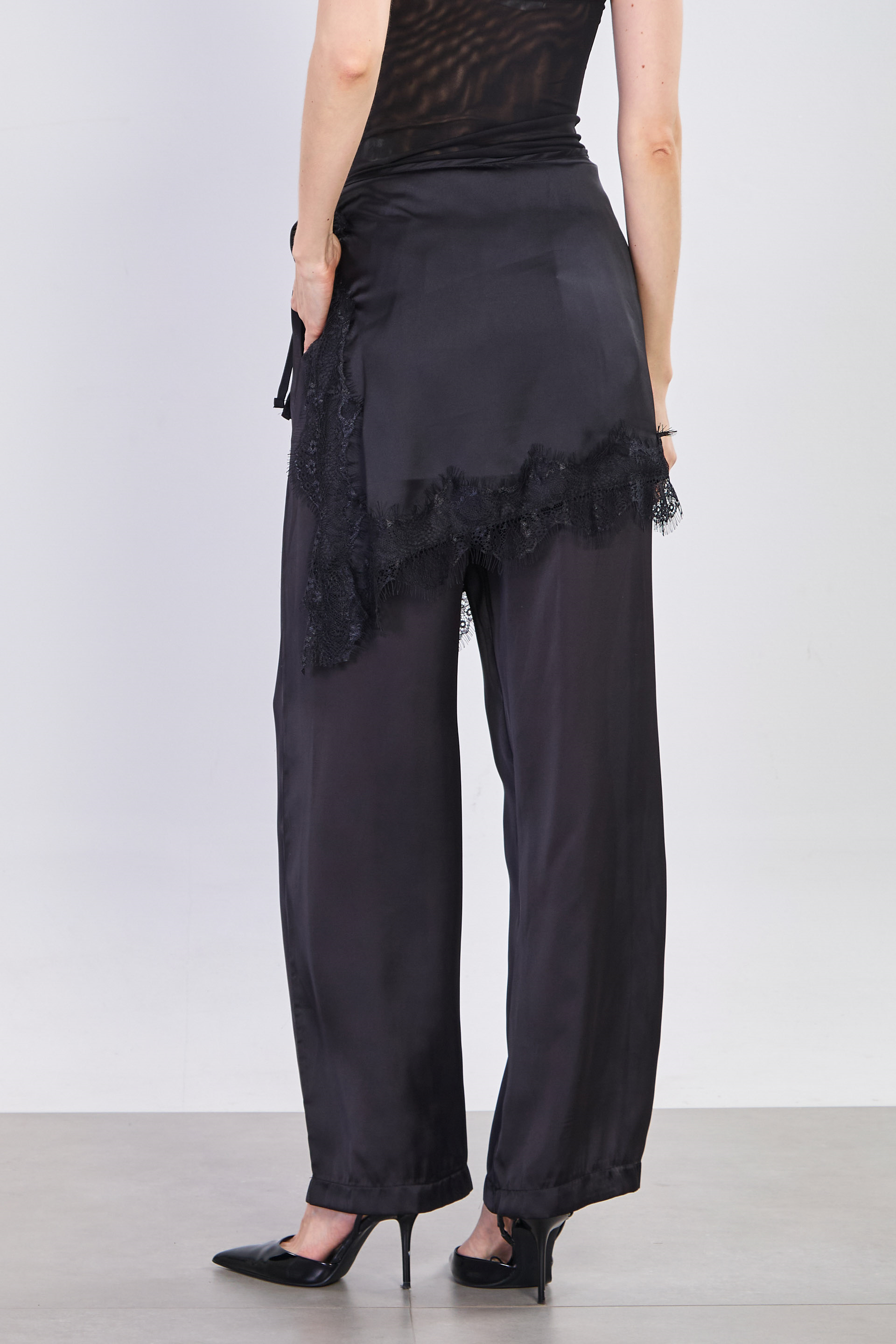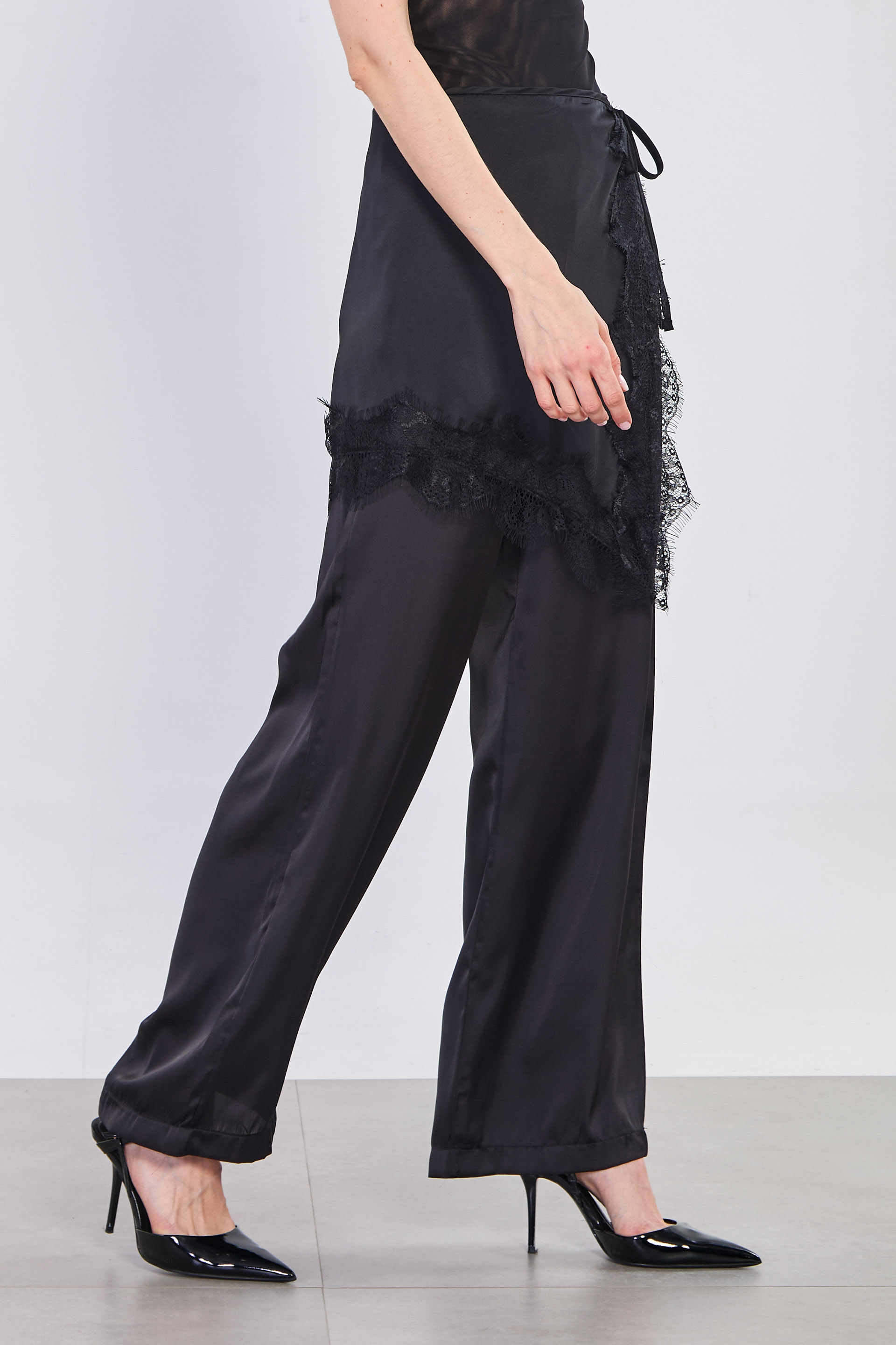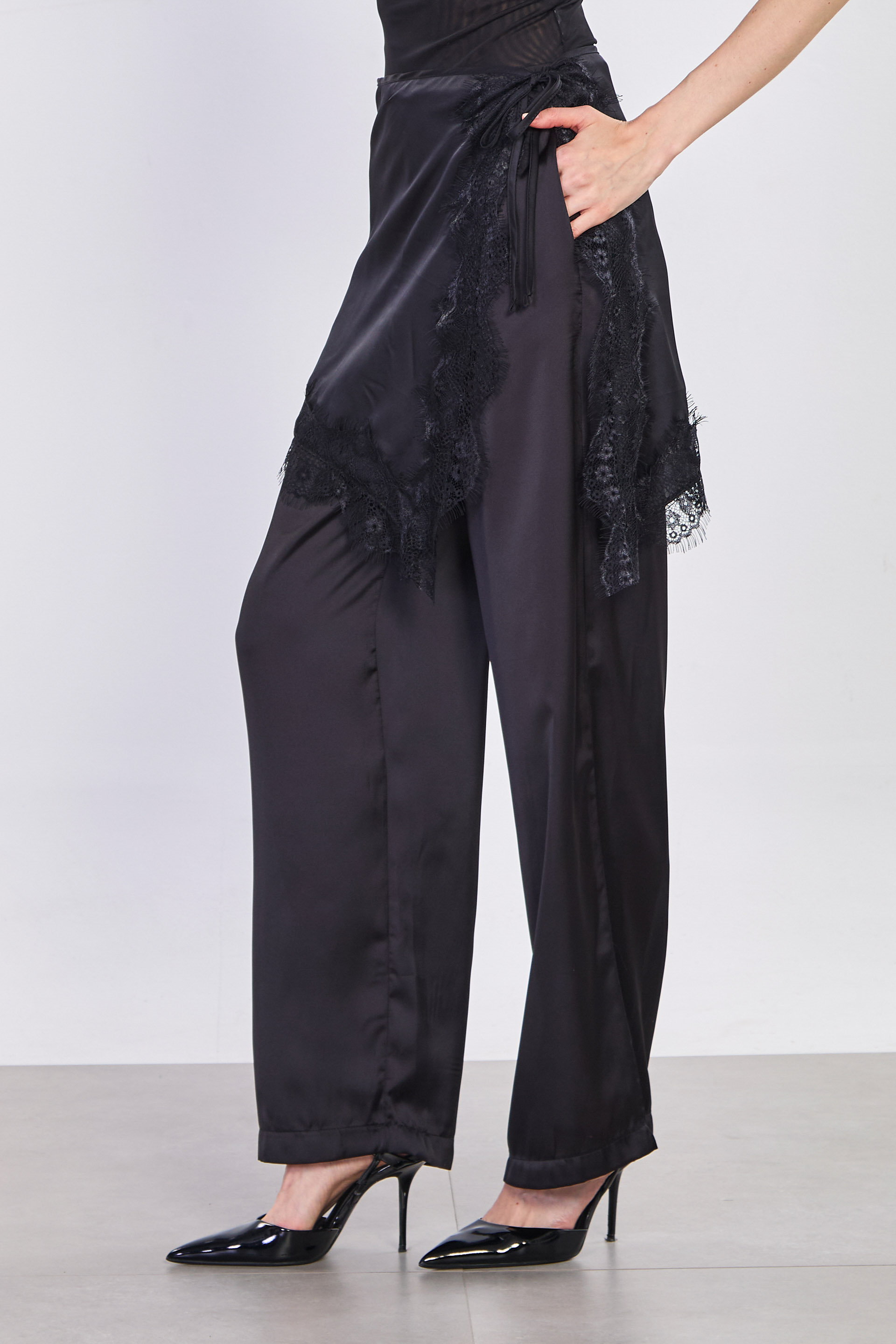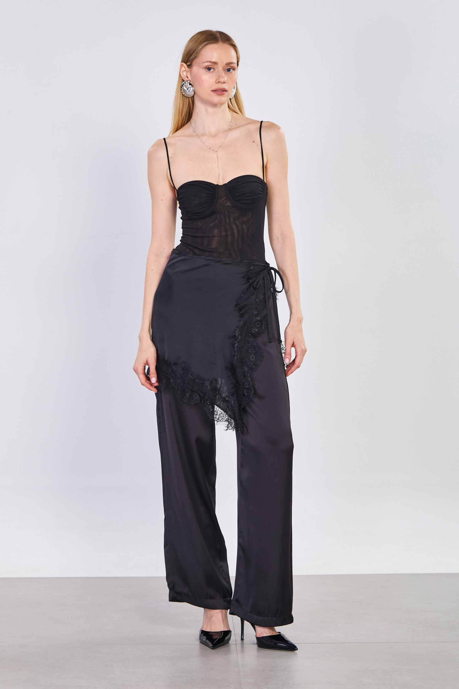 Kadın Fularlı Saten Bol Pantolon - Siyah