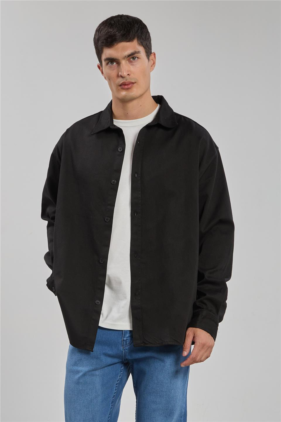 Erkek Gabardin Tensel Gömlek - Siyah