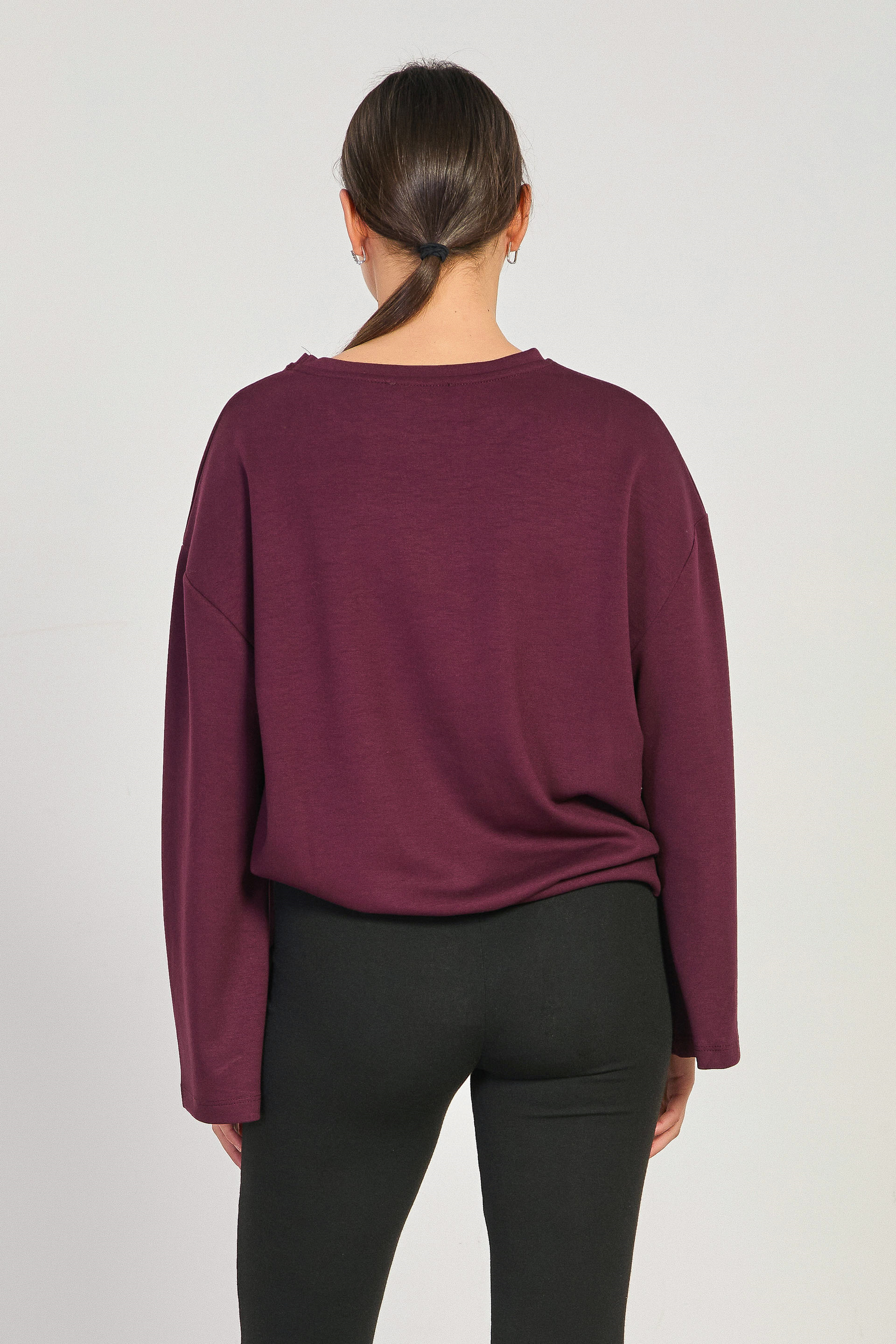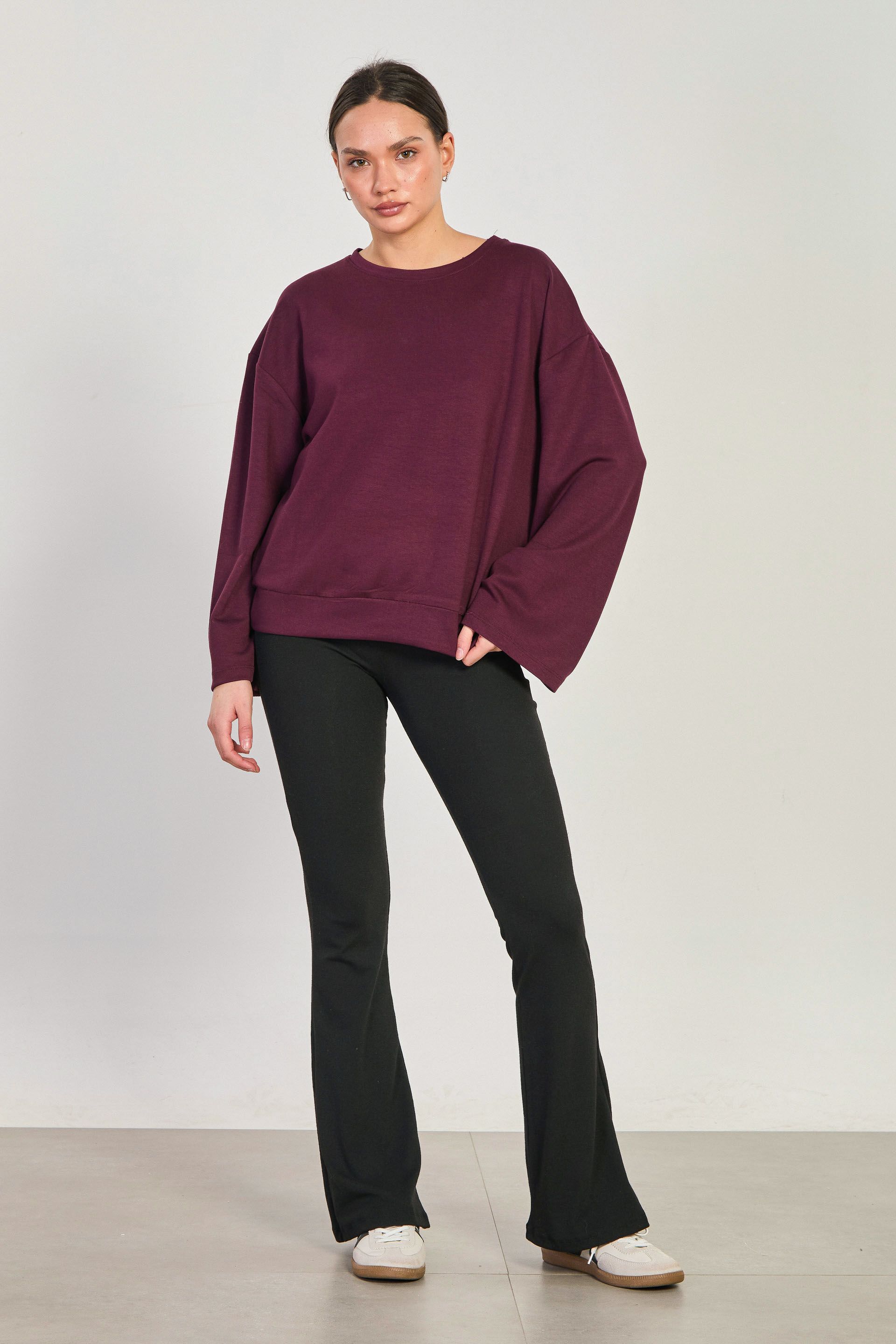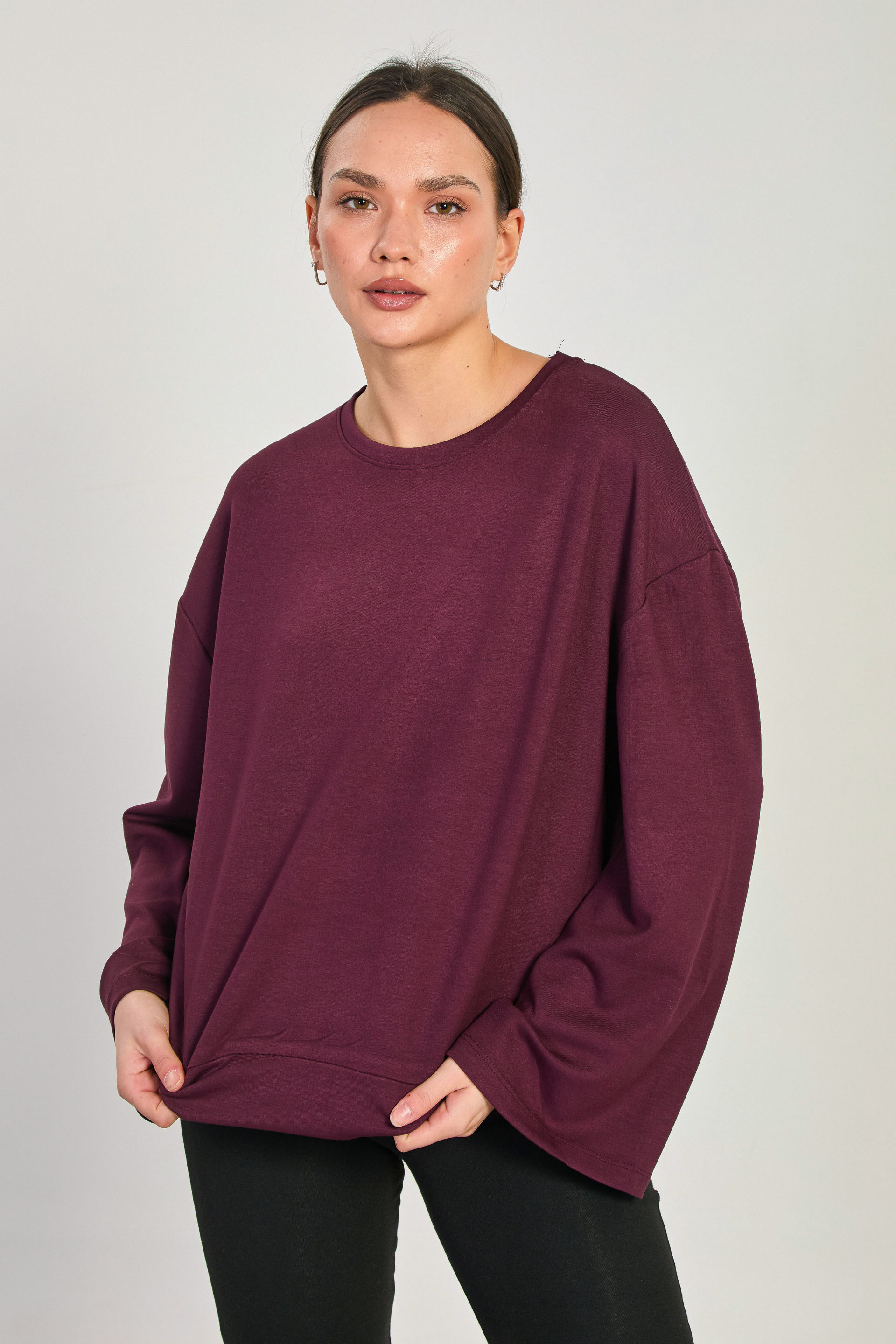 Kadın Geniş Kol Modal Sweatshirt - Mürdüm