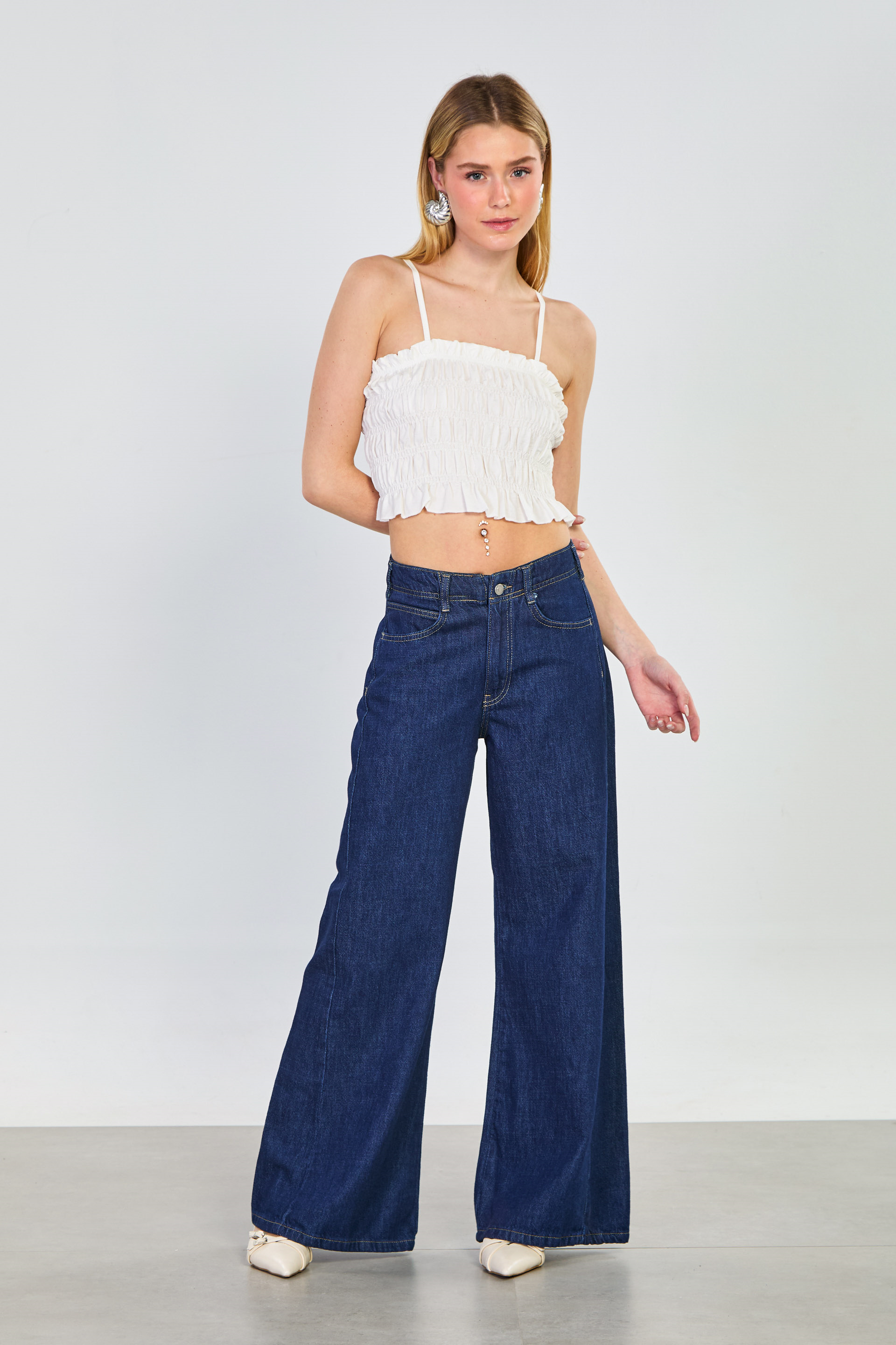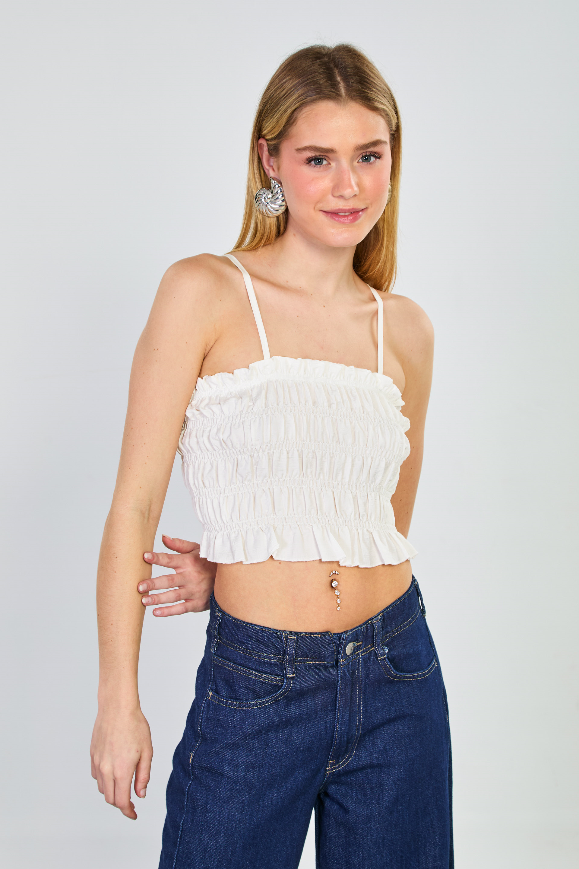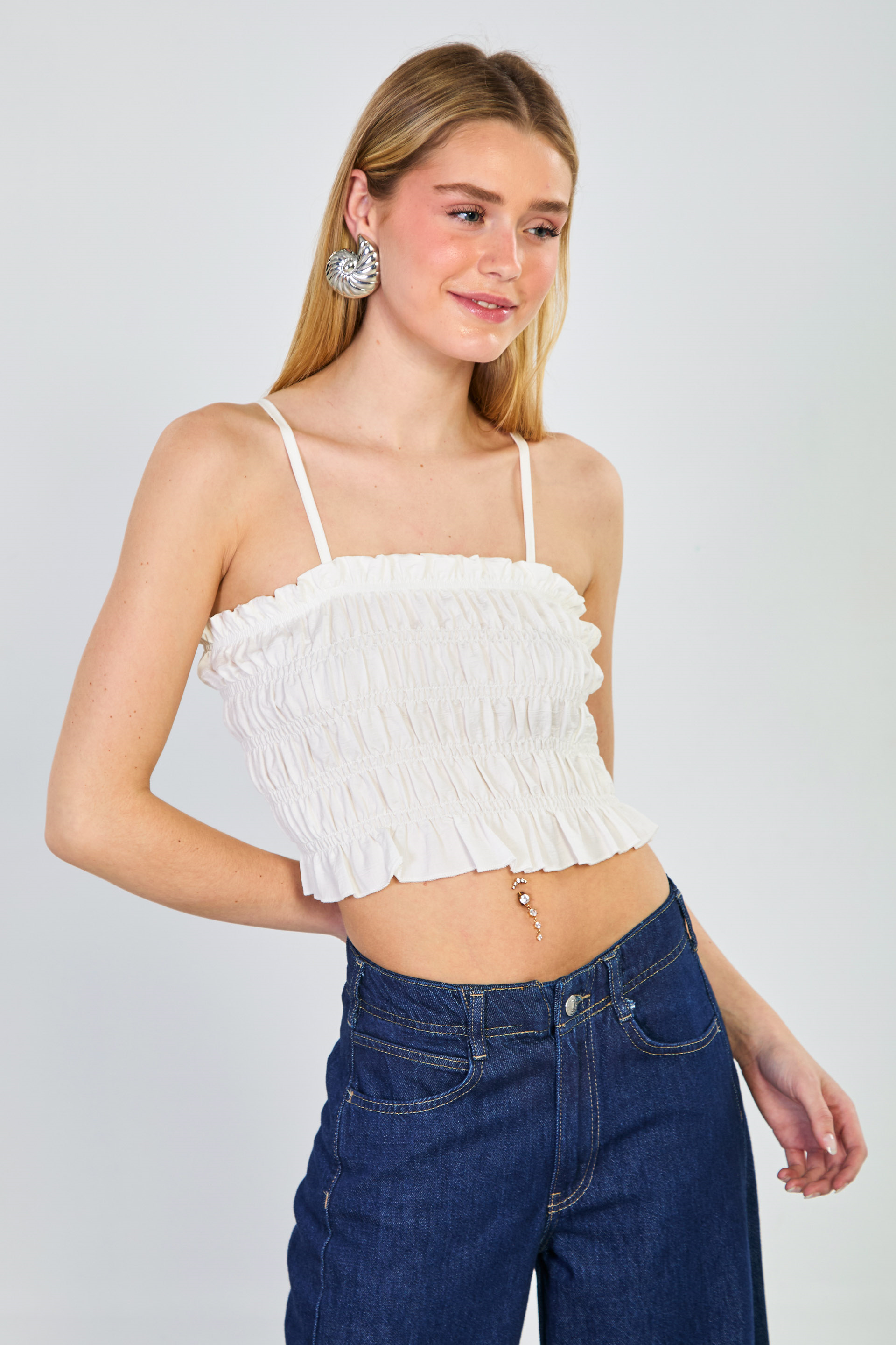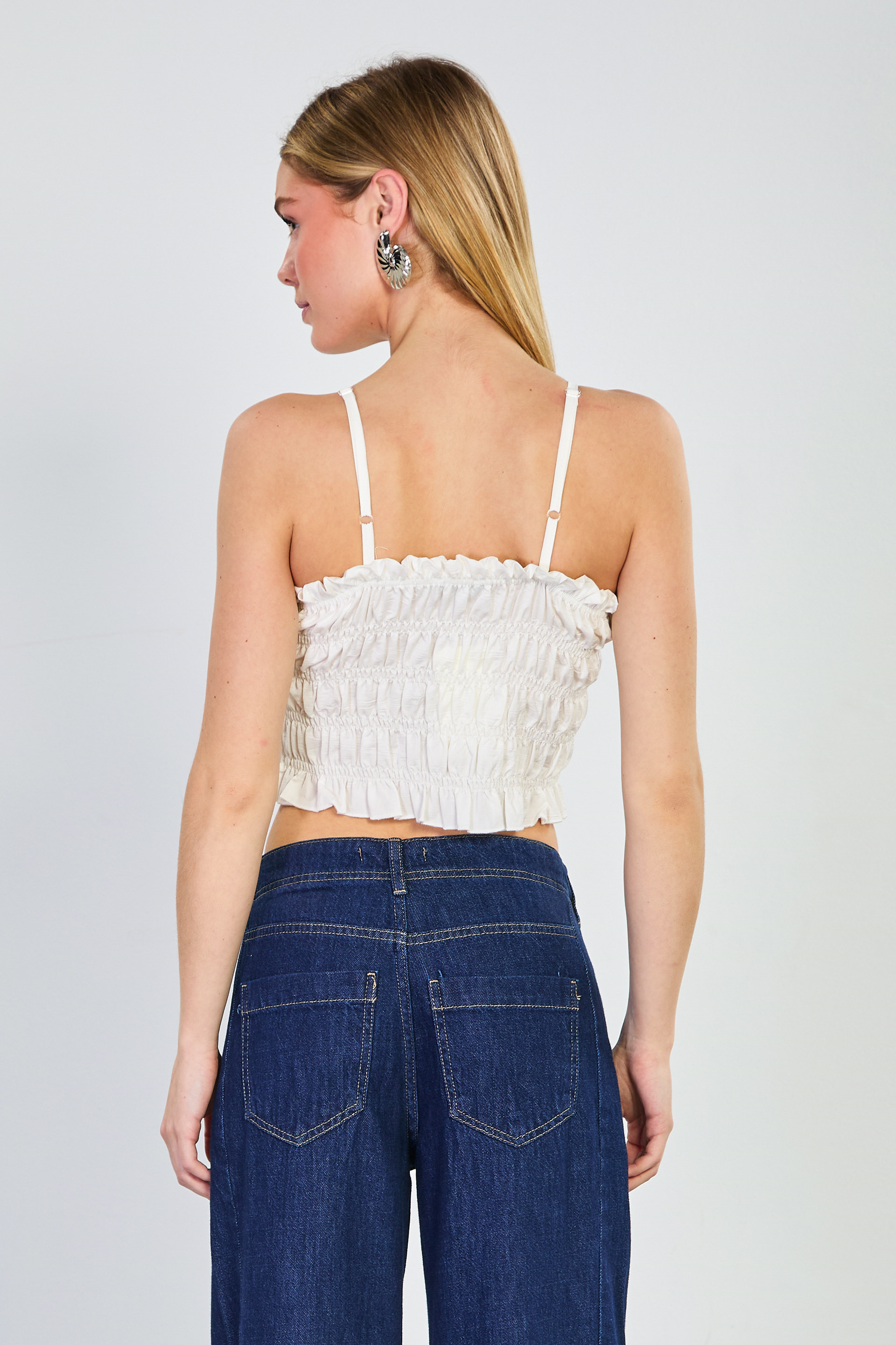 Kadın Gipeli Askılı Crop Bluz - Beyaz