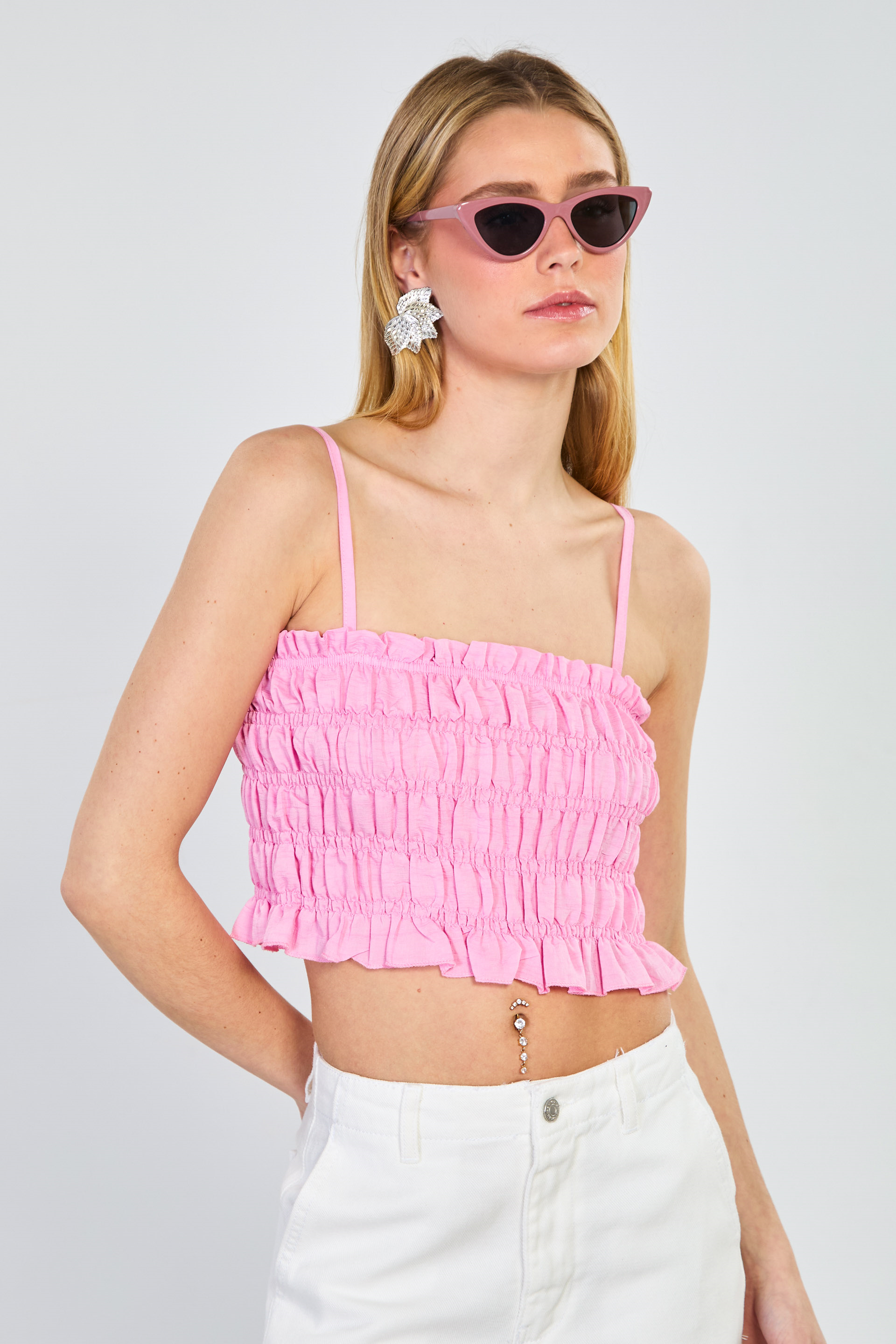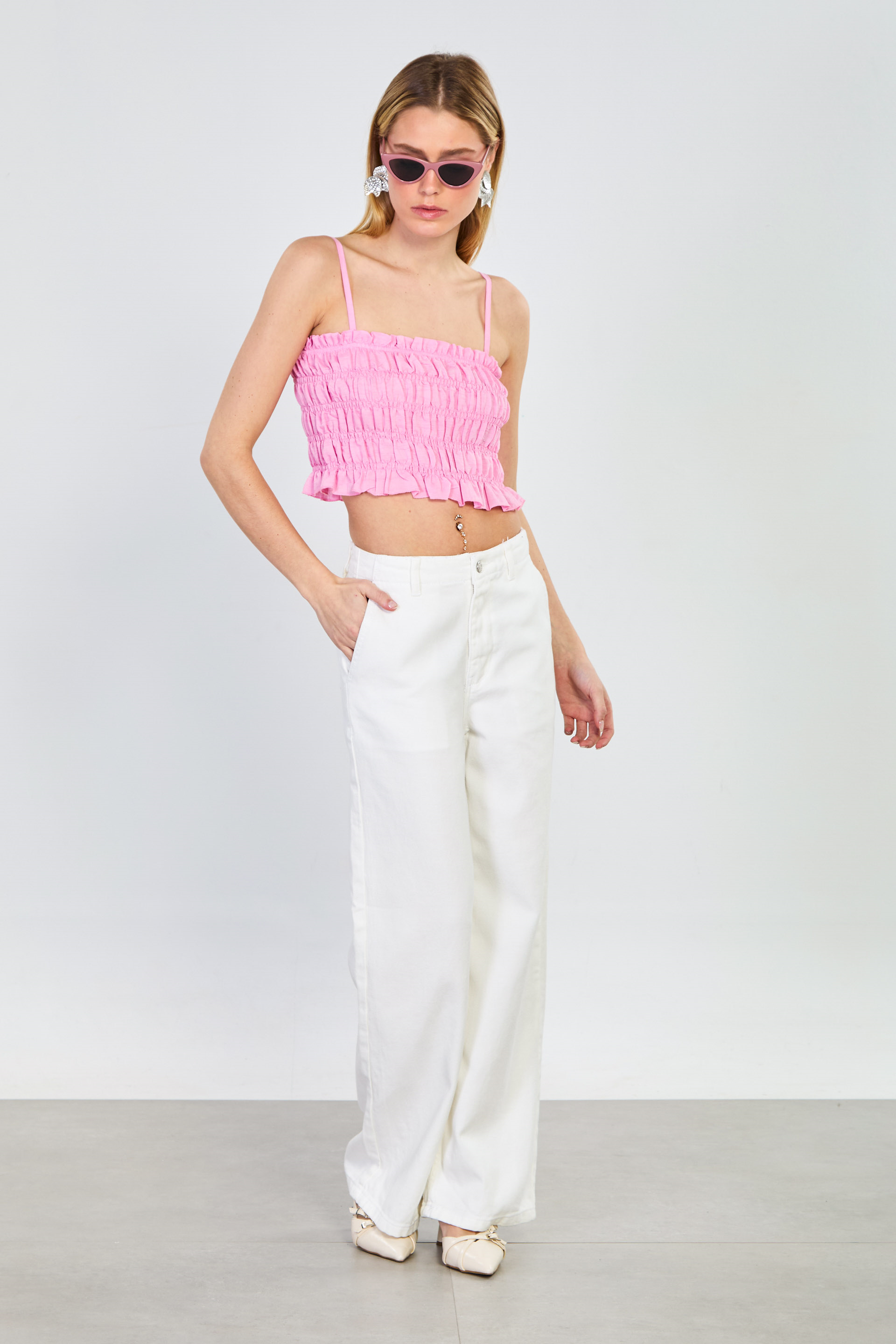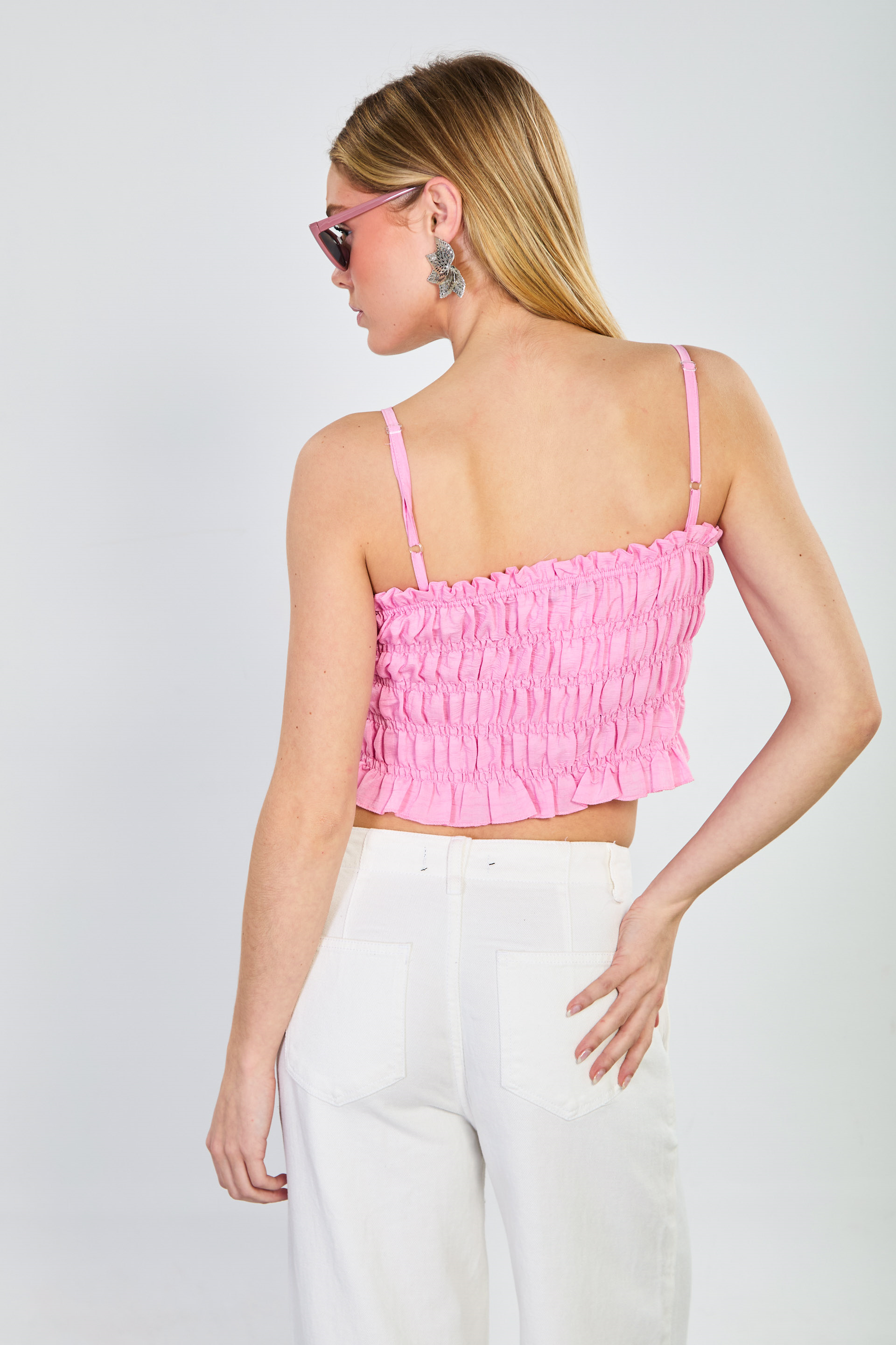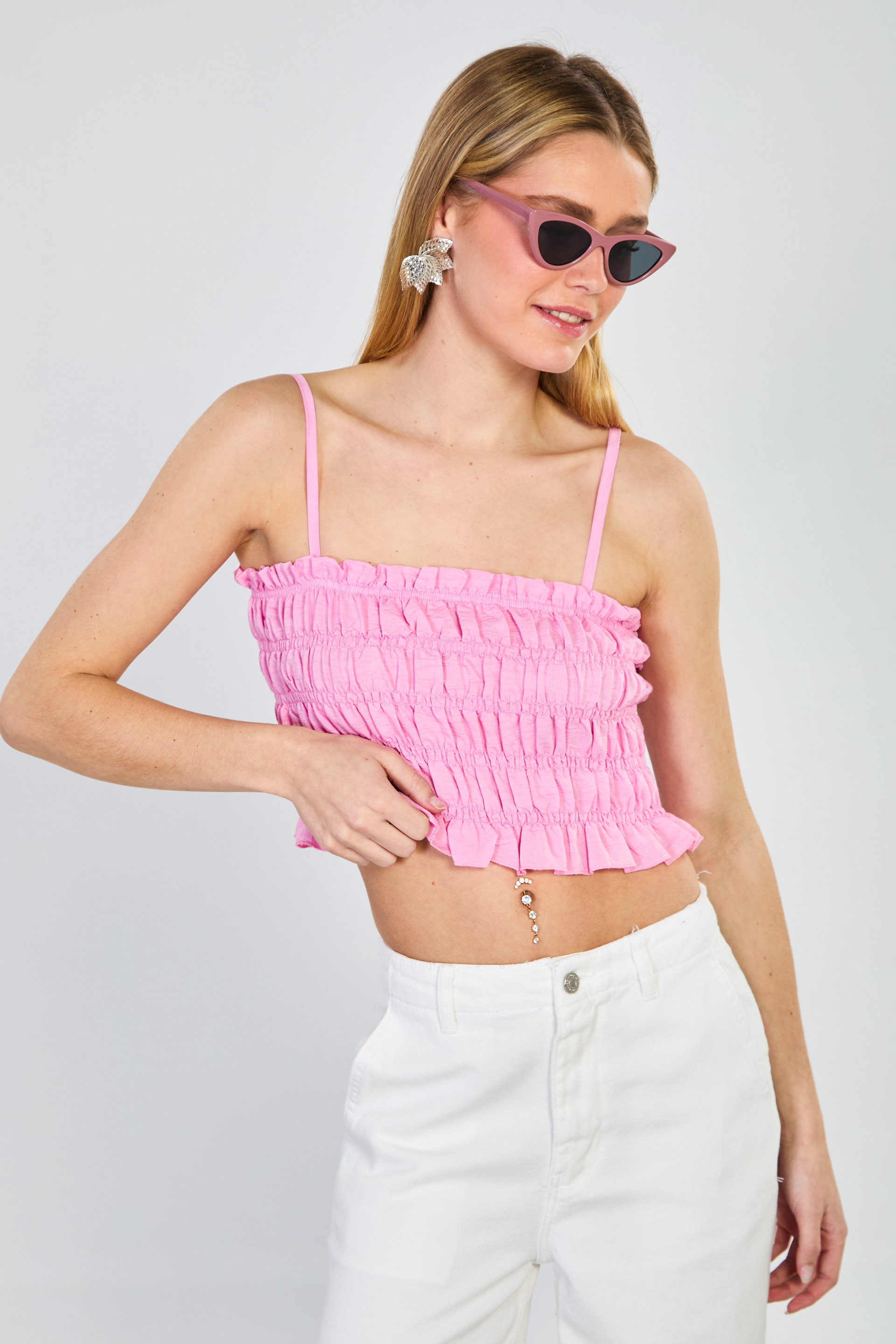 Kadın Gipeli Askılı Crop Bluz - Pembe