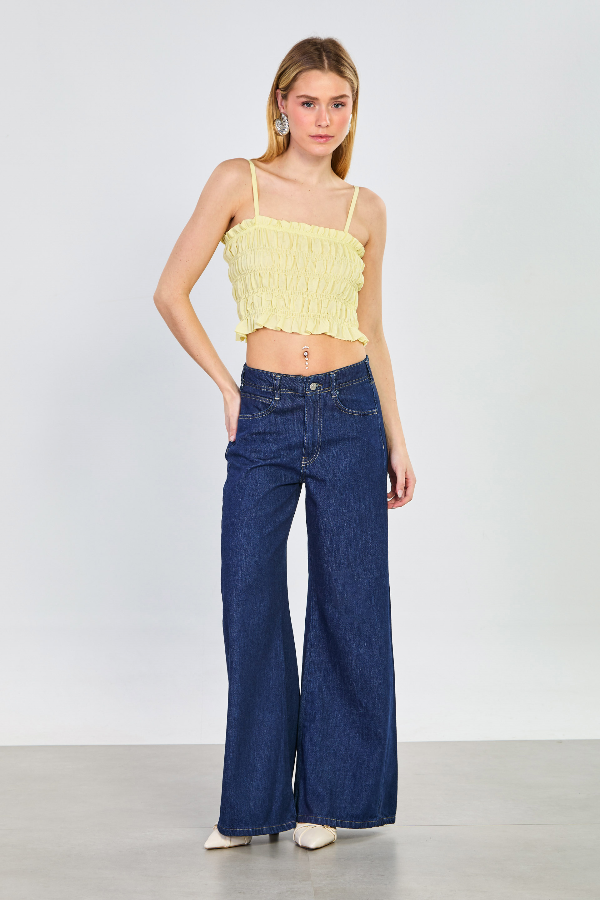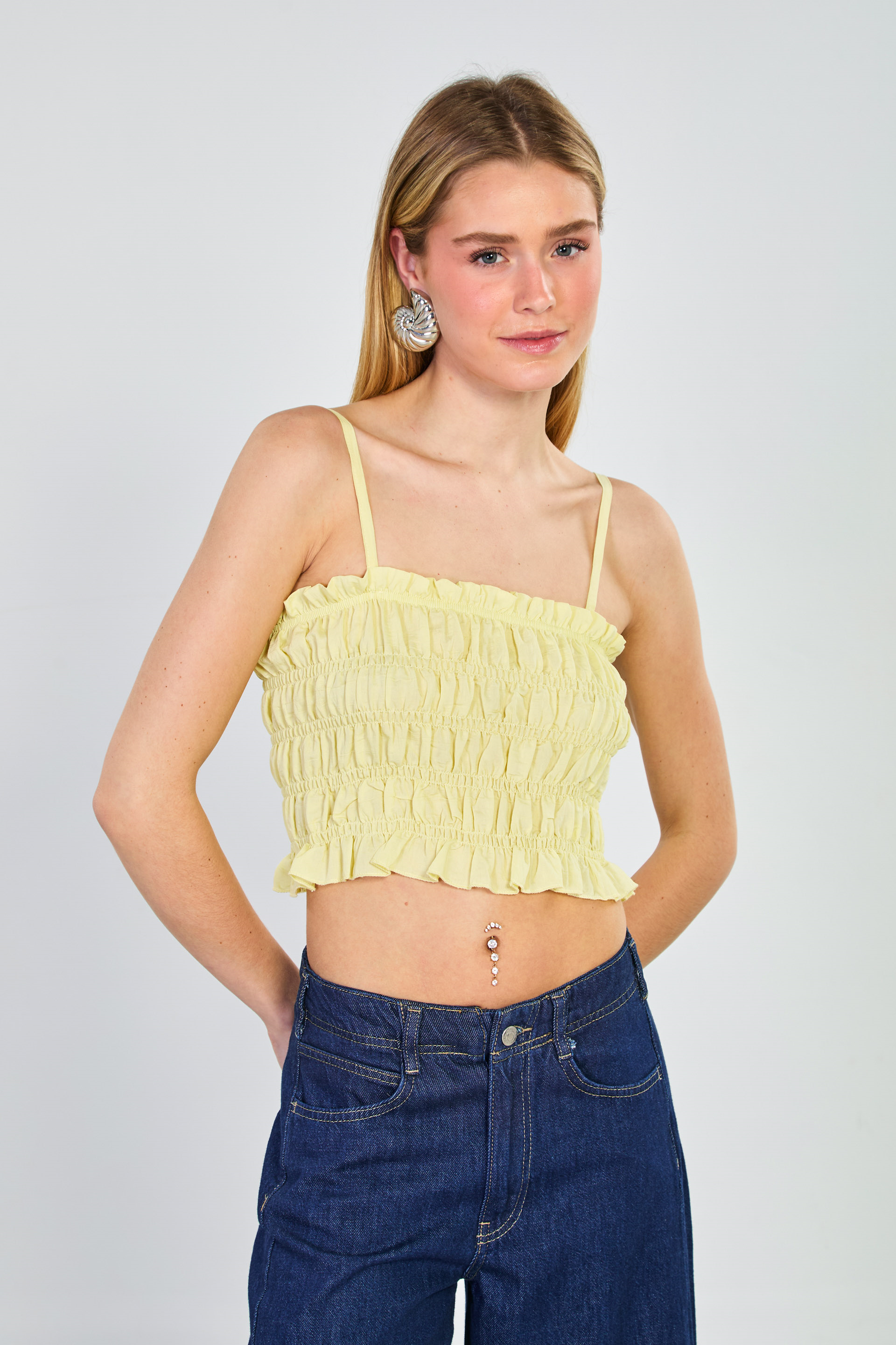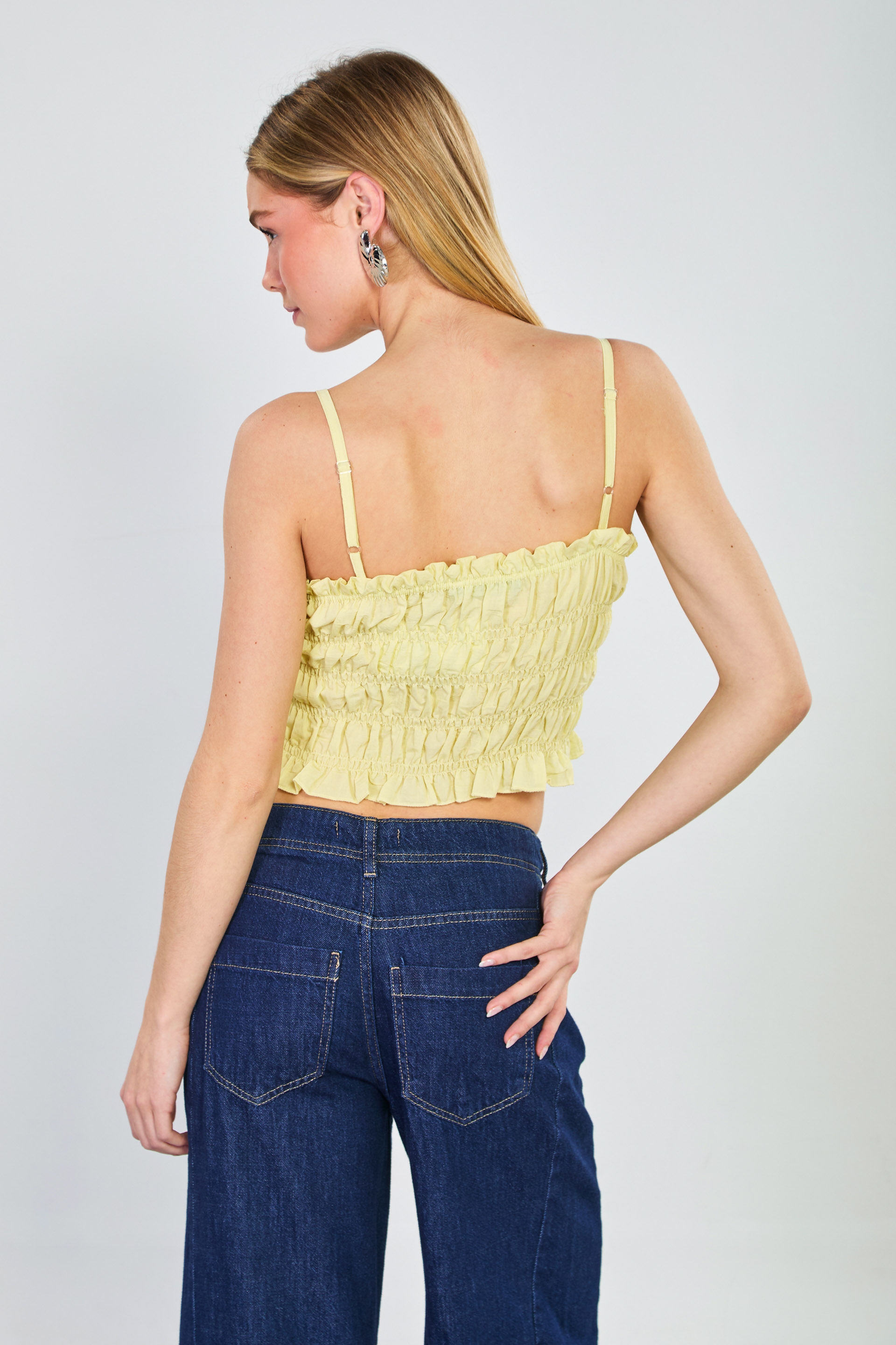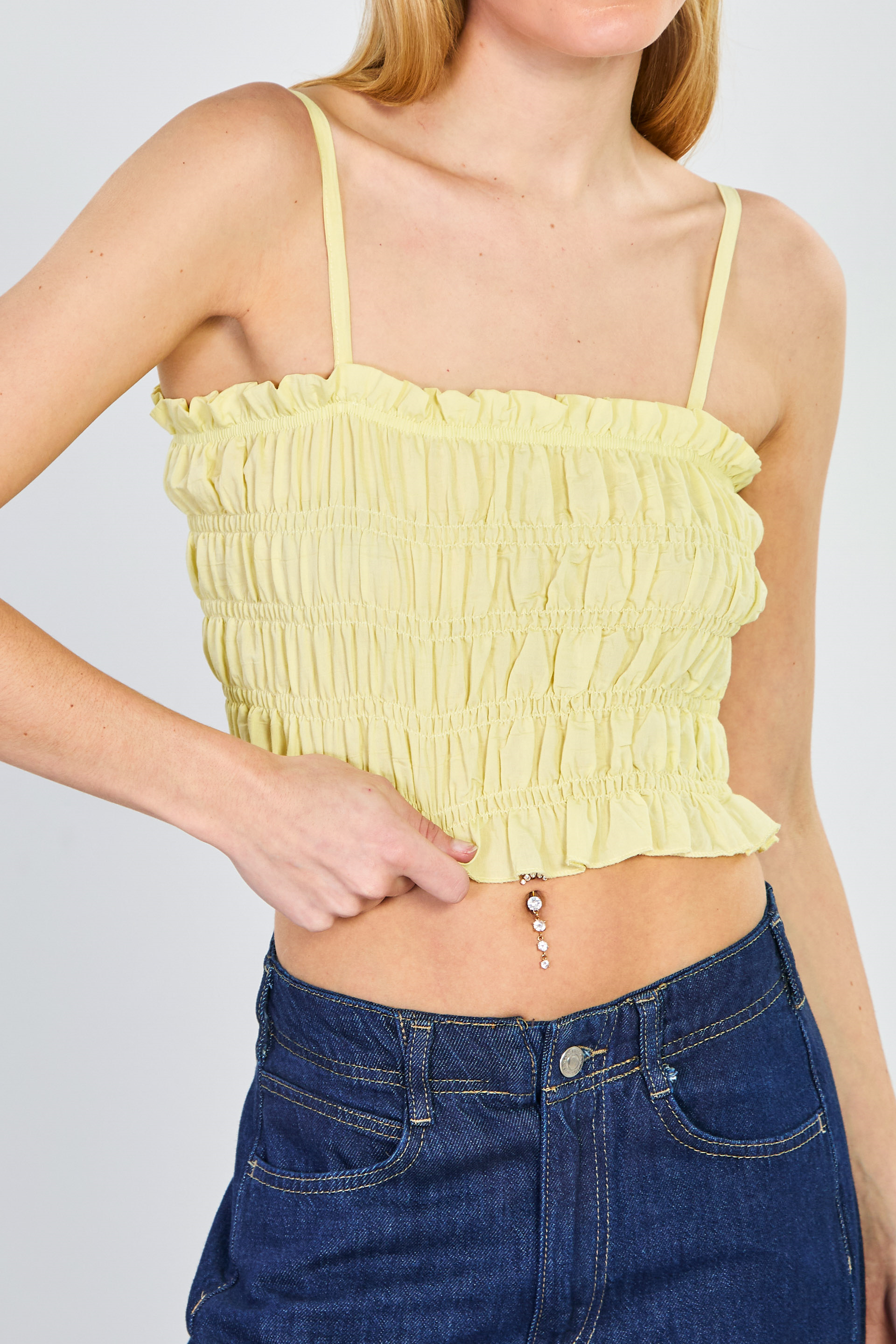 Kadın Gipeli Askılı Crop Bluz - Sarı