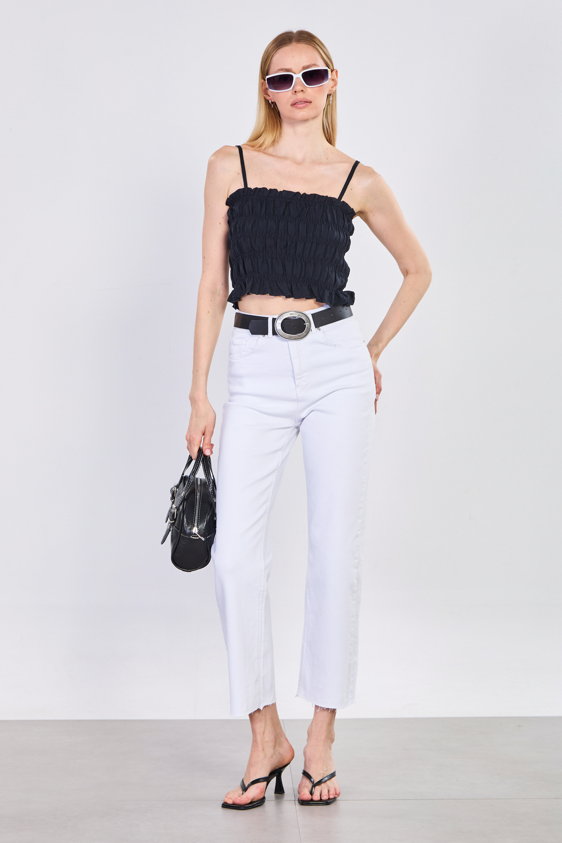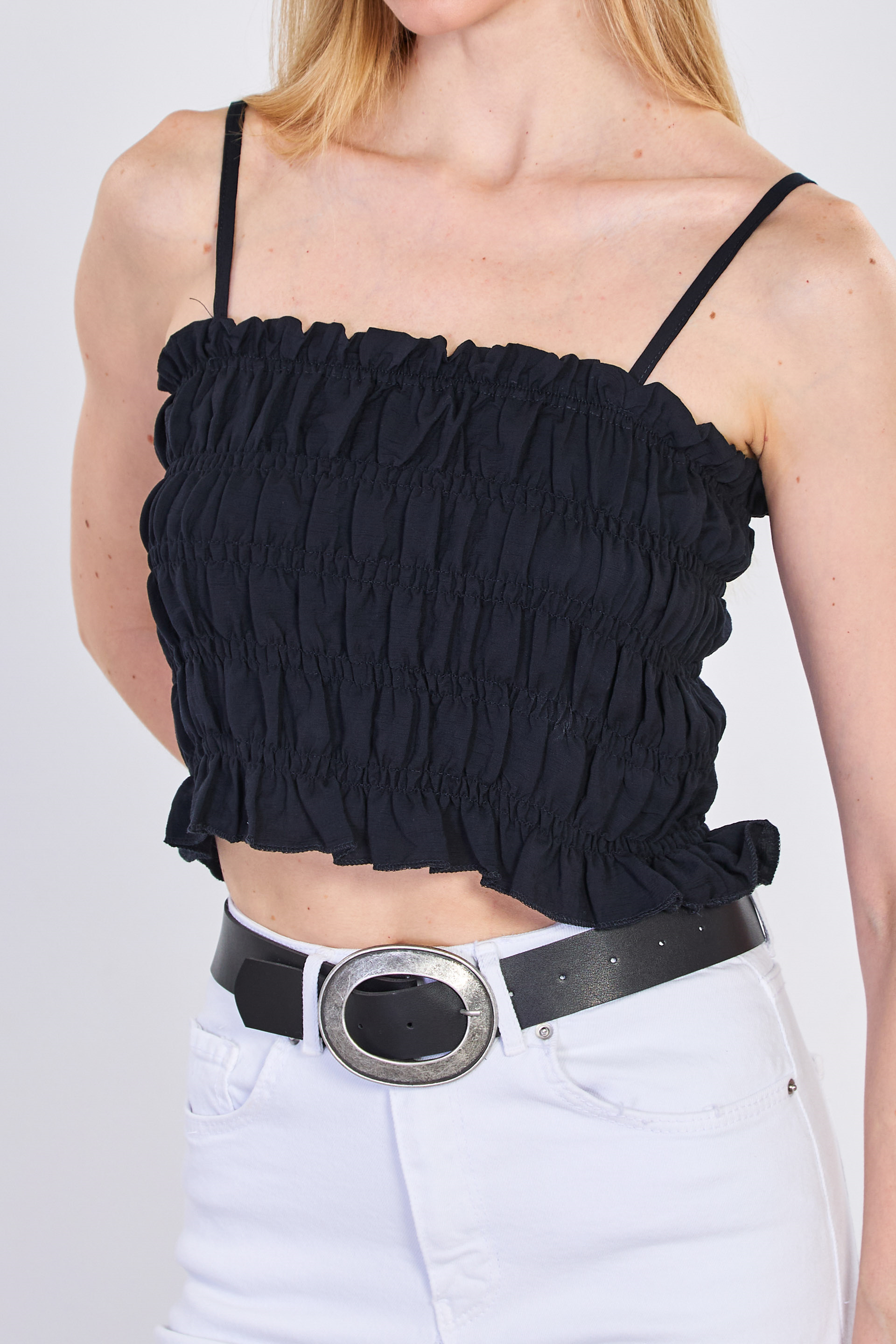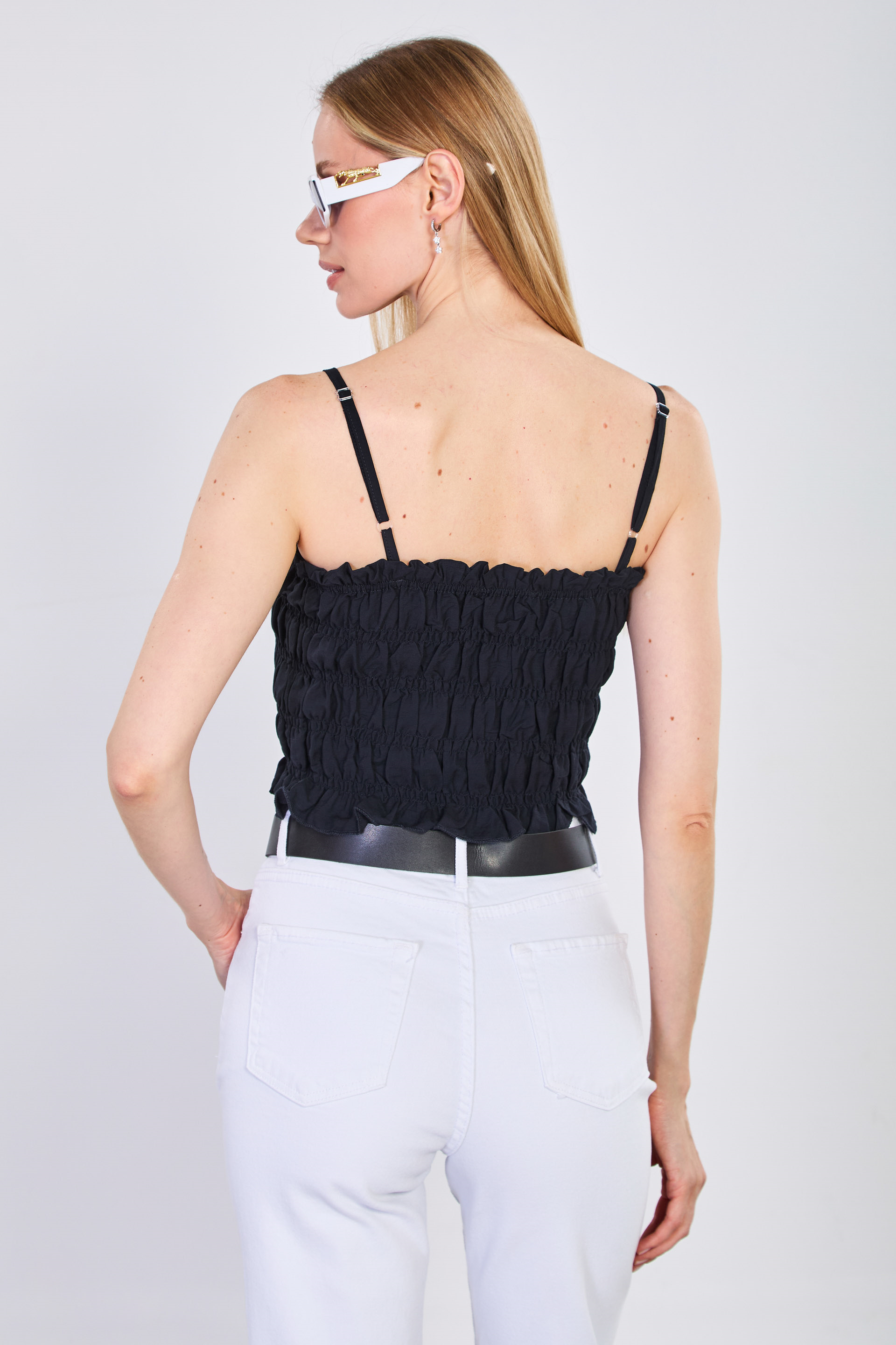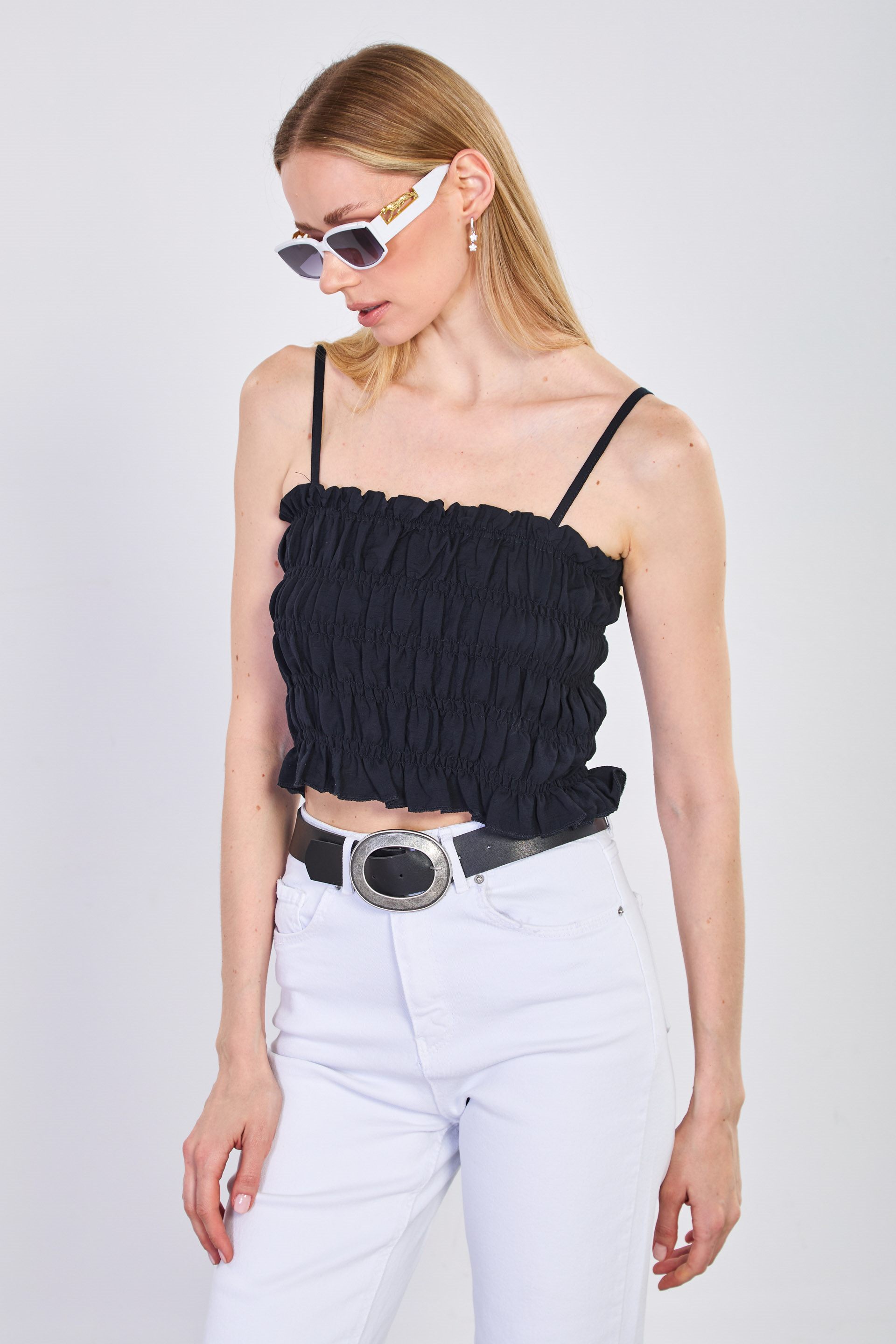 Kadın Gipeli Askılı Crop Bluz - Siyah