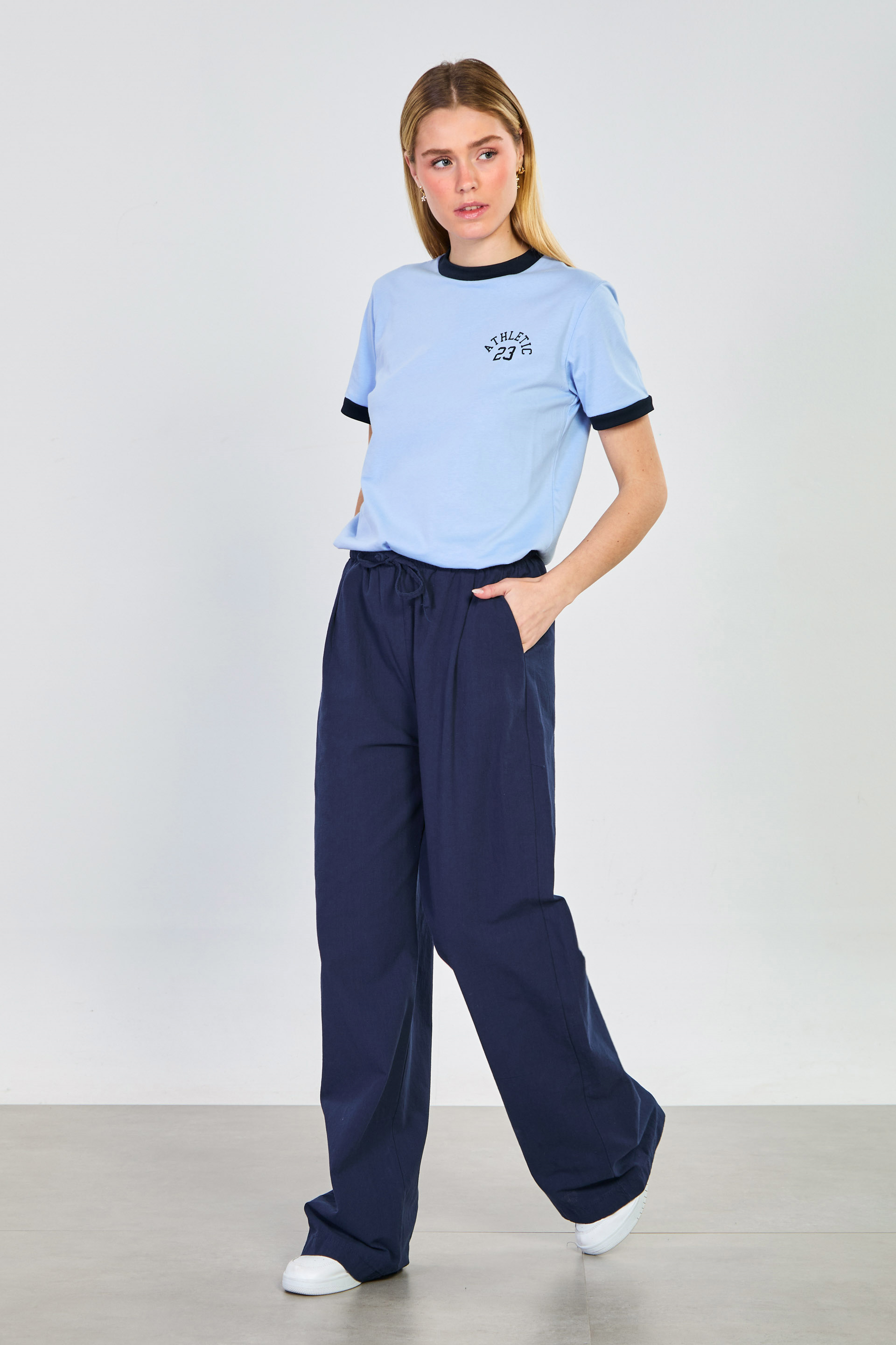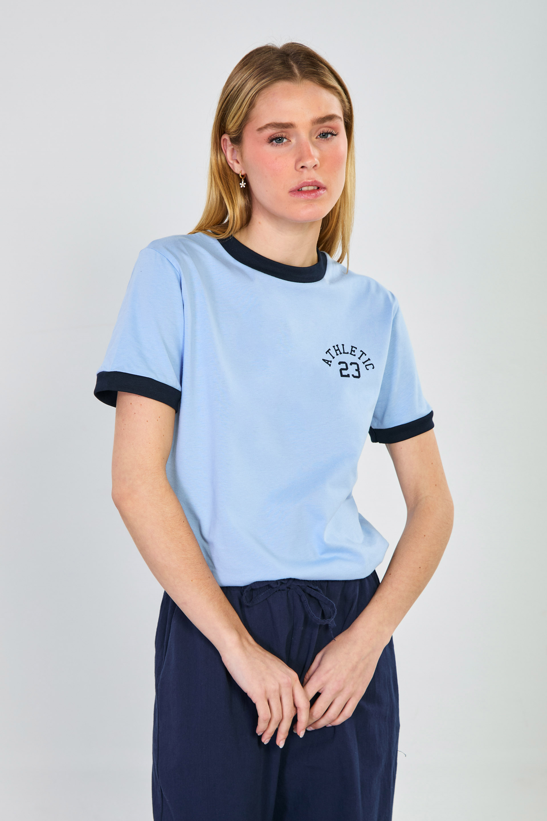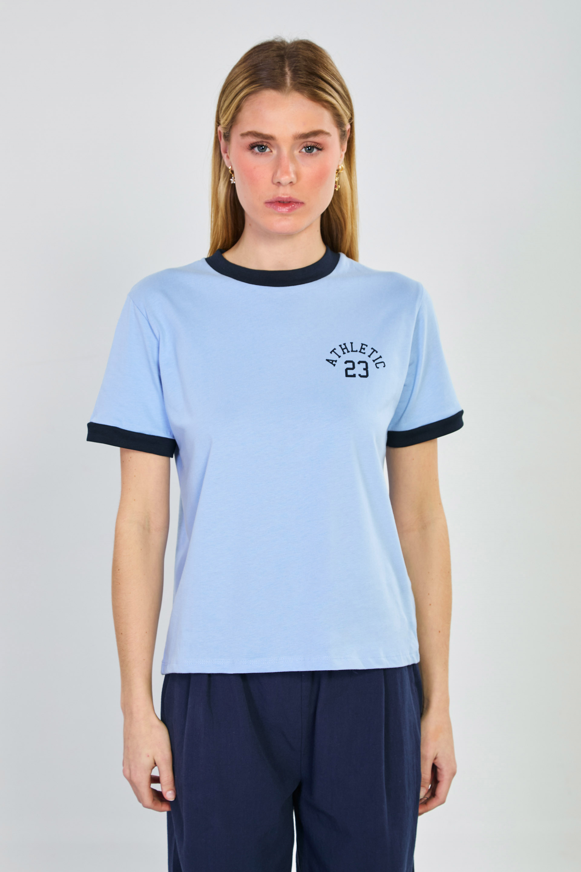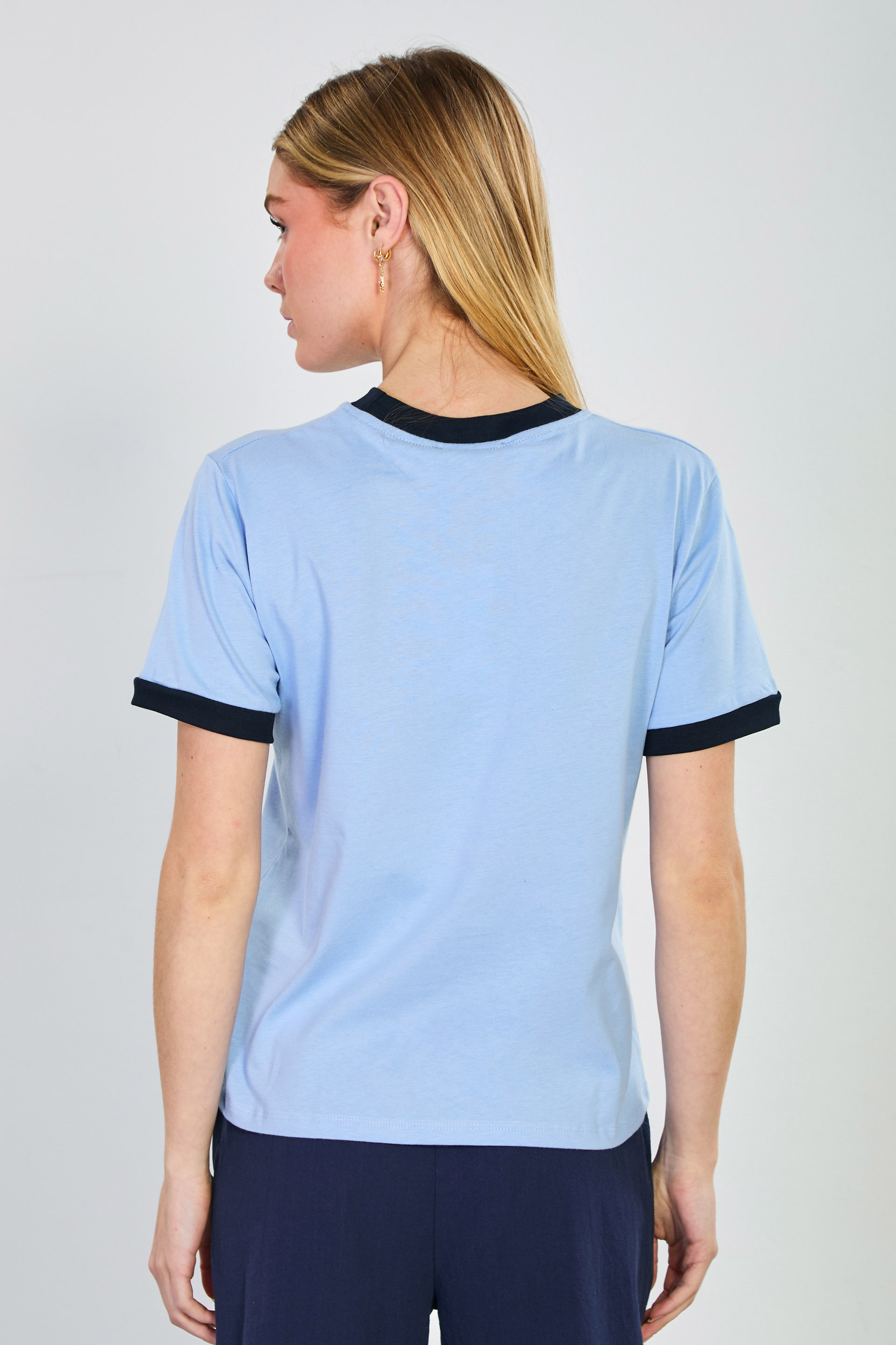 Kadın Göğüs Baskılı Garnili T-Shirt - Mavi