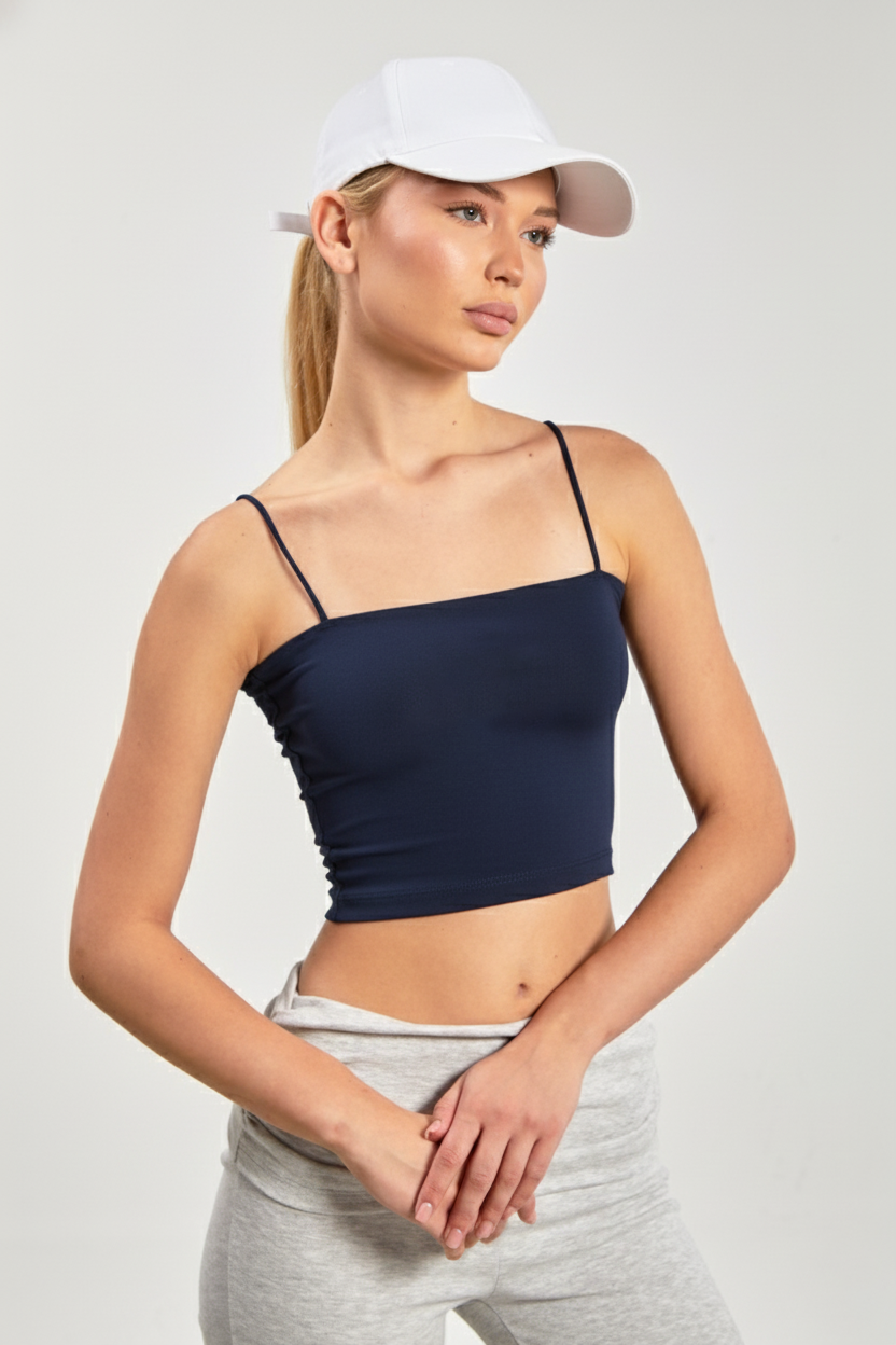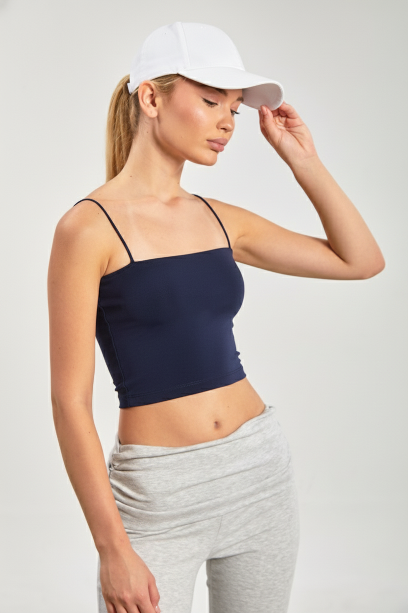 Kadın Göğüs Pedli Askılı Atlet - Koyu Lacivert