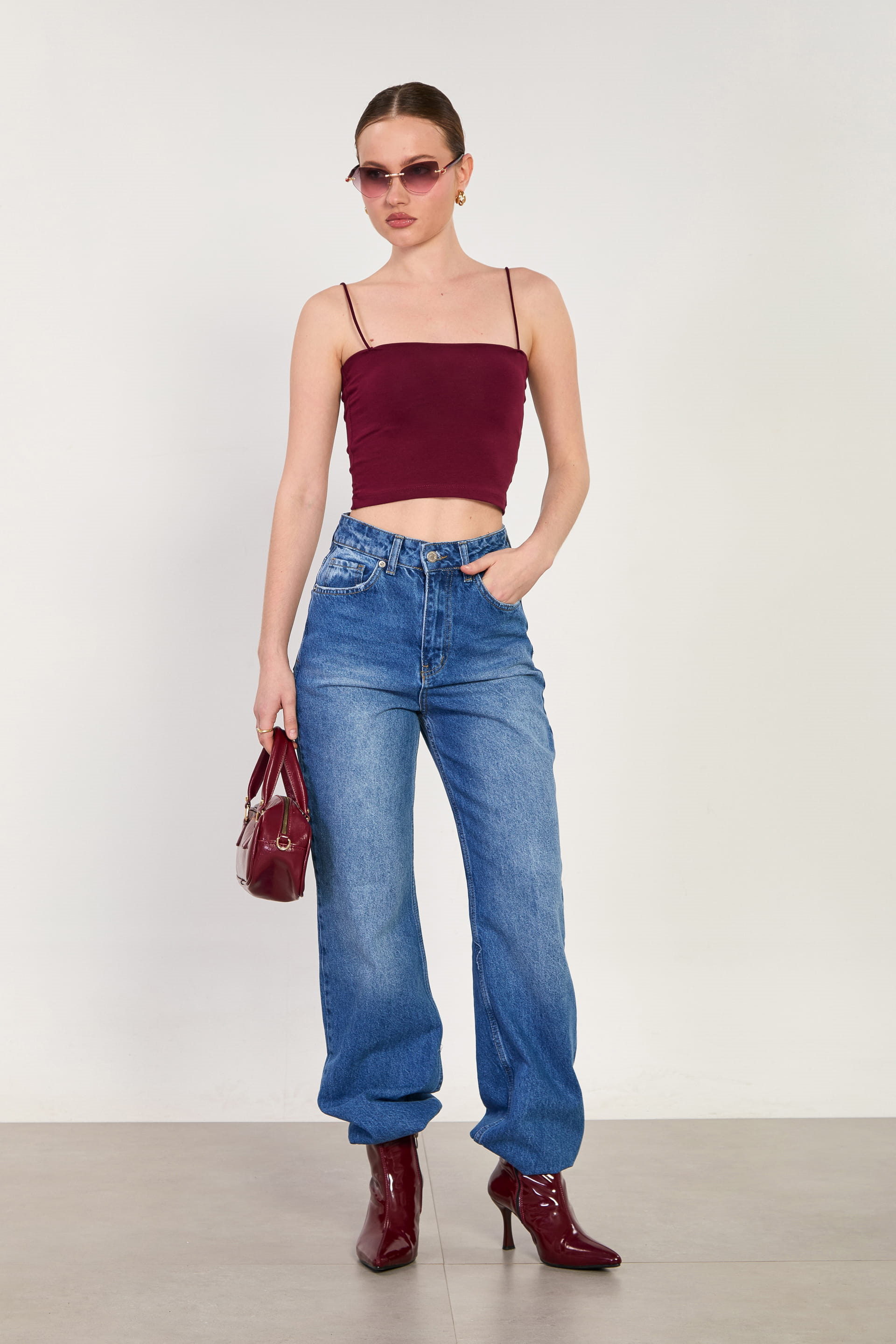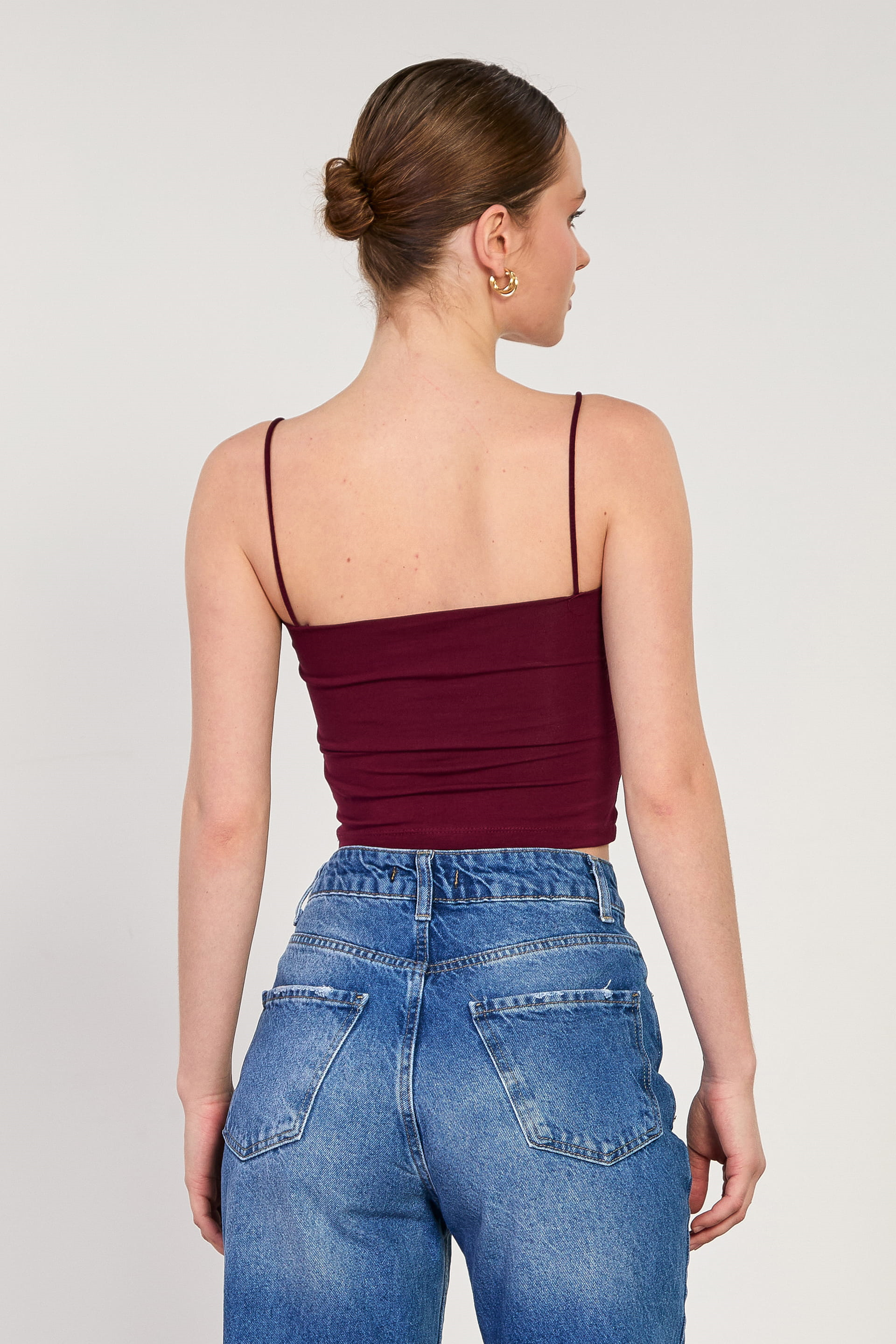 Kadın Göğsü Pedli Askılı Crop Atlet - Bordo