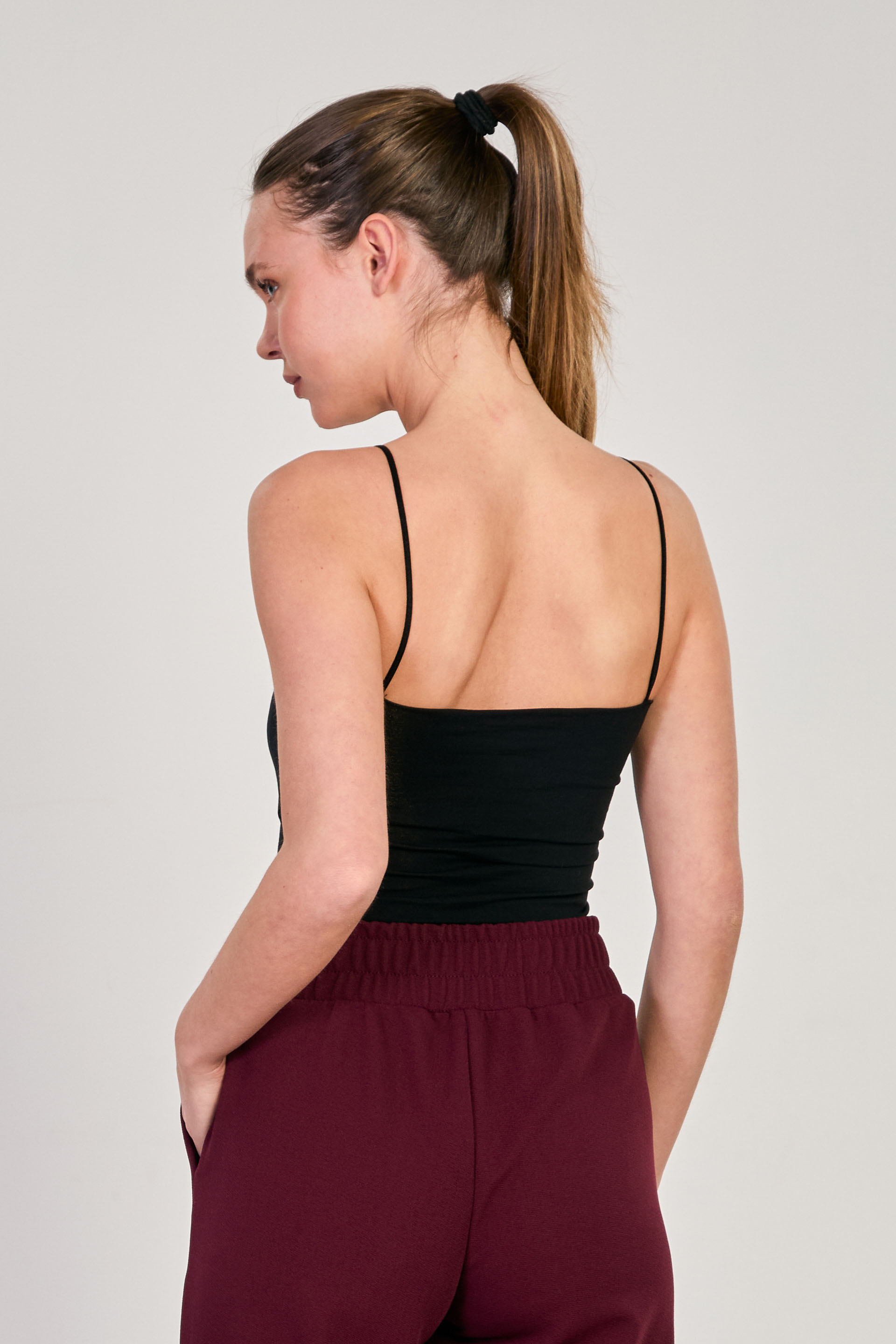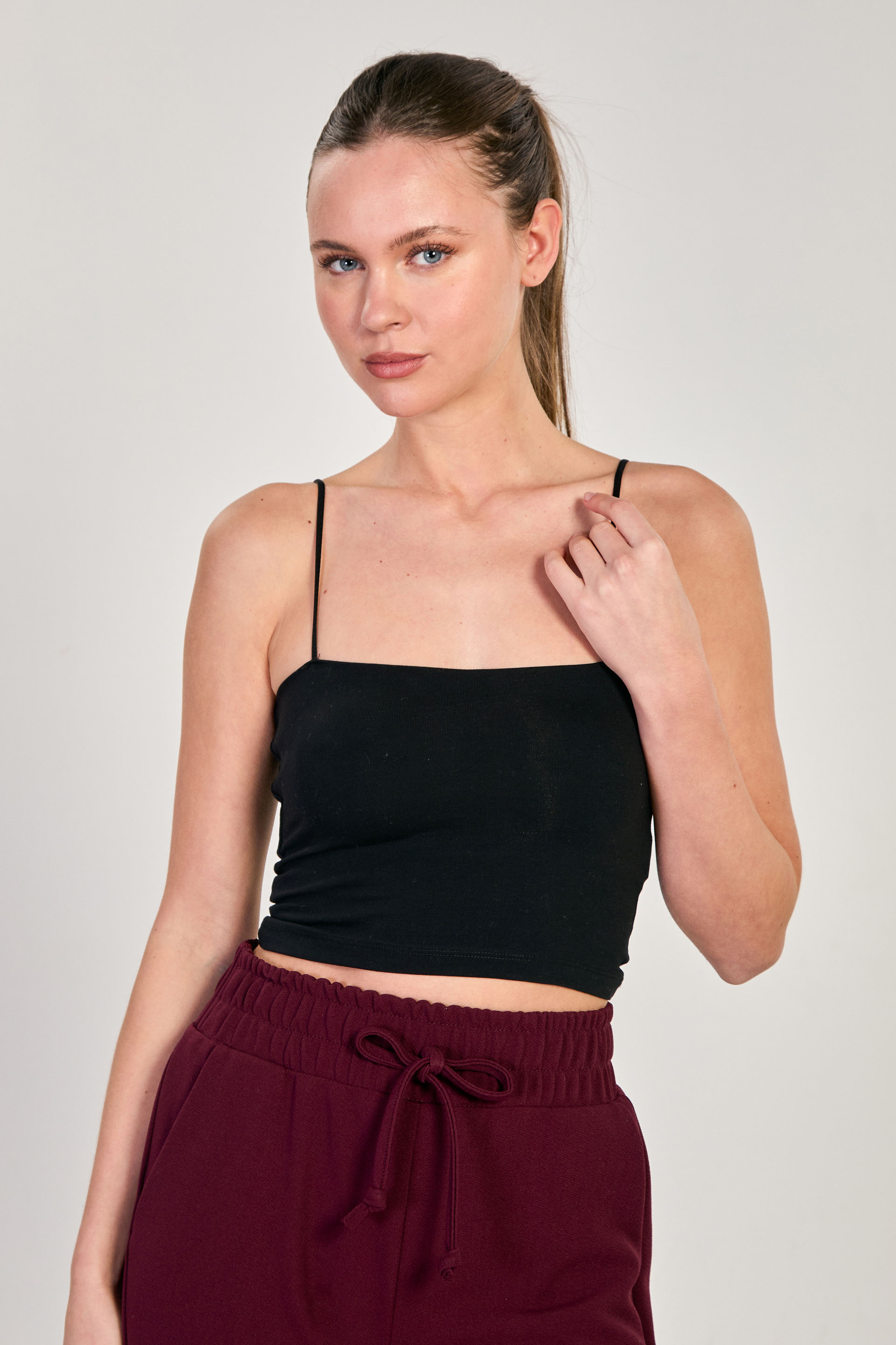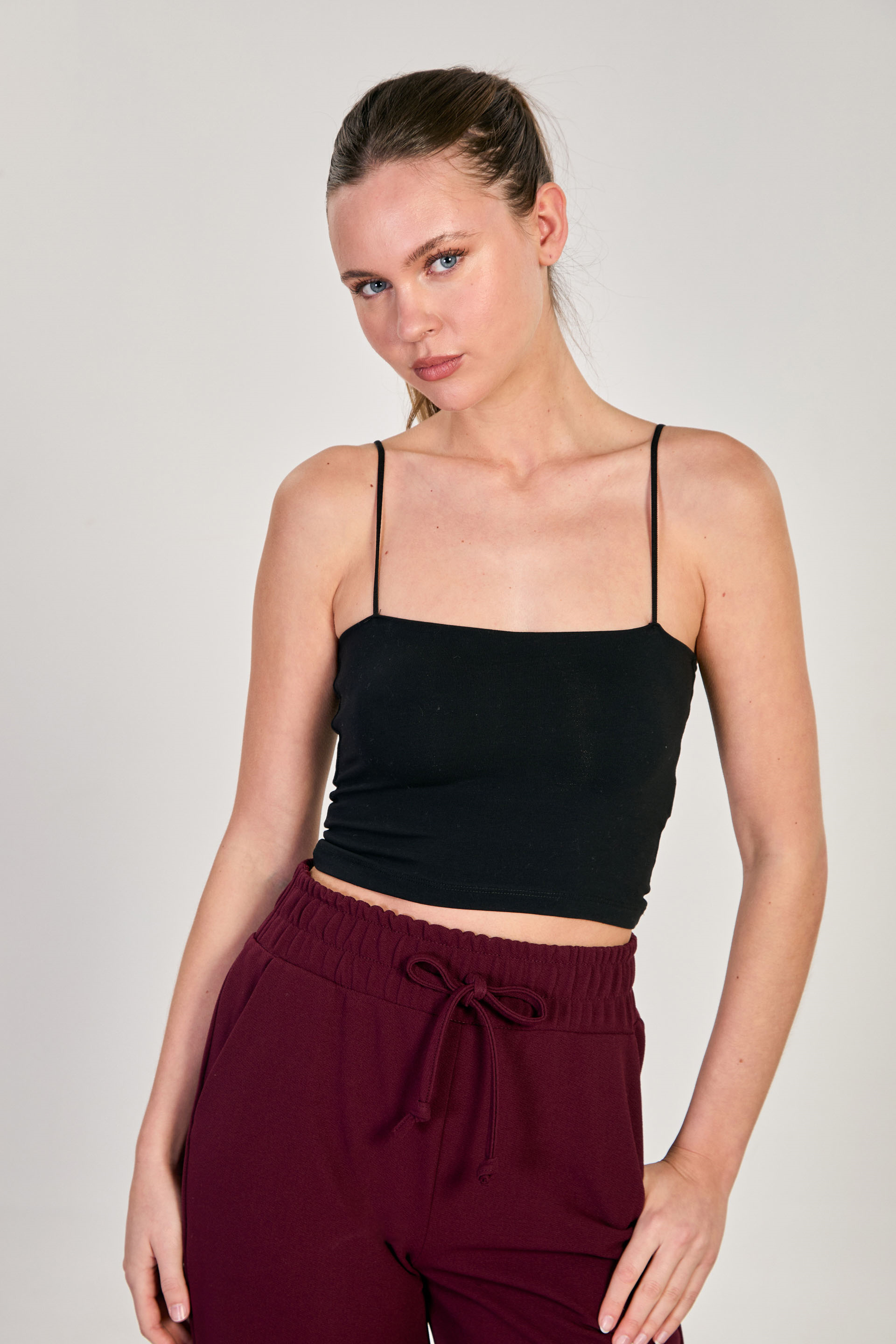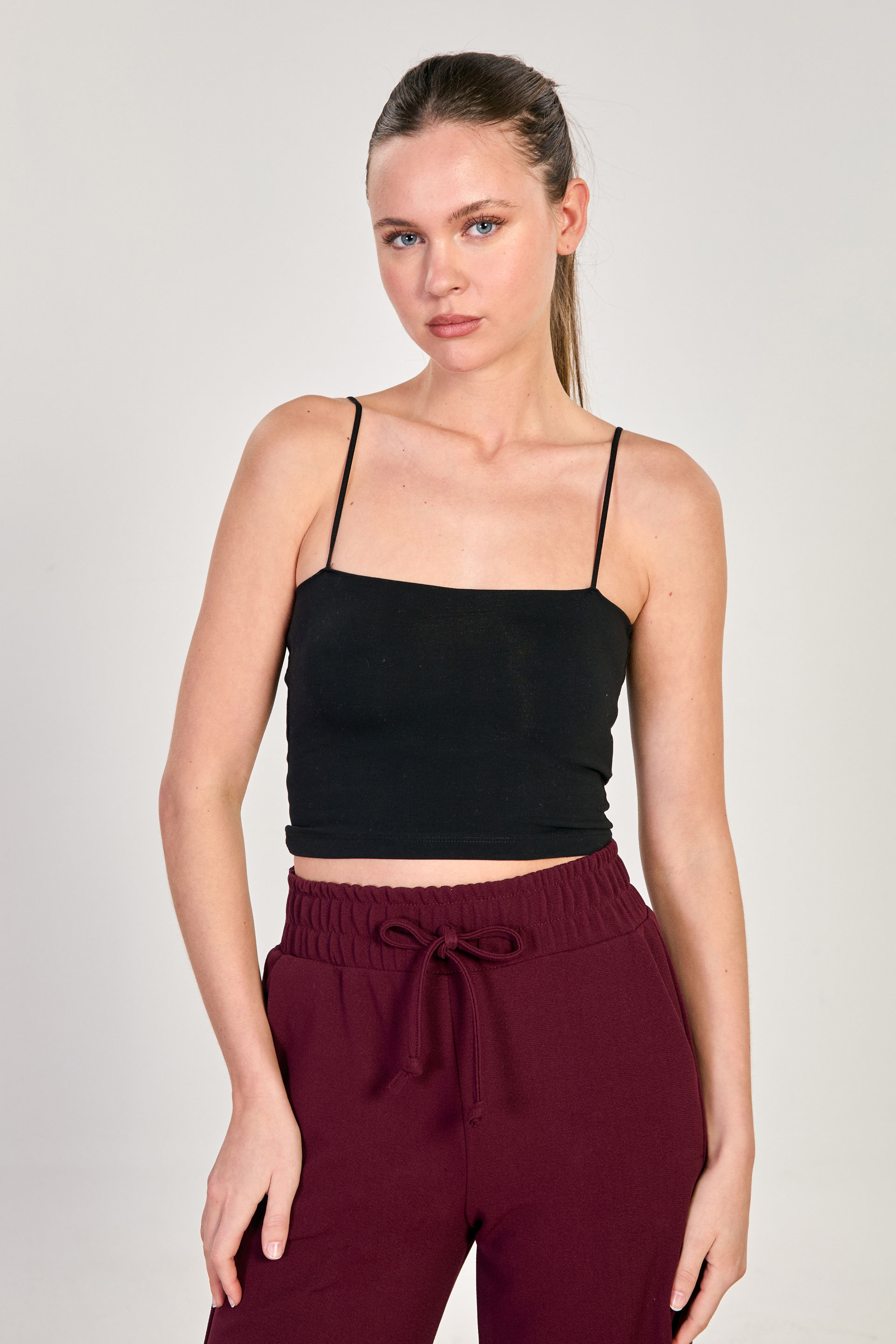 Kadın Göğüs Pedli Askılı Crop Atlet - Siyah