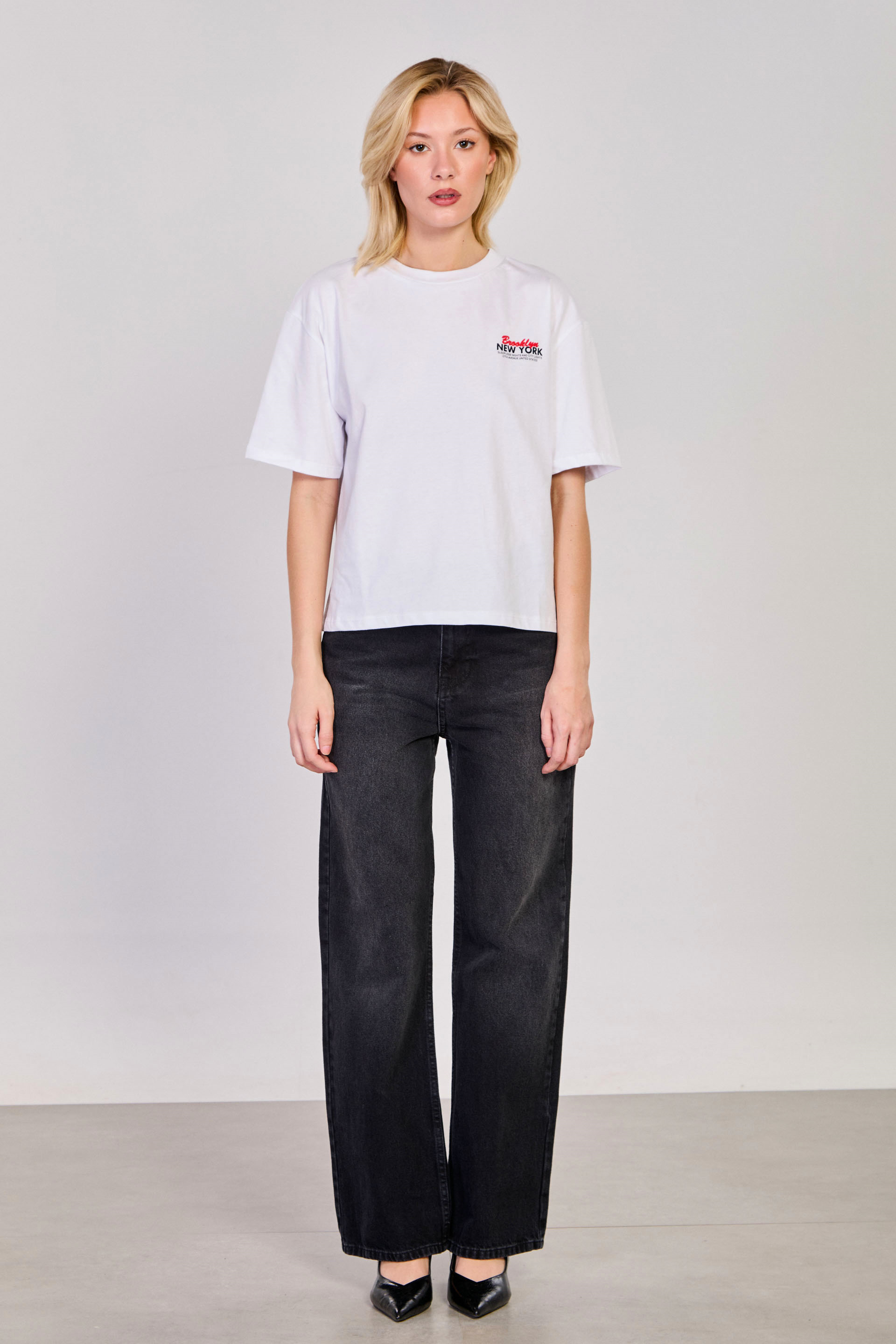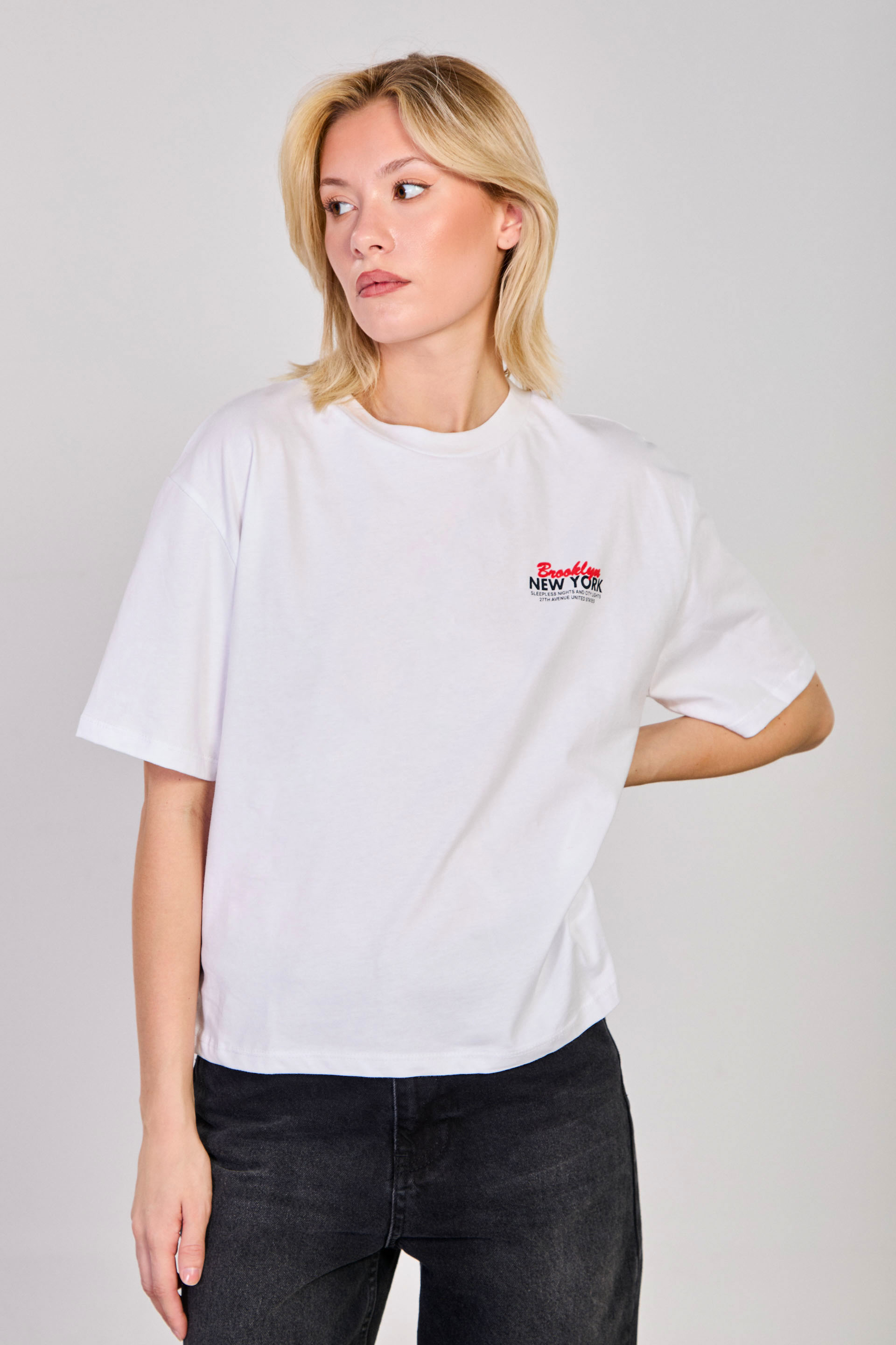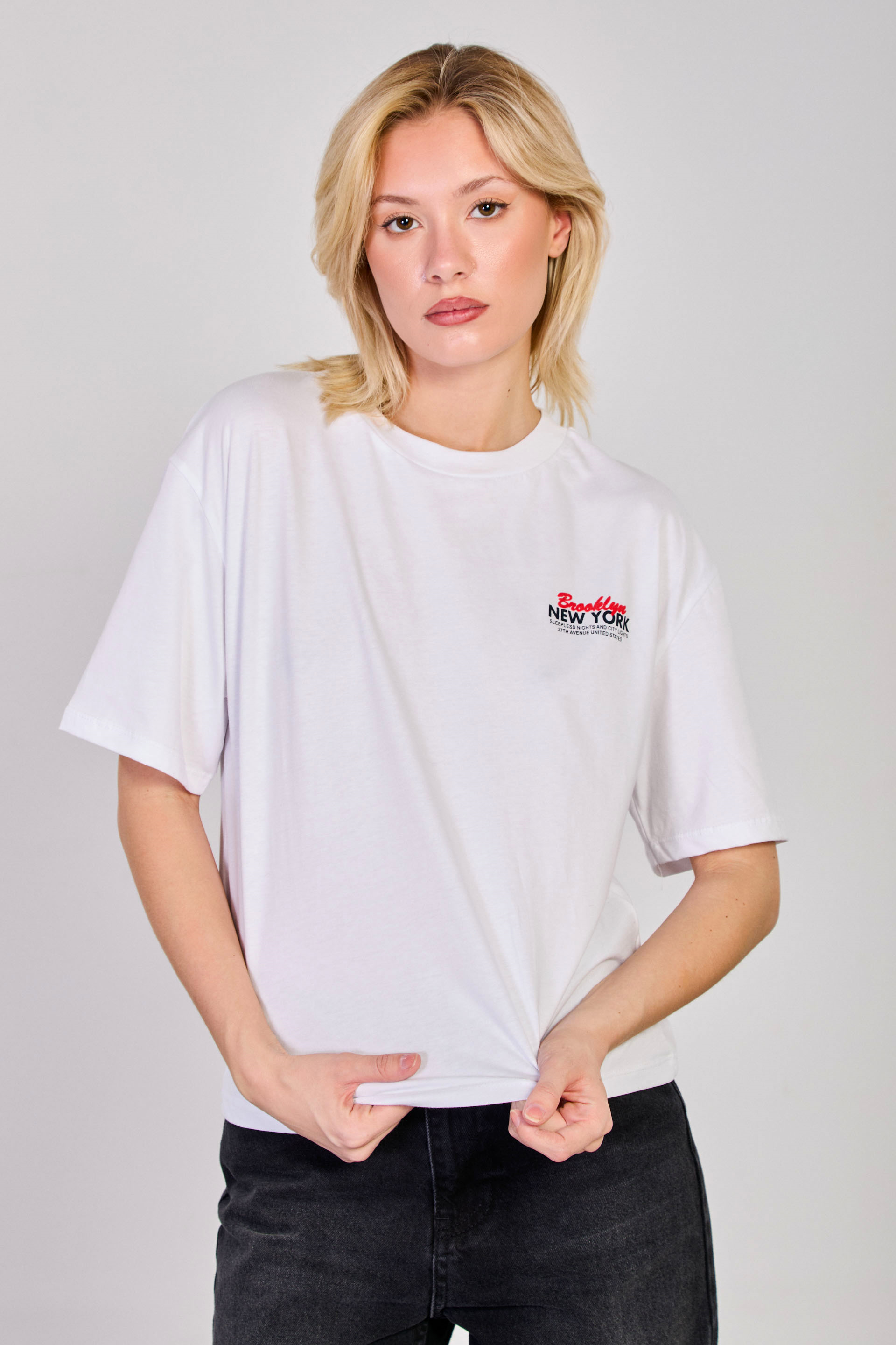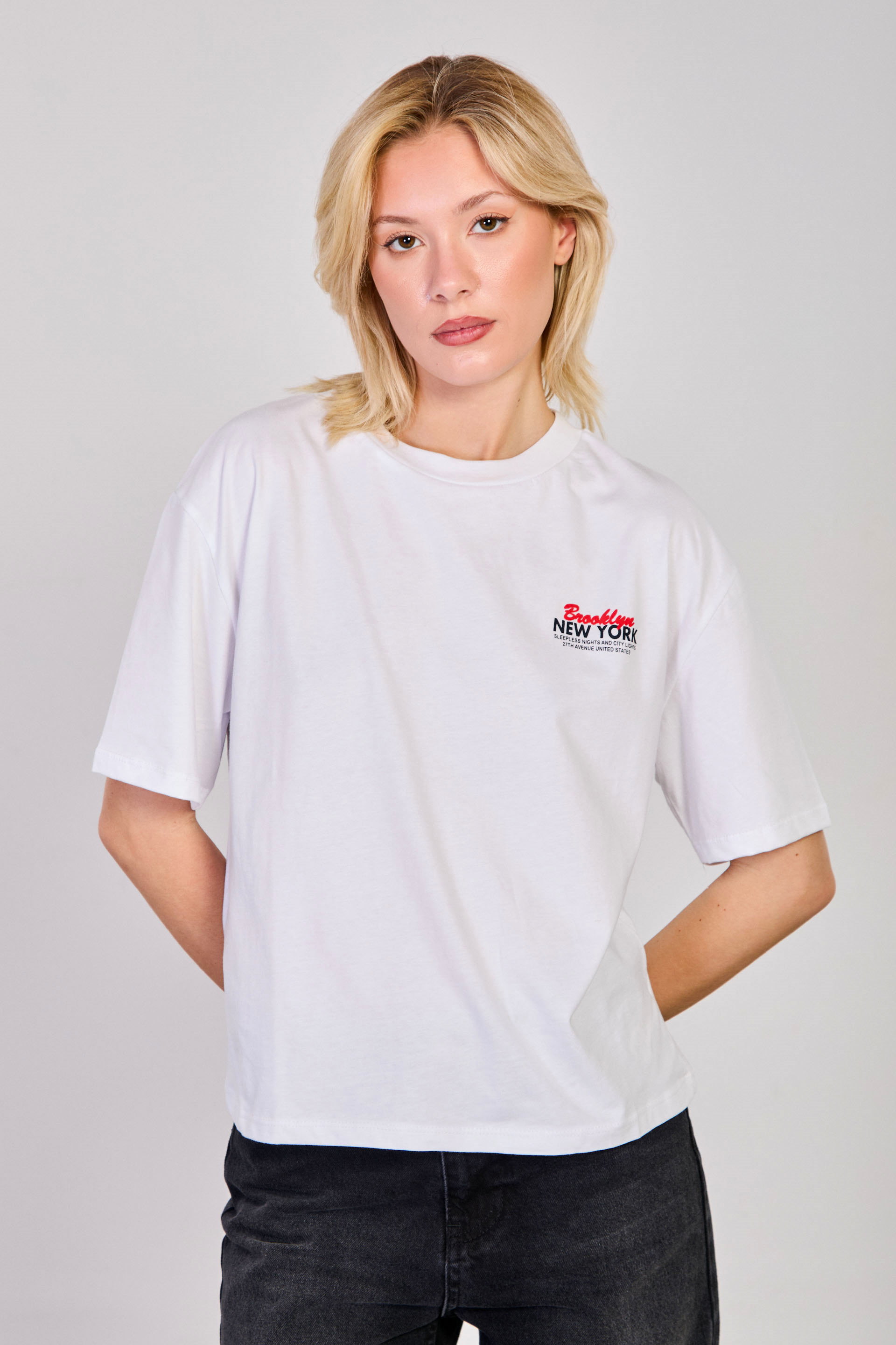 Kadın Göğüs ve Arka Baskılı T-Shirt - Beyaz