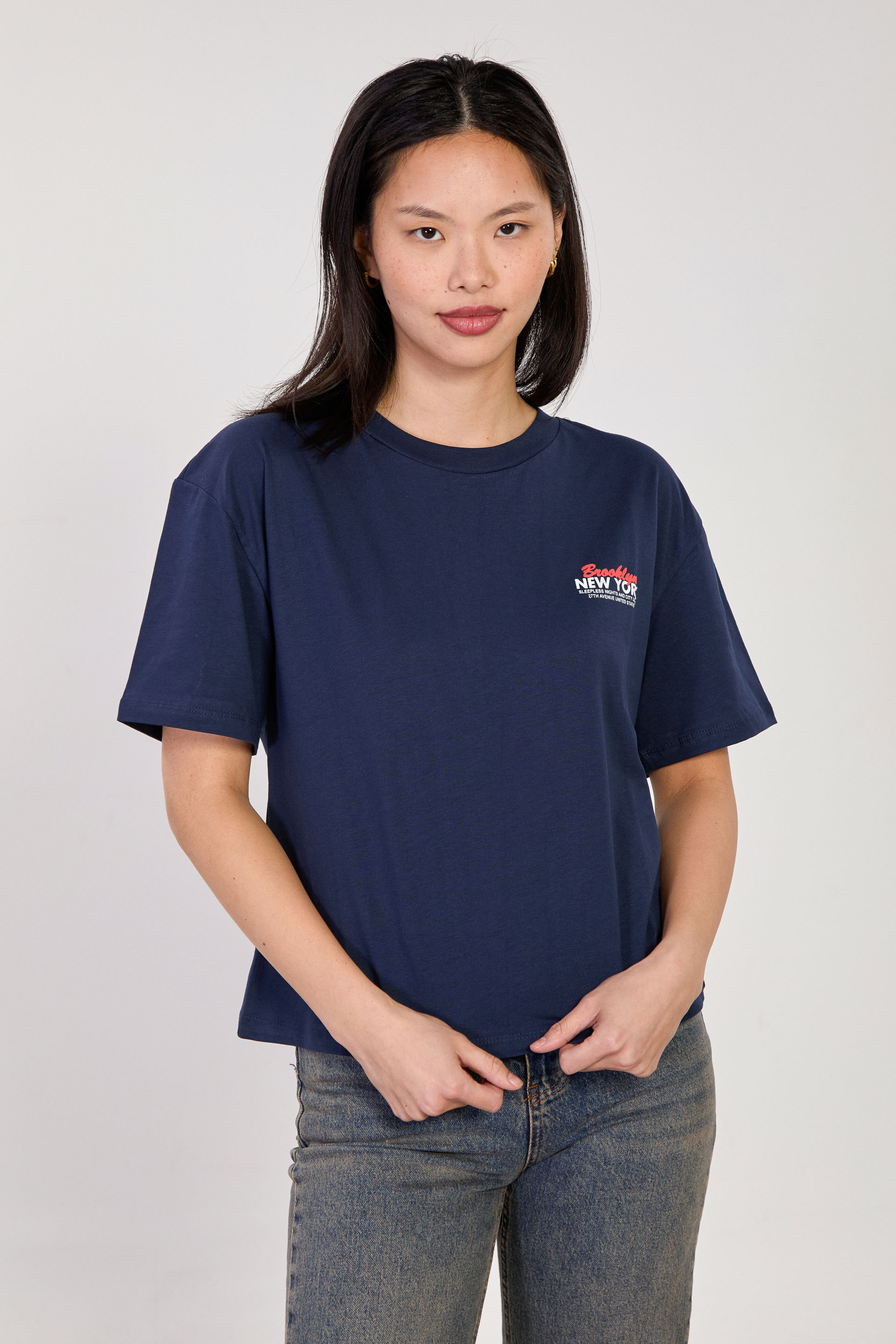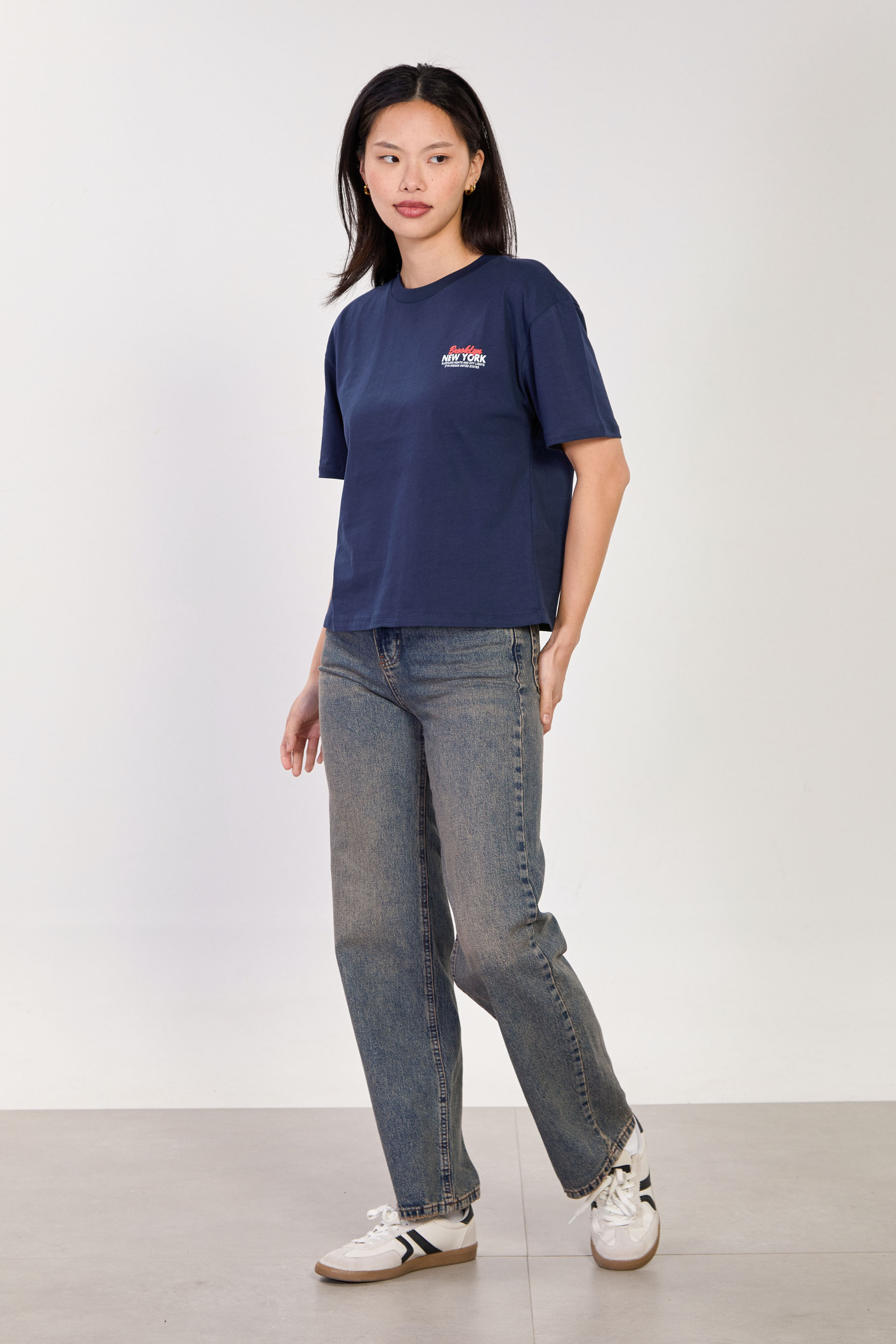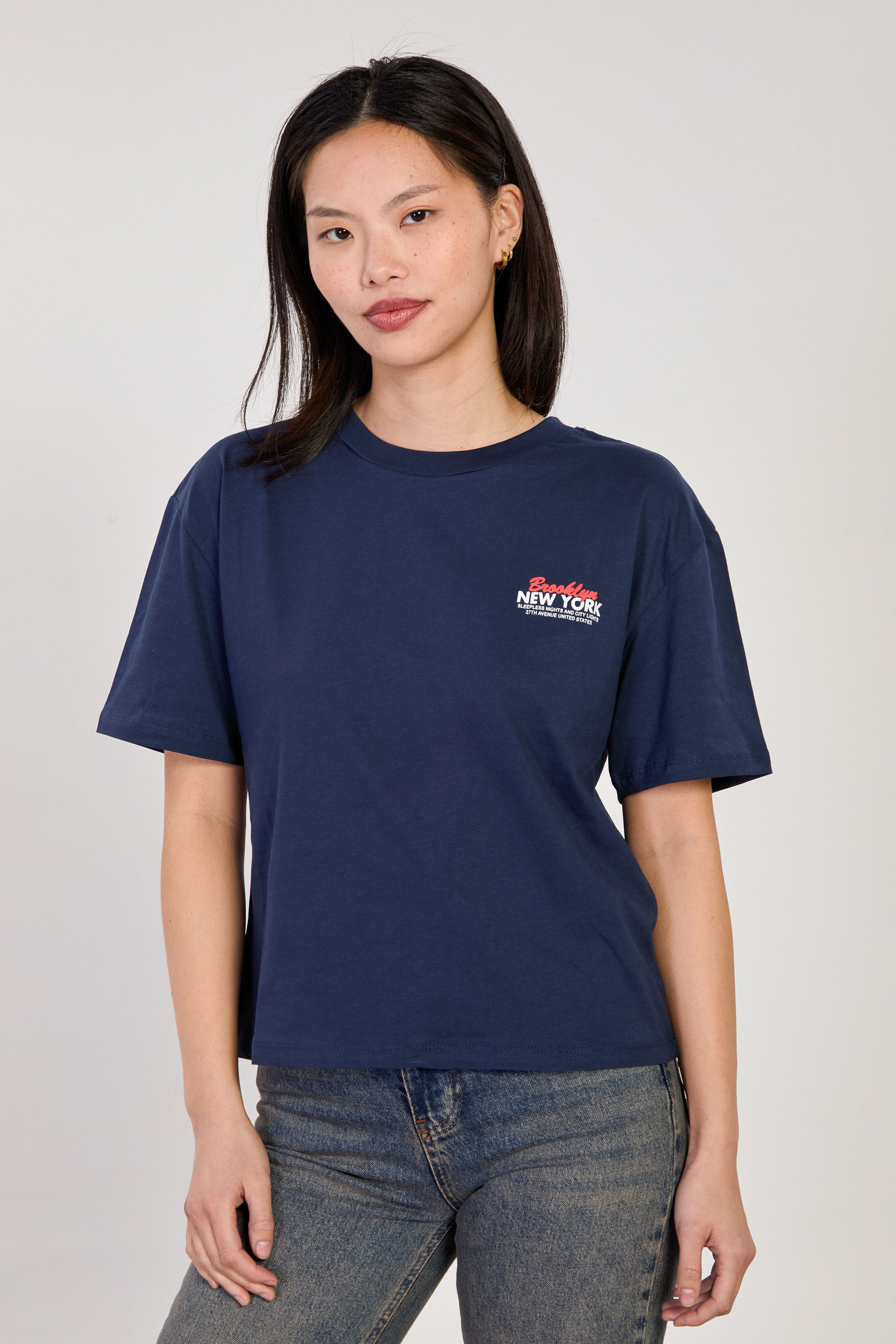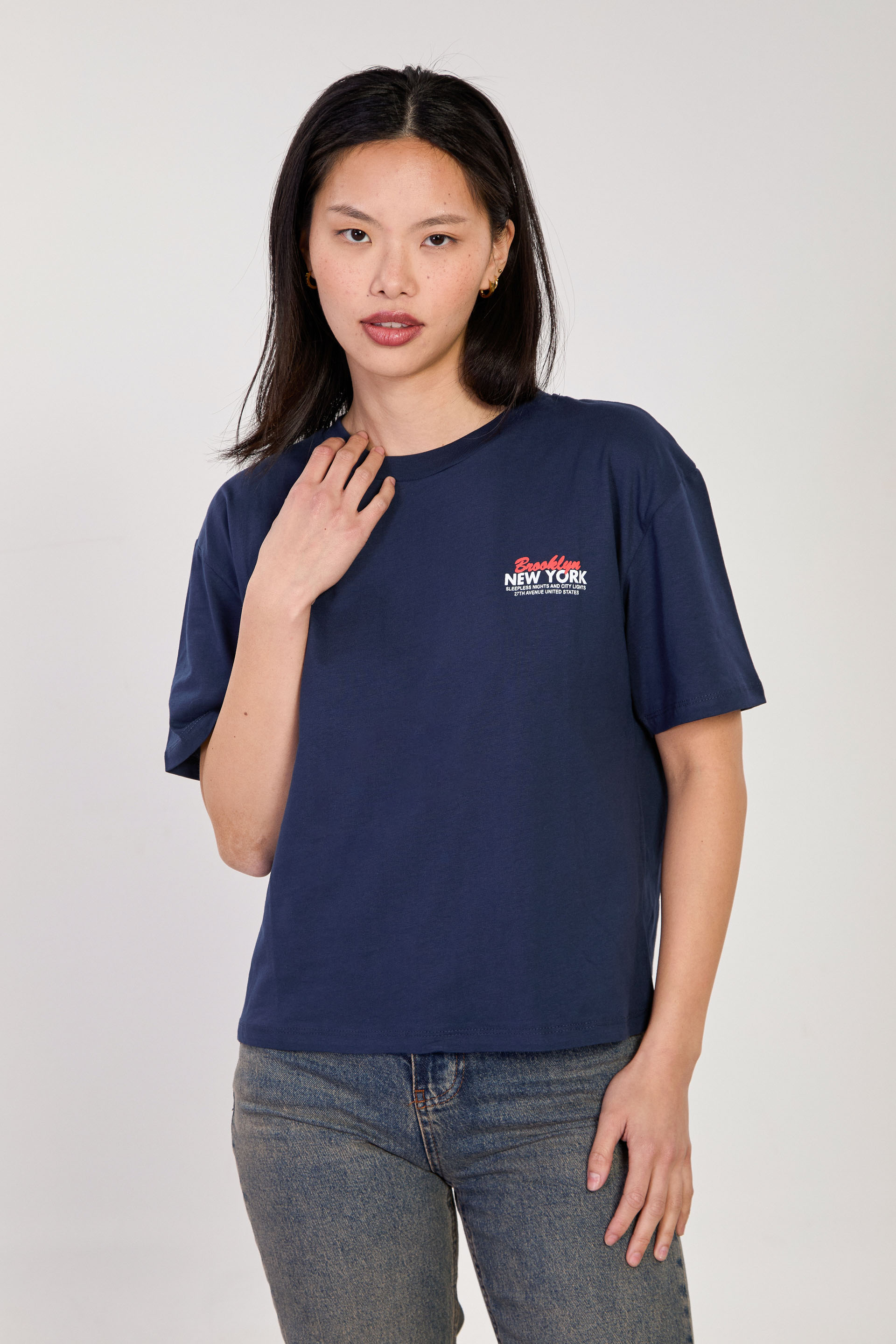 Kadın Göğüs ve Arka Baskılı T-Shirt - Lacivert