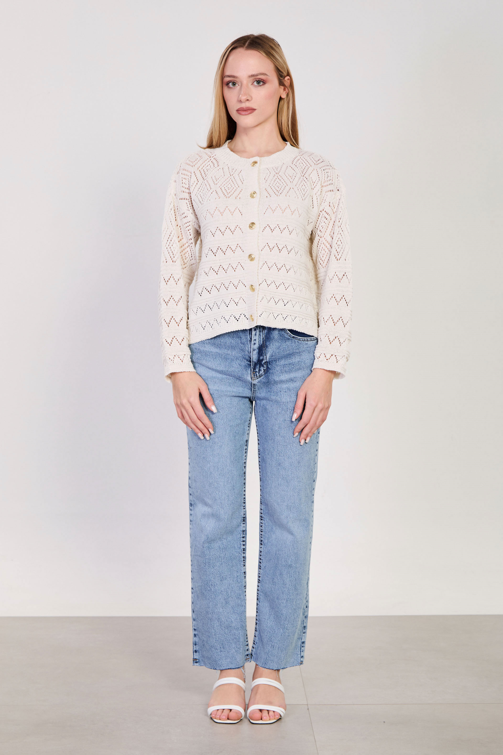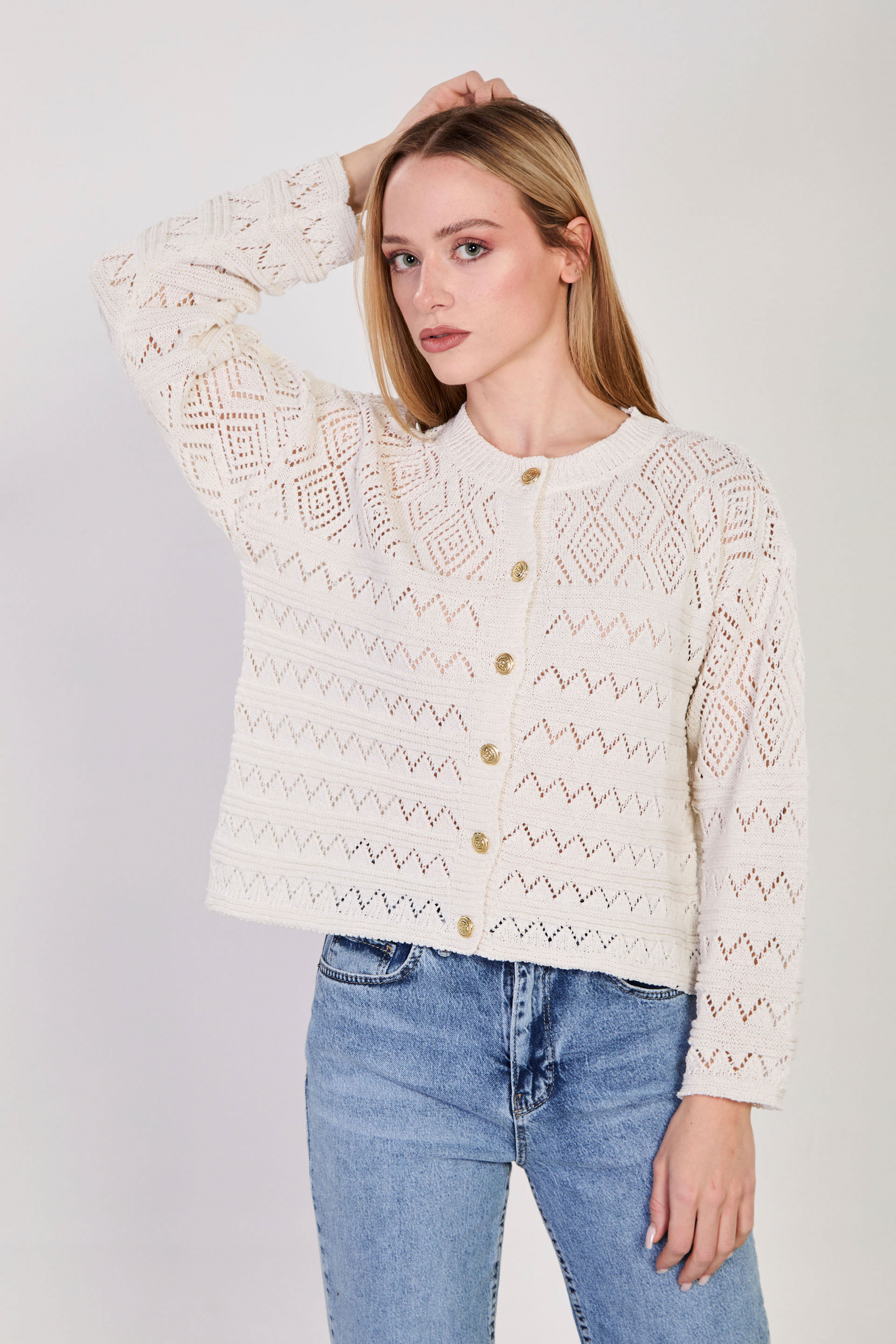 Kadın Gold Düğmeli Ajurlu Hırka - Natural