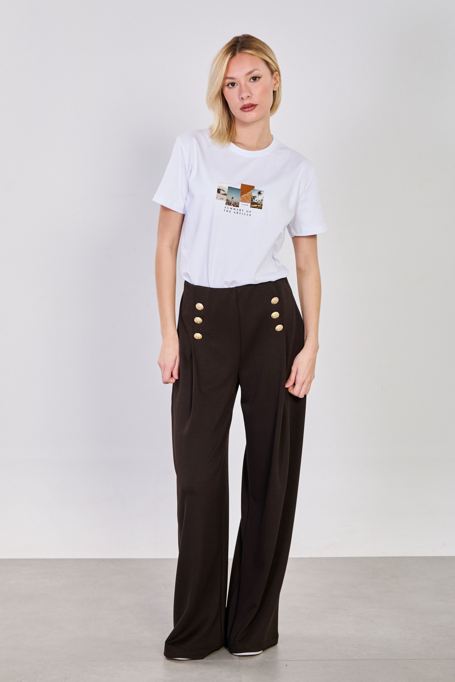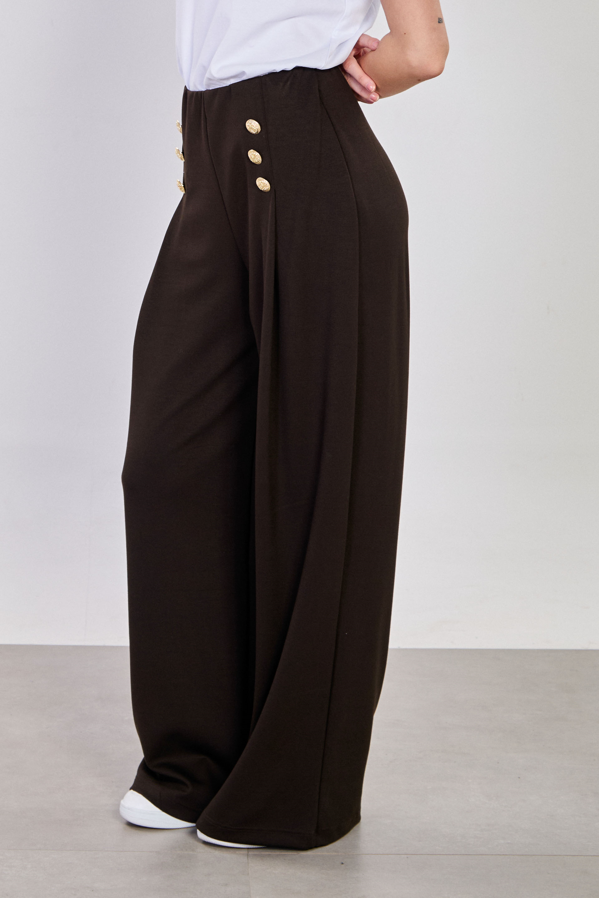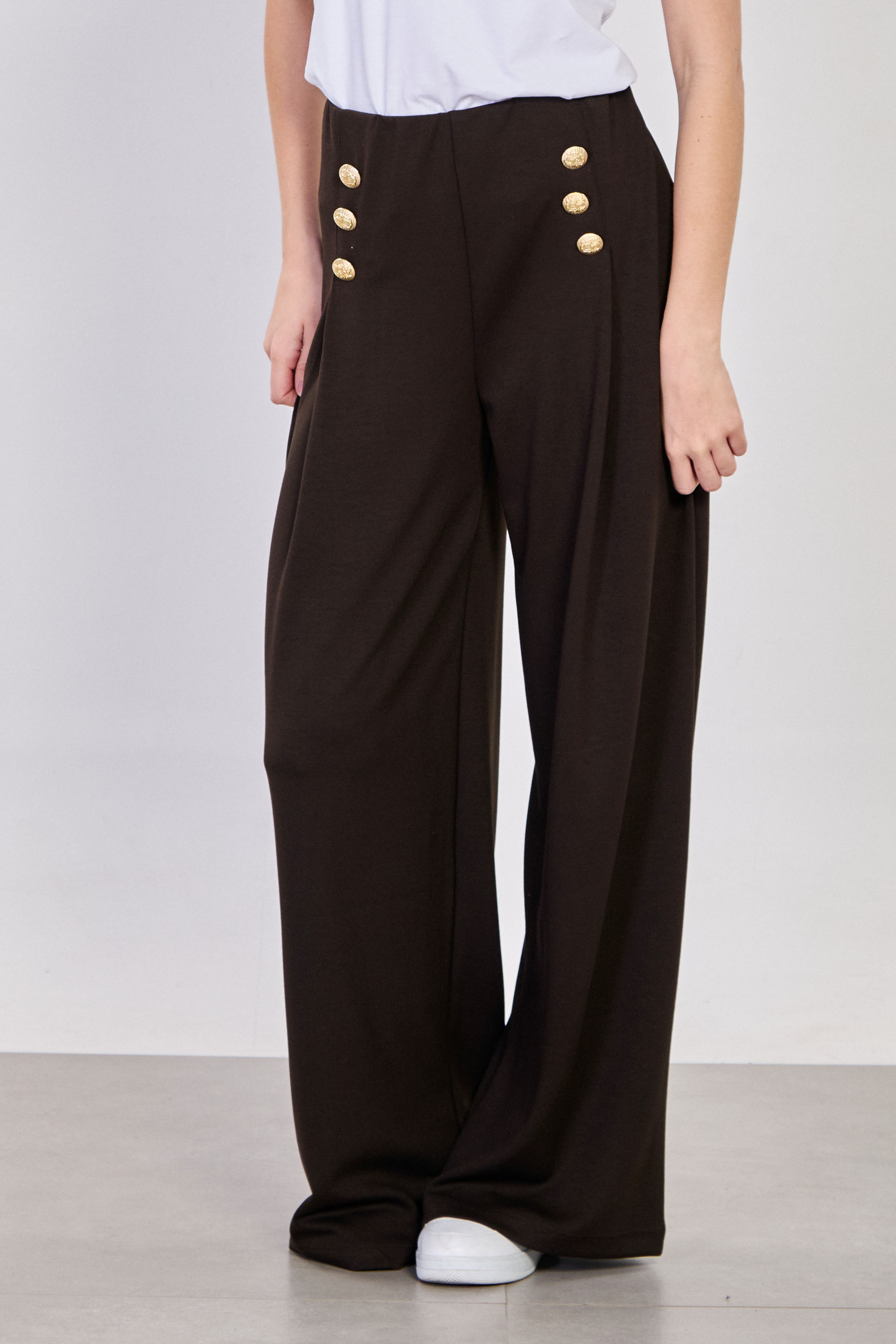 Kadın Gold Düğmeli Pensli Bol Pantolon - Kahve