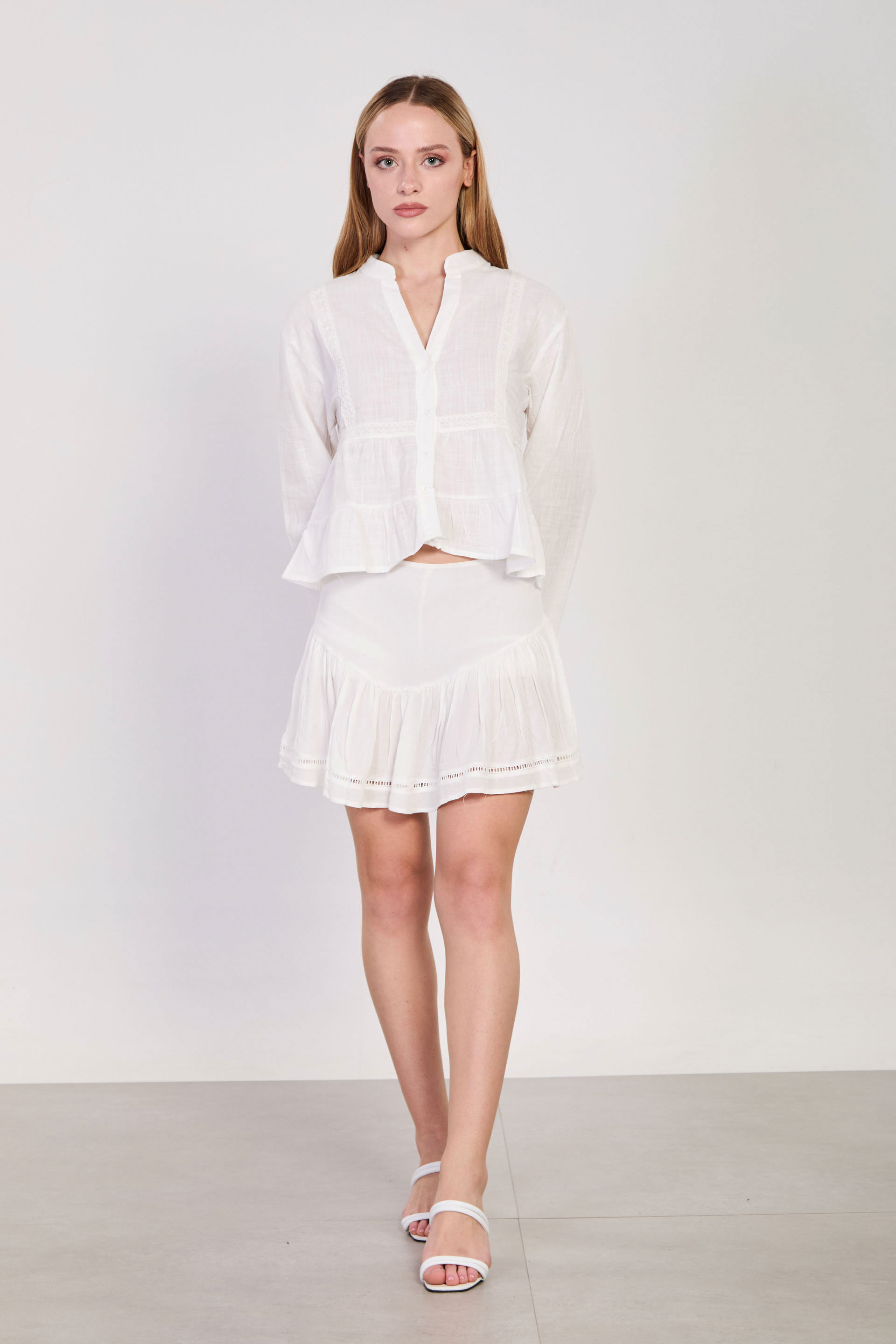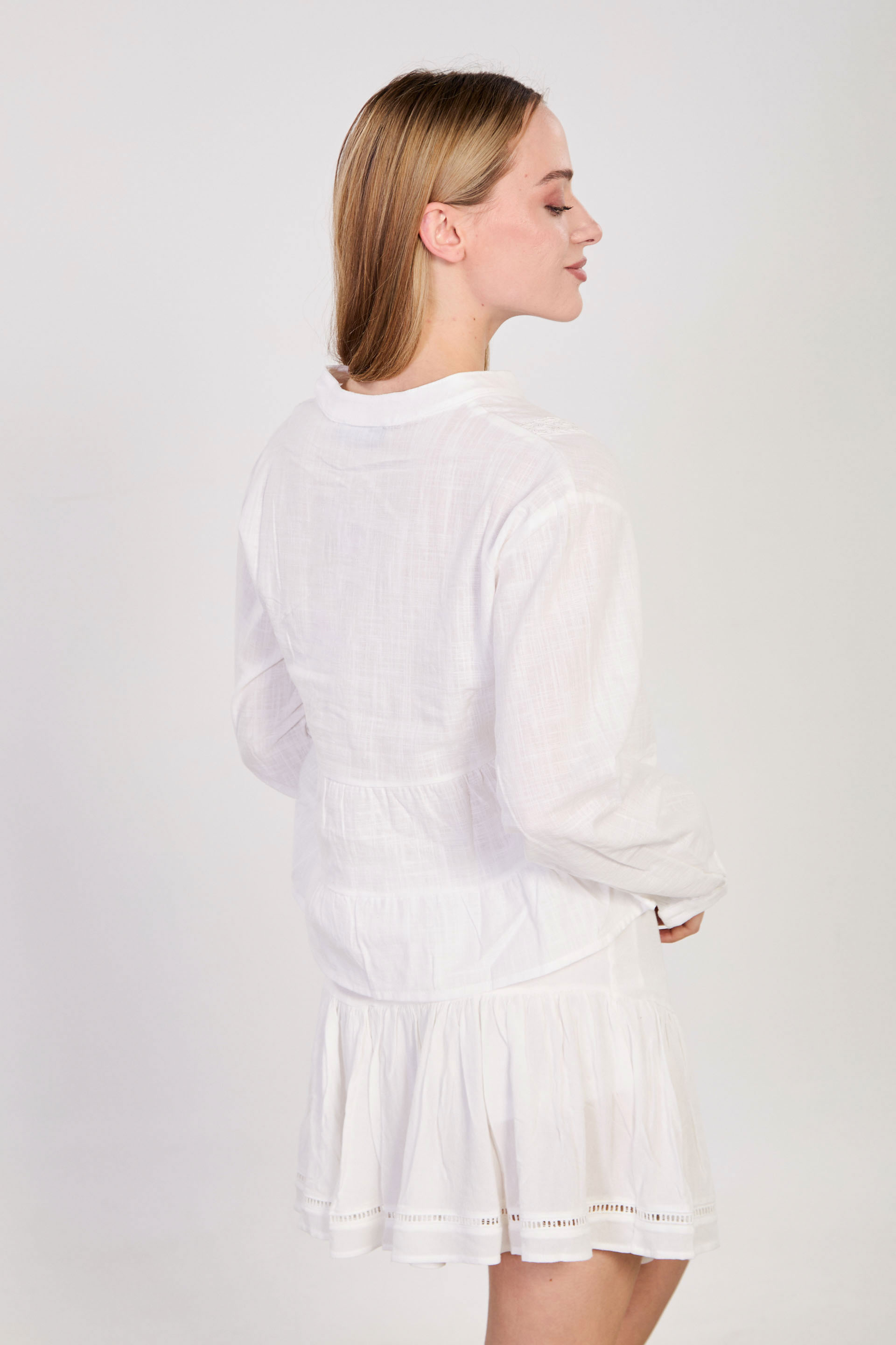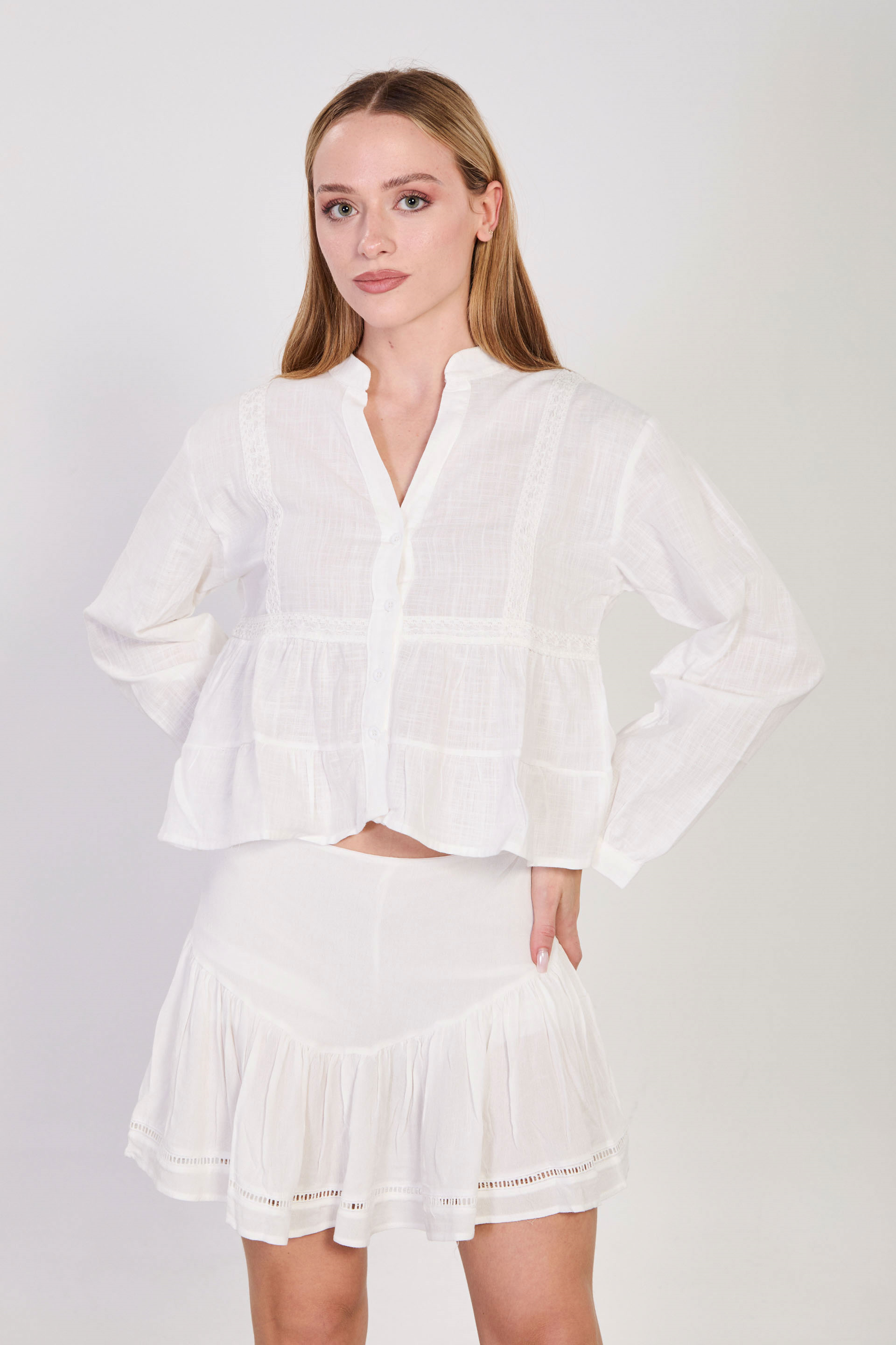 Kadın Hakim Yaka Dantel Detaylı Bluz - Ekru