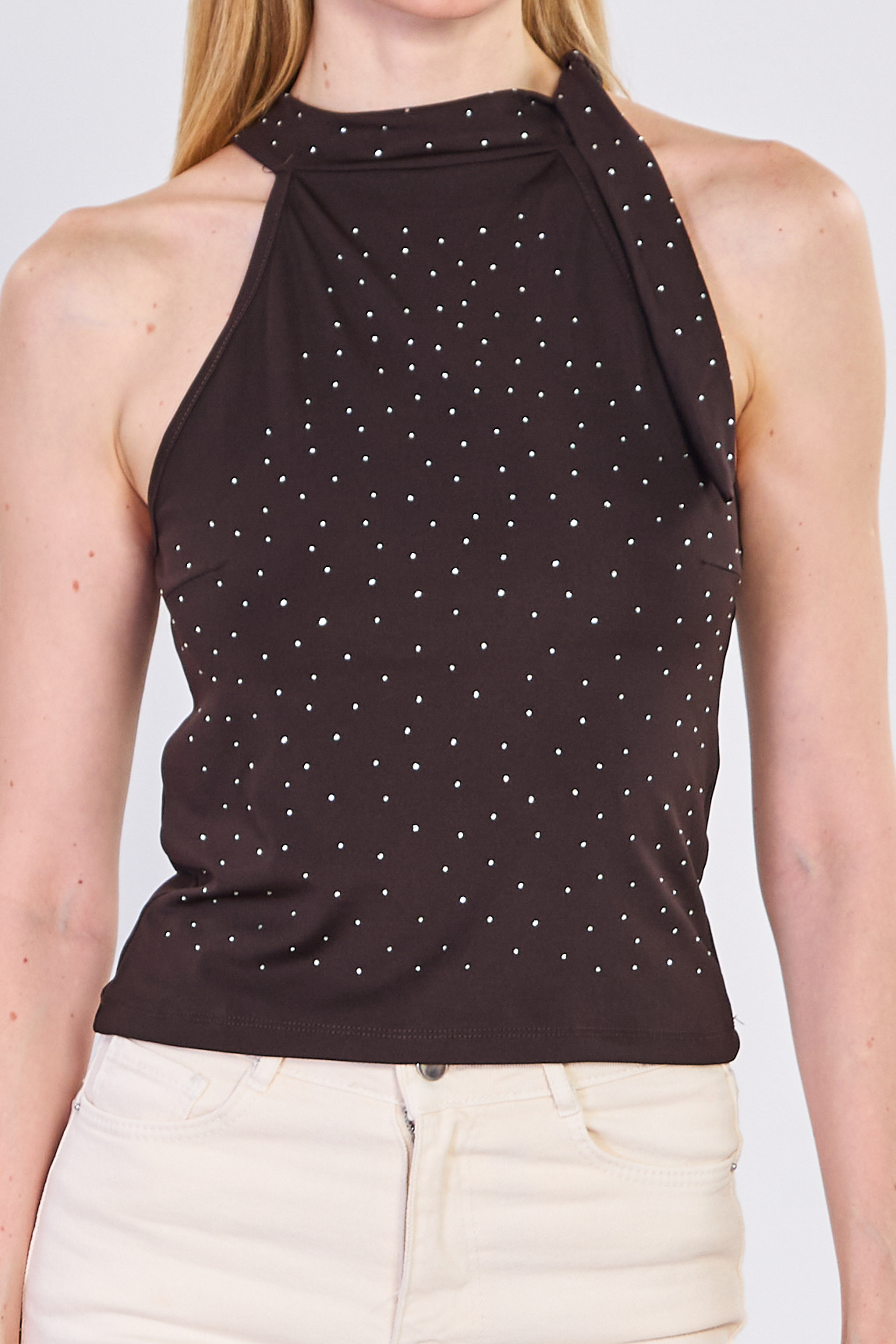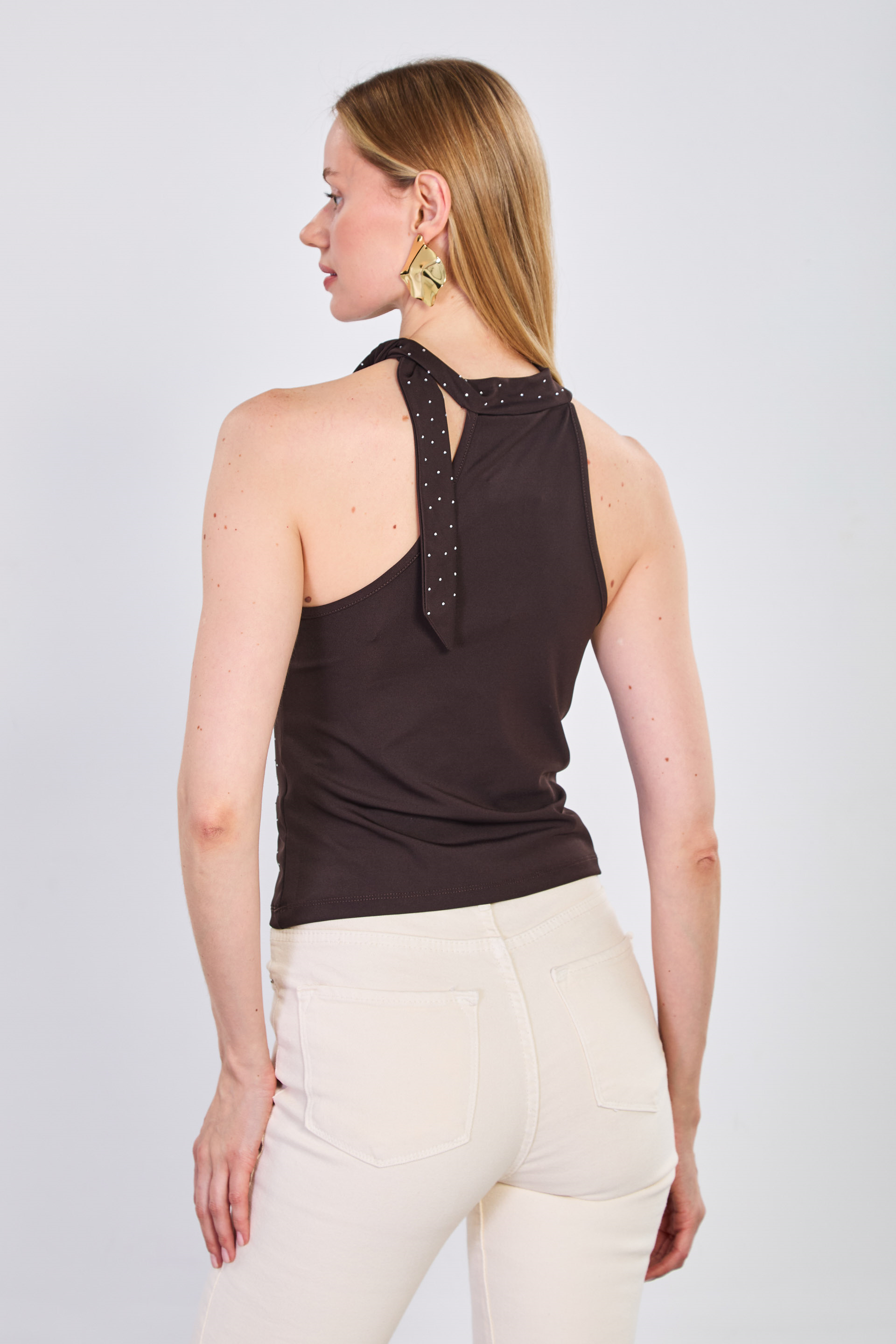 Kadın Halter Yaka Boyundan Bağlamalı Bluz - Acı Kahve