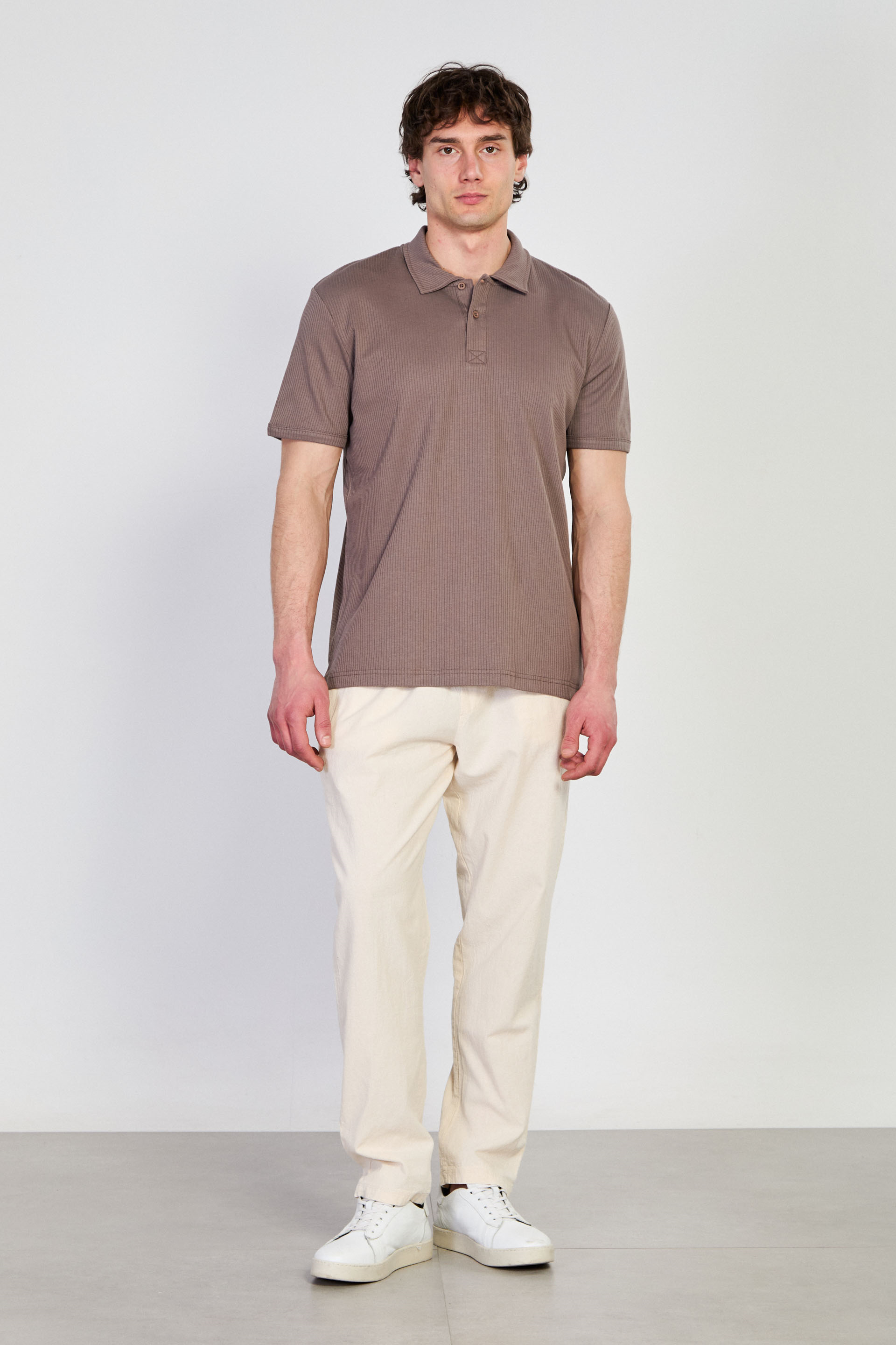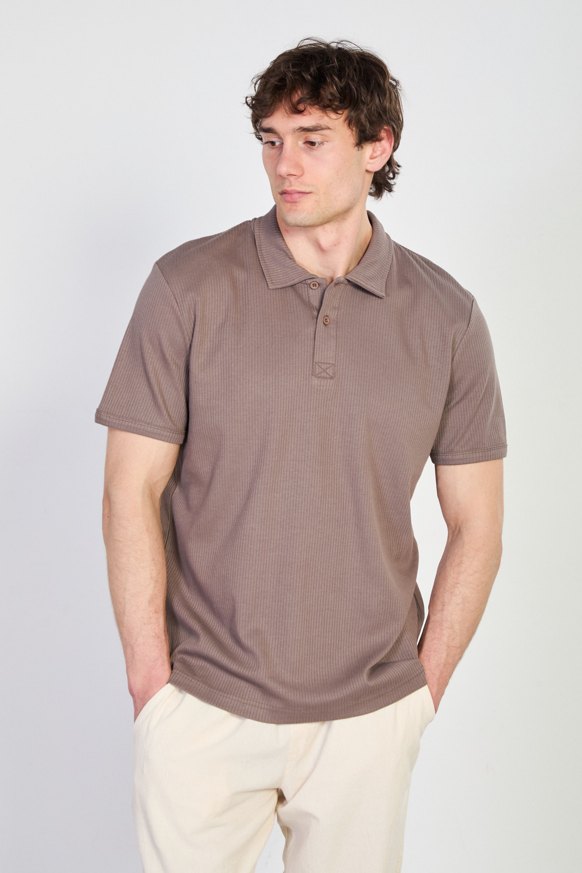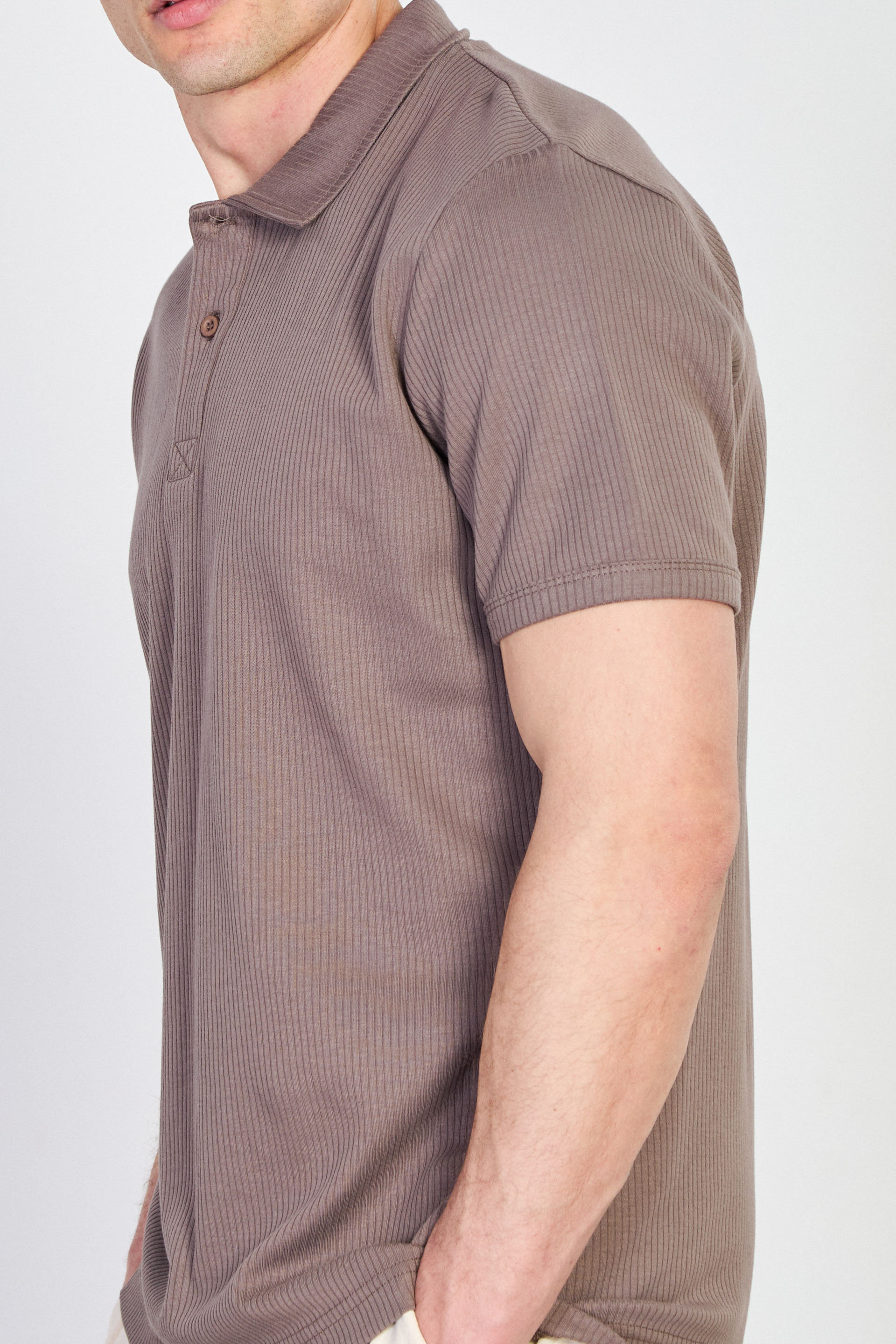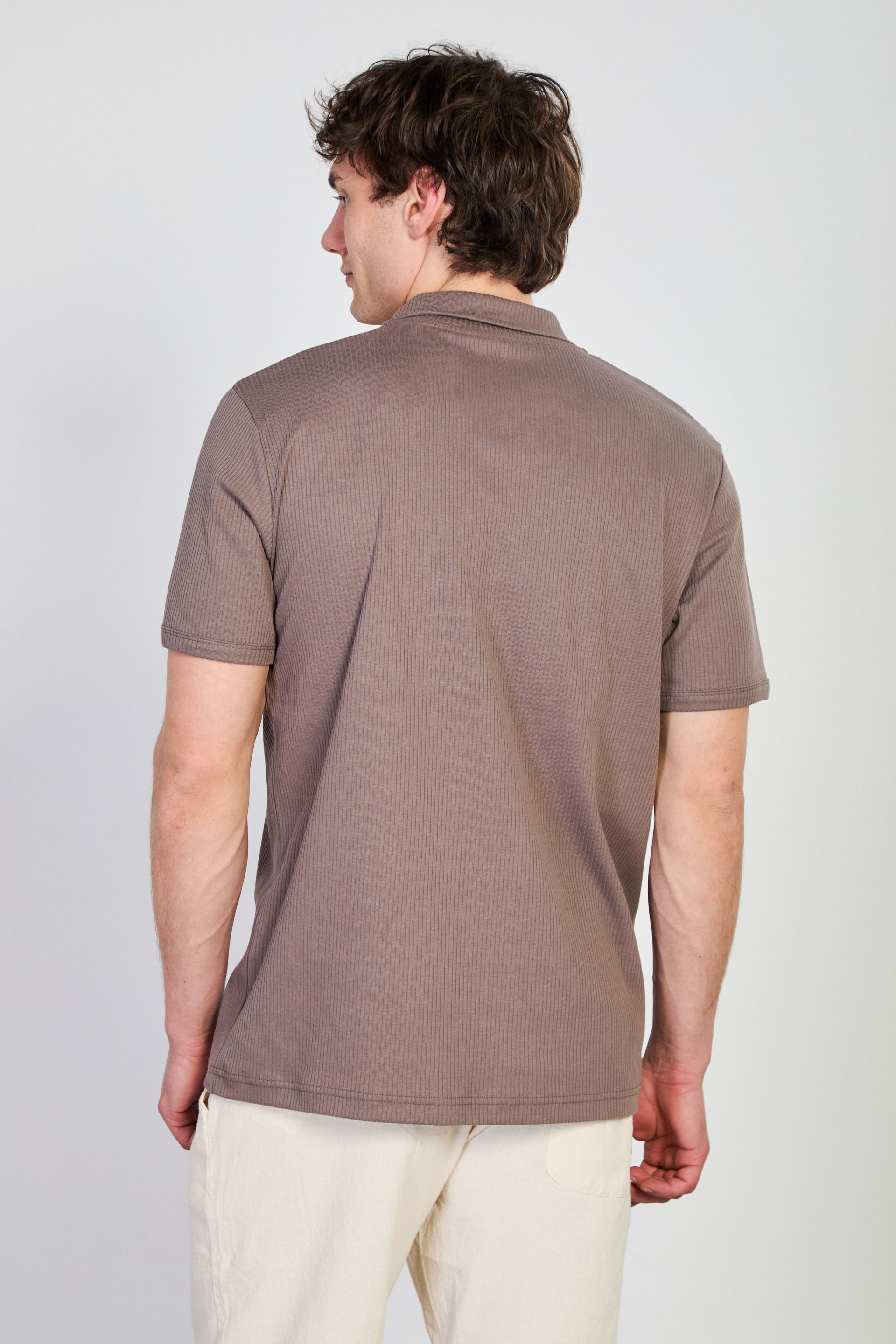 Erkek İğne Detay İnterlok T-Shirt - Kahve