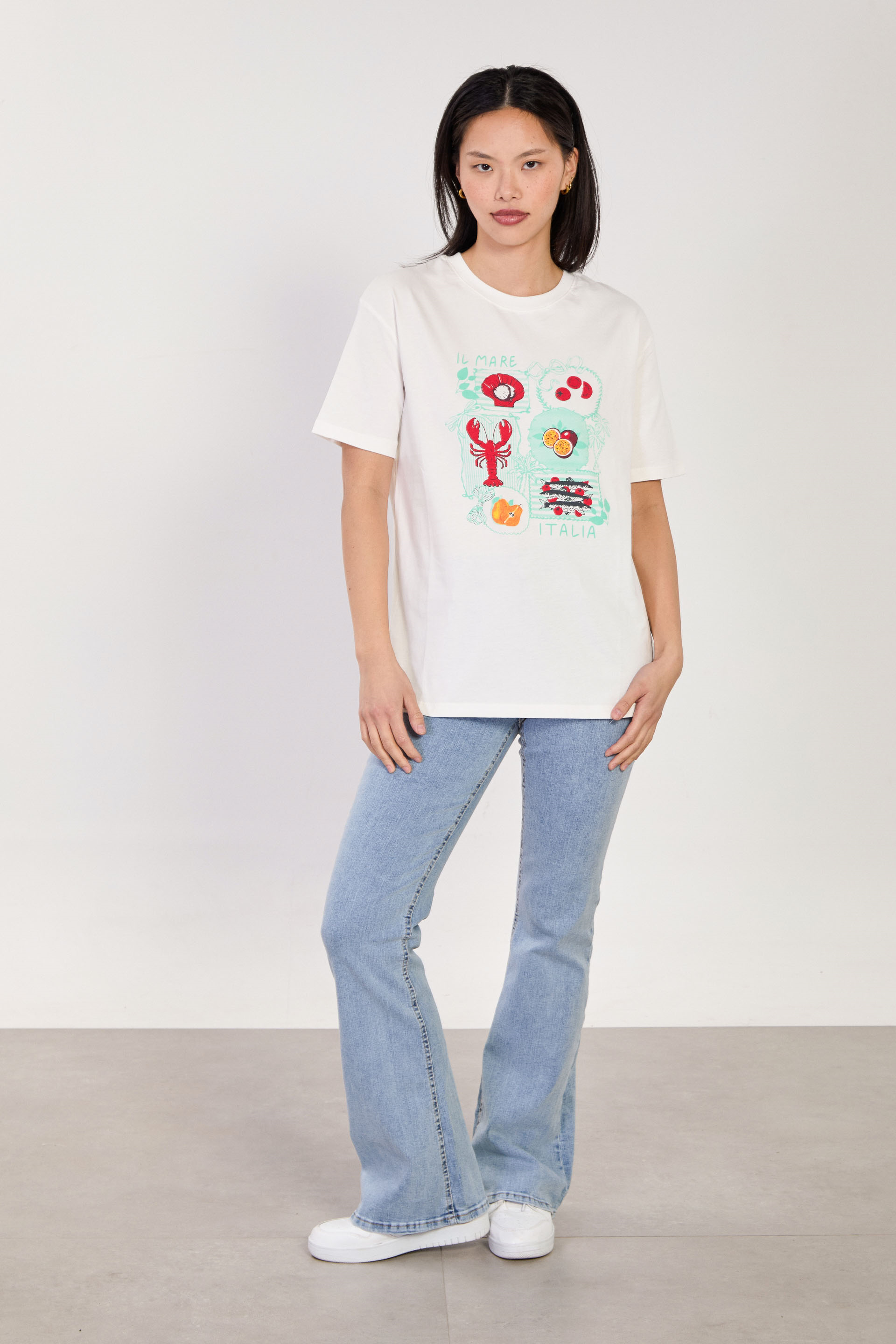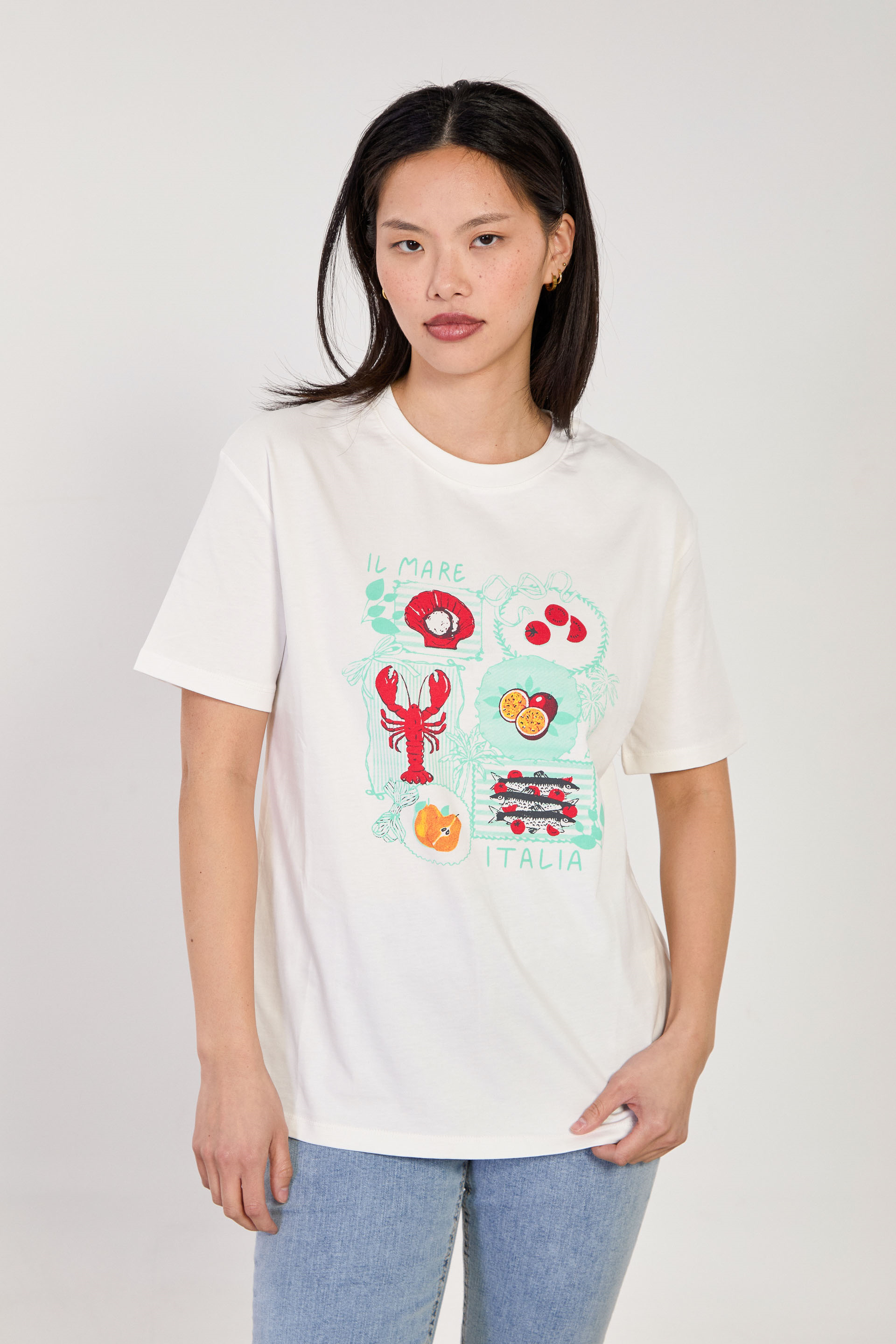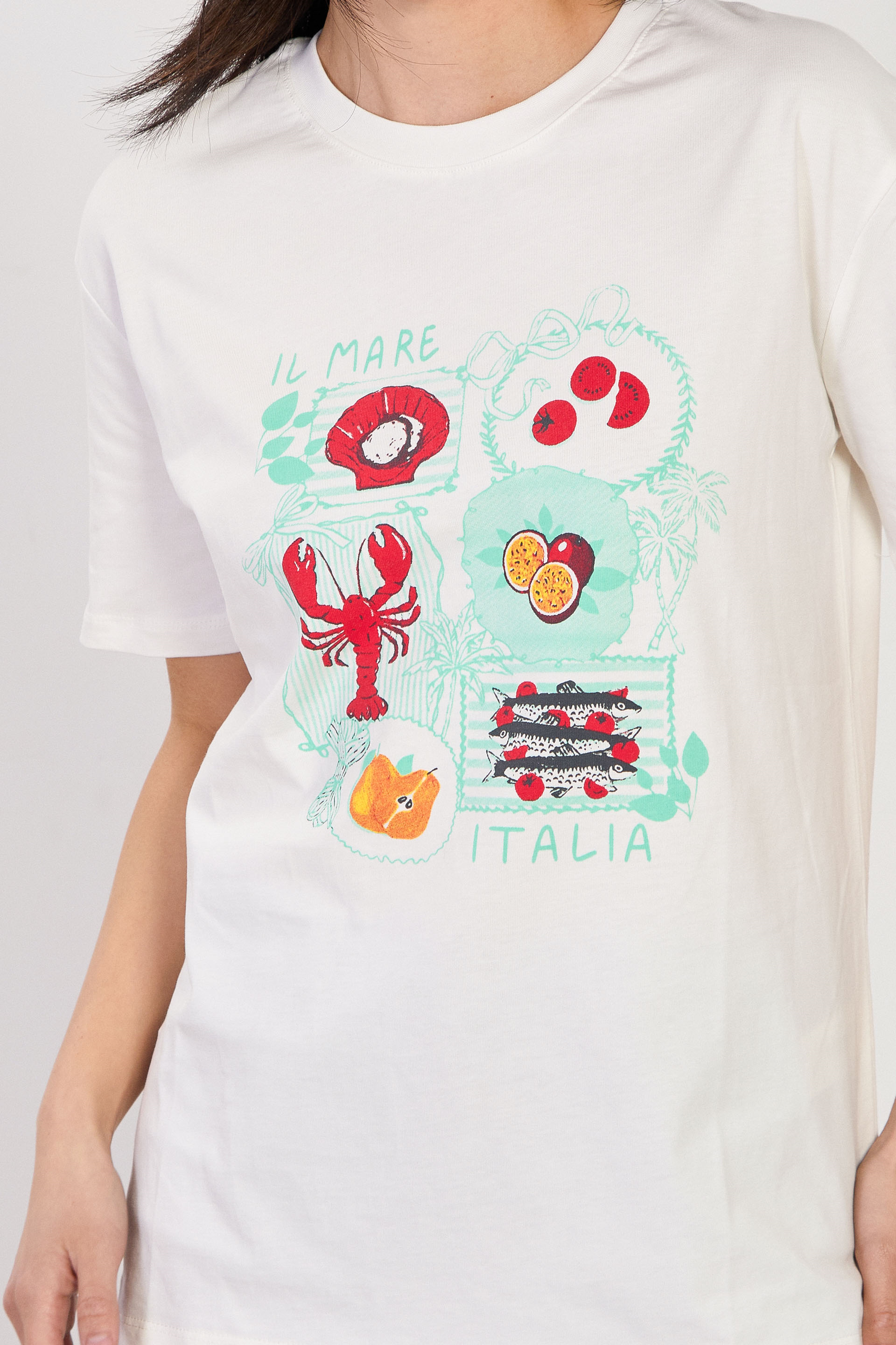 Kadın Il Mare Deniz Temalı T-Shirt - Ekru