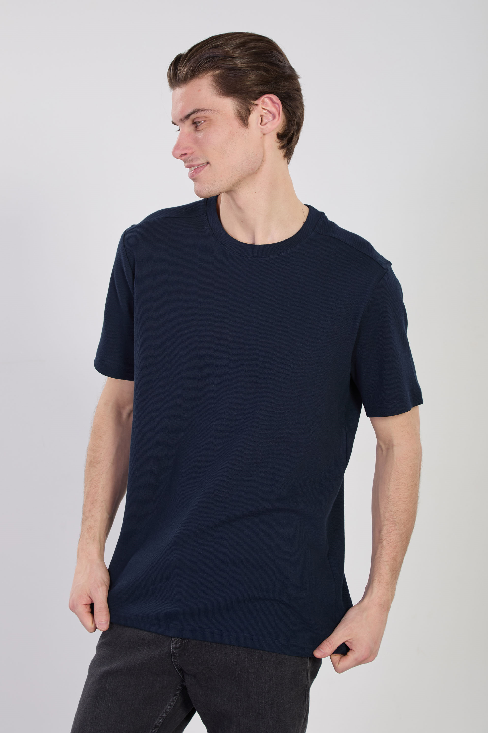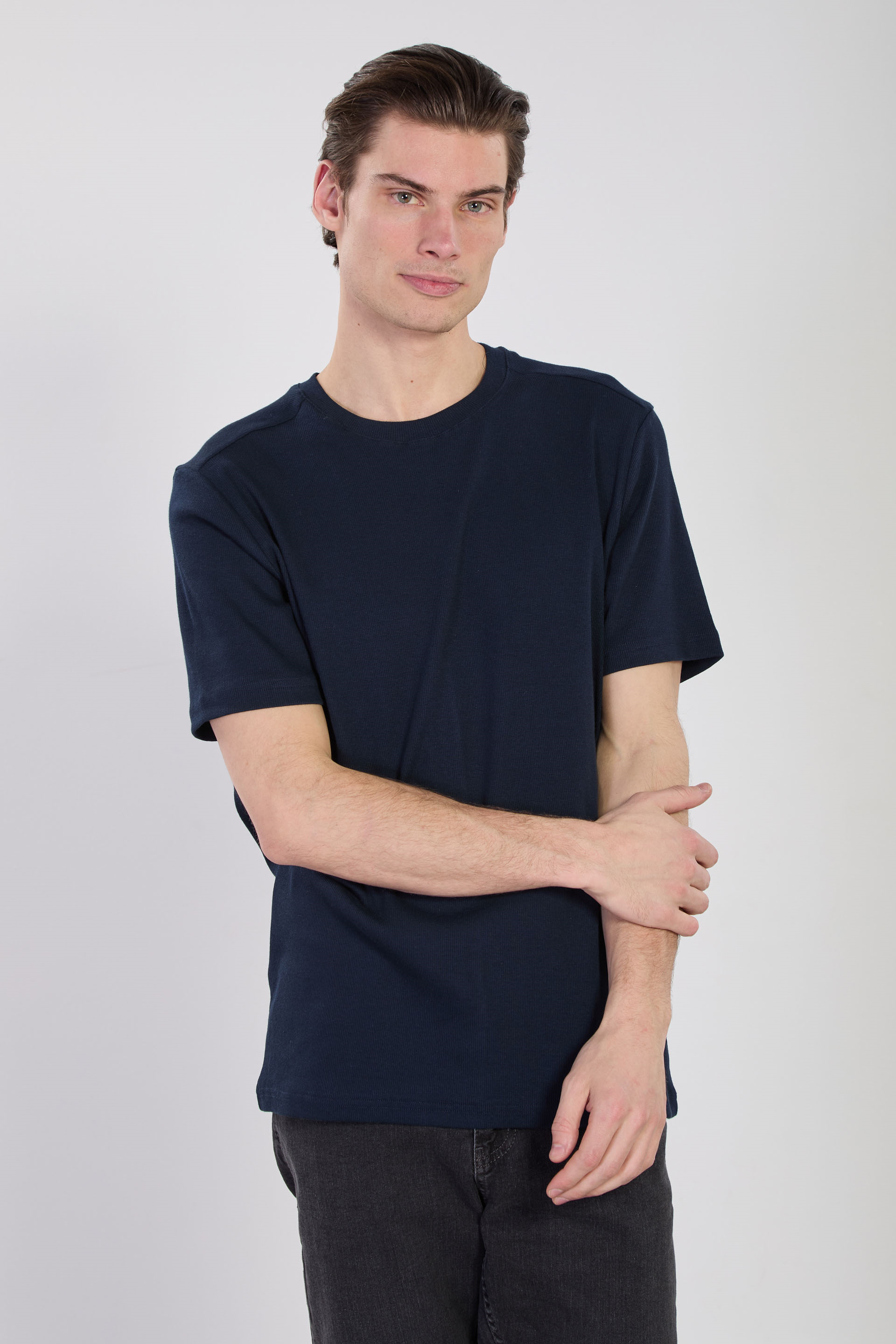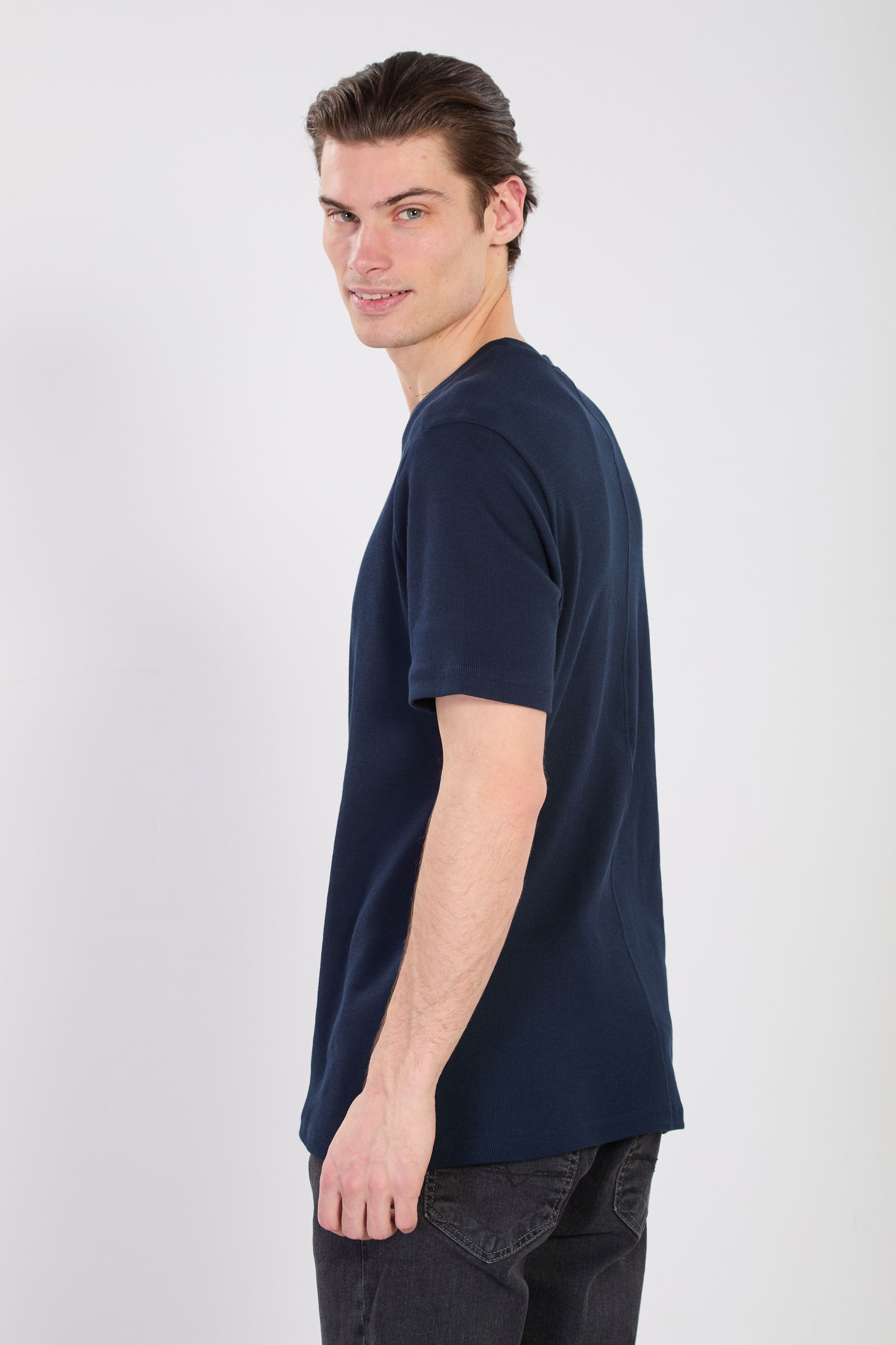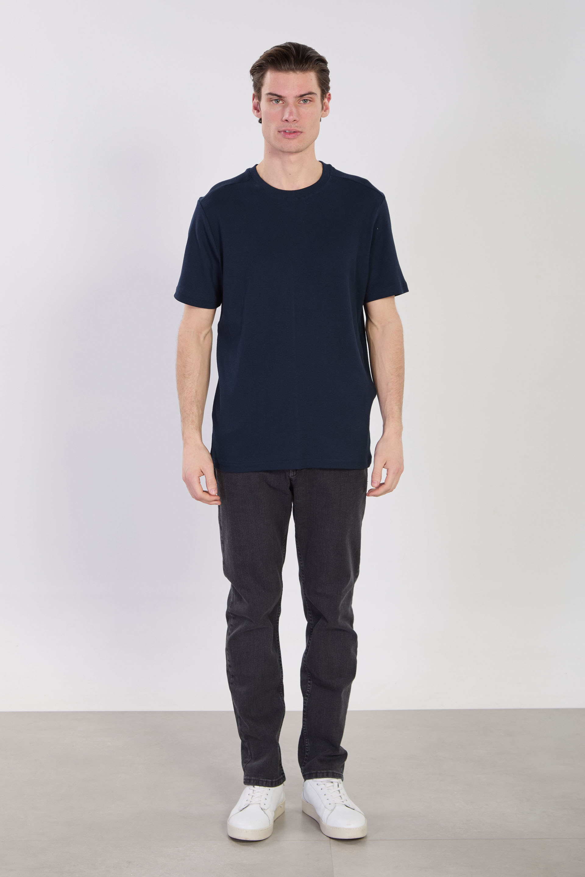 Erkek İnce Fitilli Basic T-Shirt - İndigo