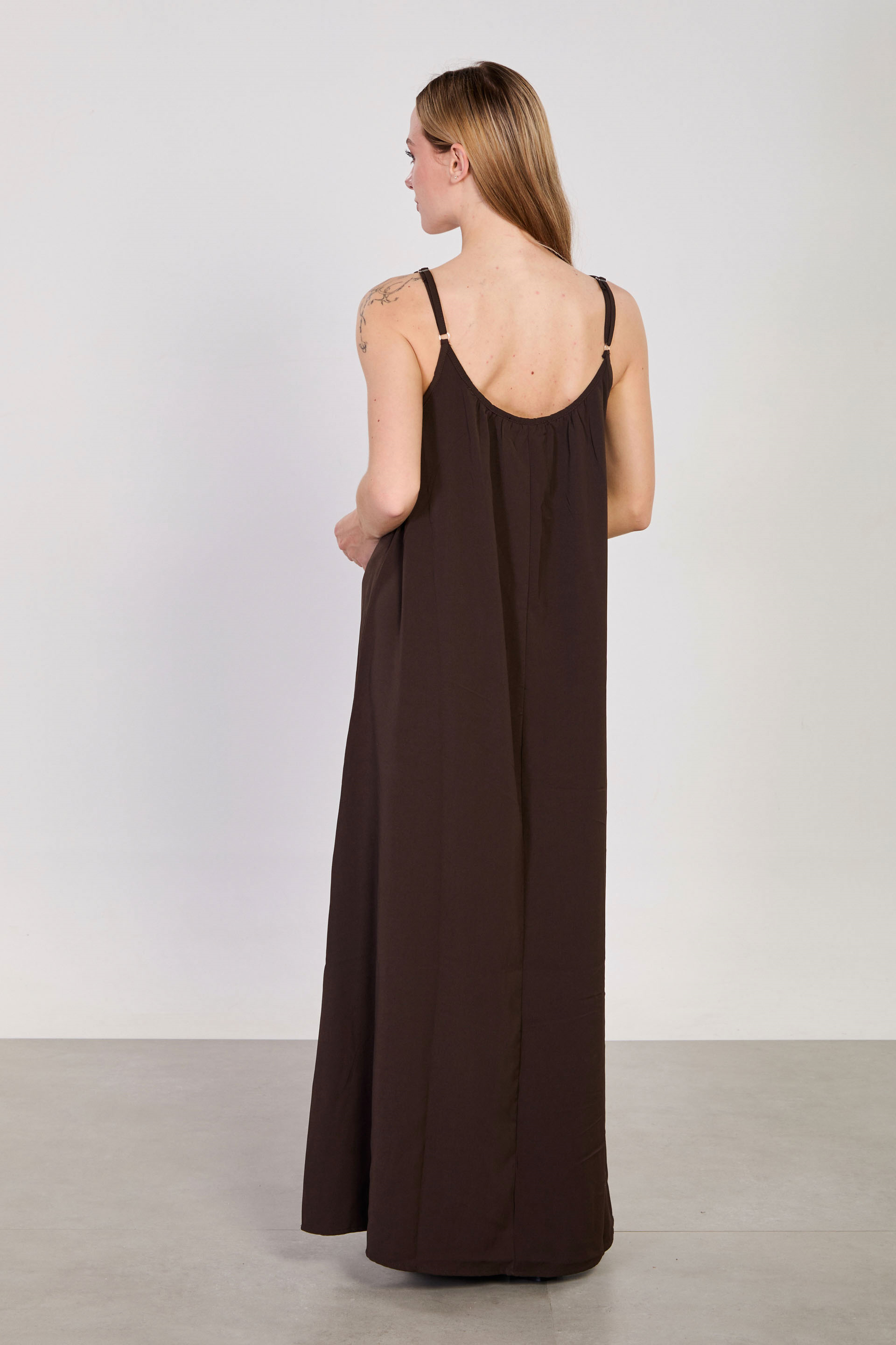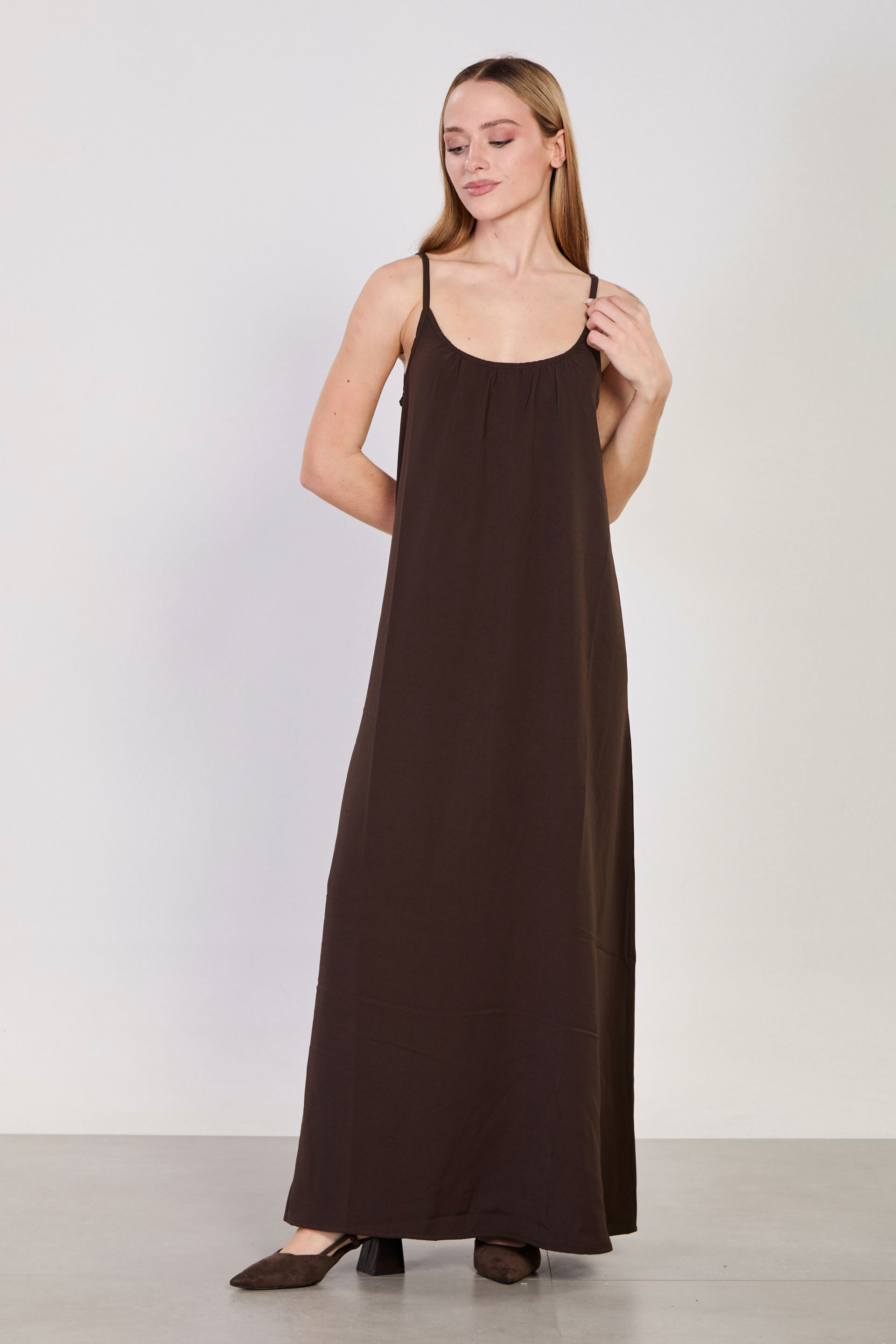 Kadın İp Askılı Uzun Elbise - Kahve