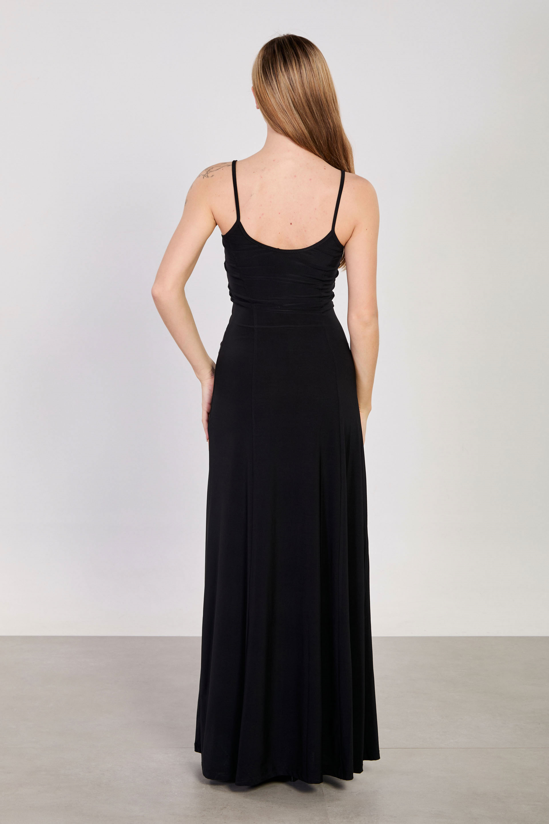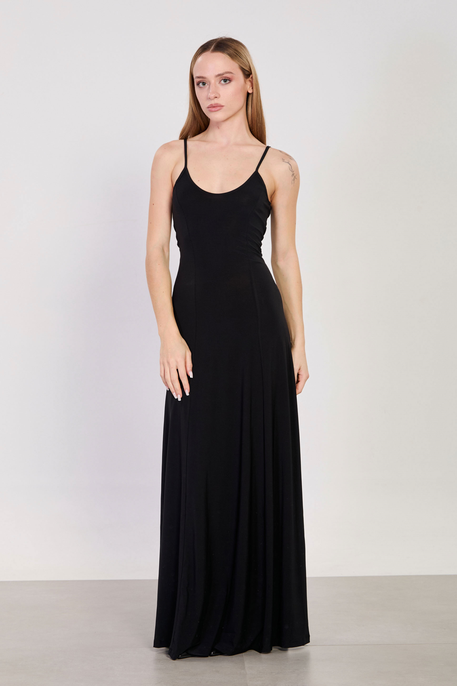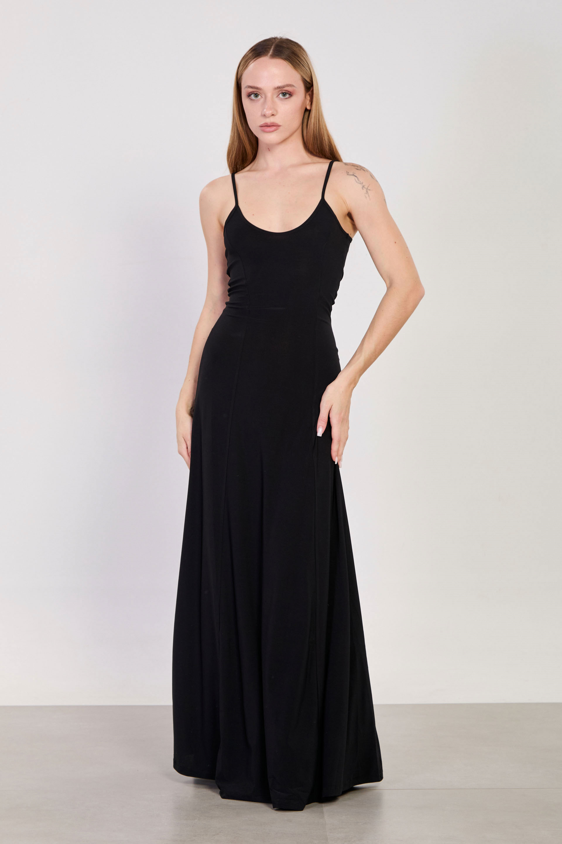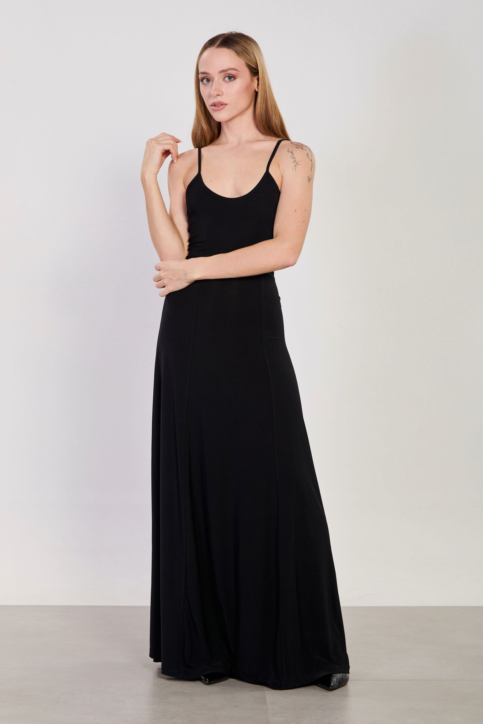 Kadın İp Askılı Uzun Sandy Elbise - Siyah