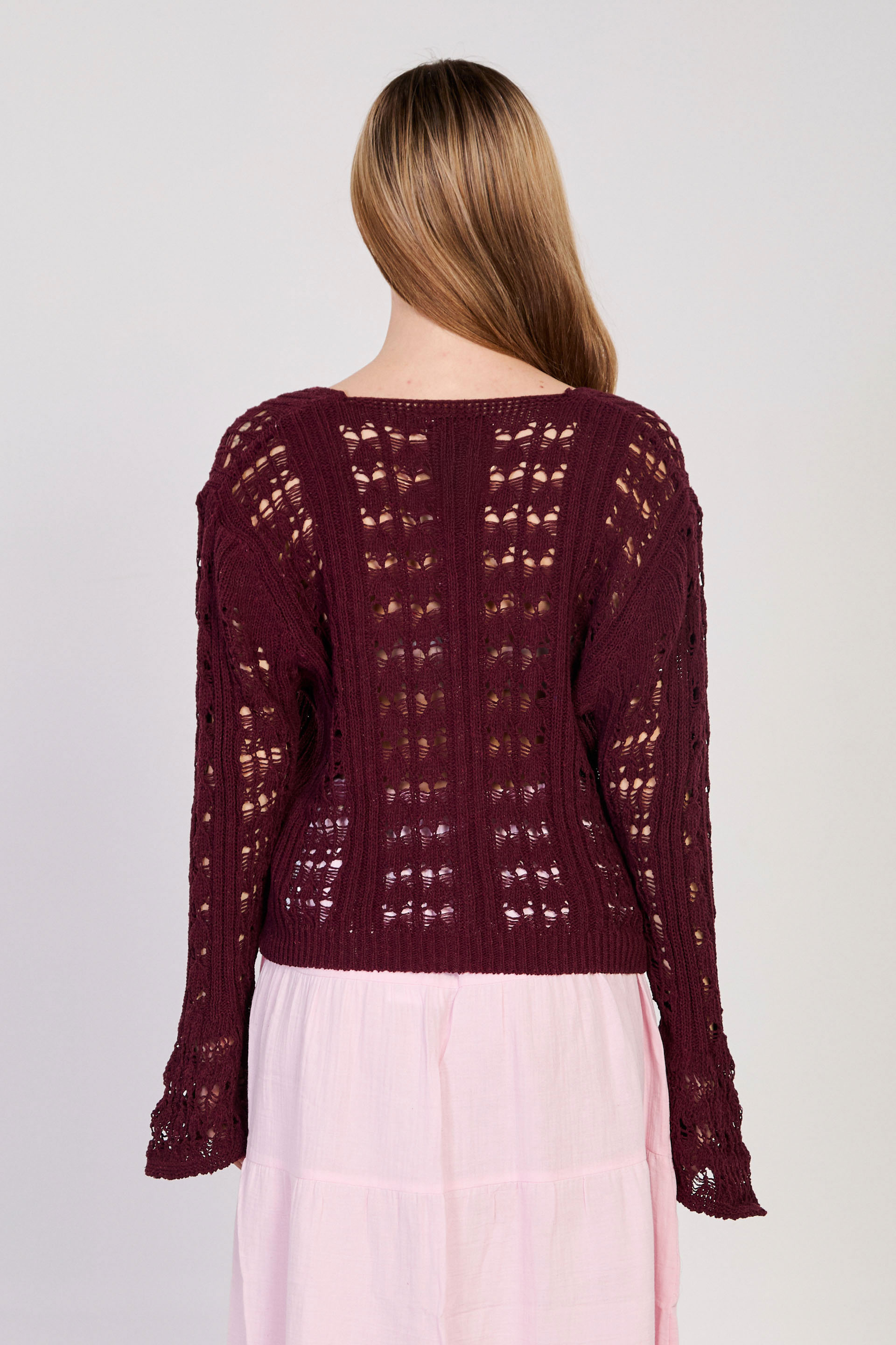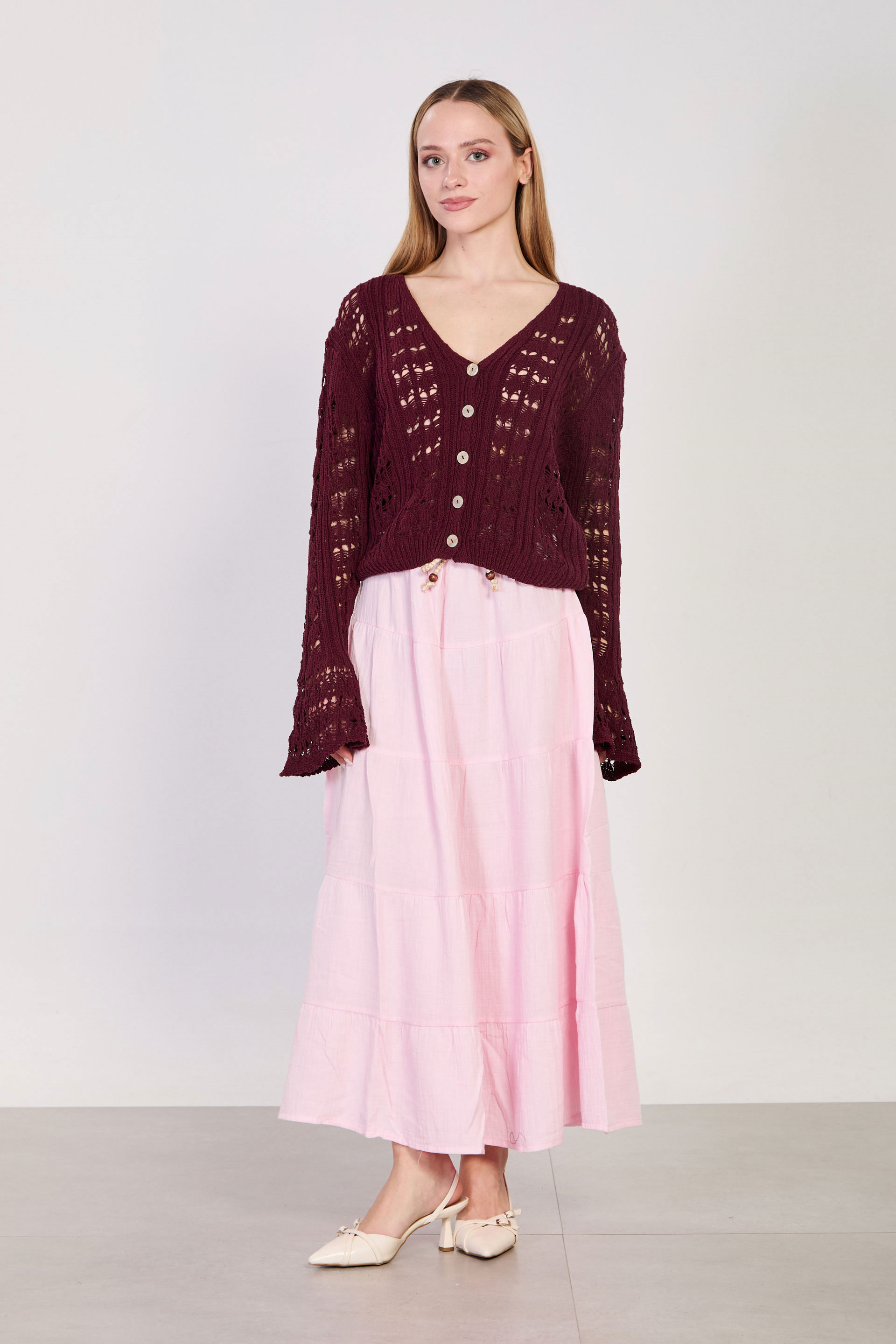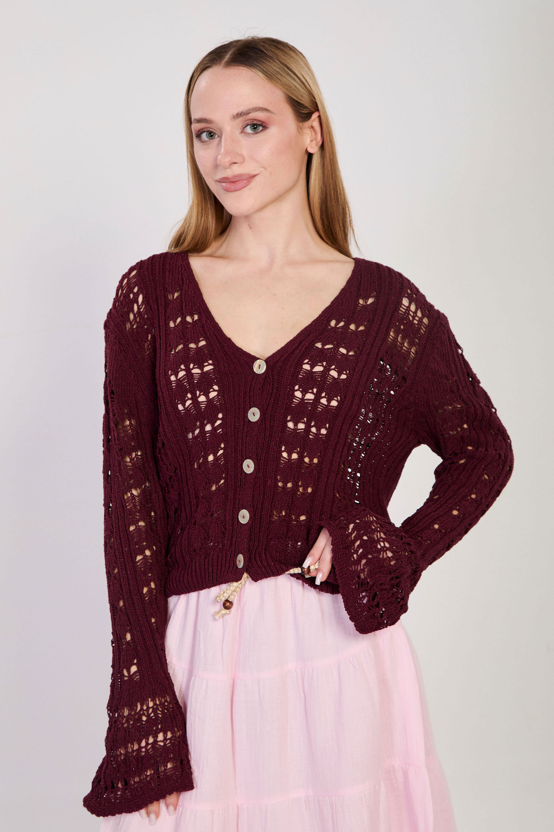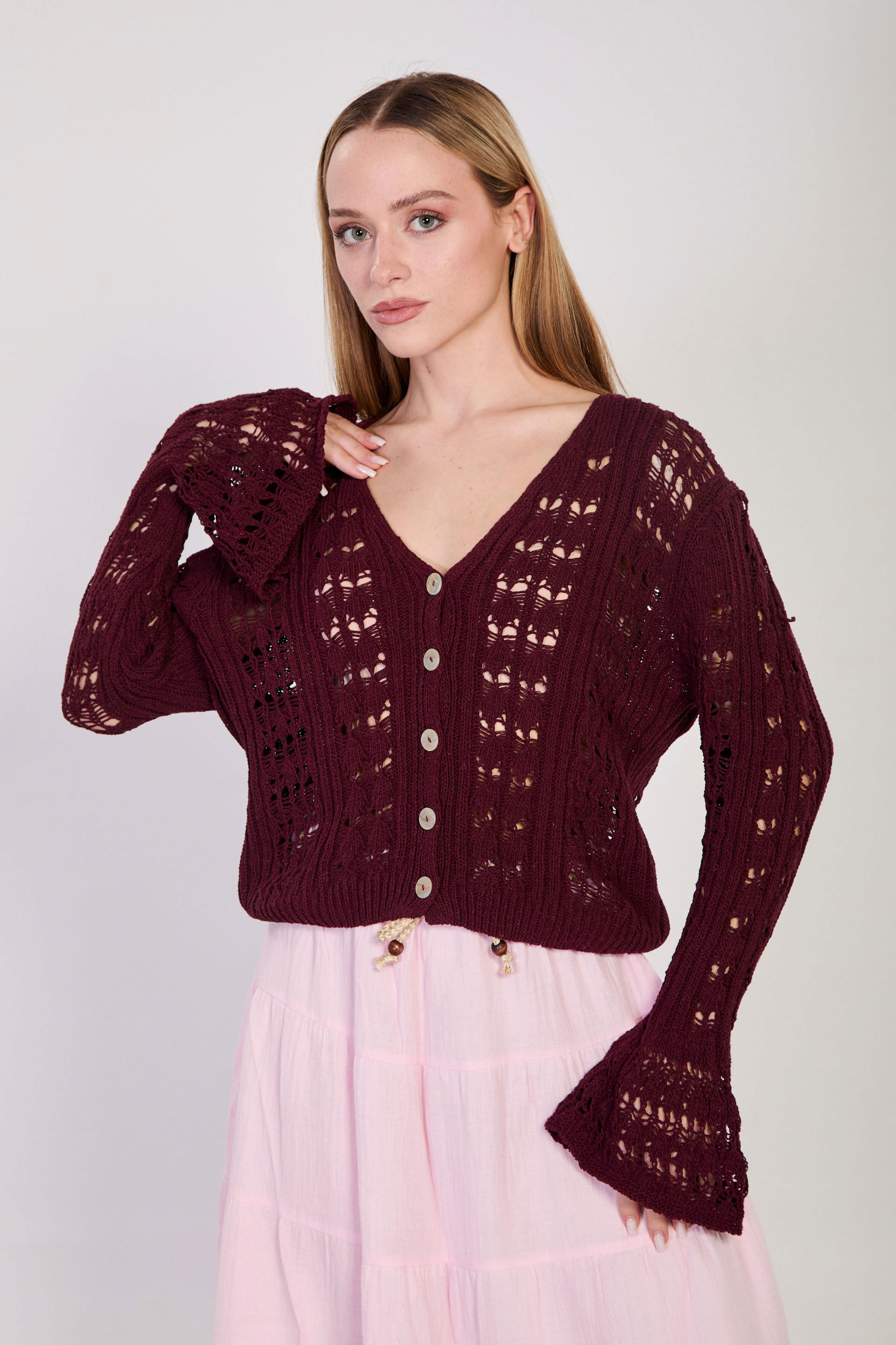 Kadın İspanyol Kol Ajurlu Hırka - Bordo