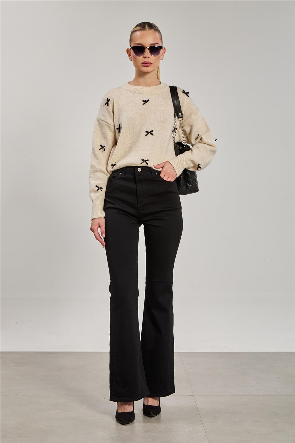 Kadın İspanyol Paça Jean Pantolon - Siyah